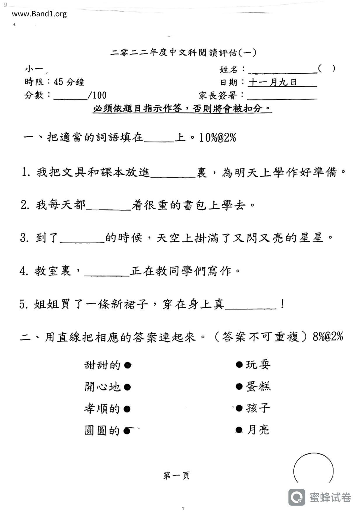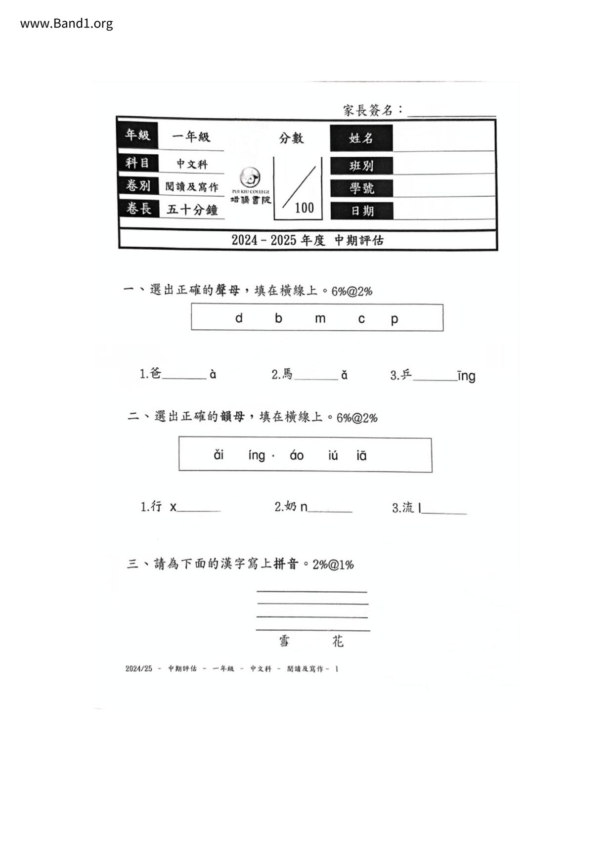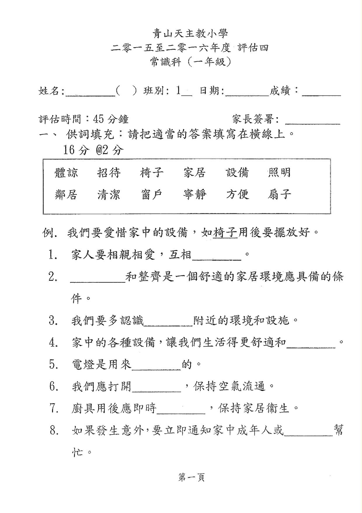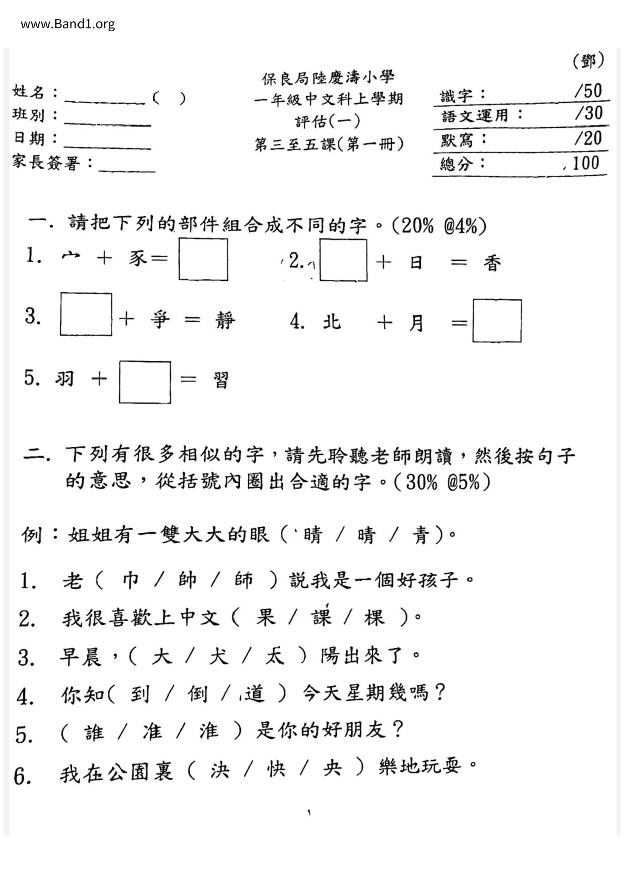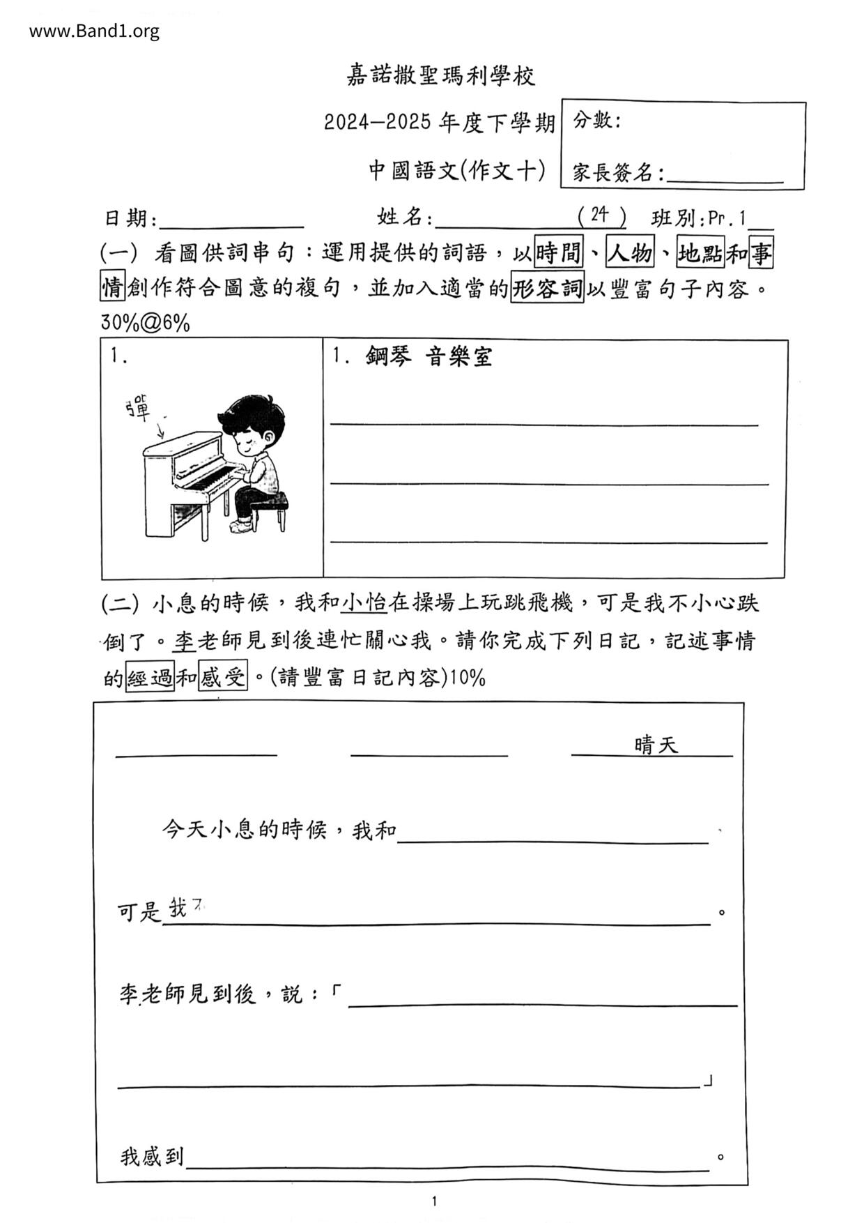 小一 中文 保良局西區婦女福利會馮李佩瑤小學