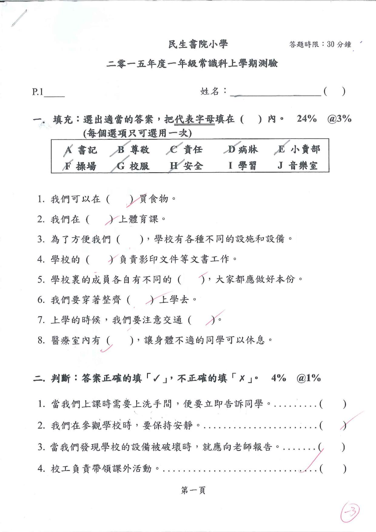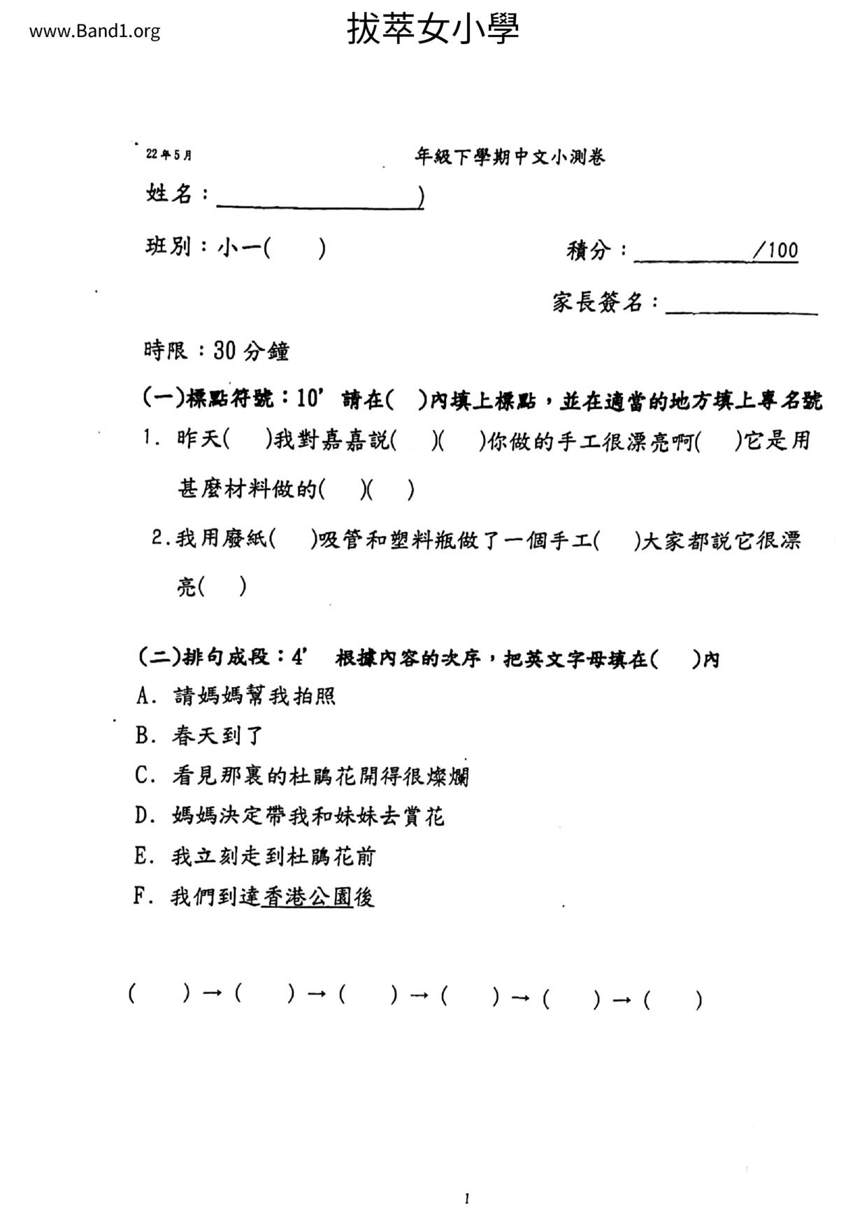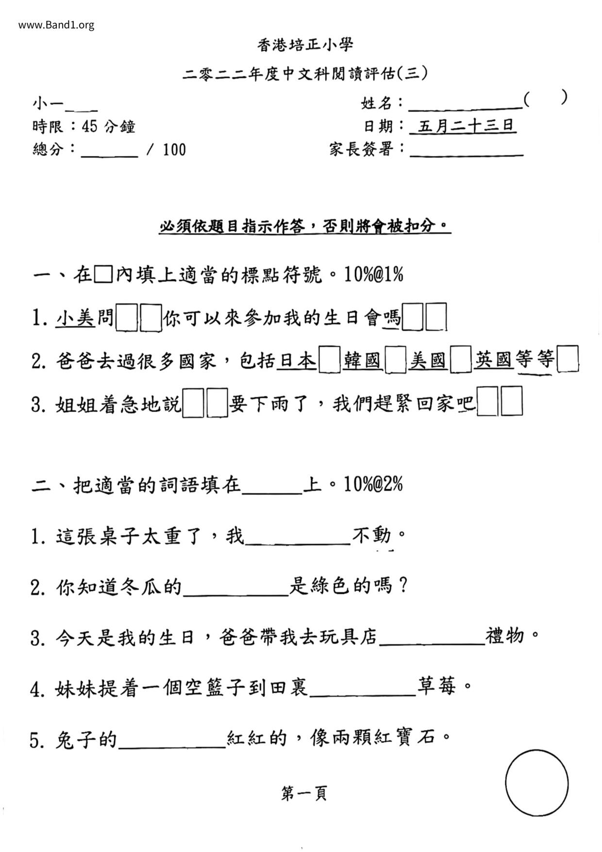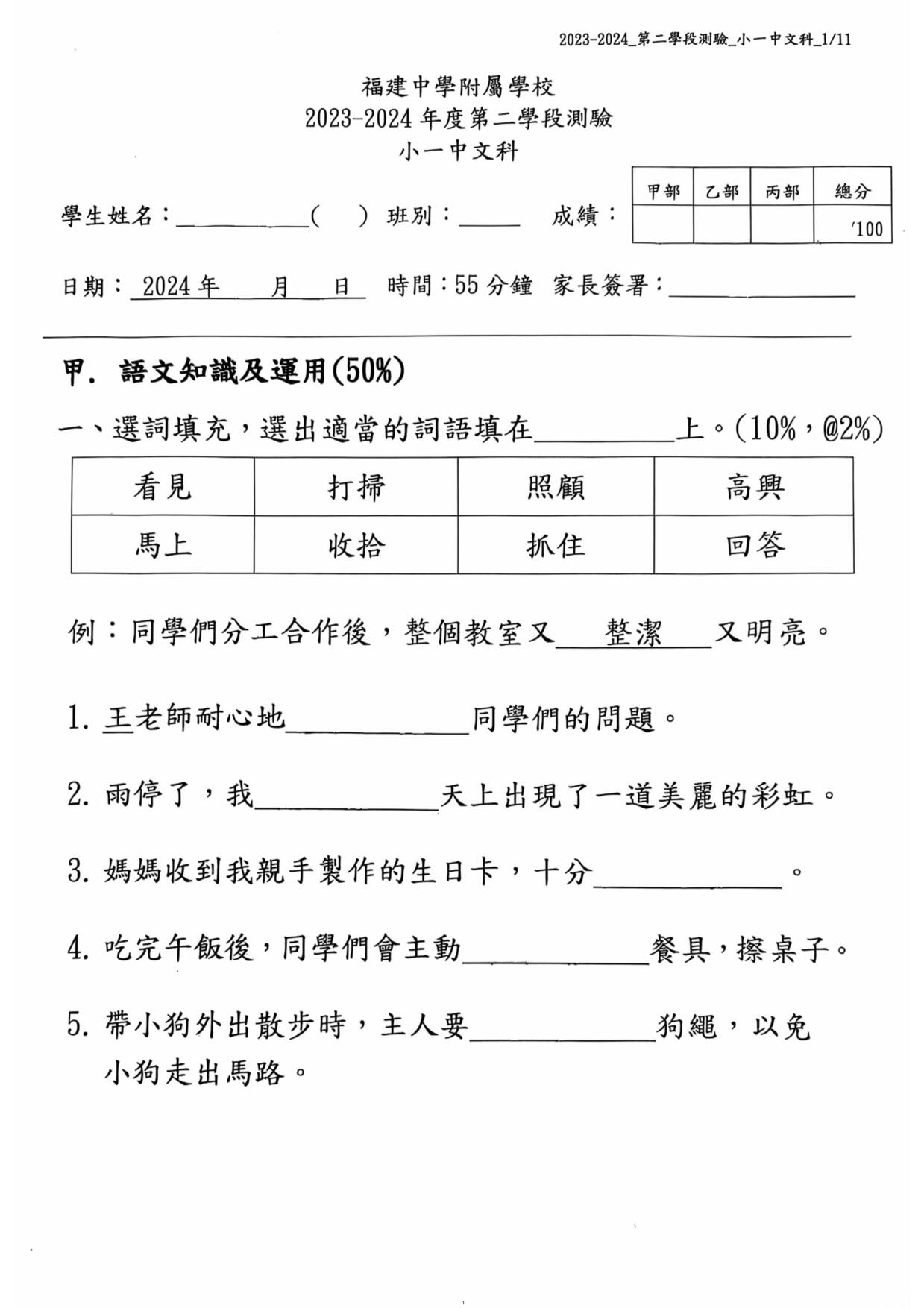 小一 中文 保良局西區婦女福利會馮李佩瑤小學