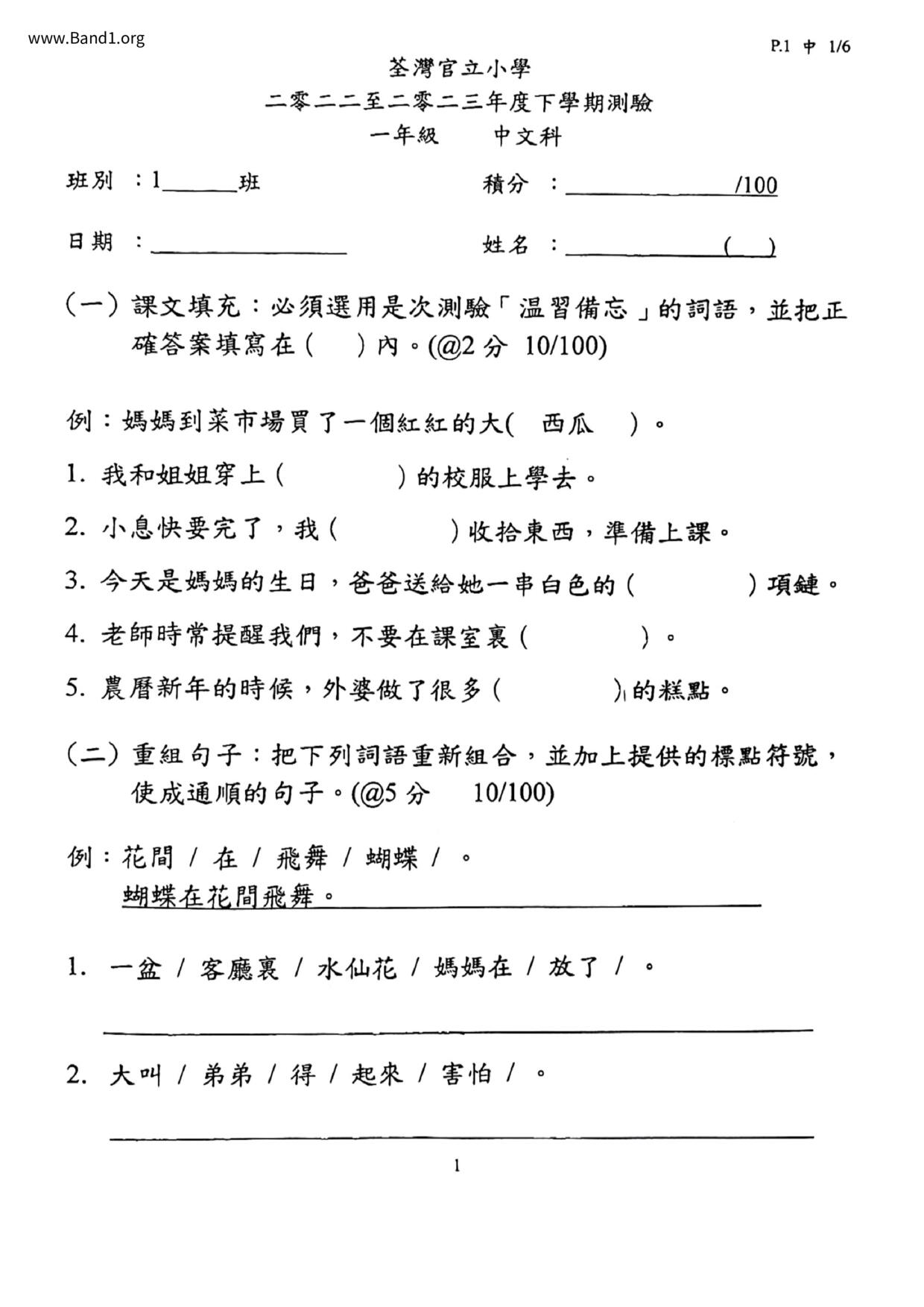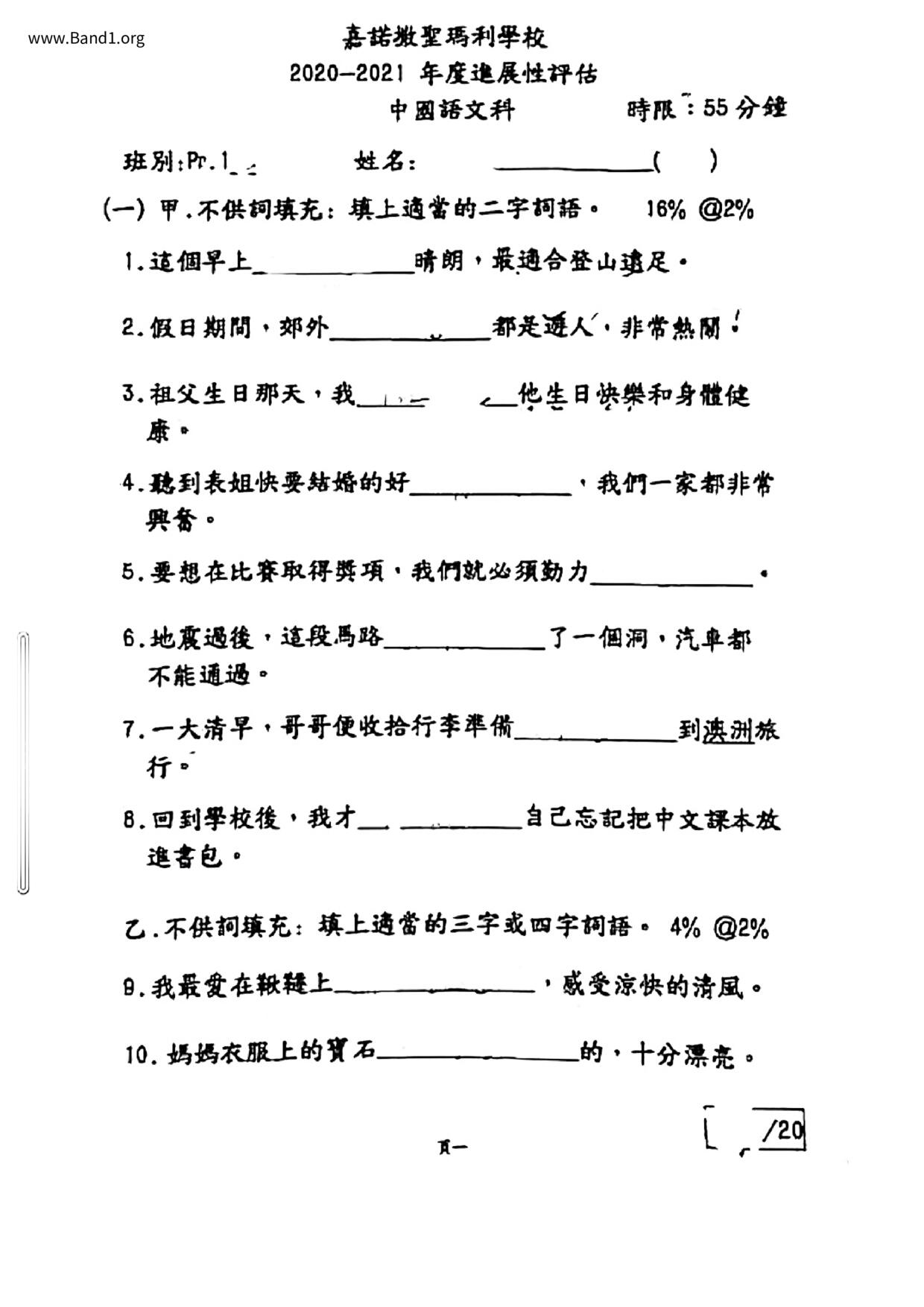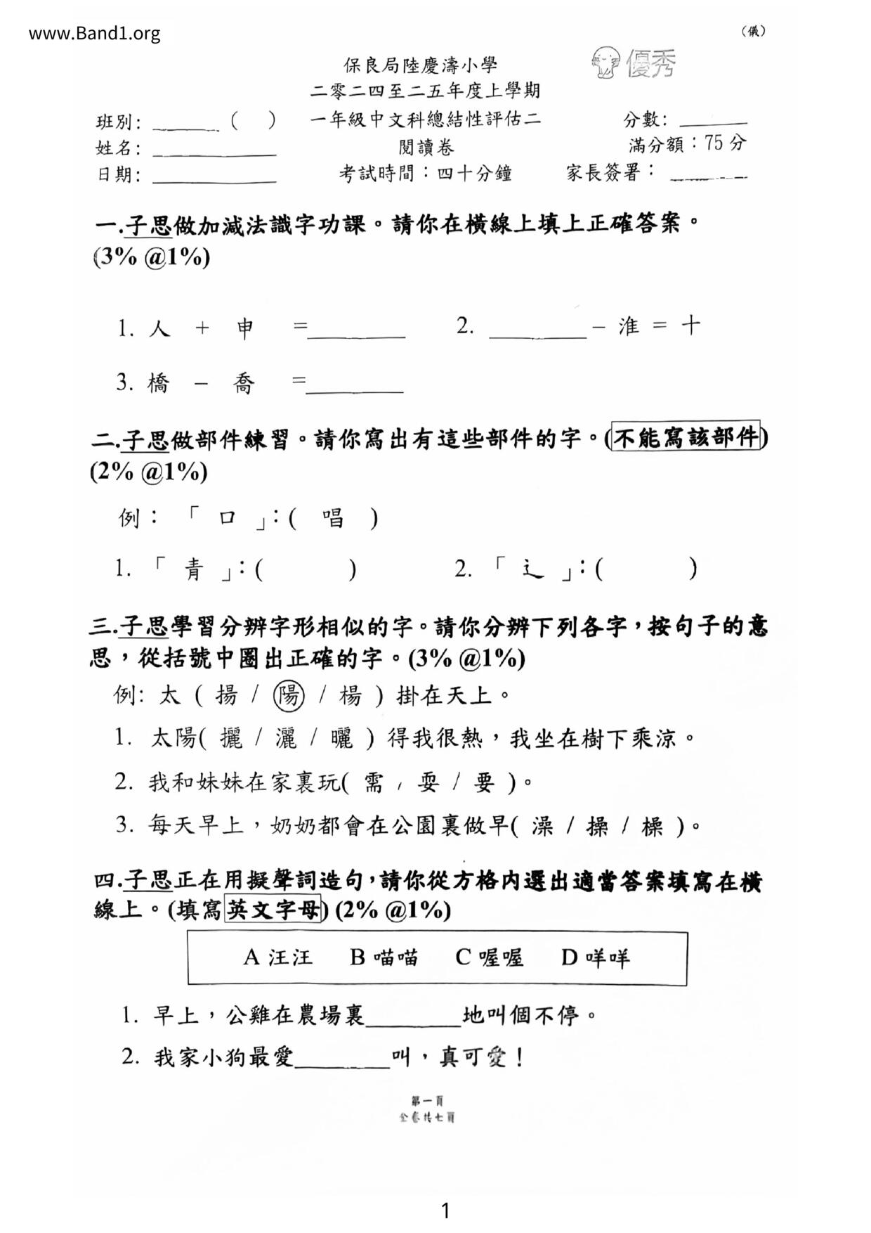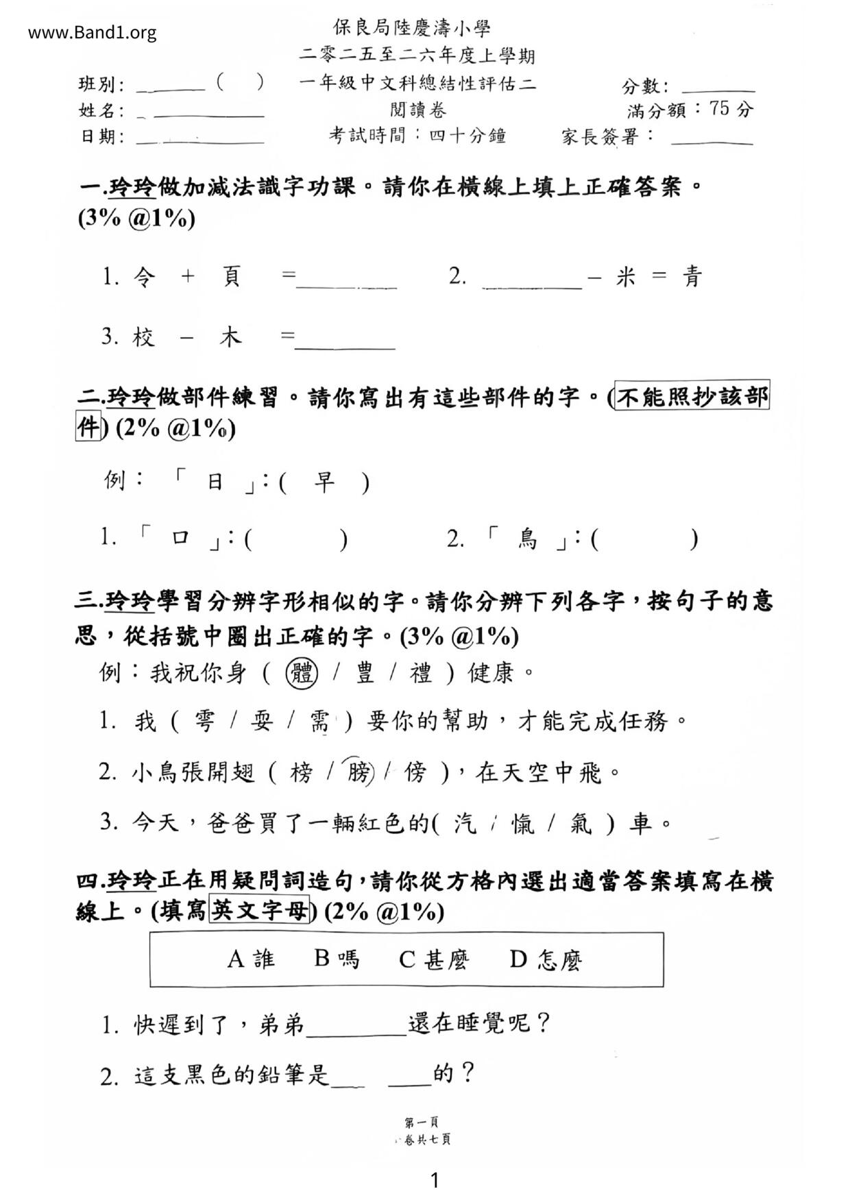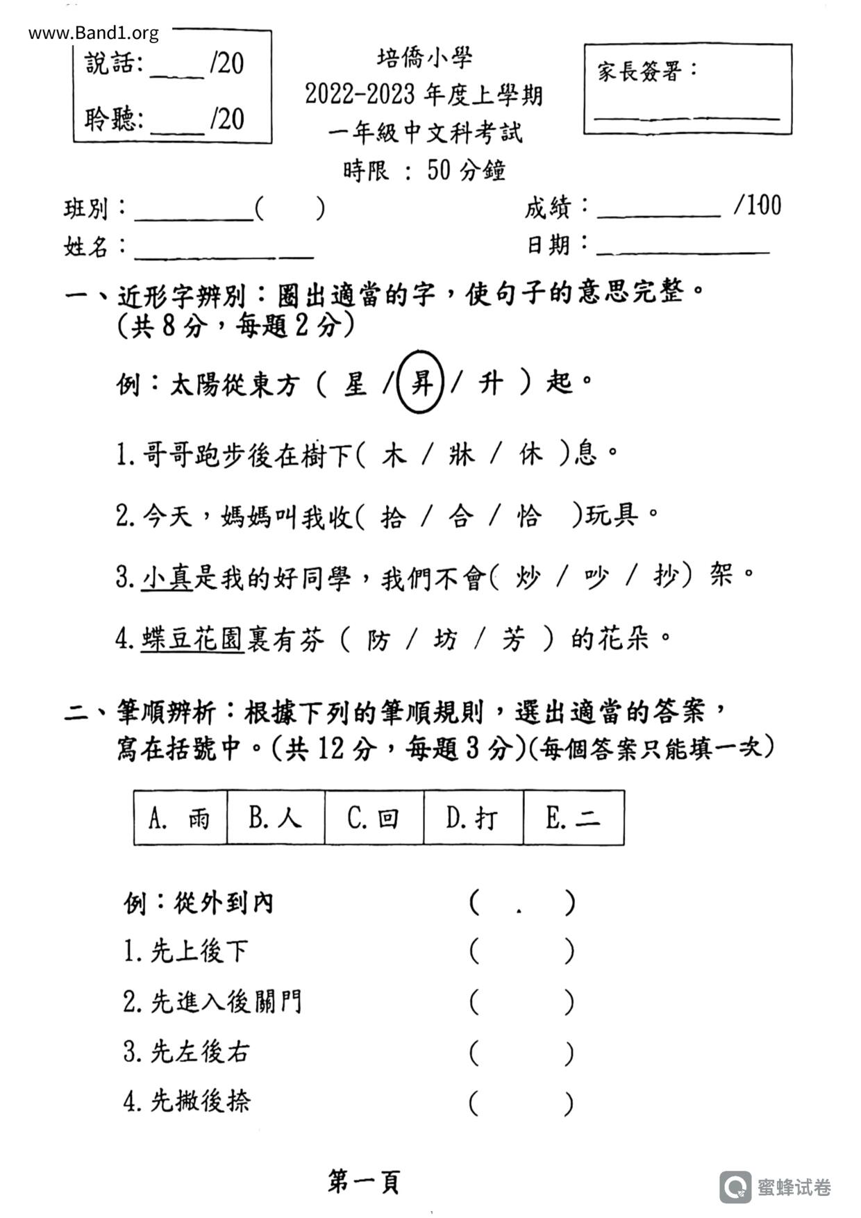 小一 中文 保良局西區婦女福利會馮李佩瑤小學