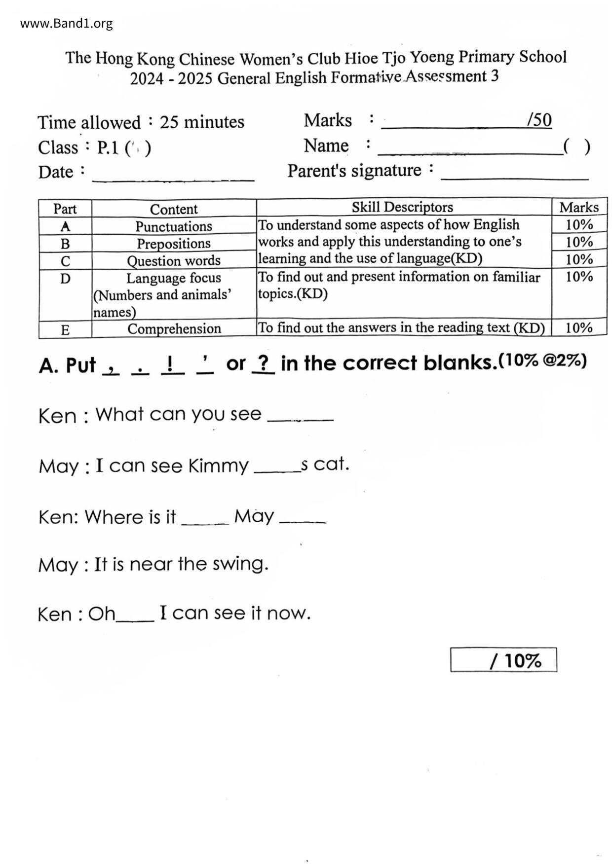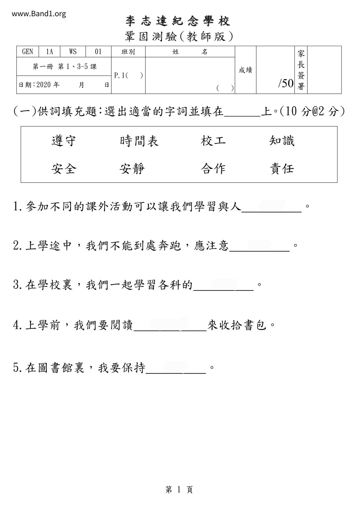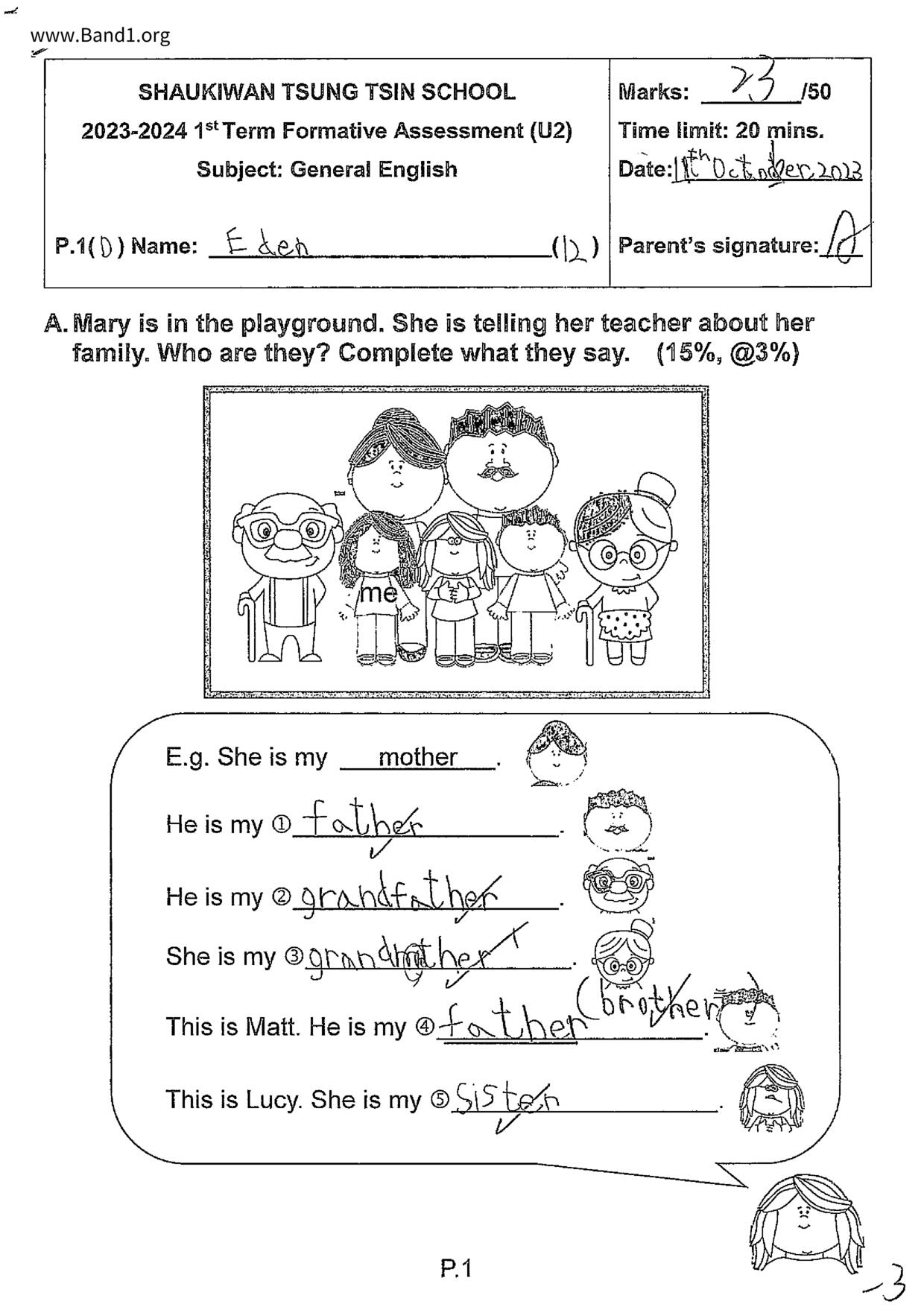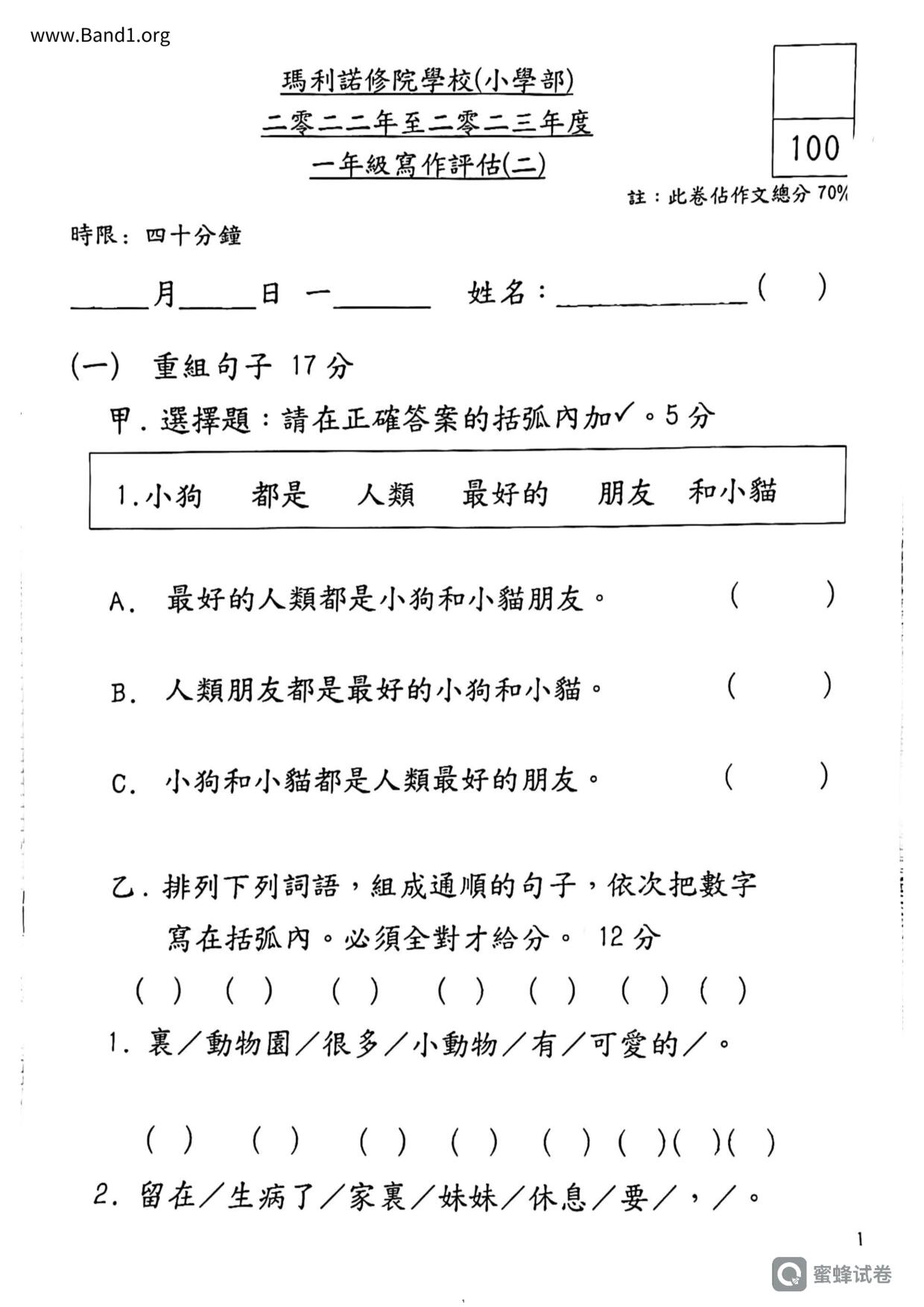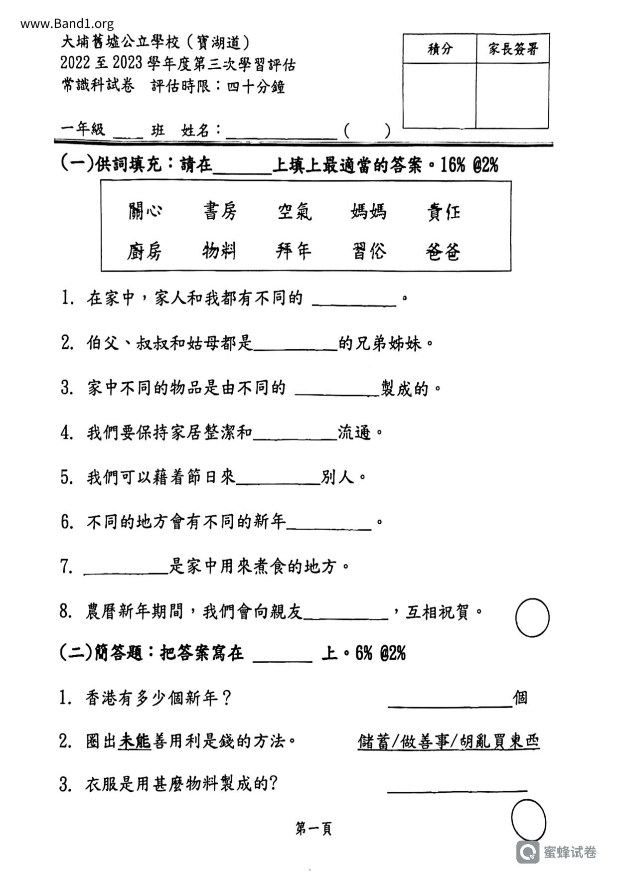 小一 中文 保良局西區婦女福利會馮李佩瑤小學