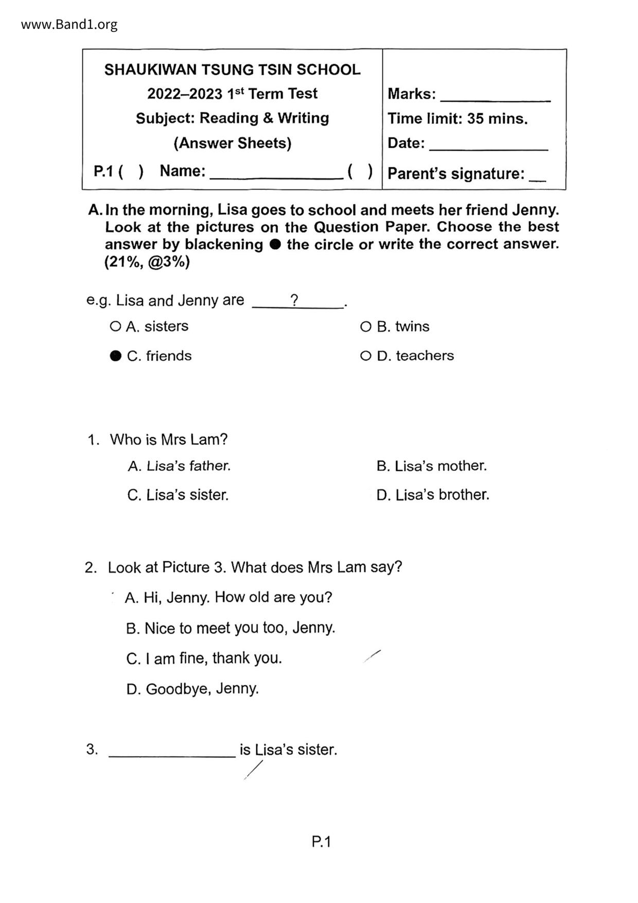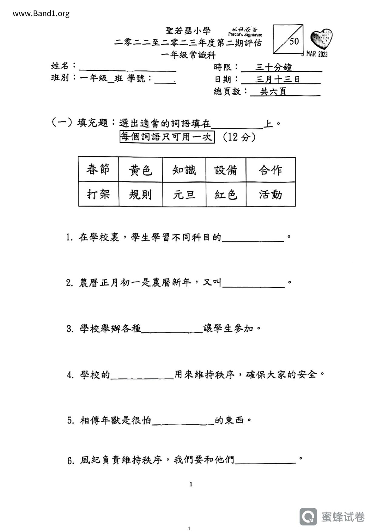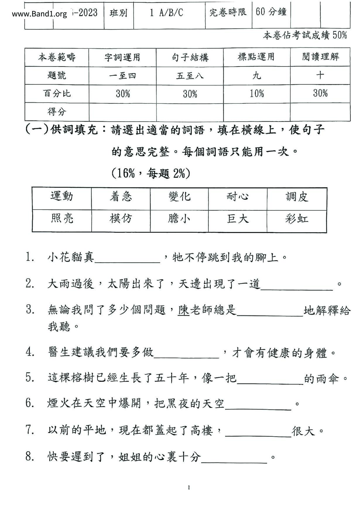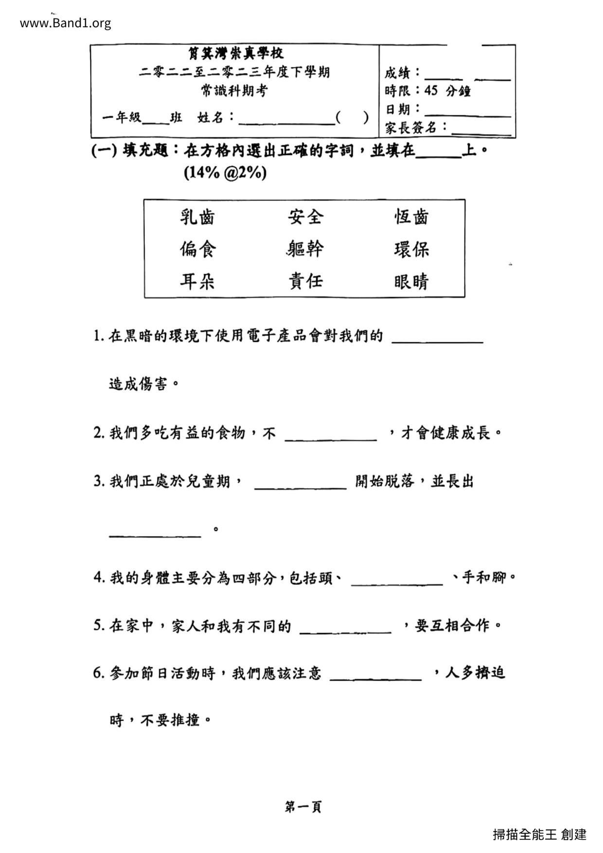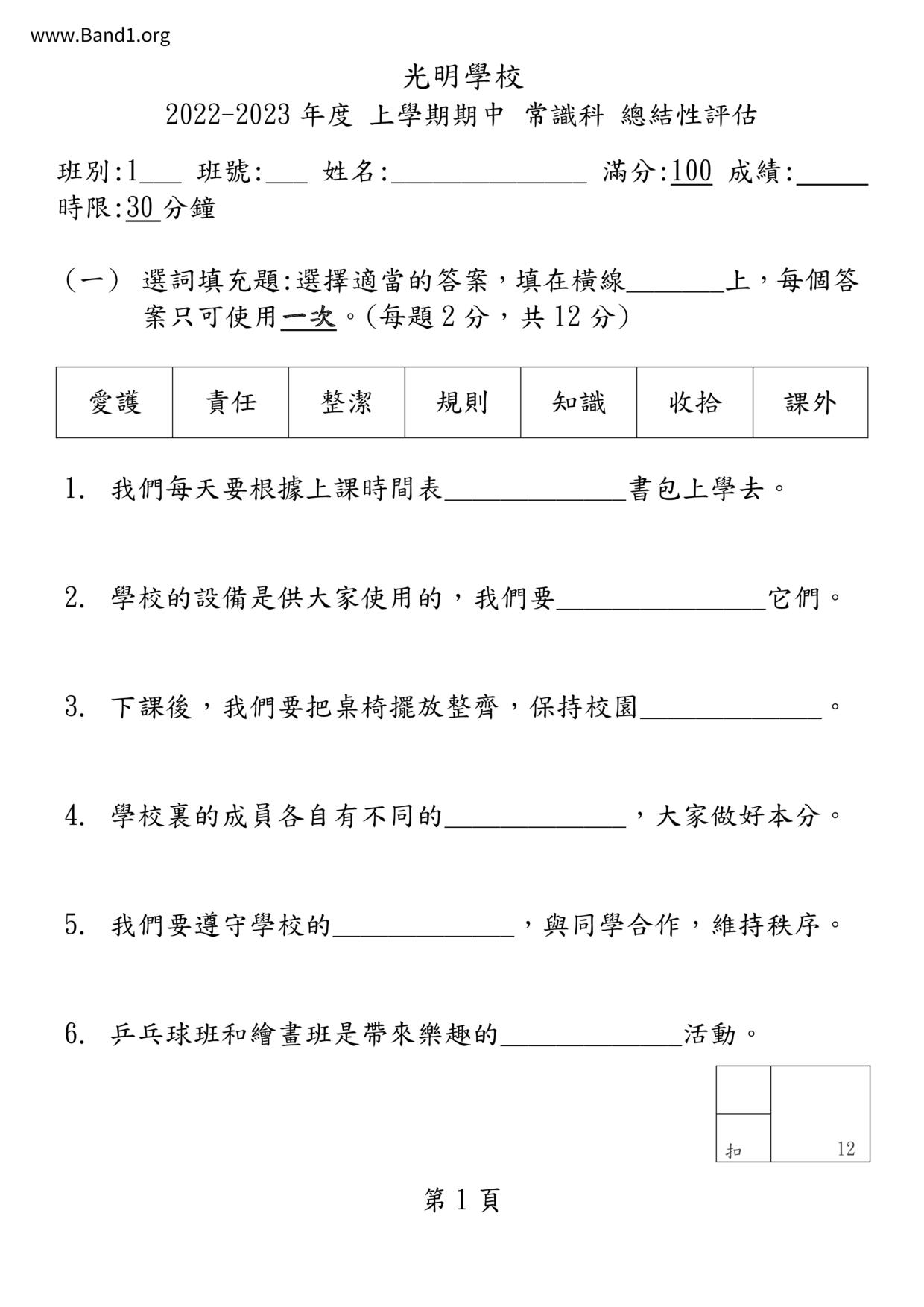 小一 中文 保良局西區婦女福利會馮李佩瑤小學