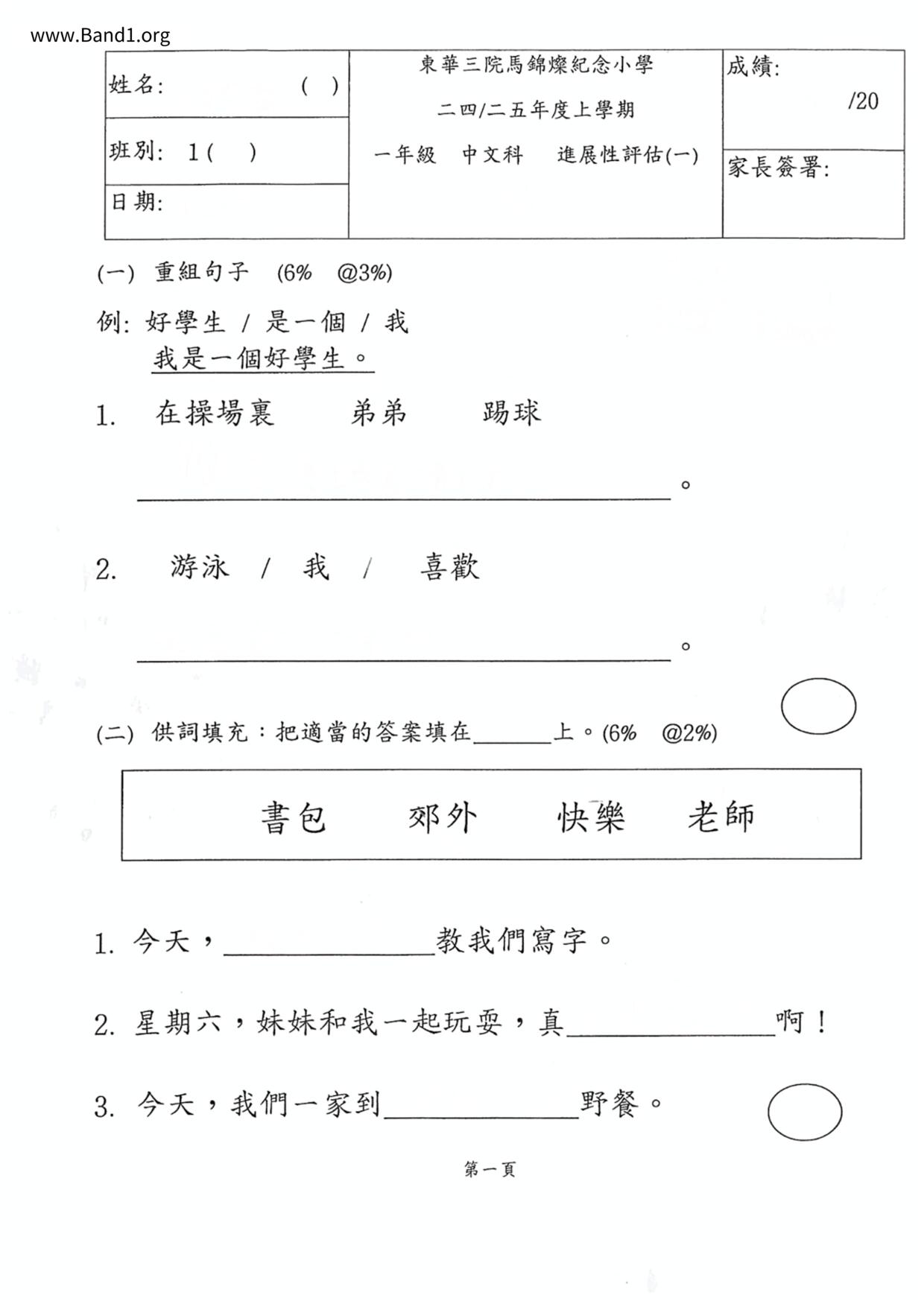 小一 中文 聖保祿學校(小學部)