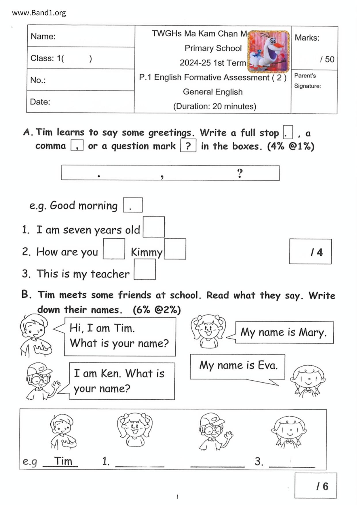 香港 小一 各科 (HK P1) 試卷 pdf