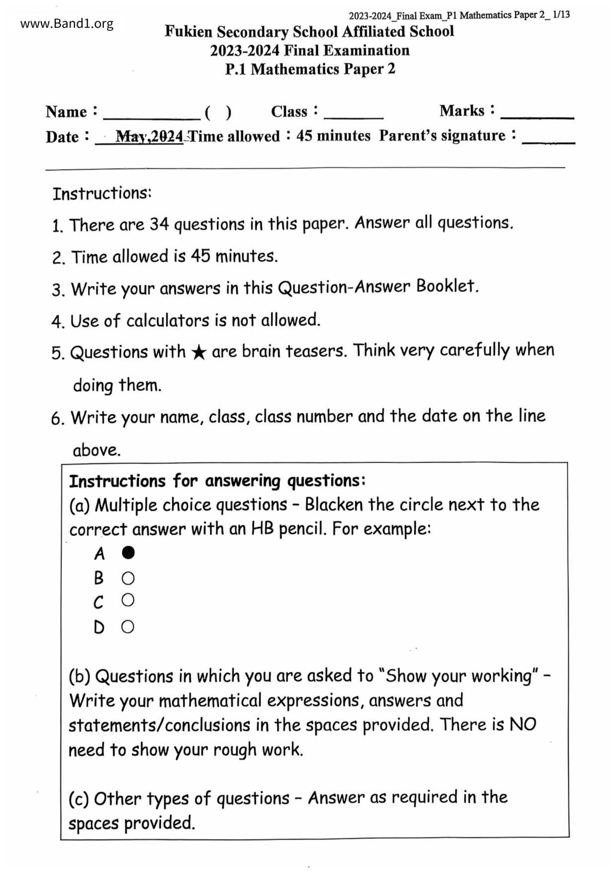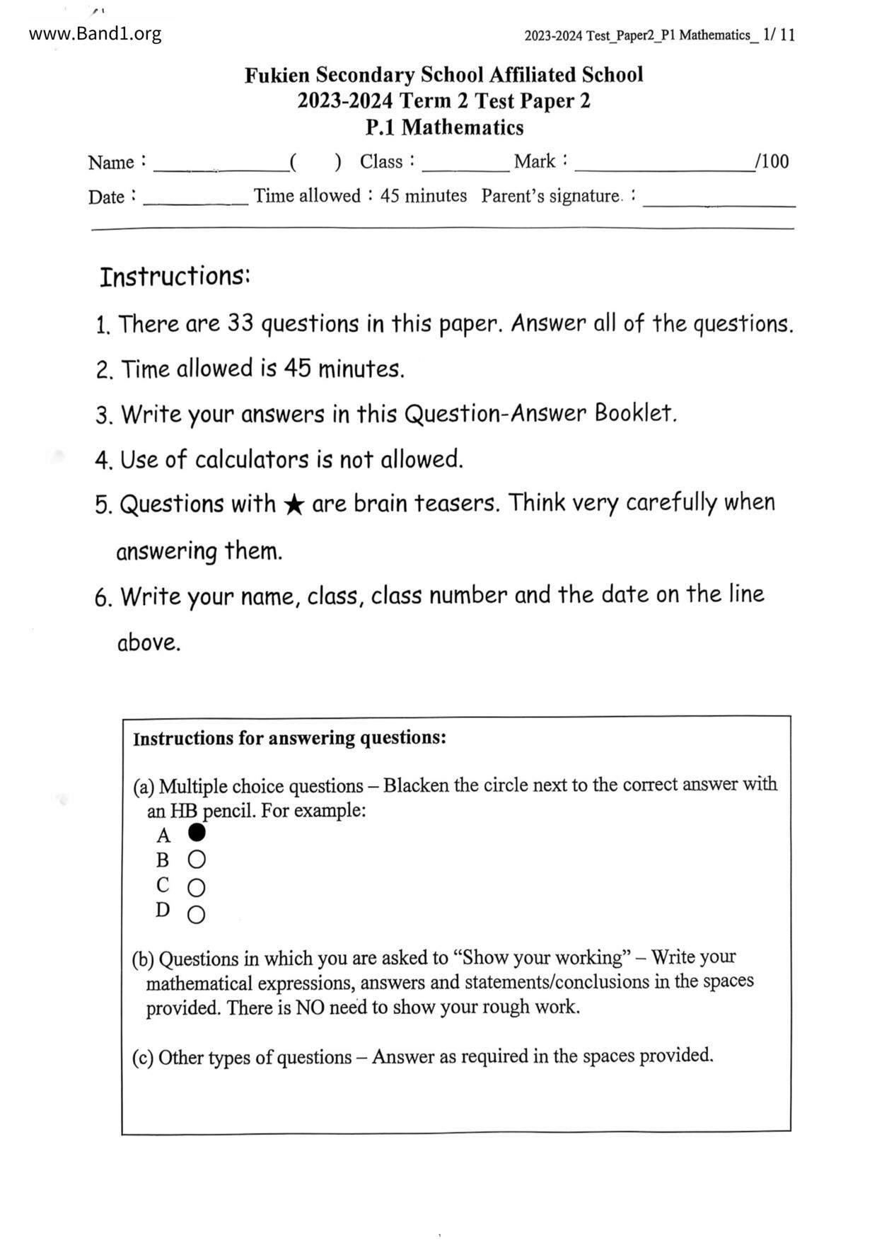 小一 數學 仁濟醫院靚次伯紀念中學