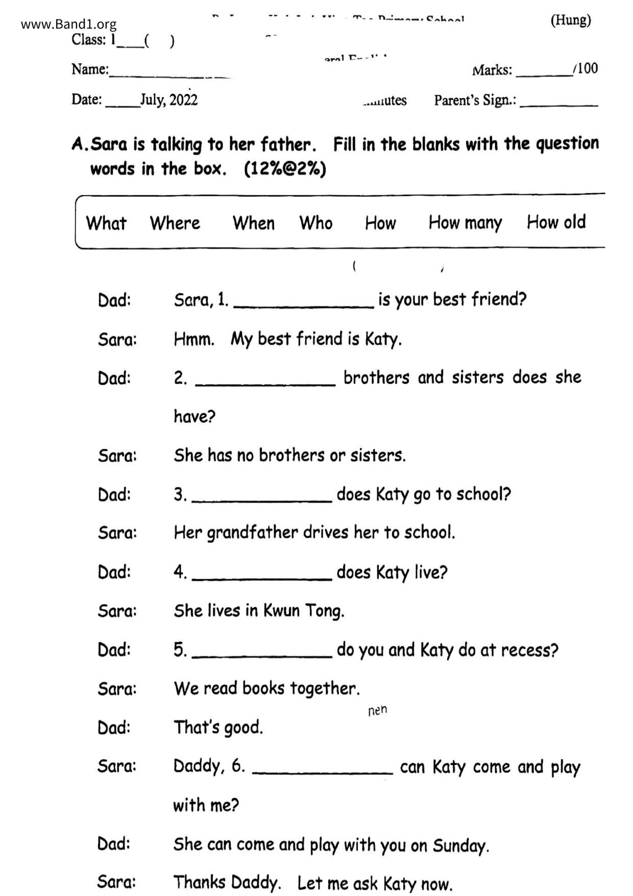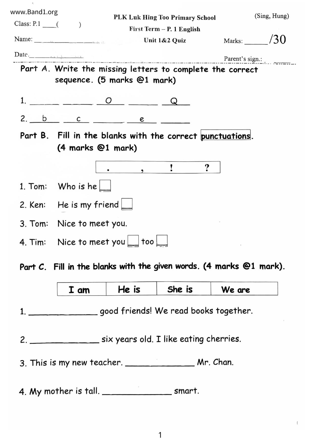小一 英文 筲箕灣崇真學校