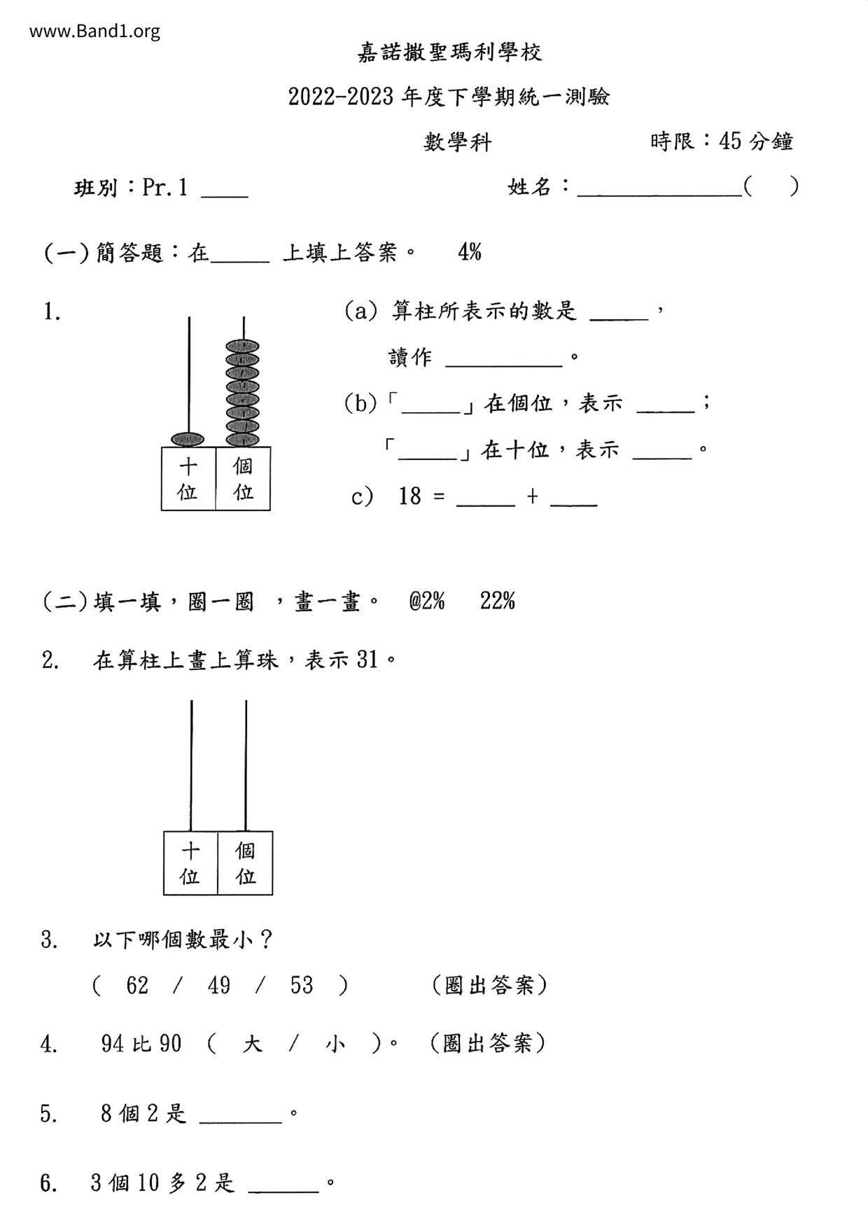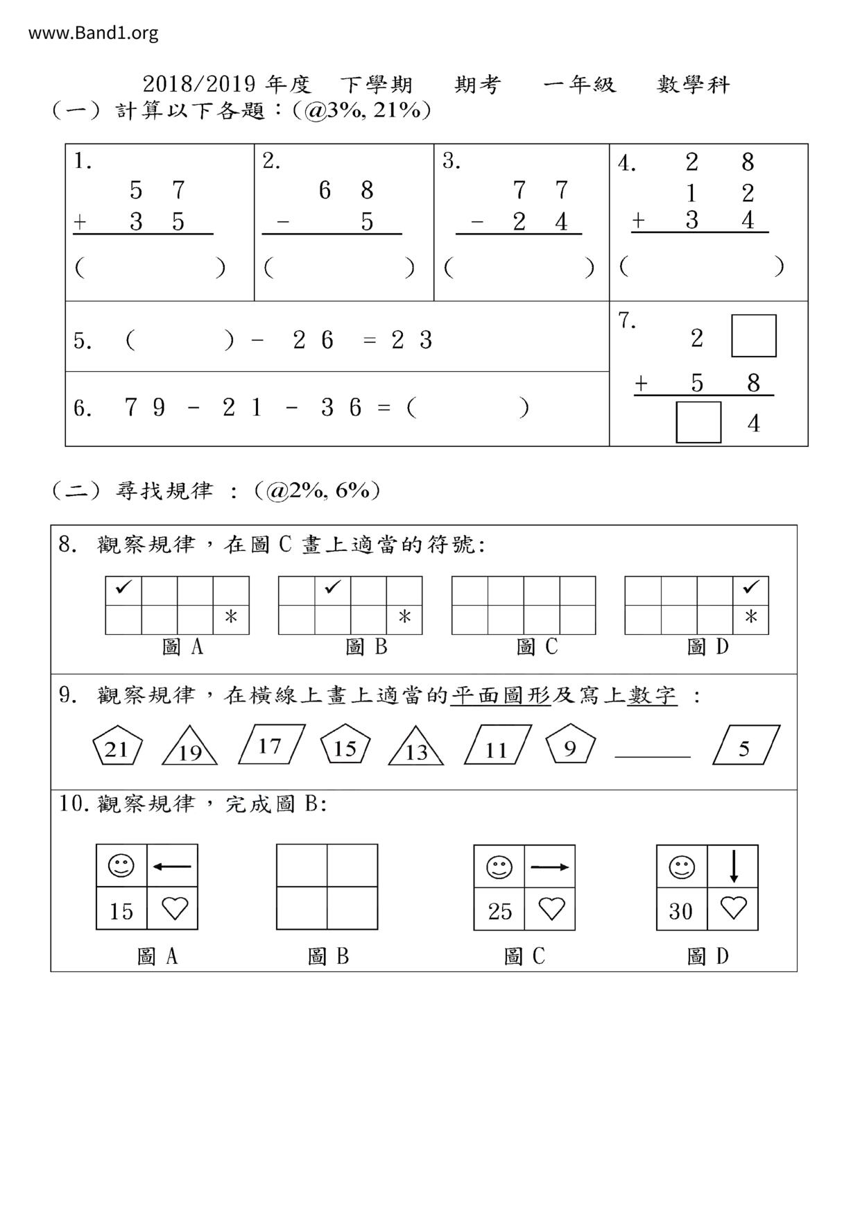 小一 數學 (P1 Maths)