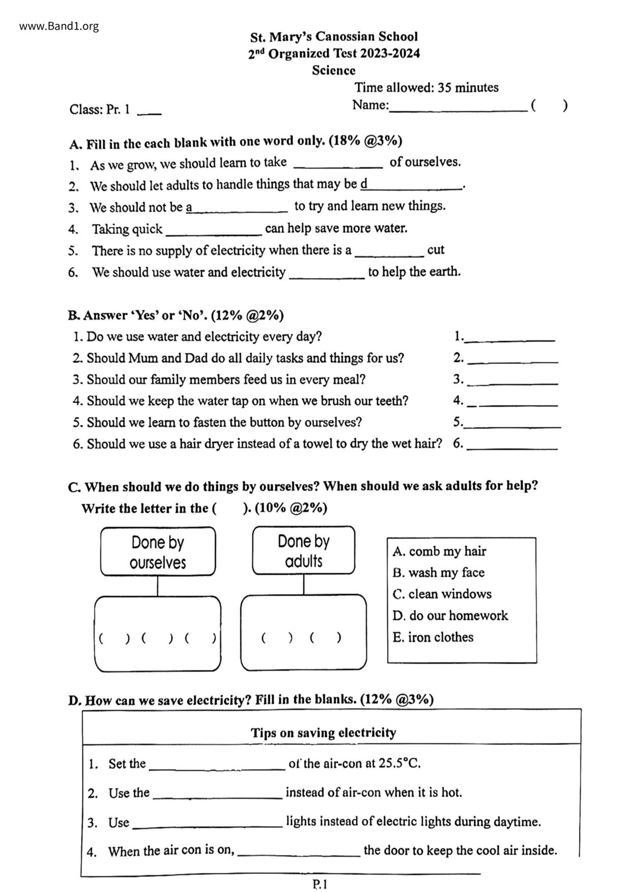 小一 常識 聖若瑟英文小學