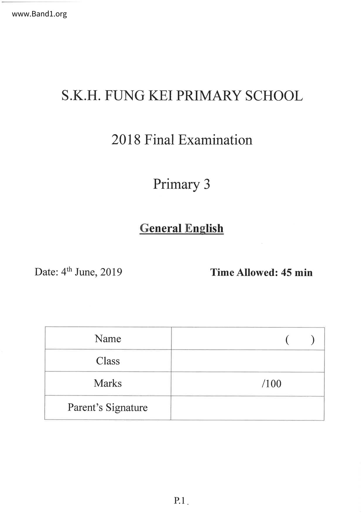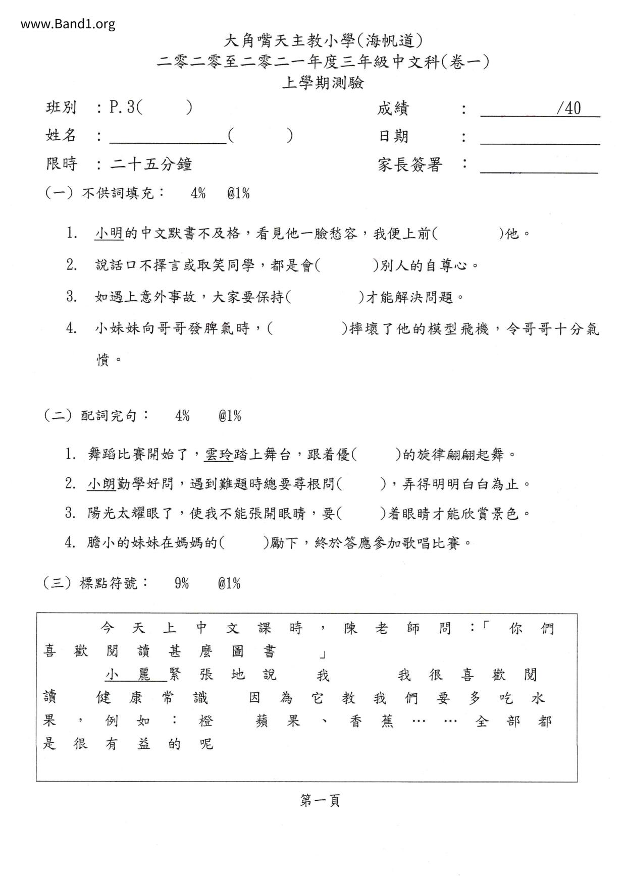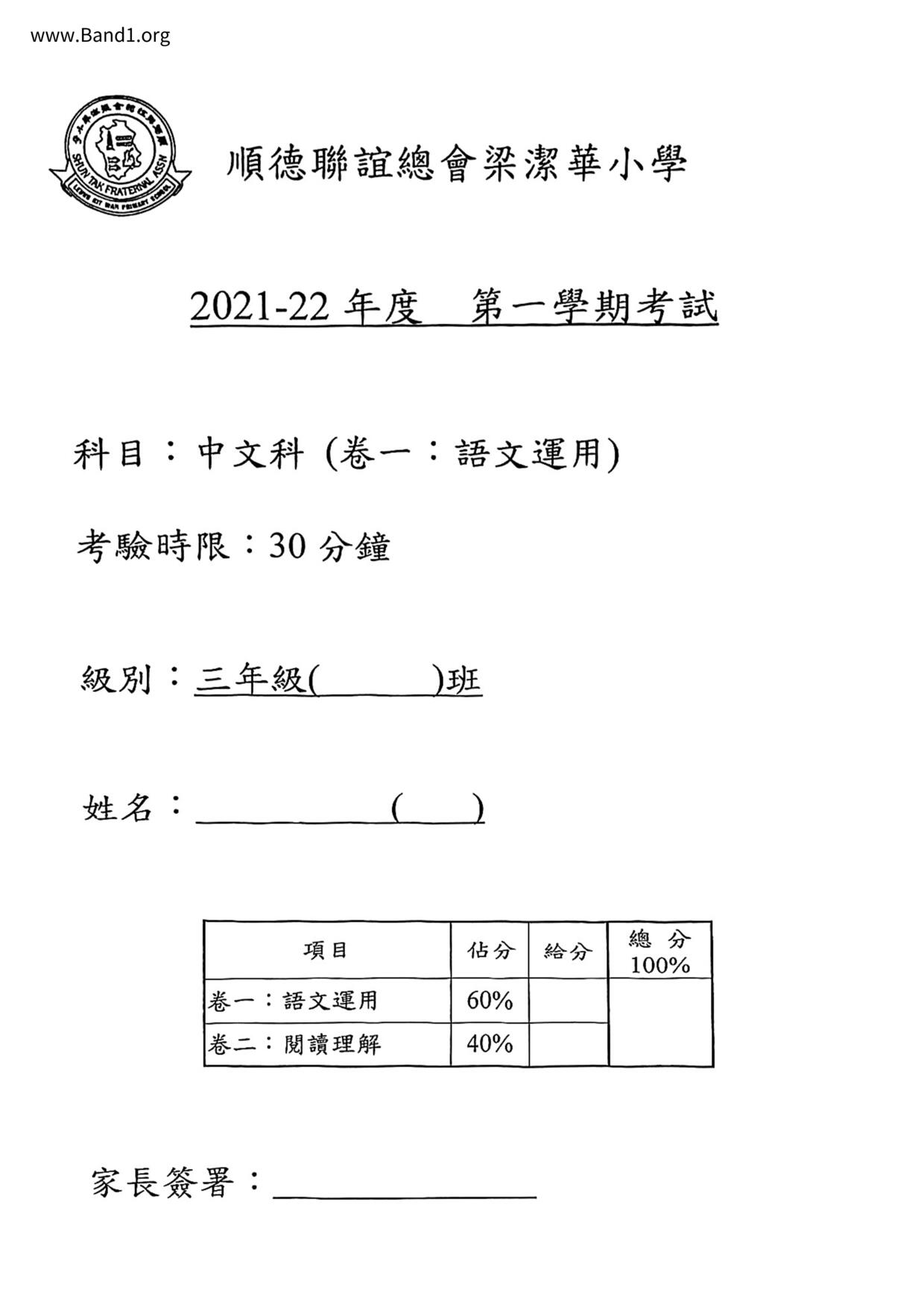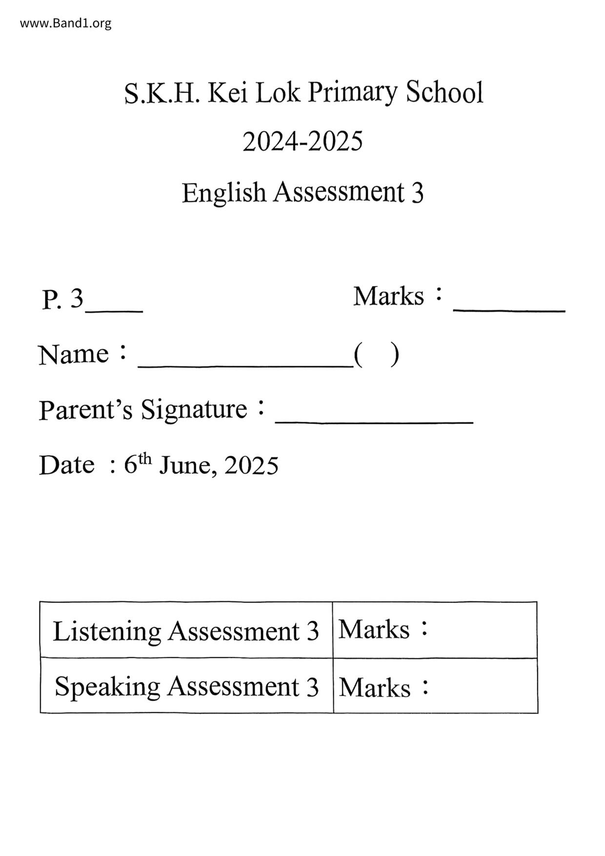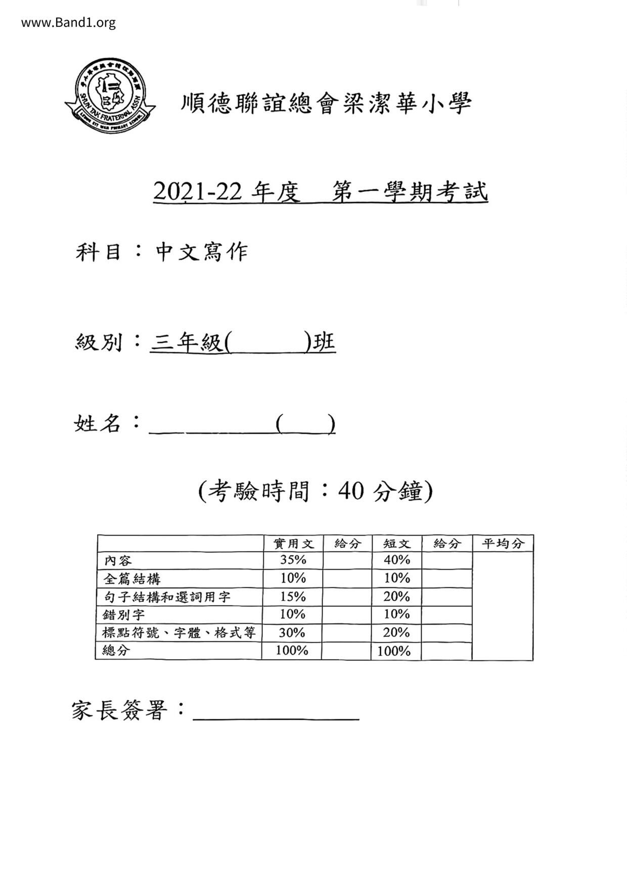 小三 英文 中華基督教會灣仔堂基道小學(九龍城)