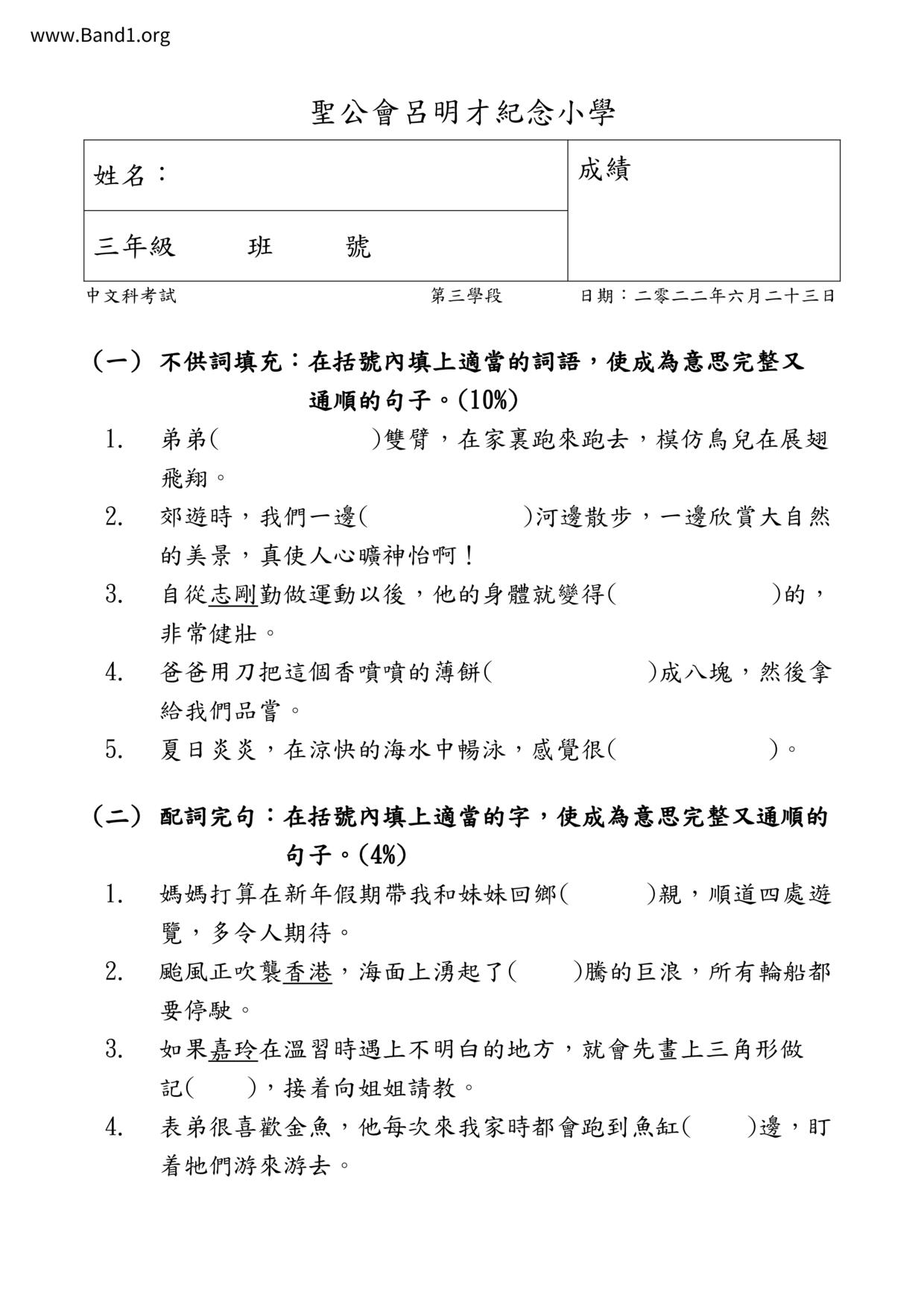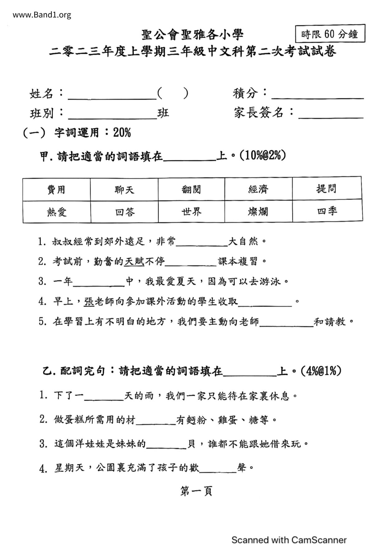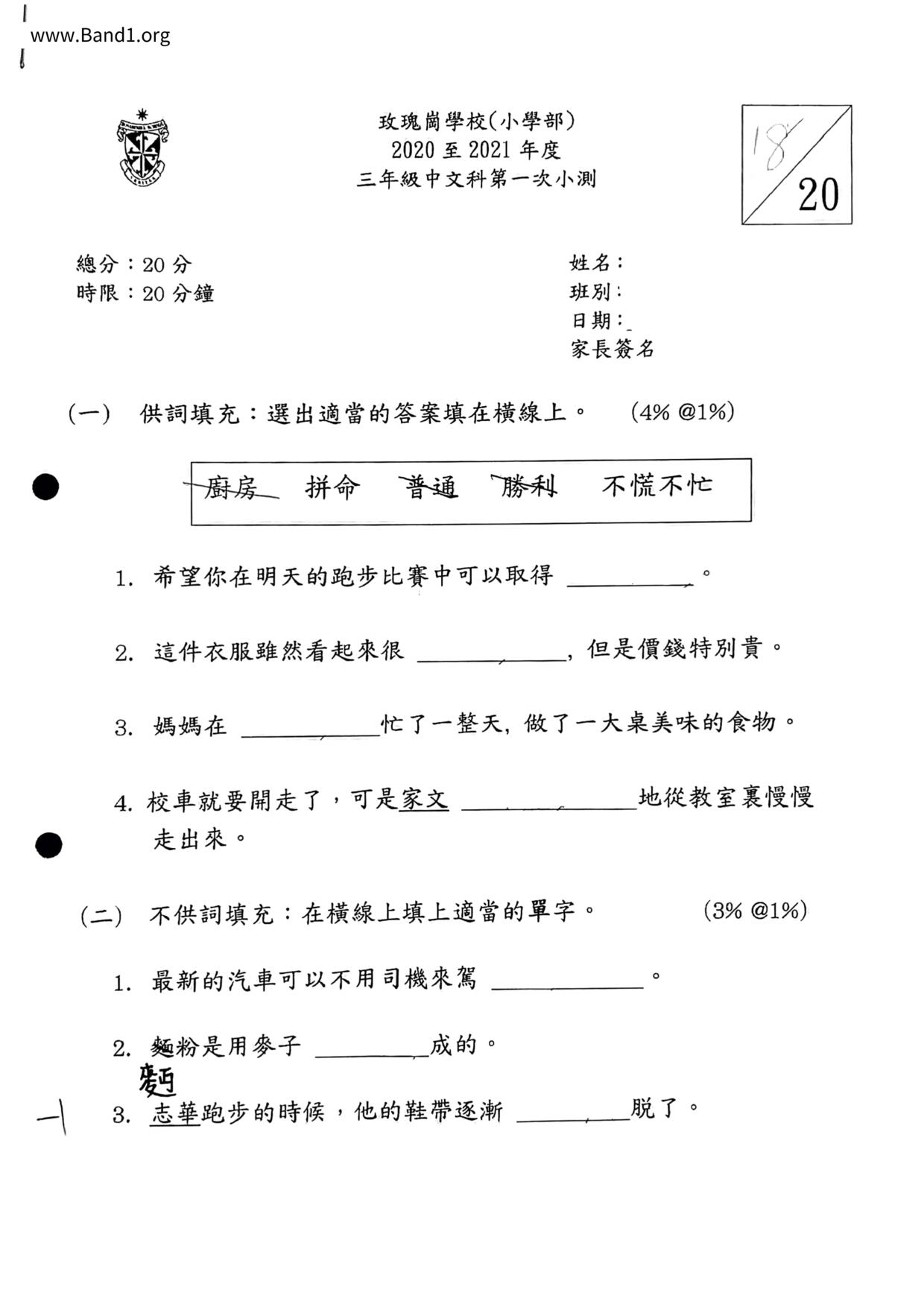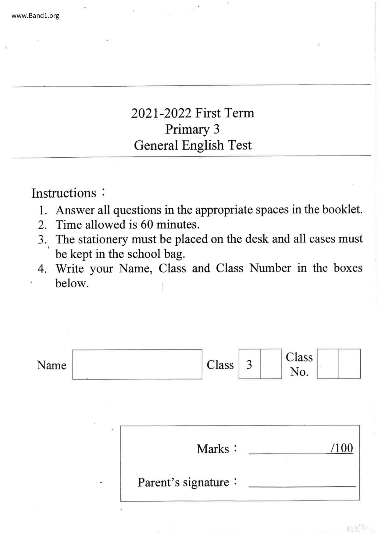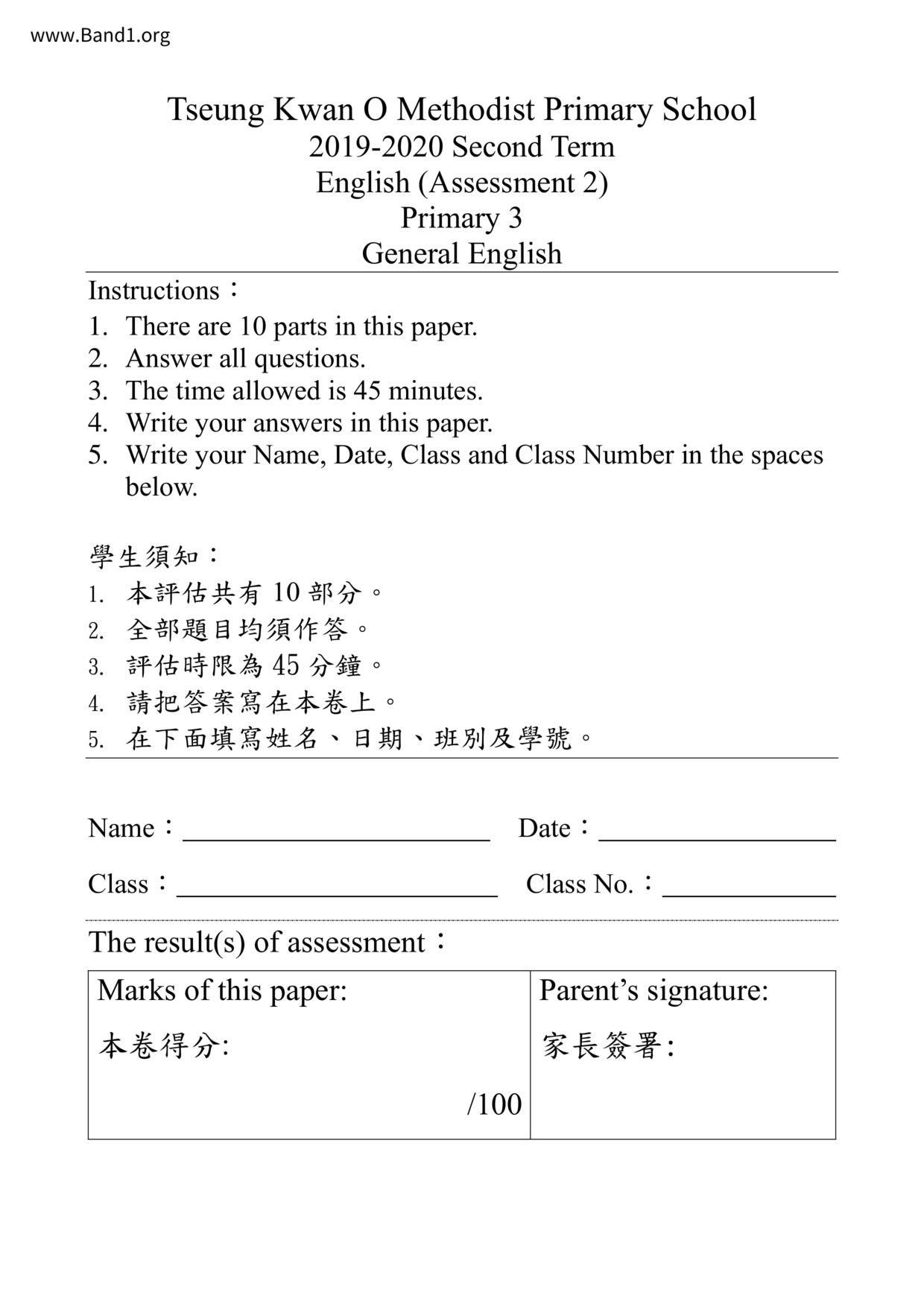 小三 英文 中華基督教會灣仔堂基道小學(九龍城)