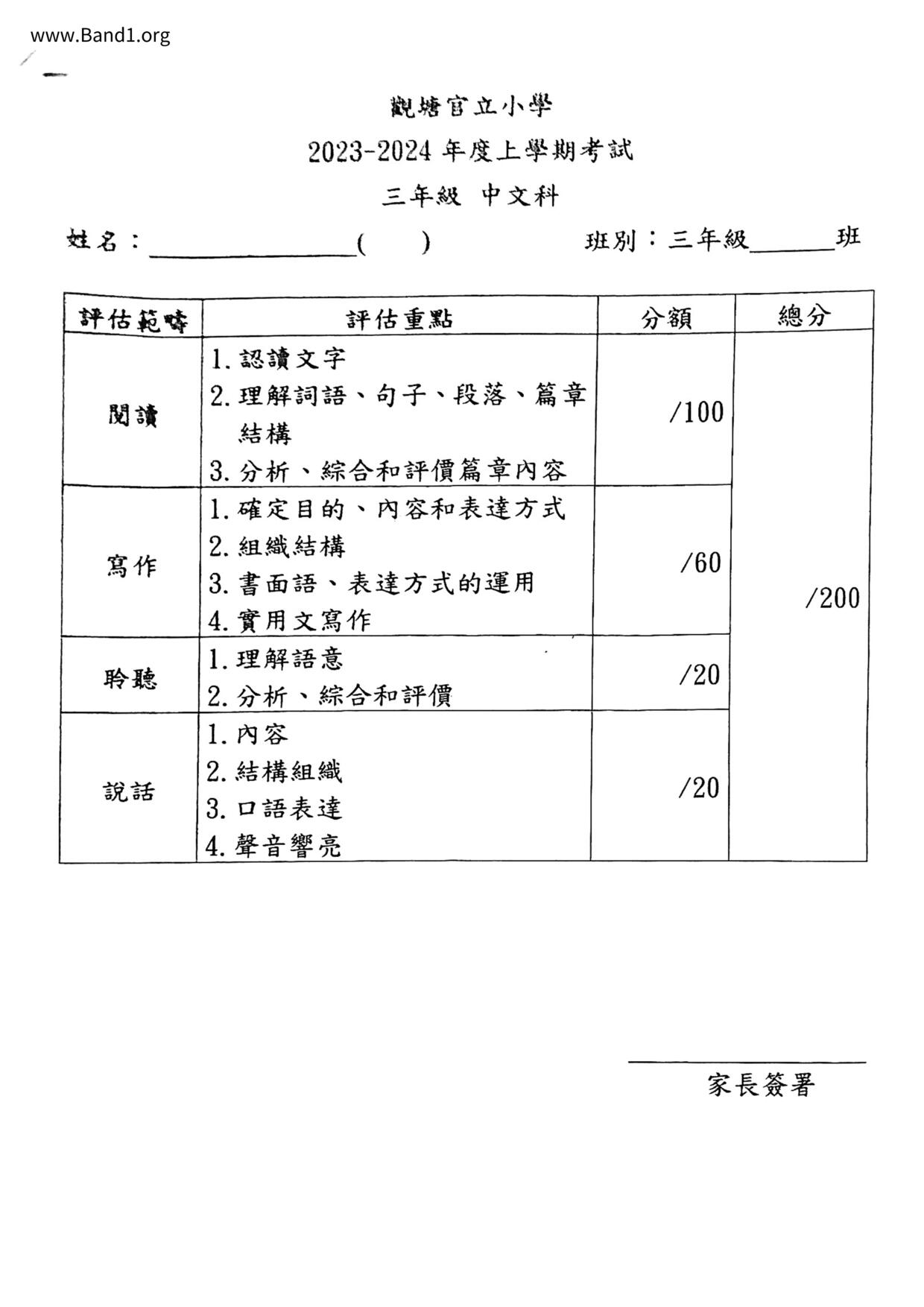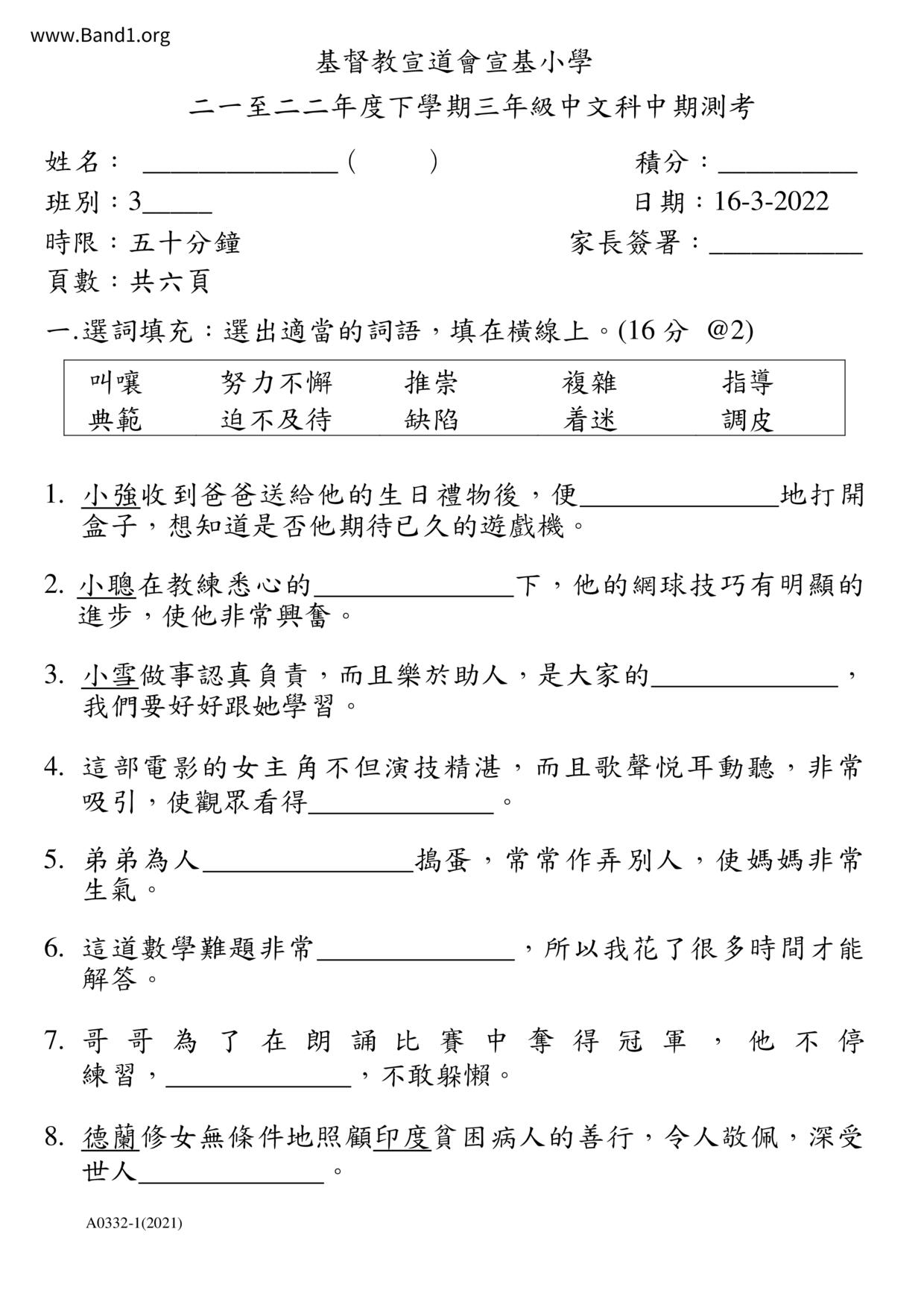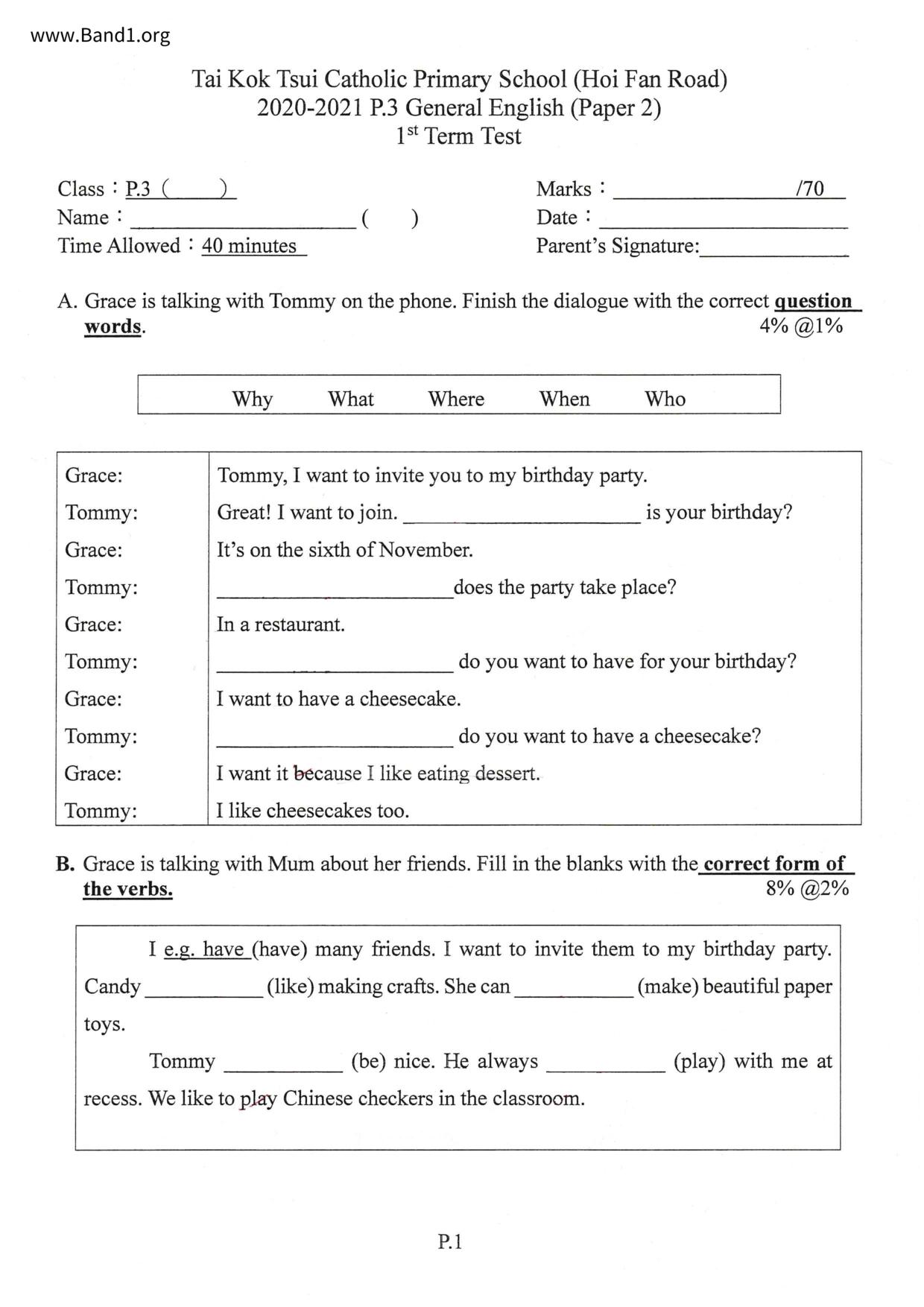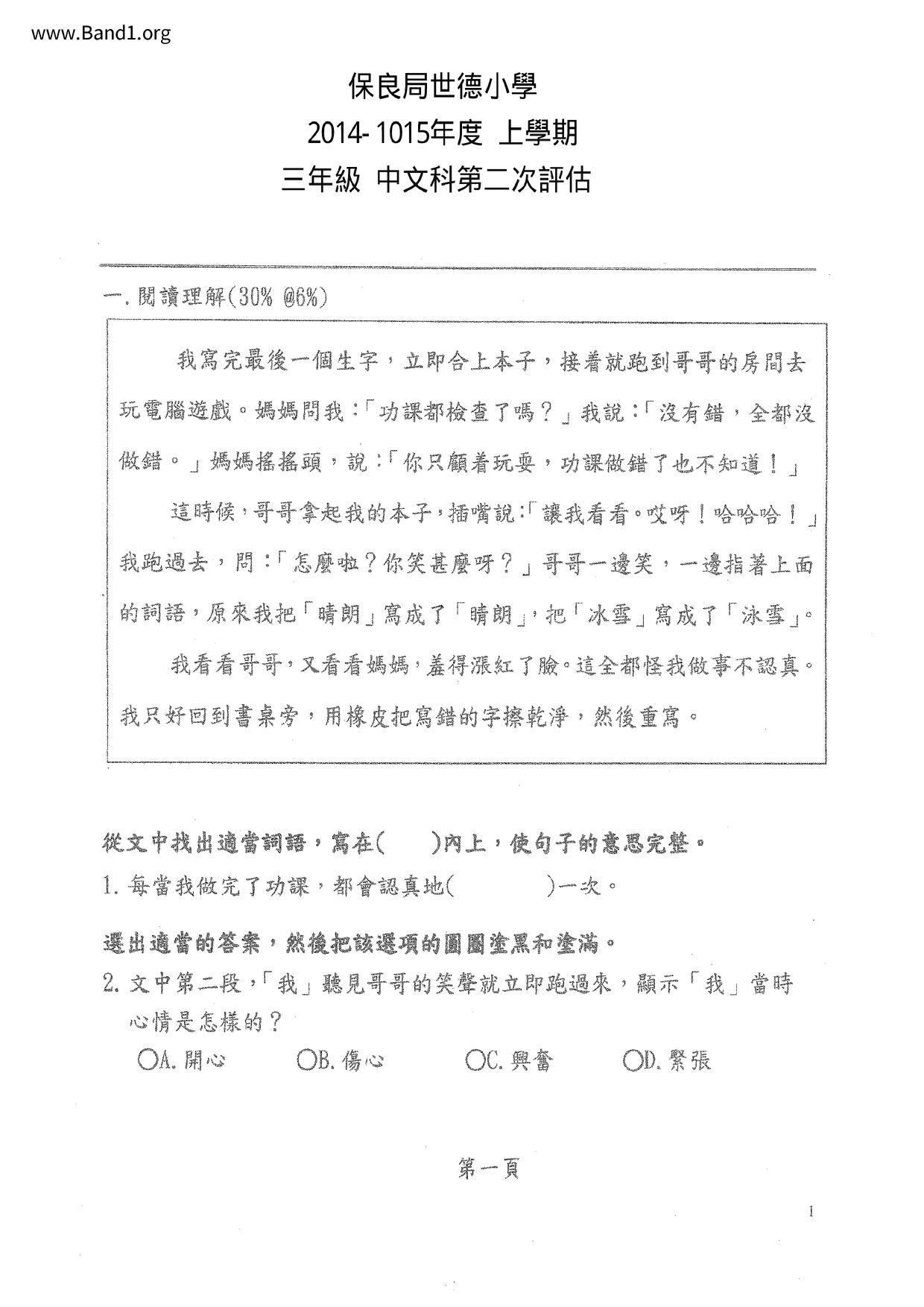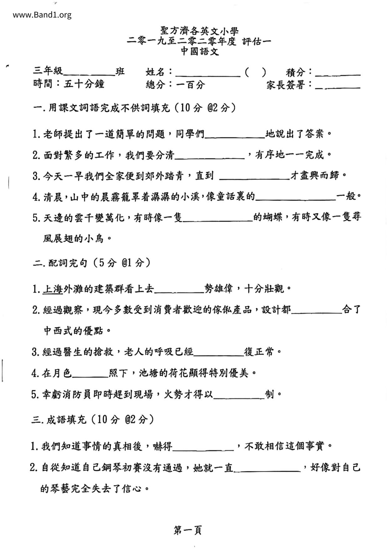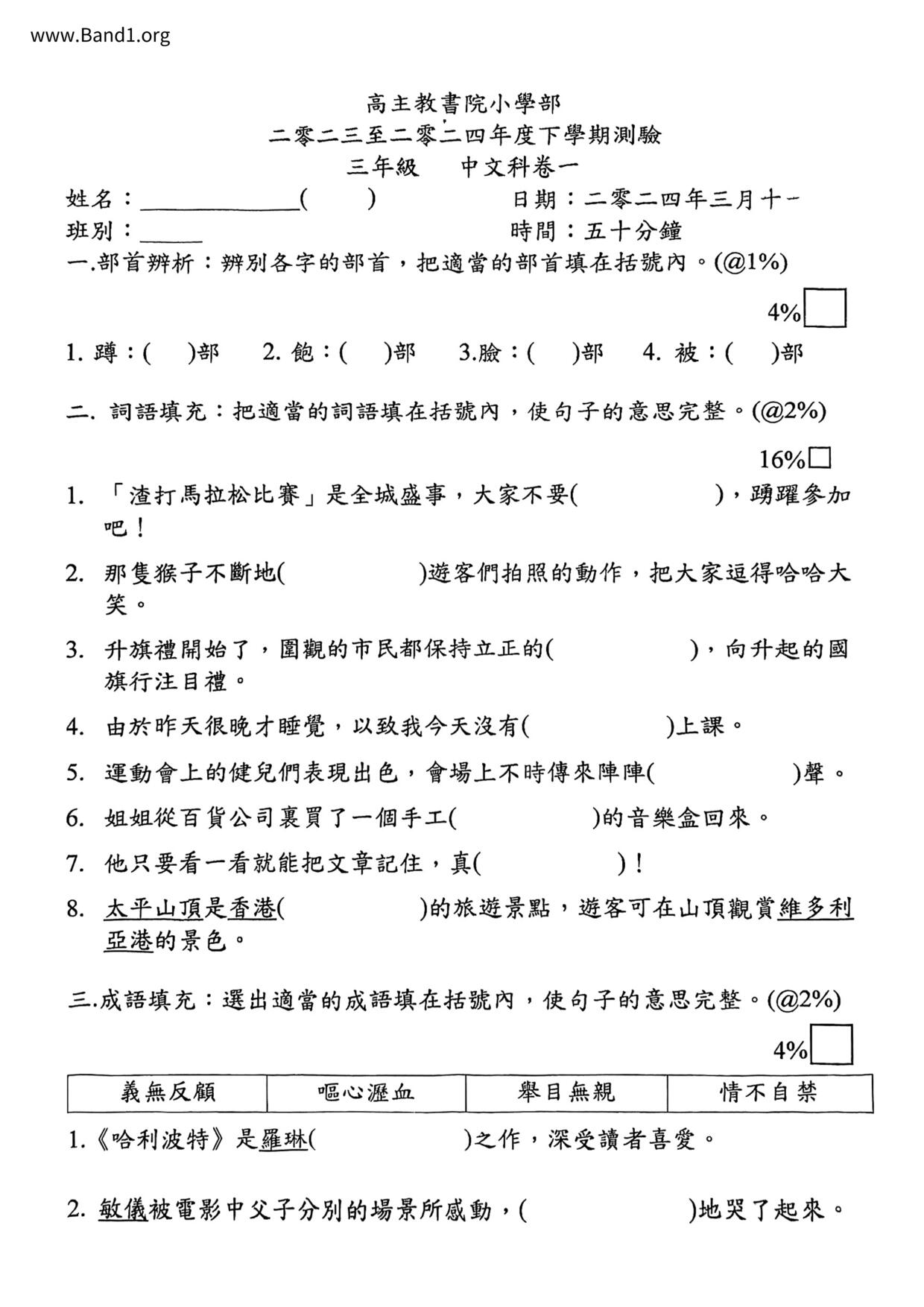小三 英文 中華基督教會灣仔堂基道小學(九龍城)