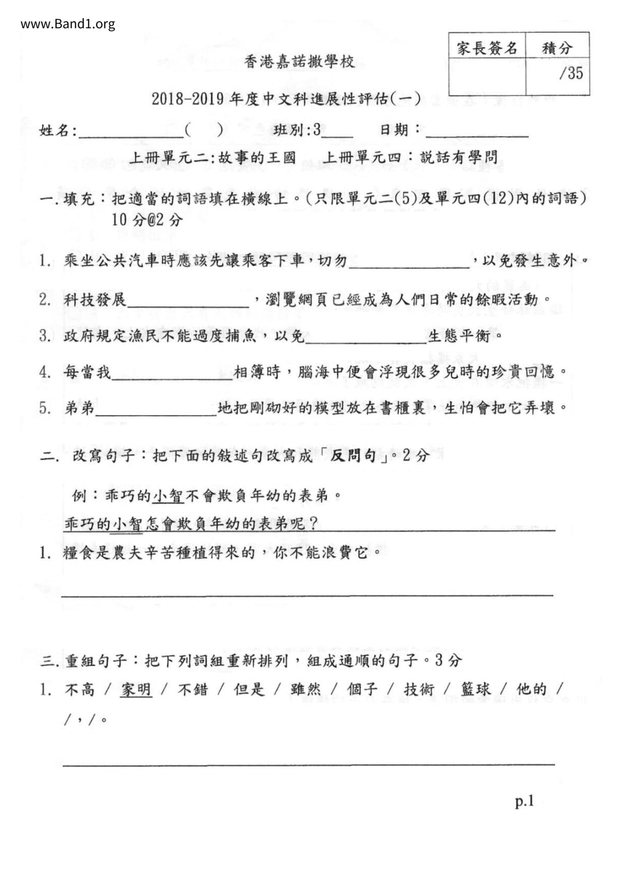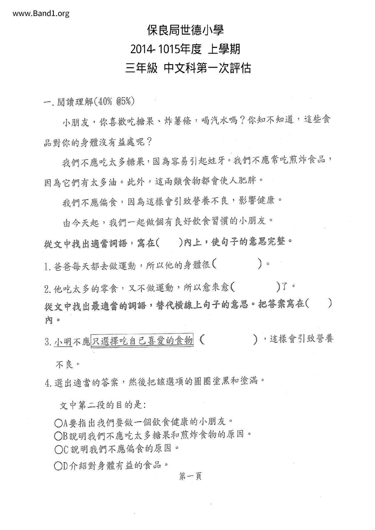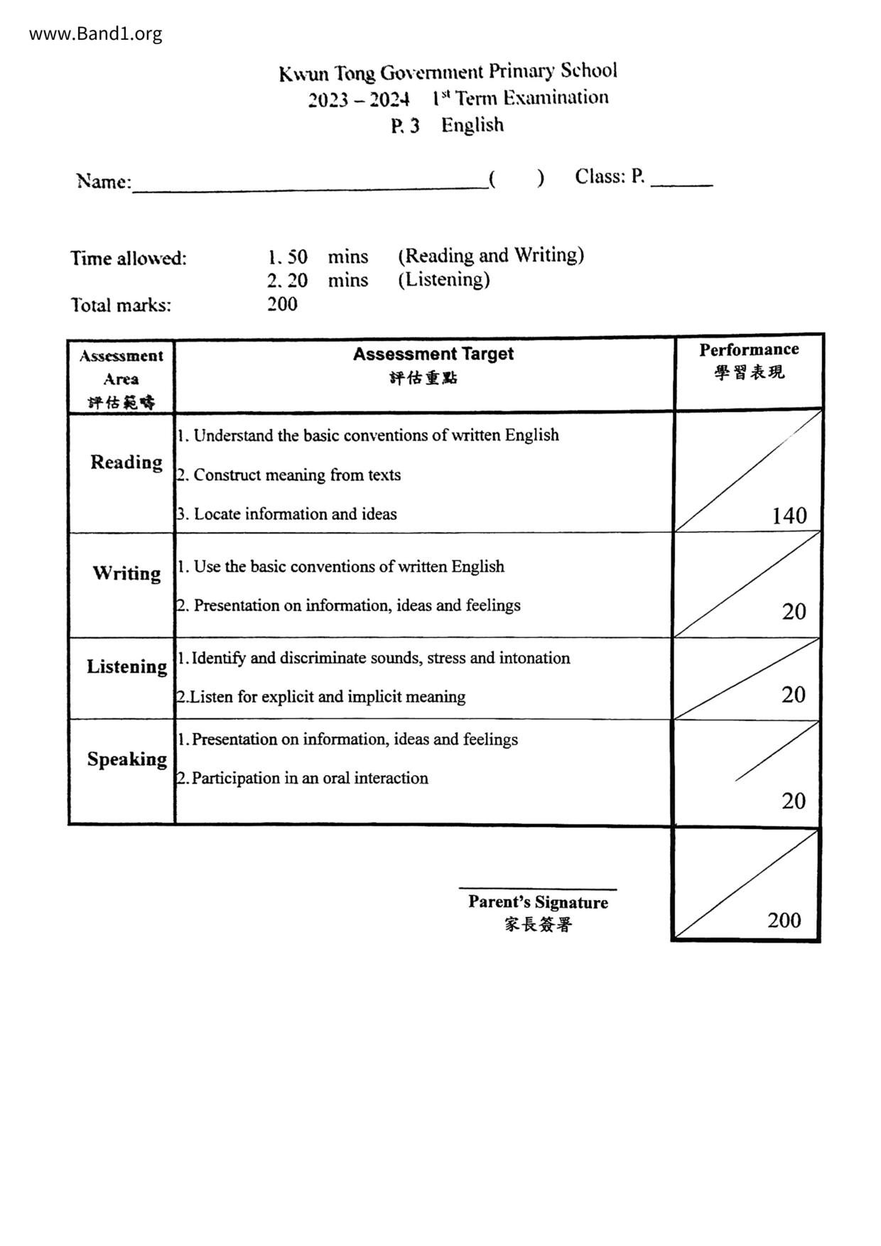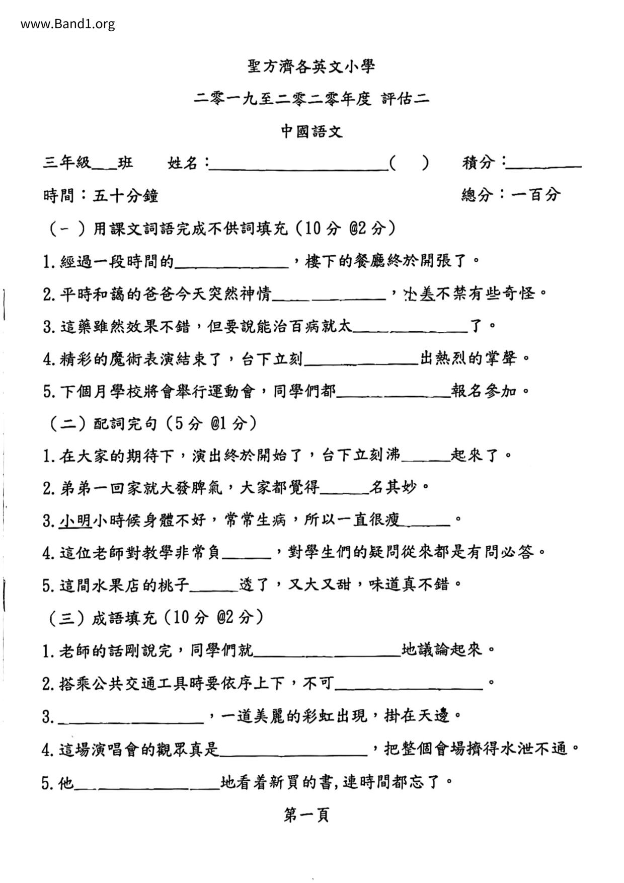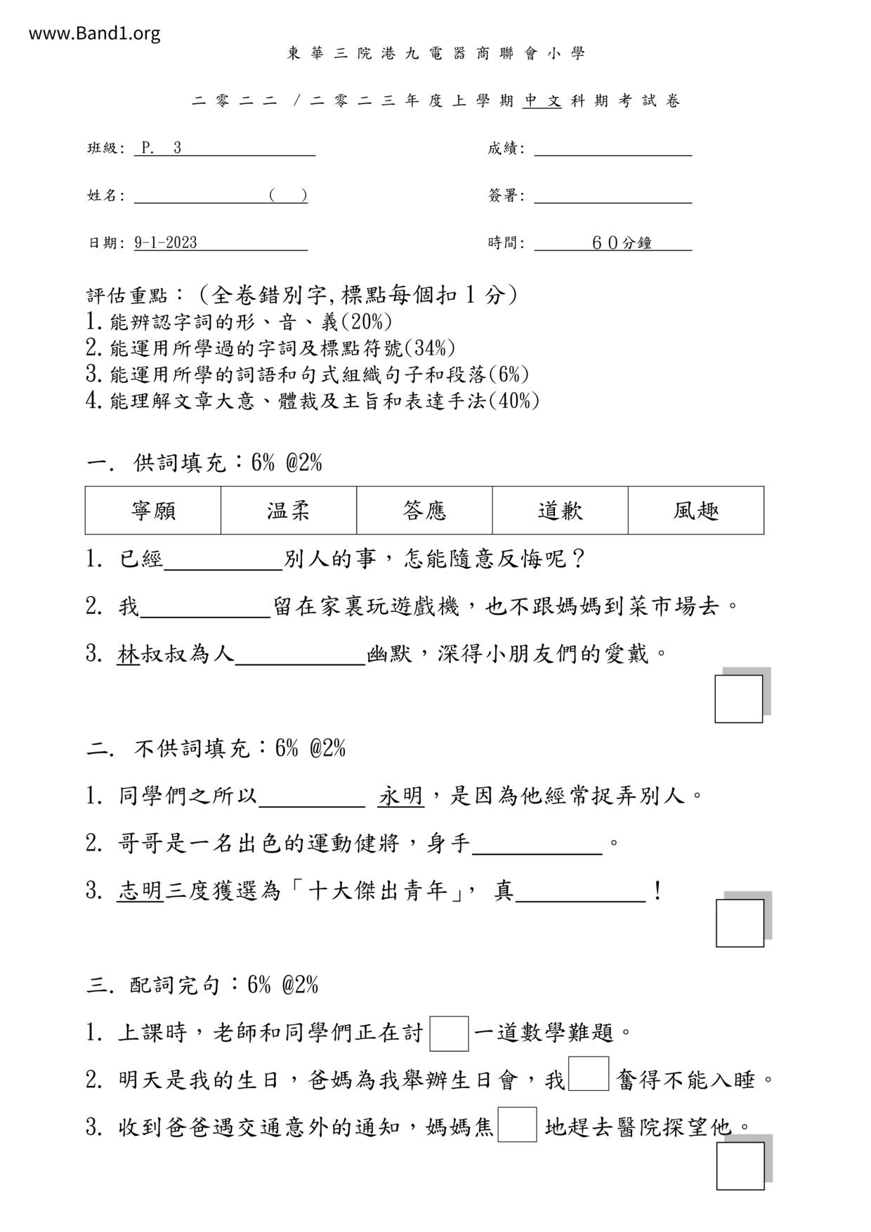 小三 英文 中華基督教會灣仔堂基道小學(九龍城)