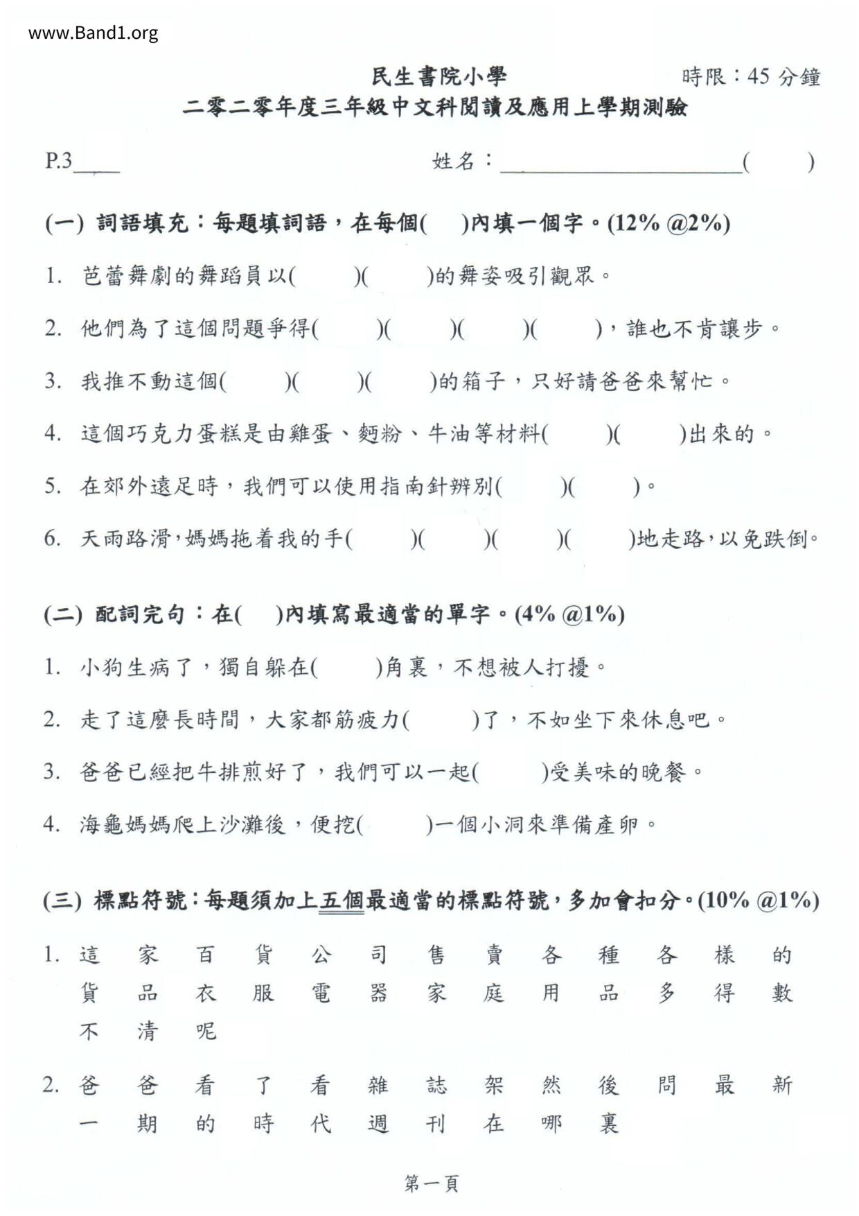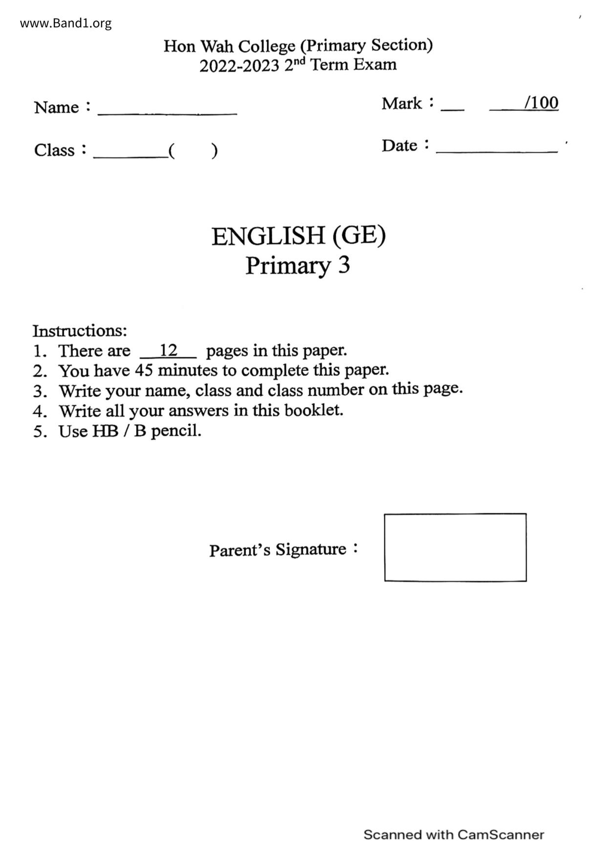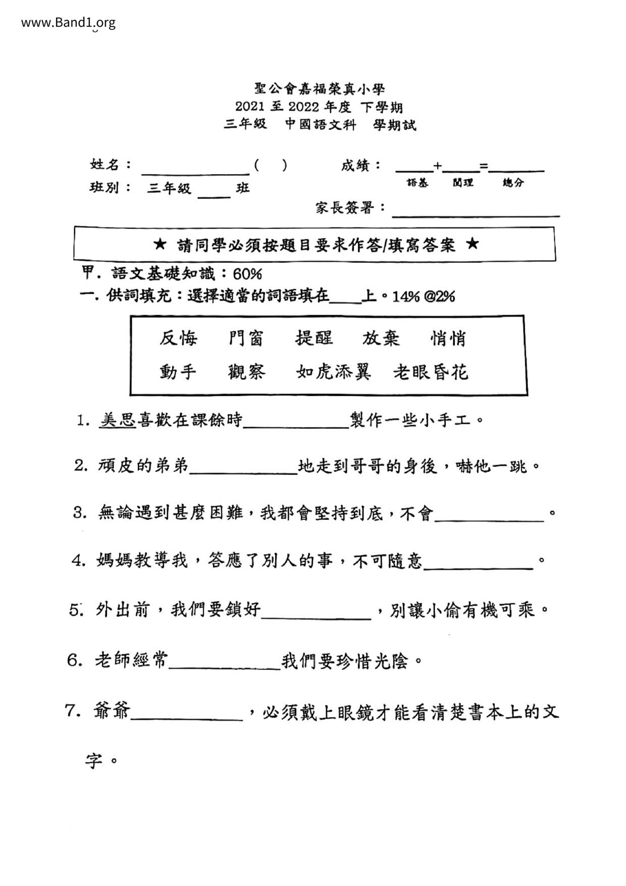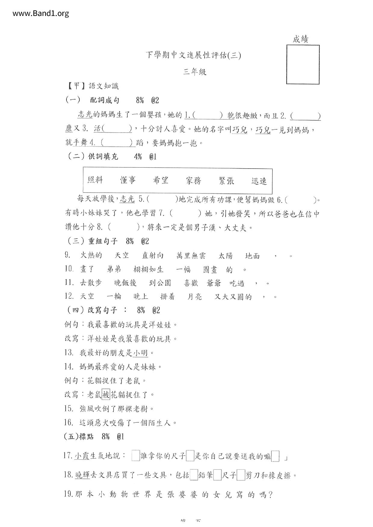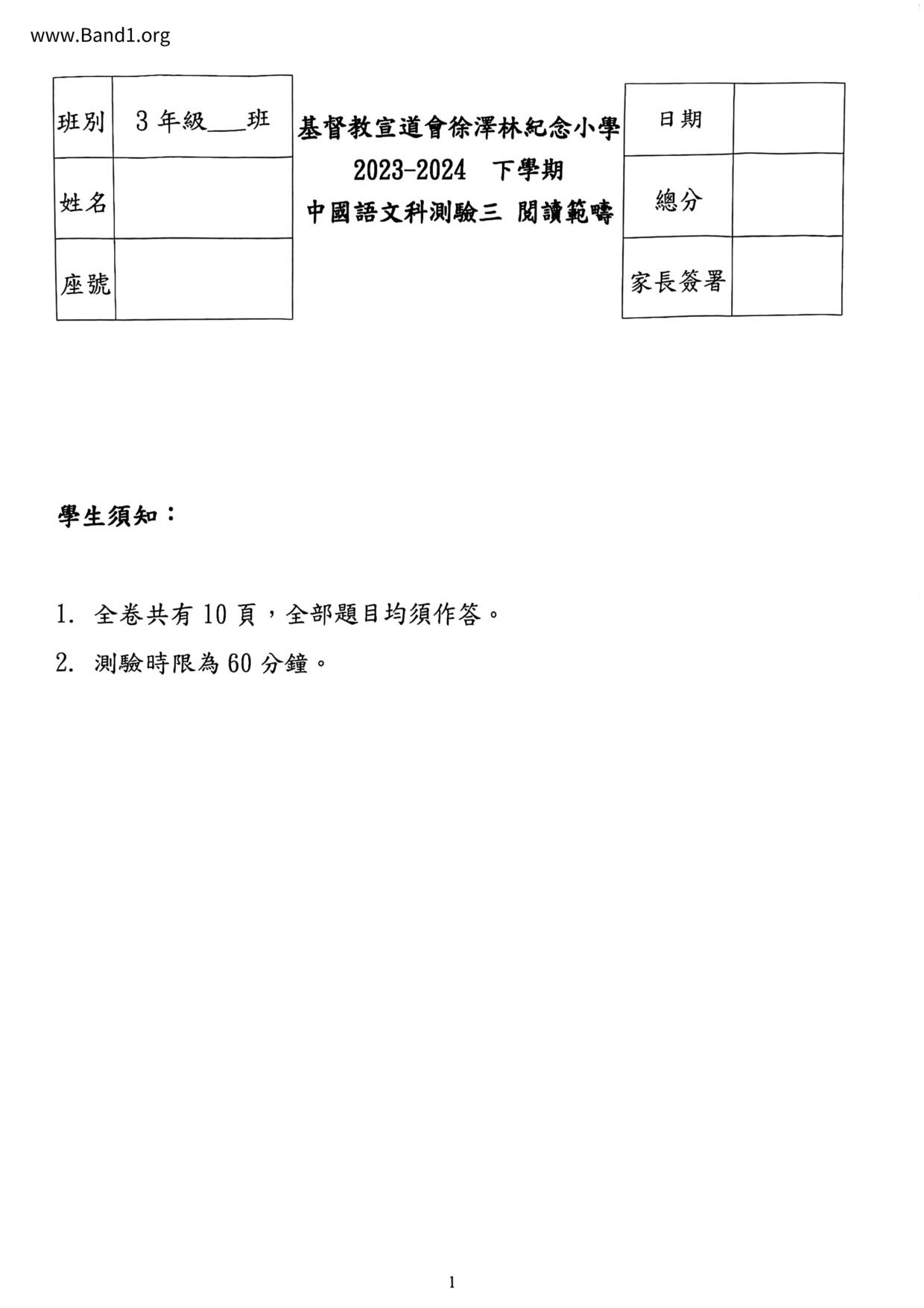 小三 英文 中華基督教會灣仔堂基道小學(九龍城)