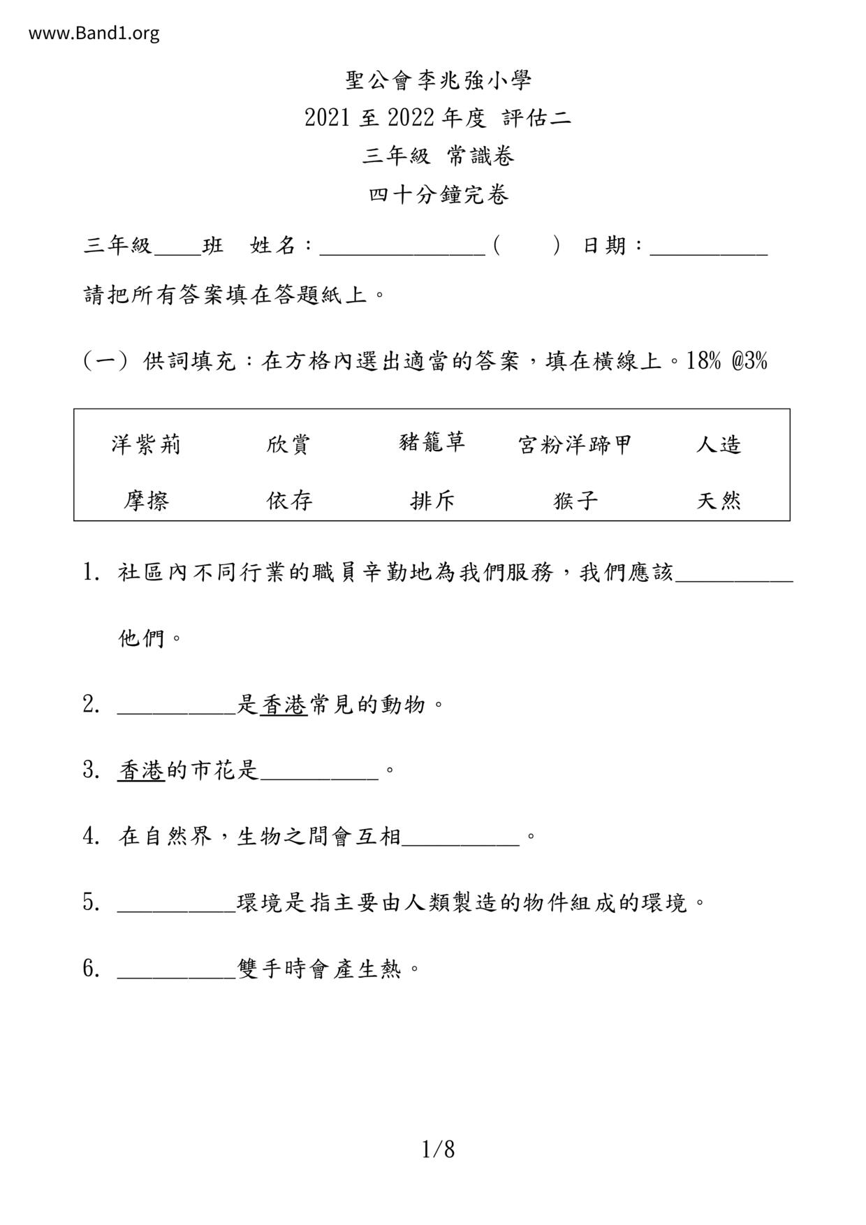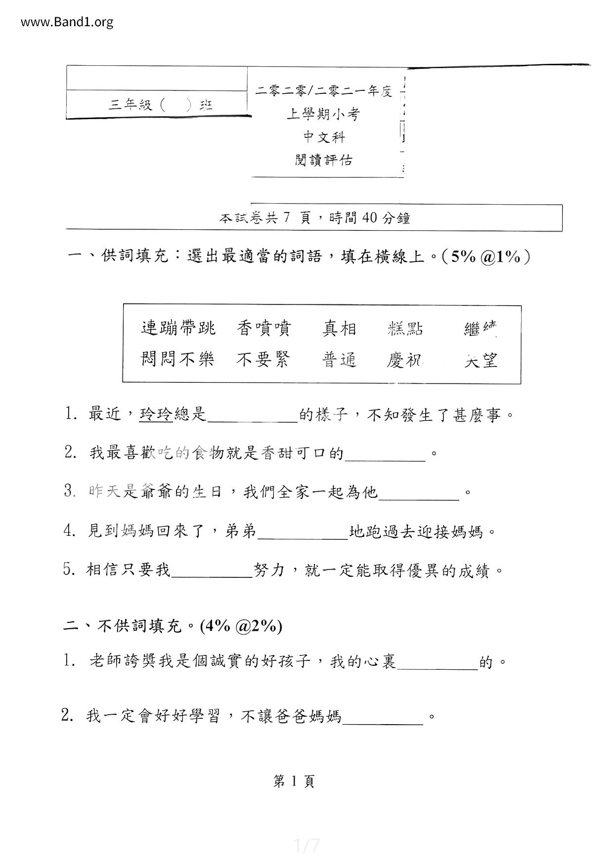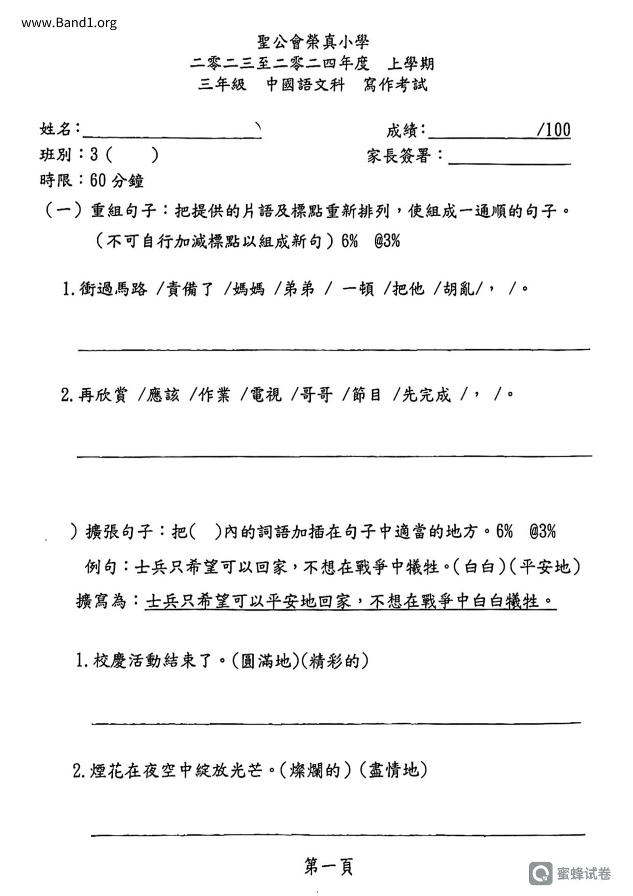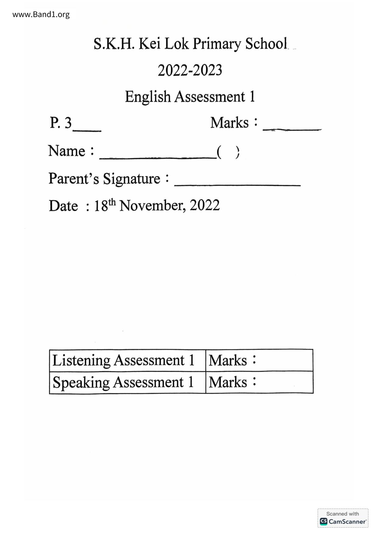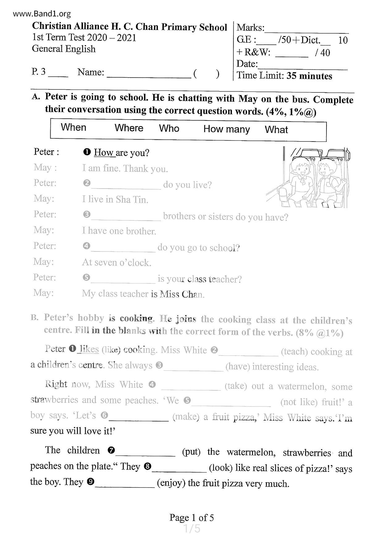 小三 英文 中華基督教會灣仔堂基道小學(九龍城)