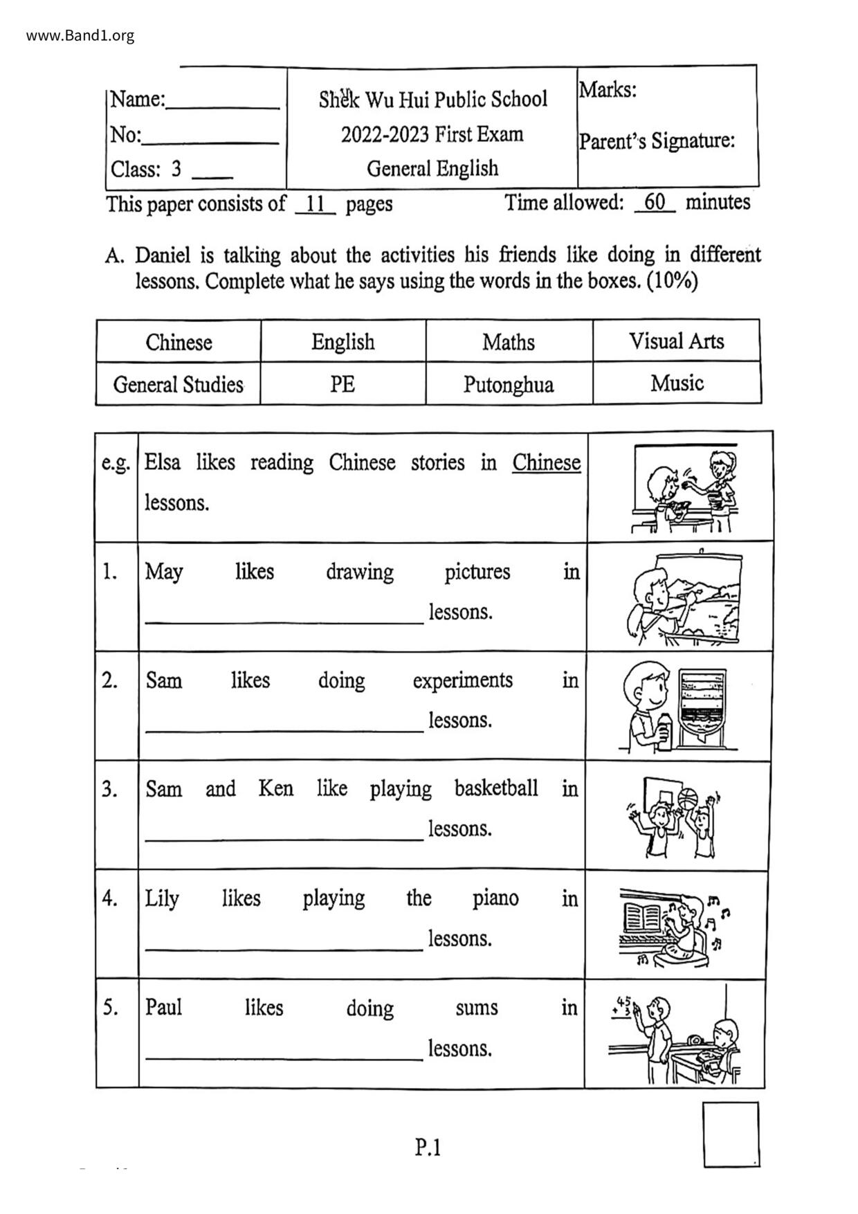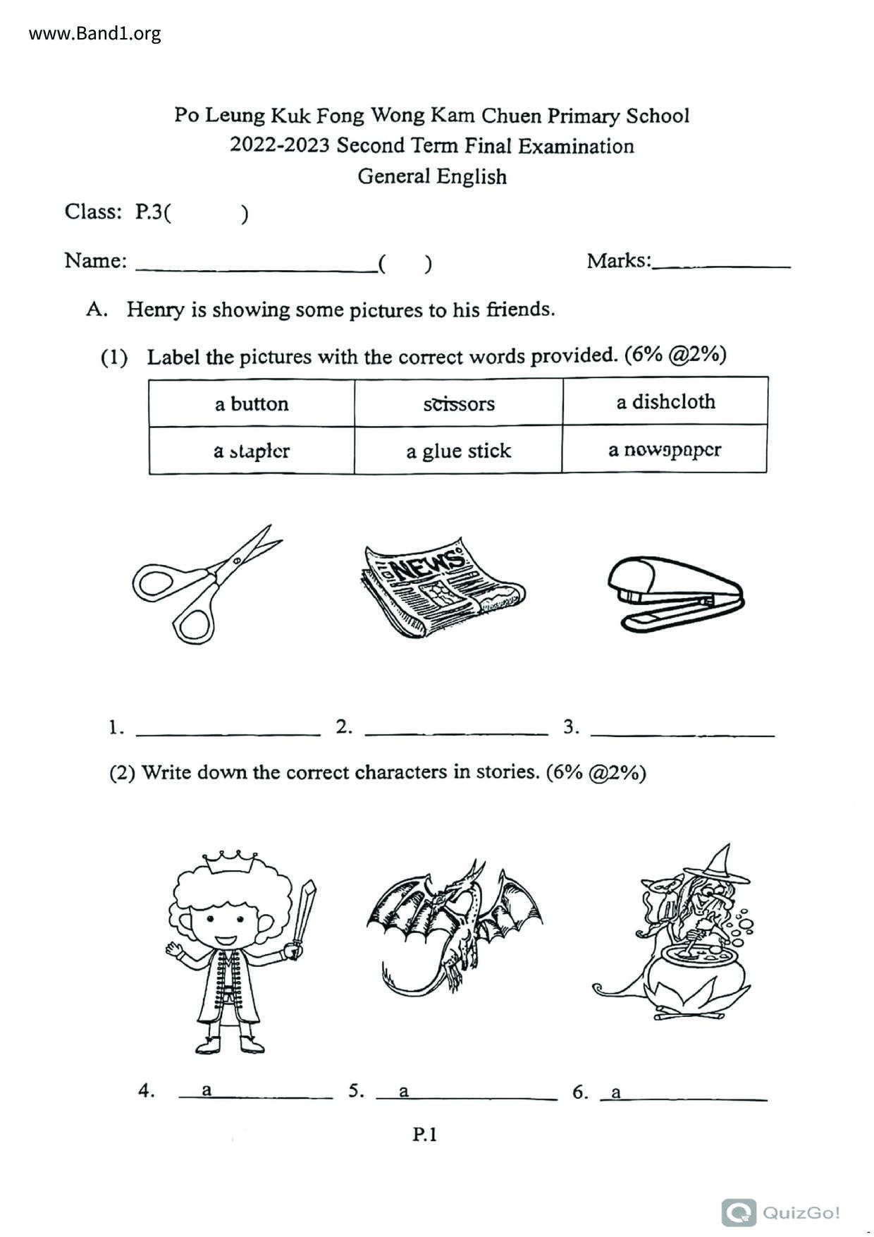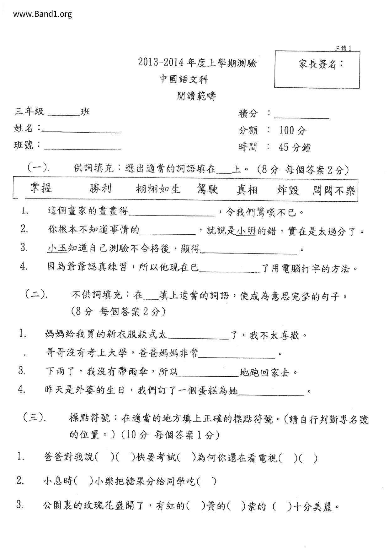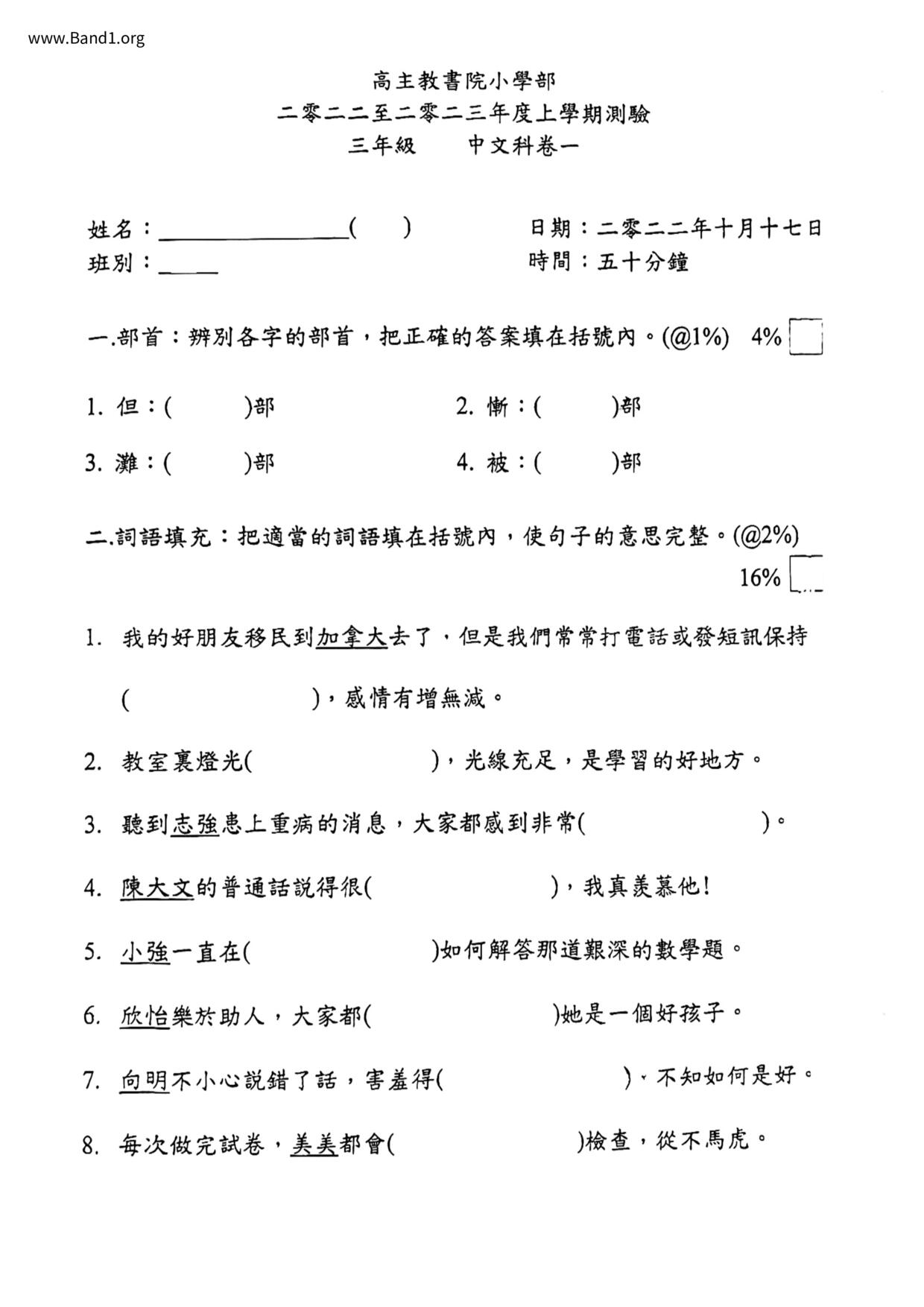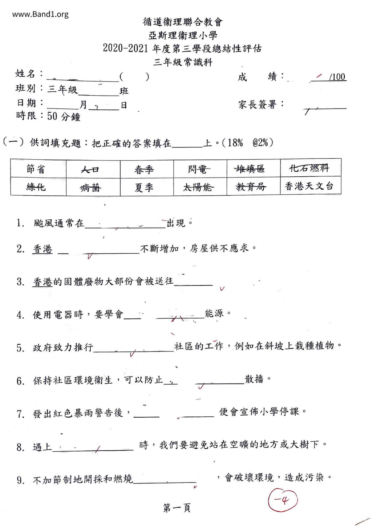 小三 英文 中華基督教會灣仔堂基道小學(九龍城)
