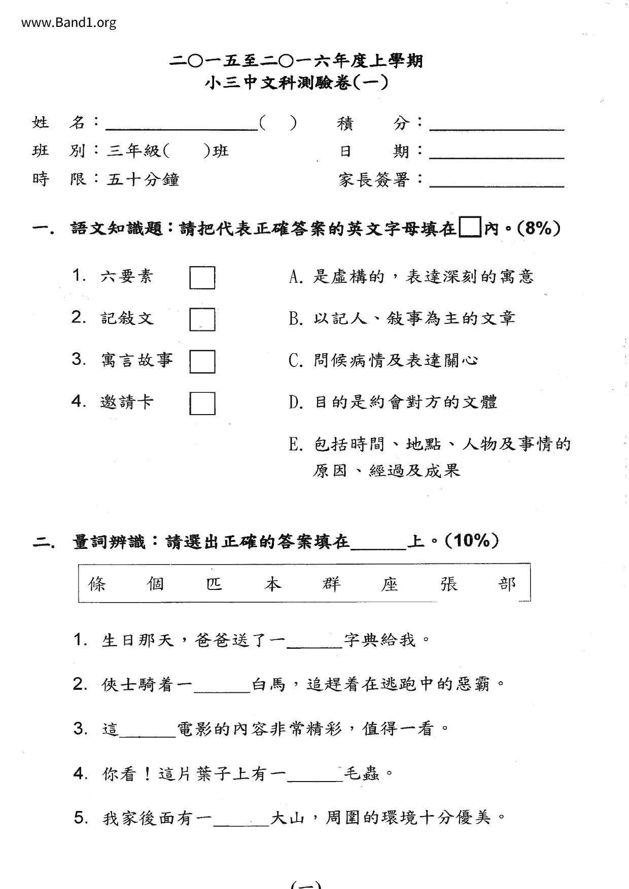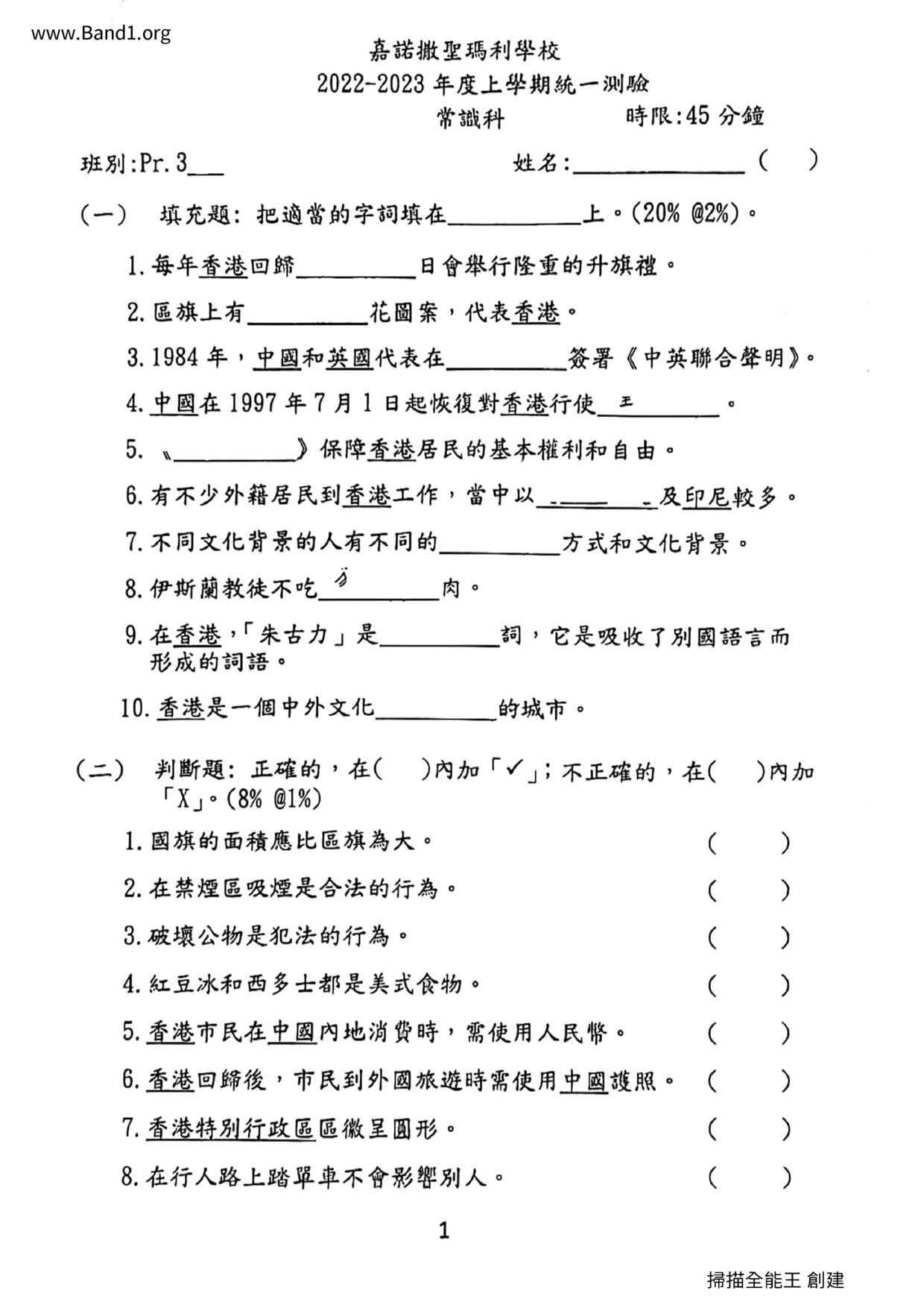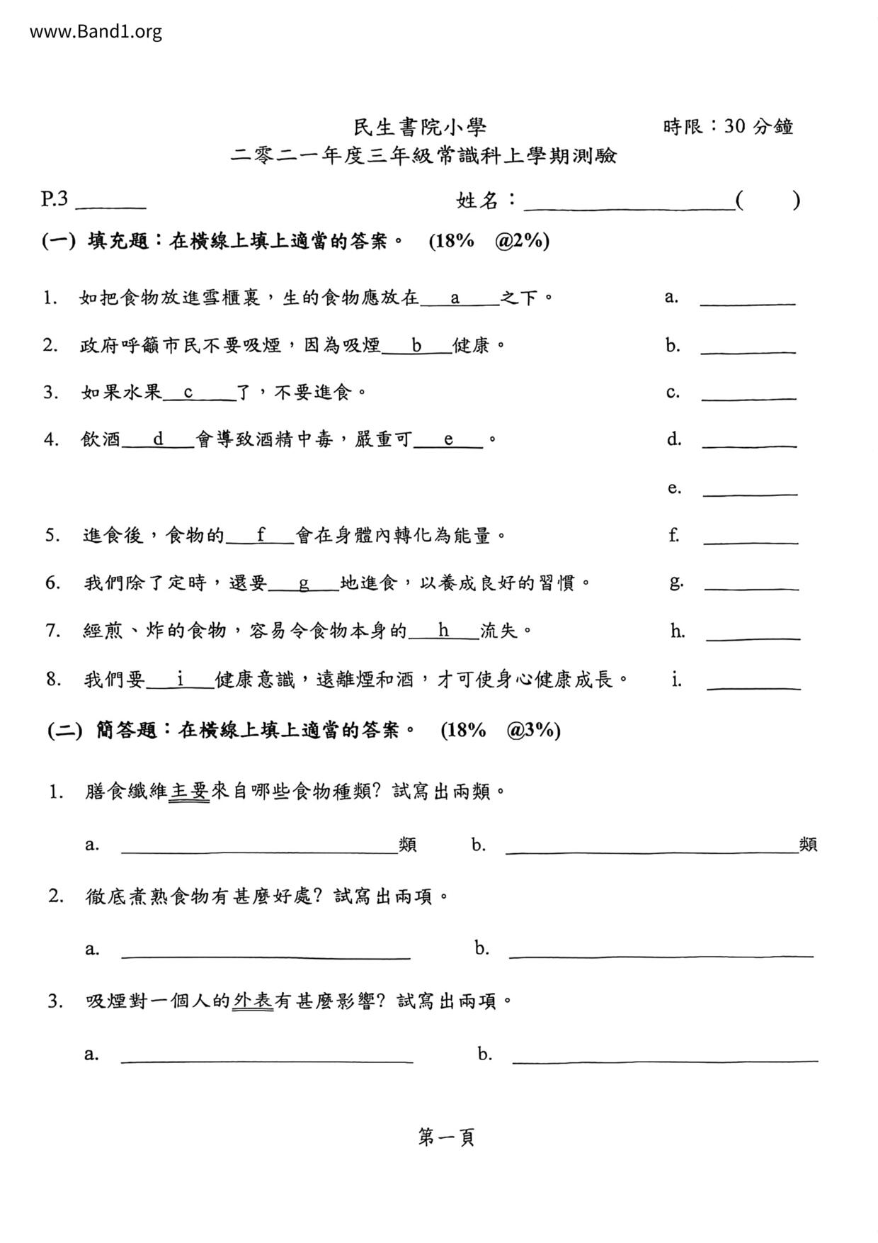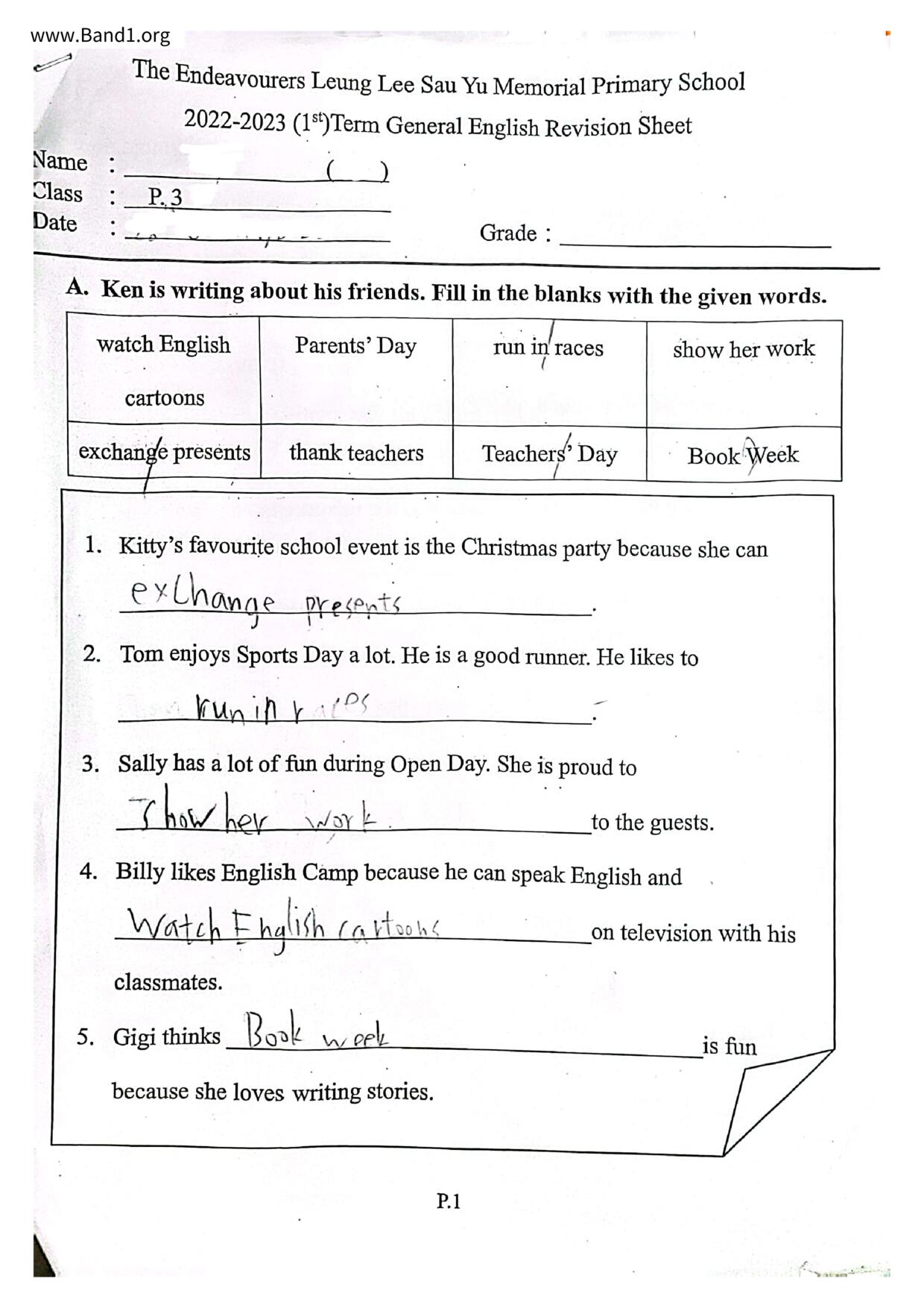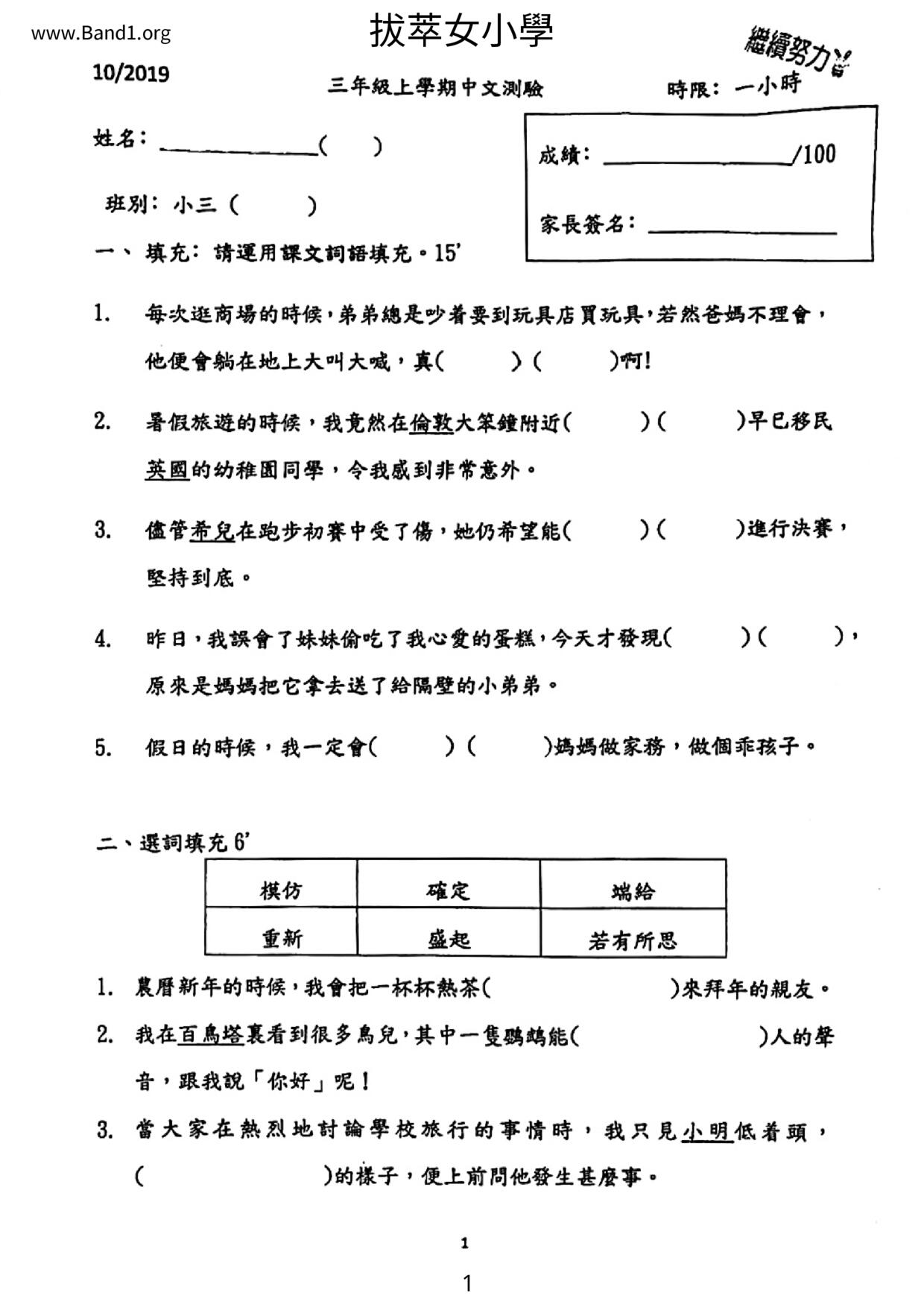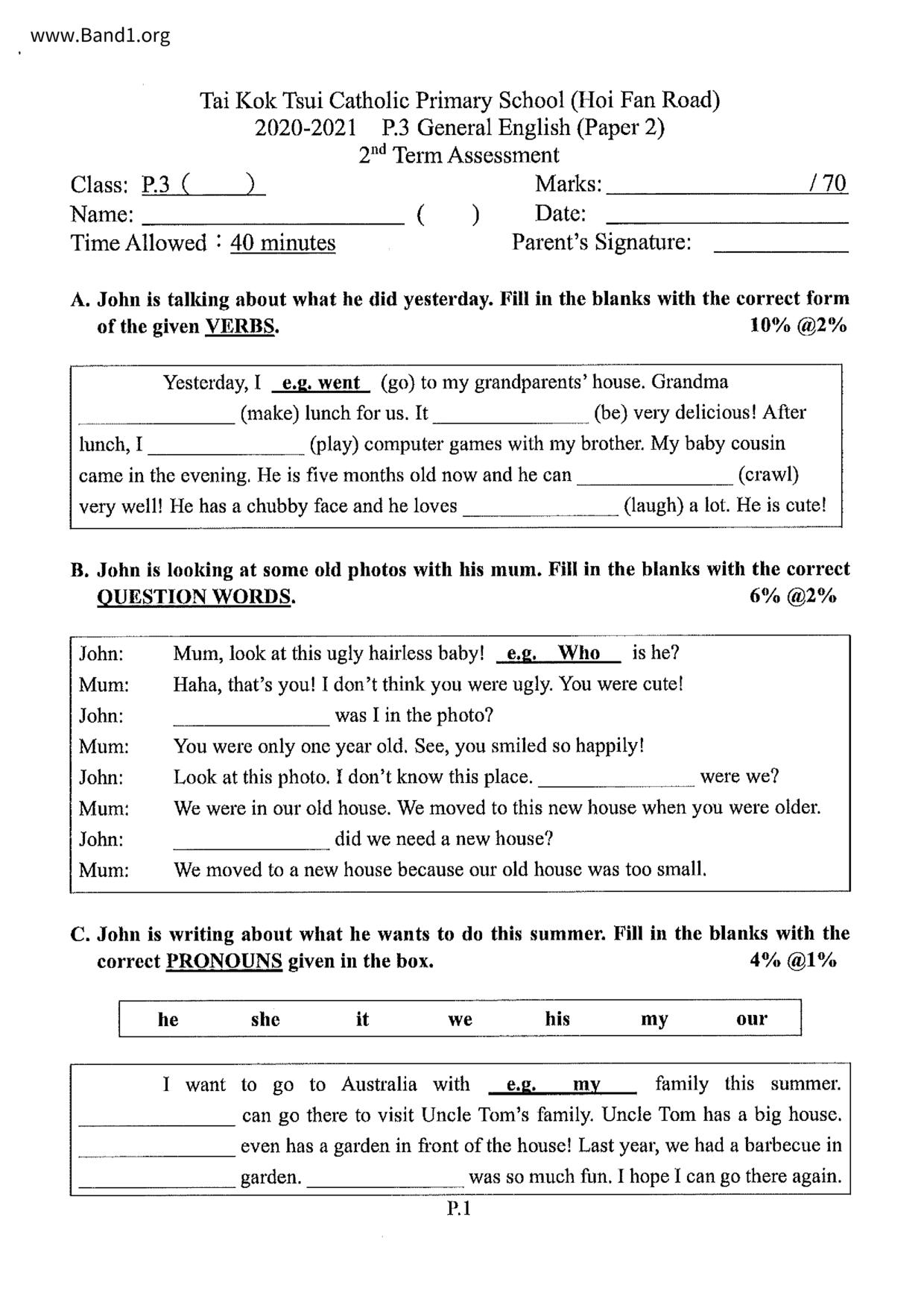 小三 英文 中華基督教會灣仔堂基道小學(九龍城)