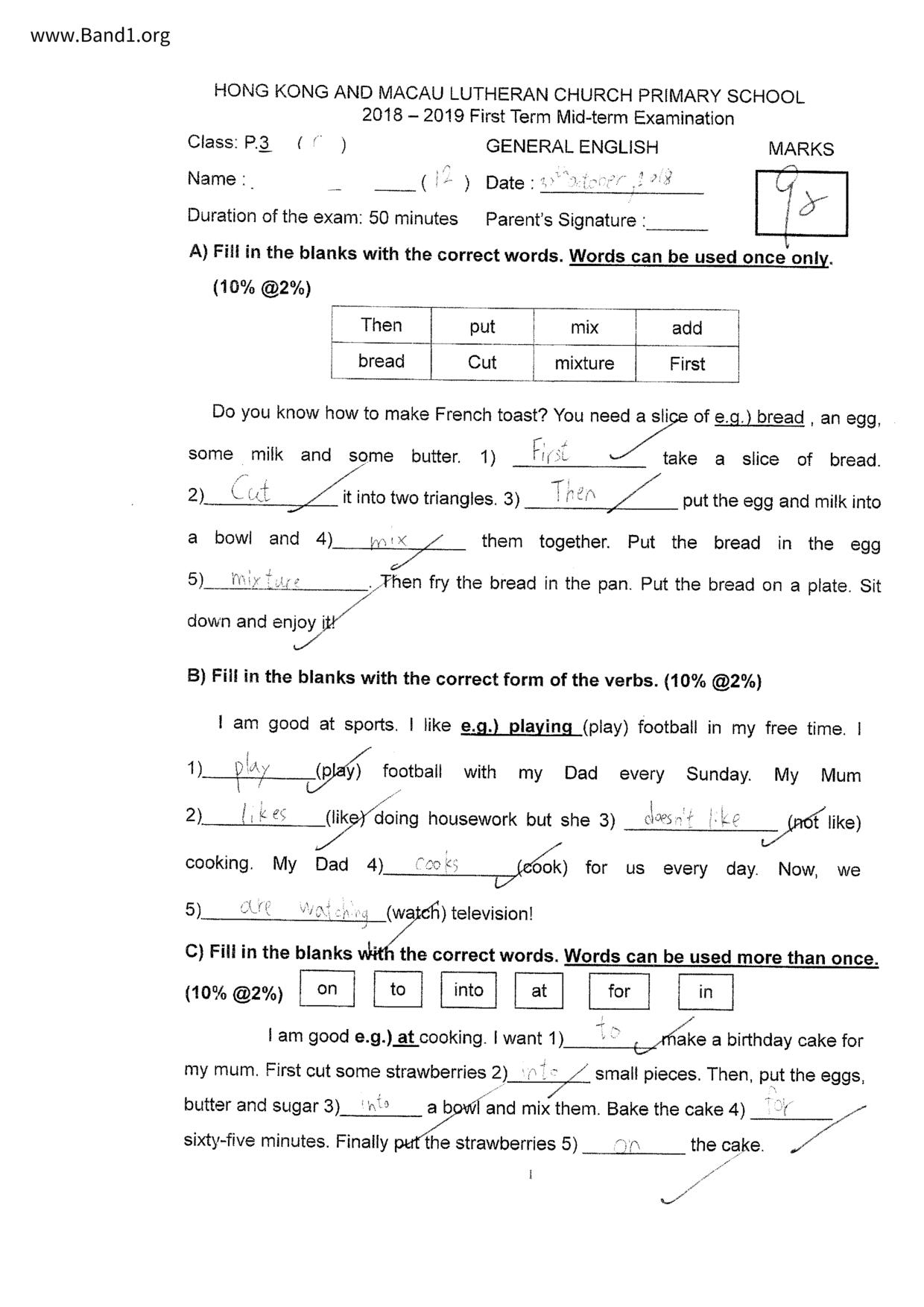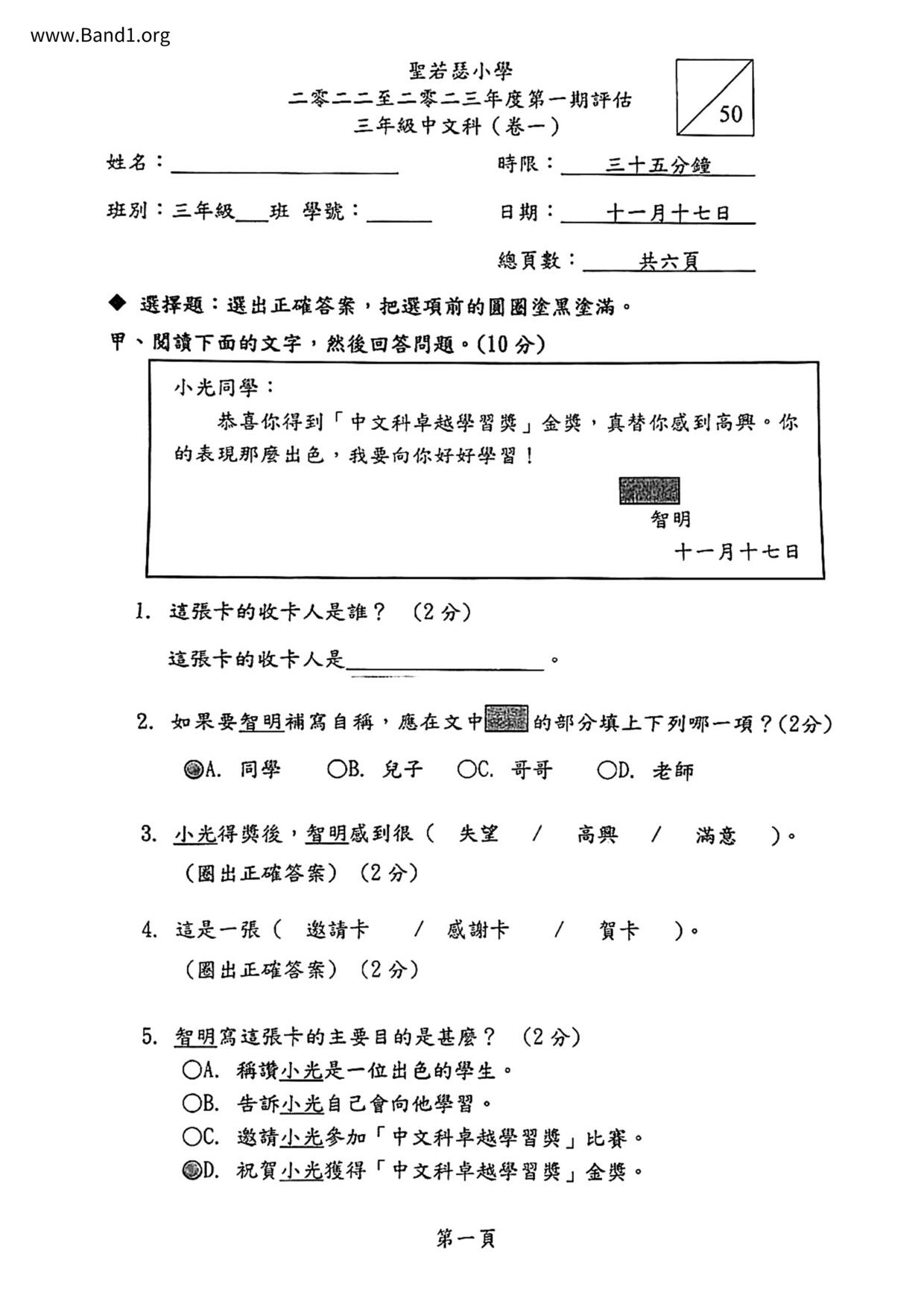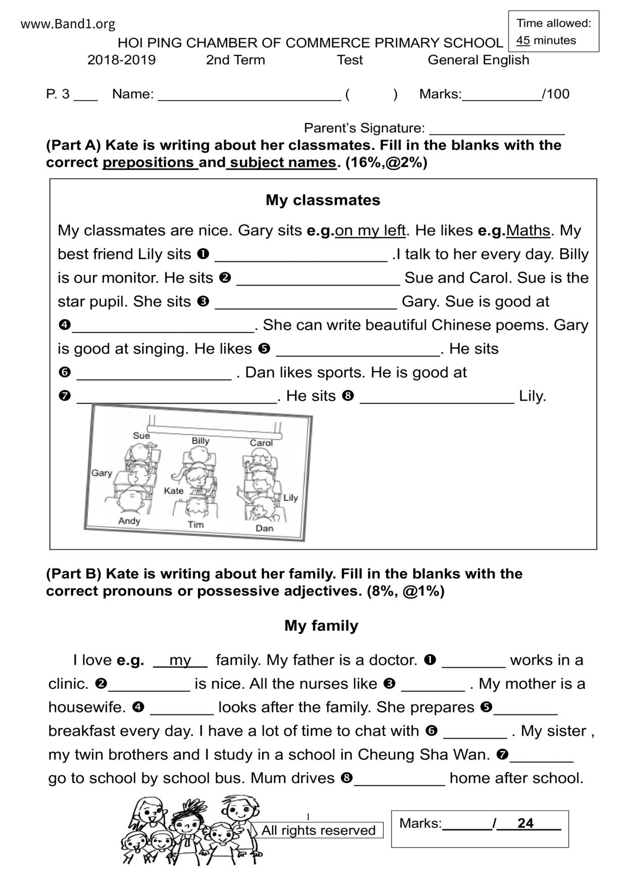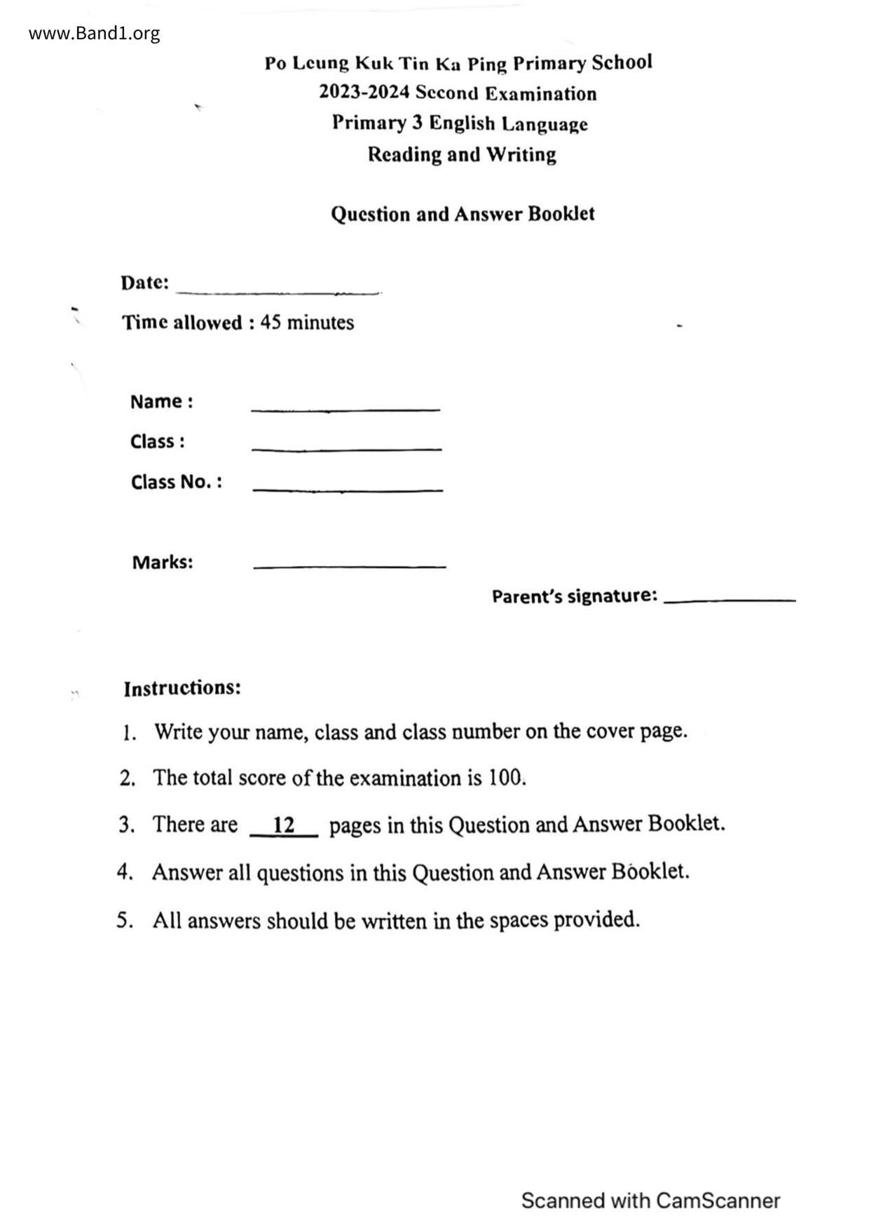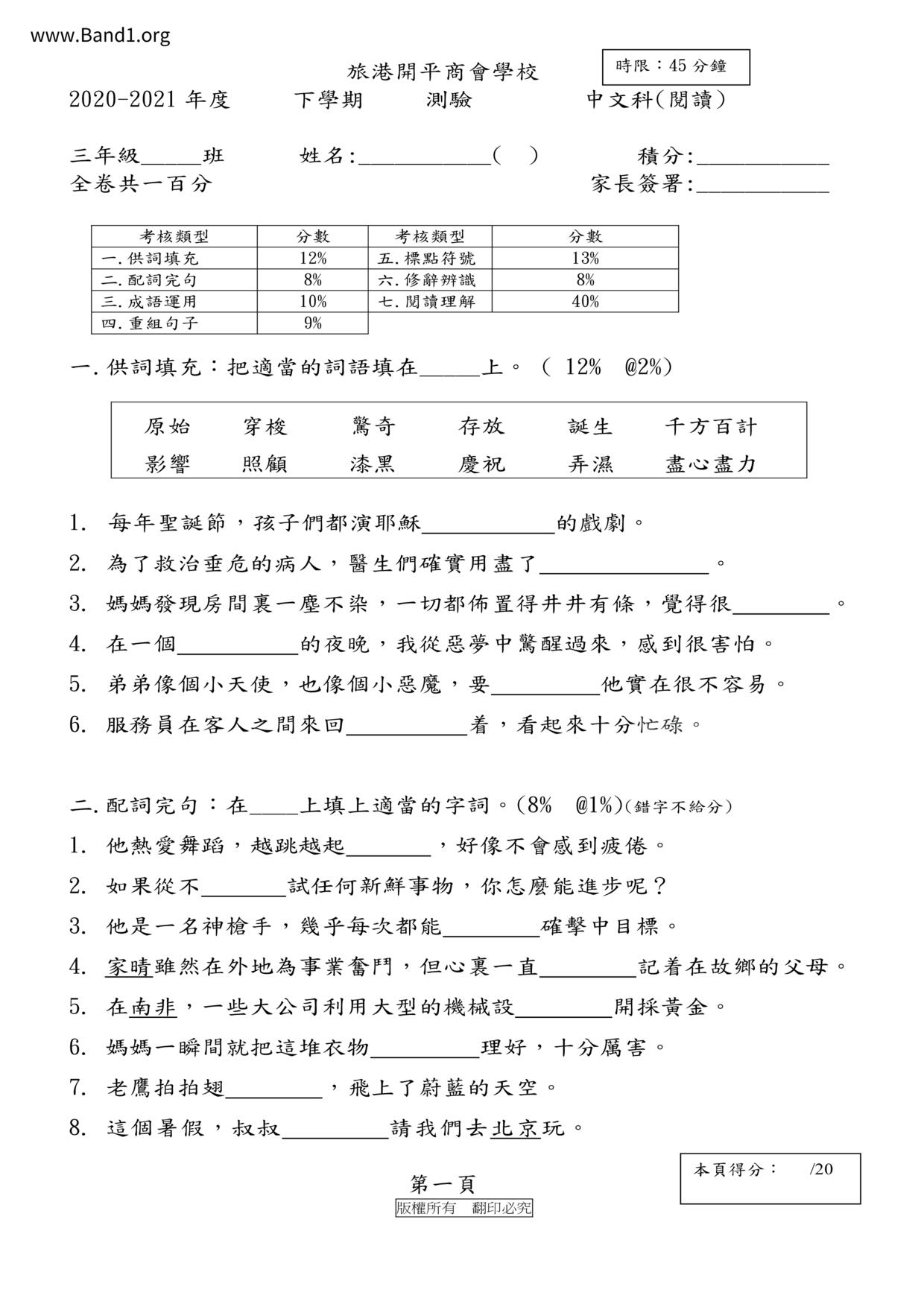 小三 英文 中華基督教會灣仔堂基道小學(九龍城)