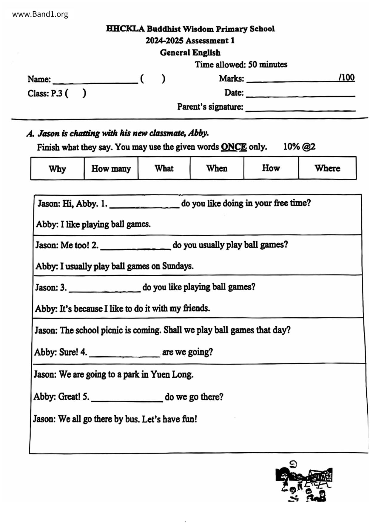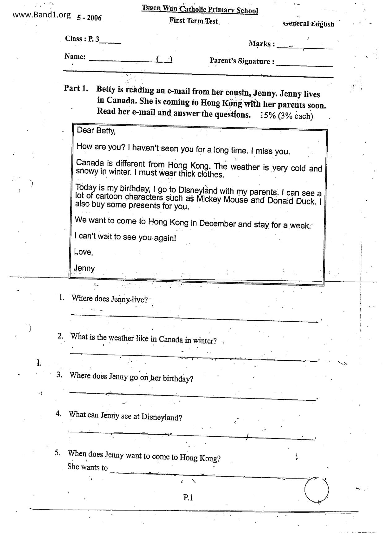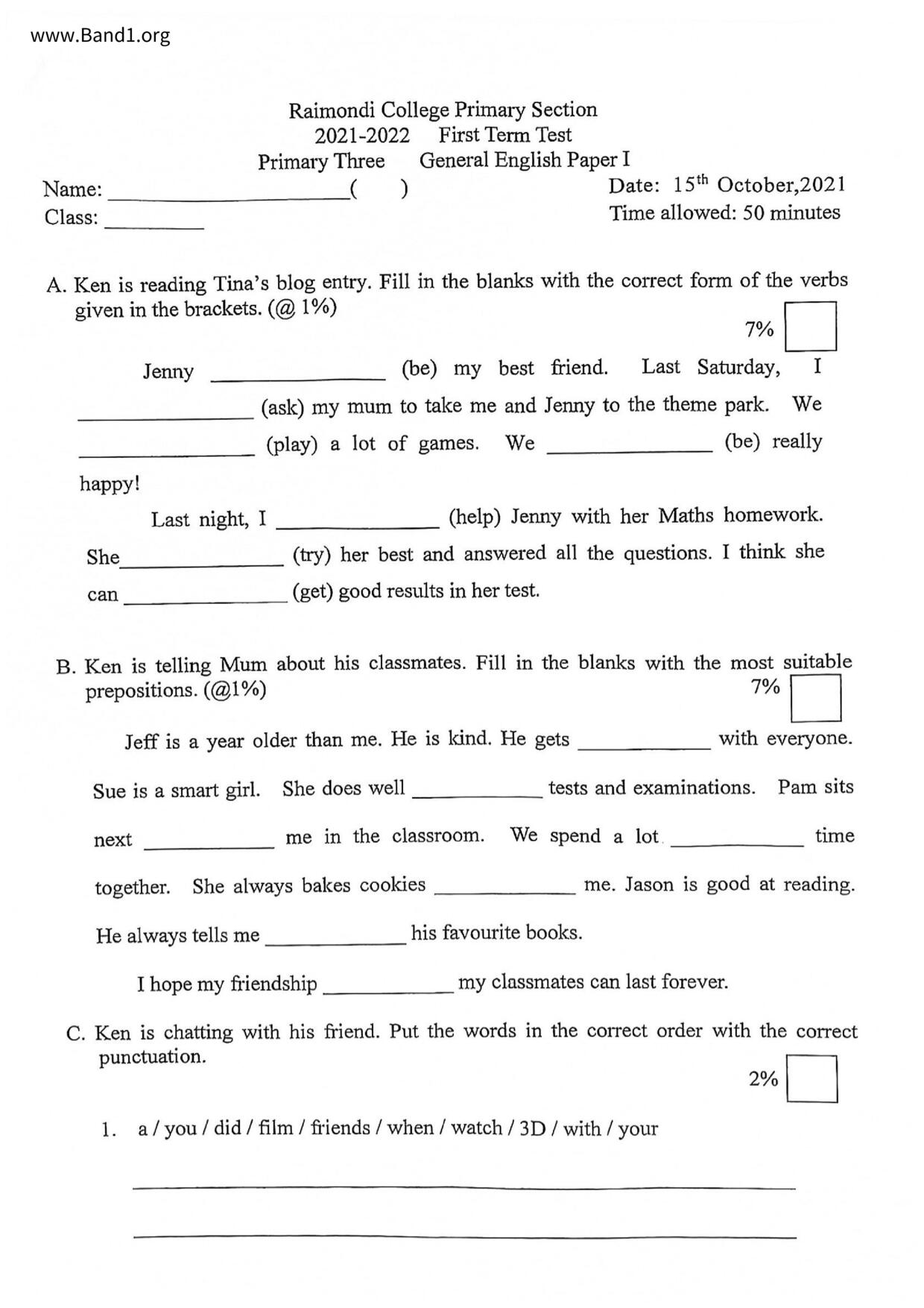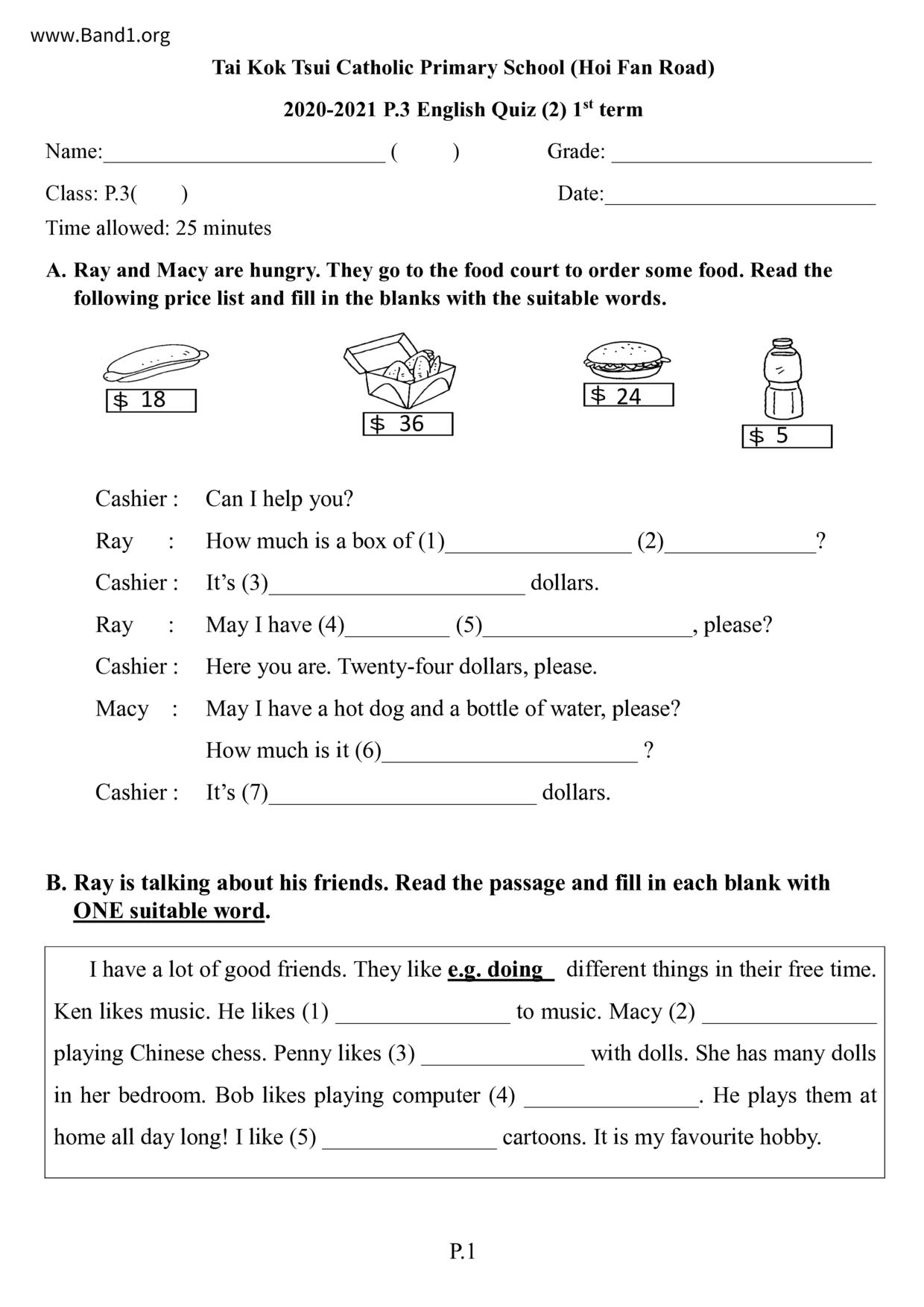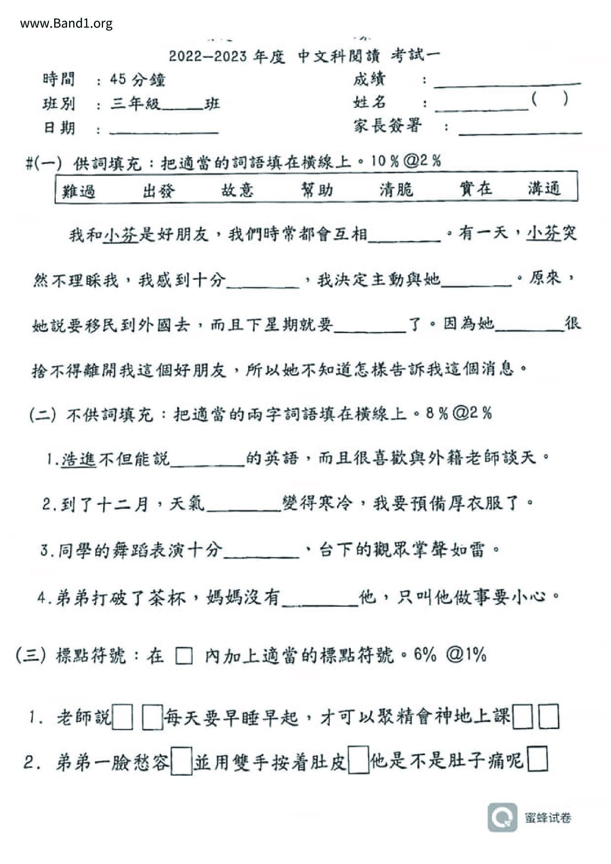 小三 英文 中華基督教會灣仔堂基道小學(九龍城)
