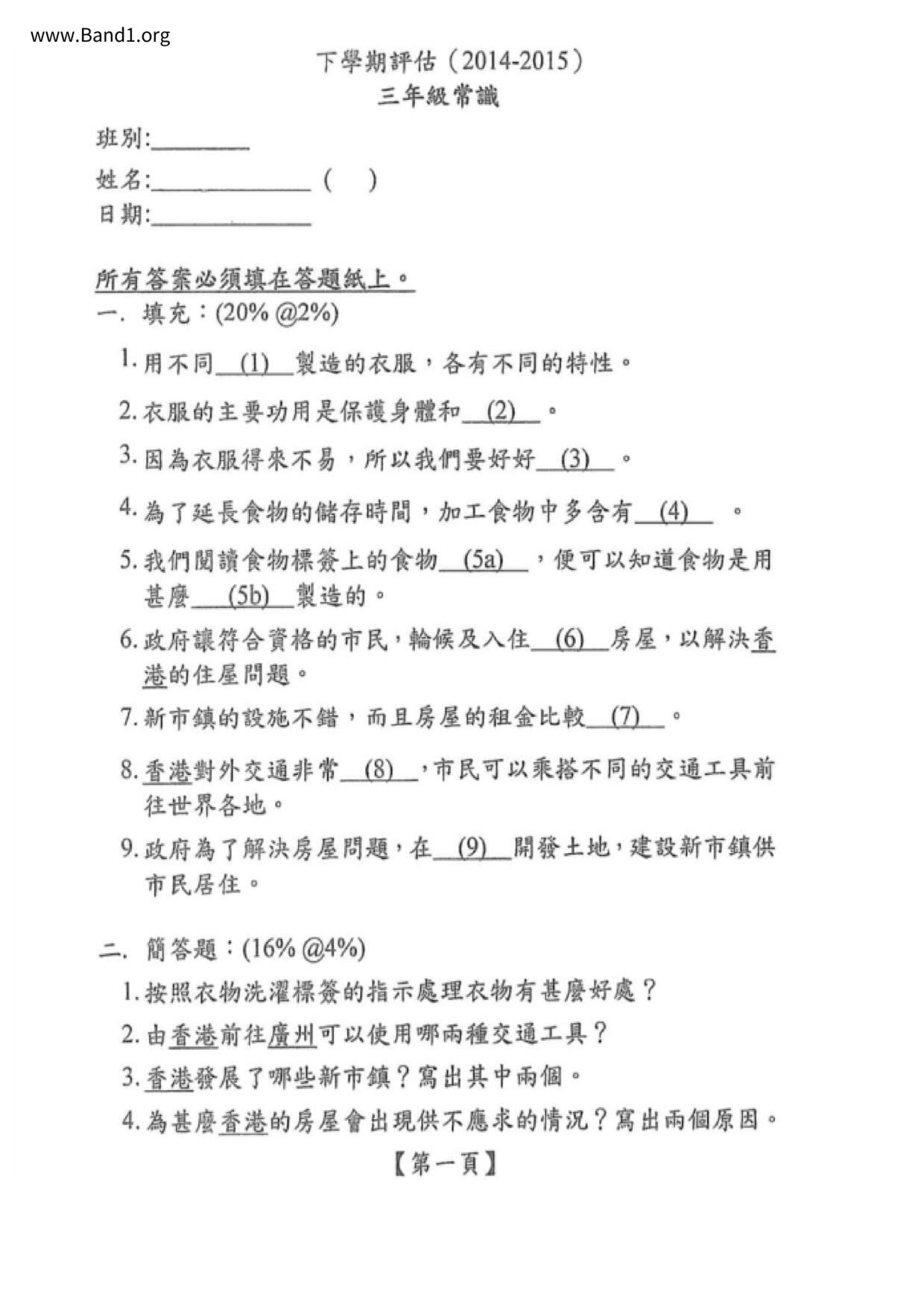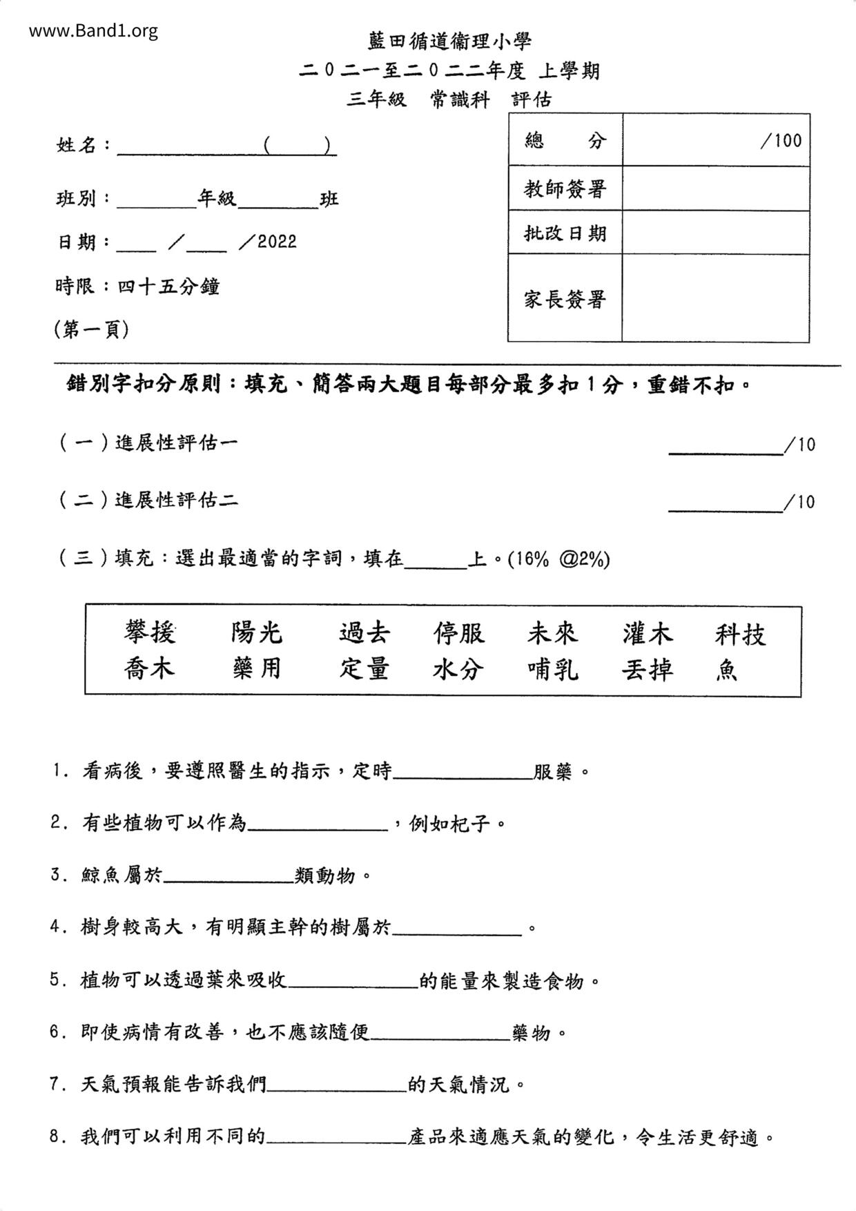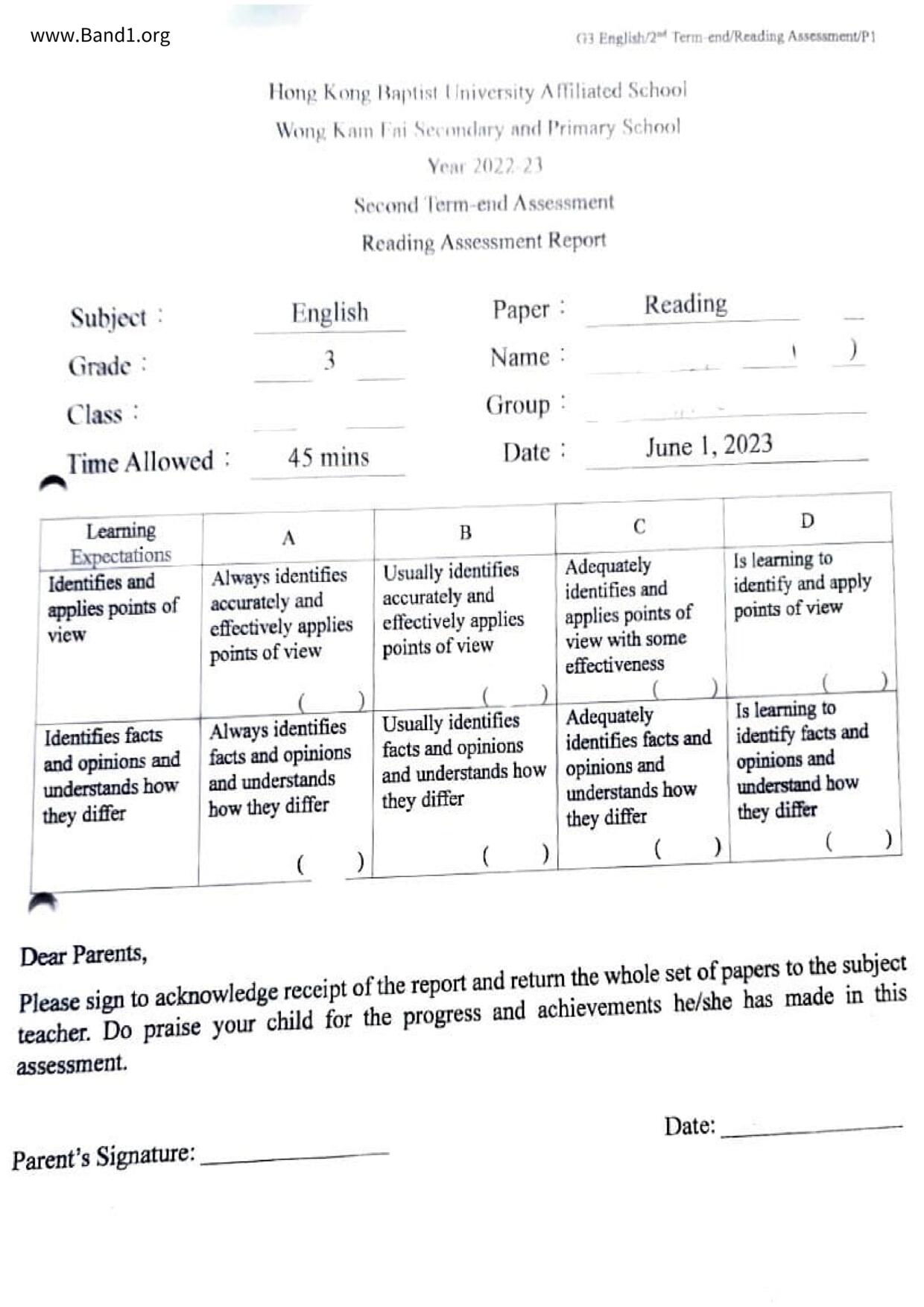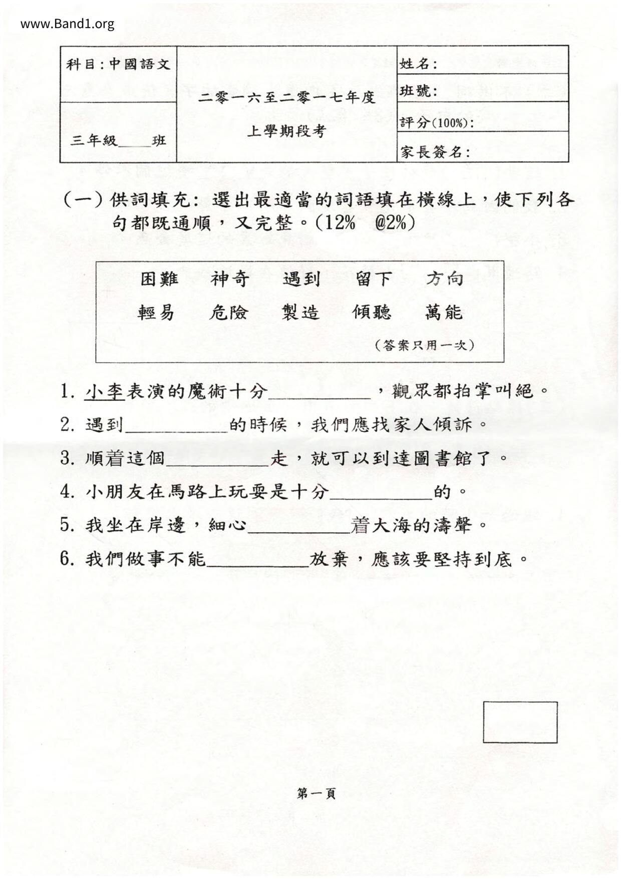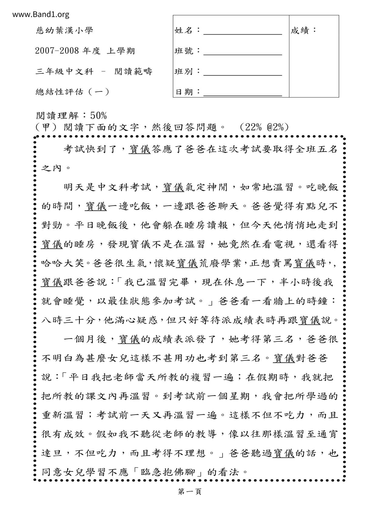 小三 英文 中華基督教會灣仔堂基道小學(九龍城)