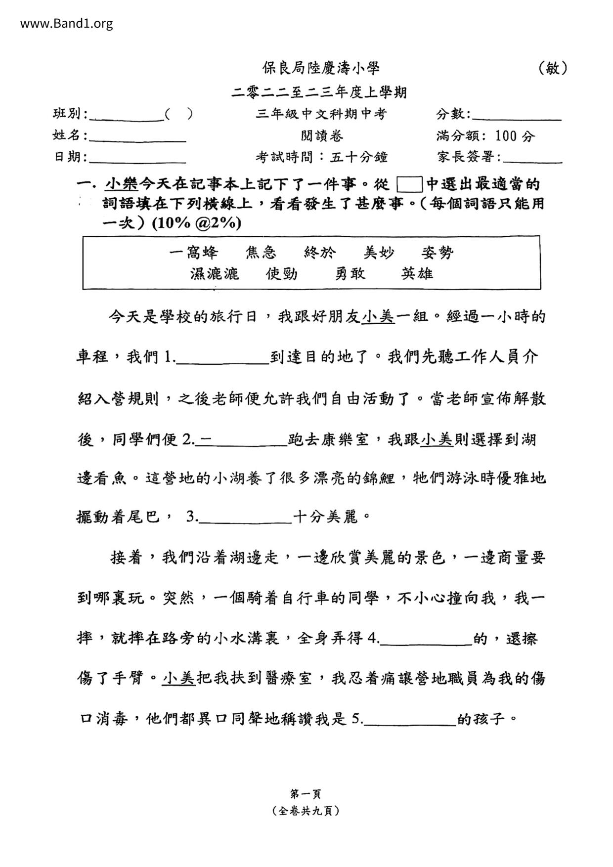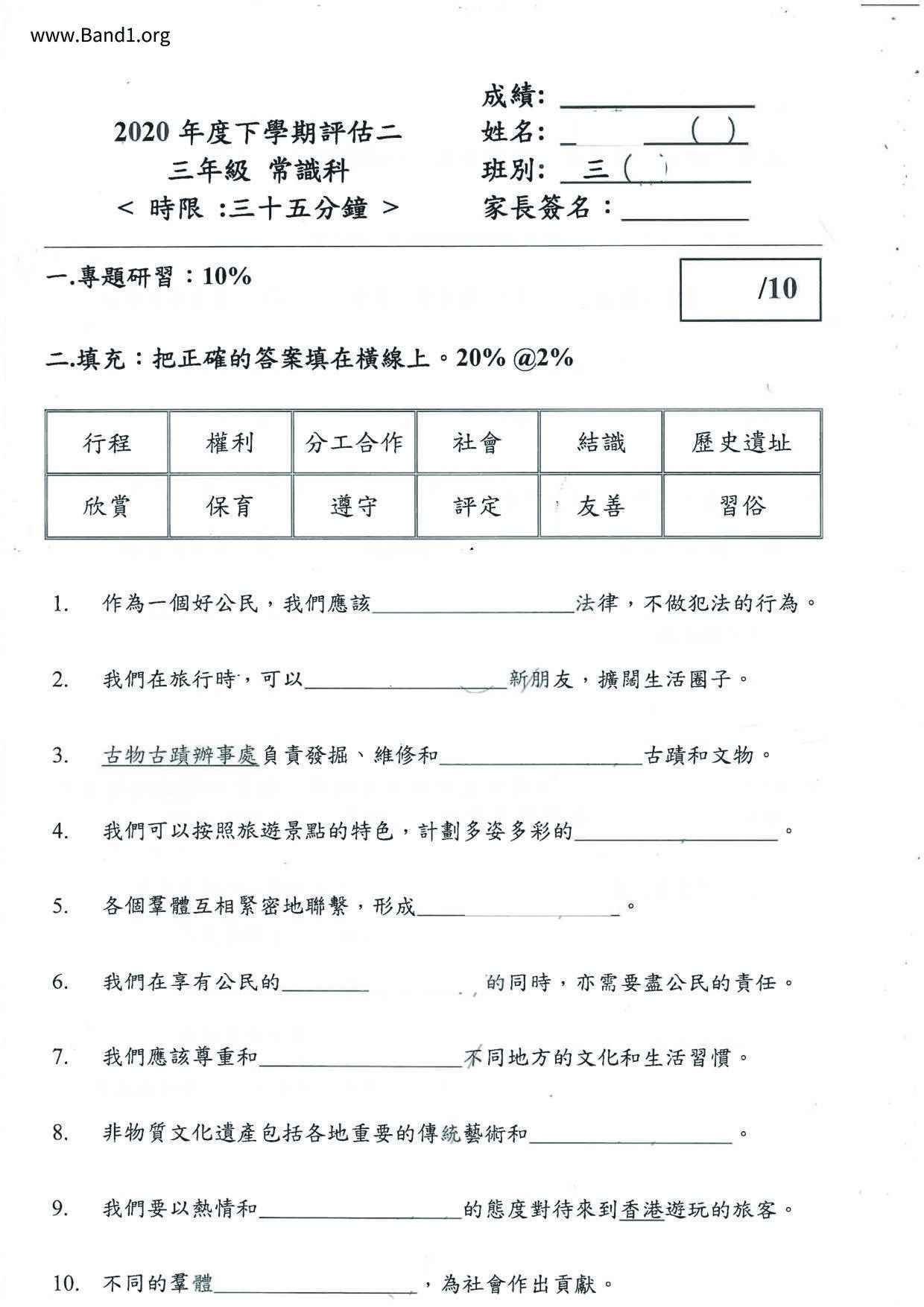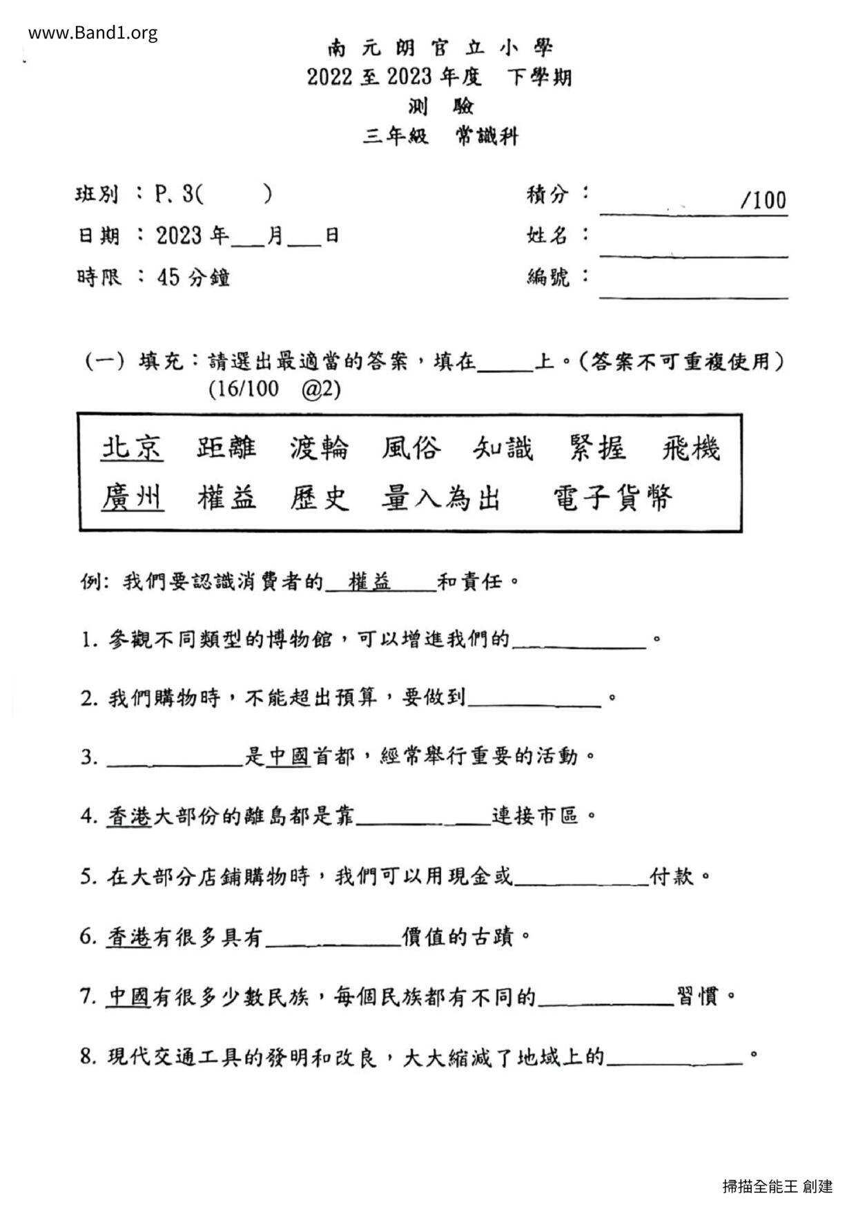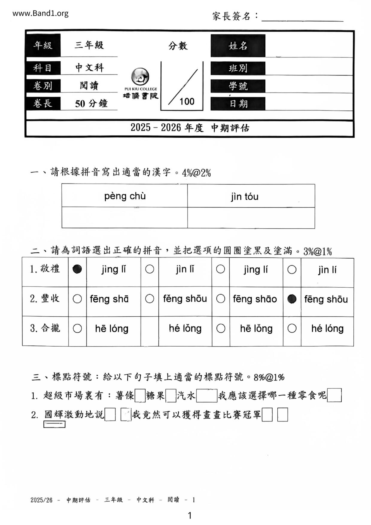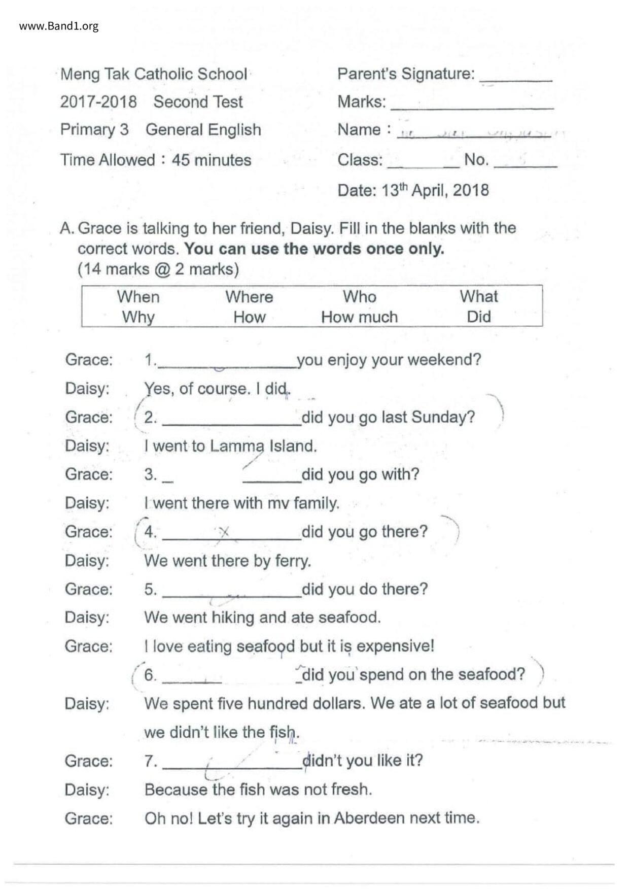小三 英文 中華基督教會灣仔堂基道小學(九龍城)