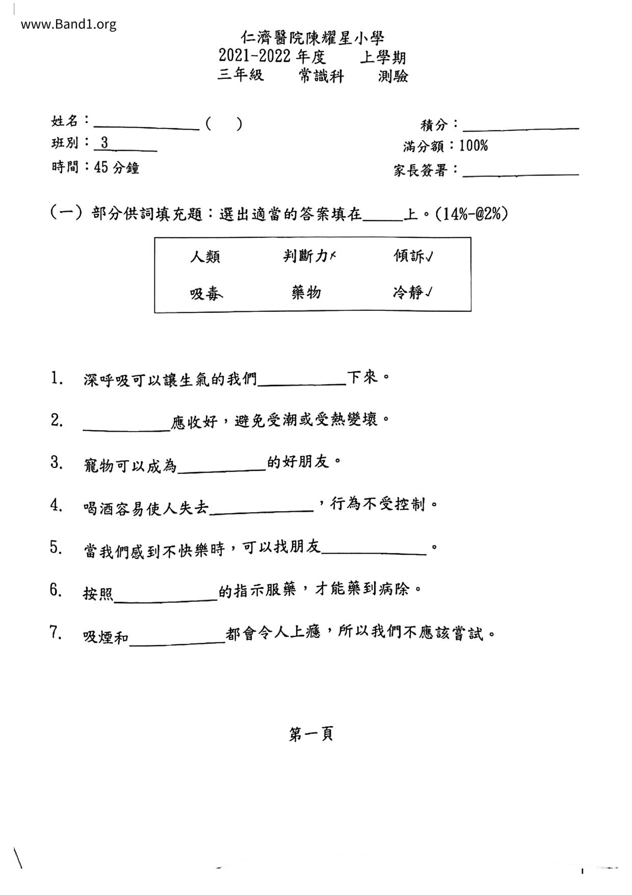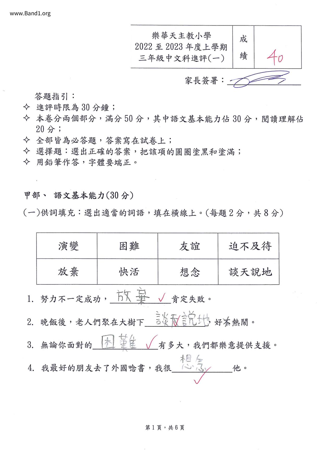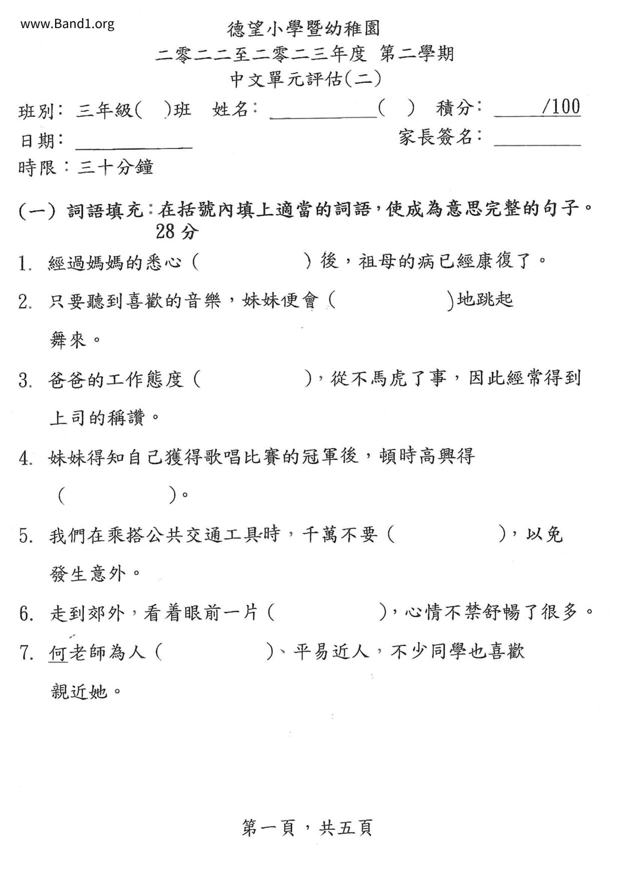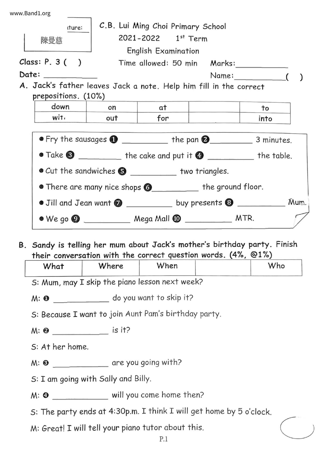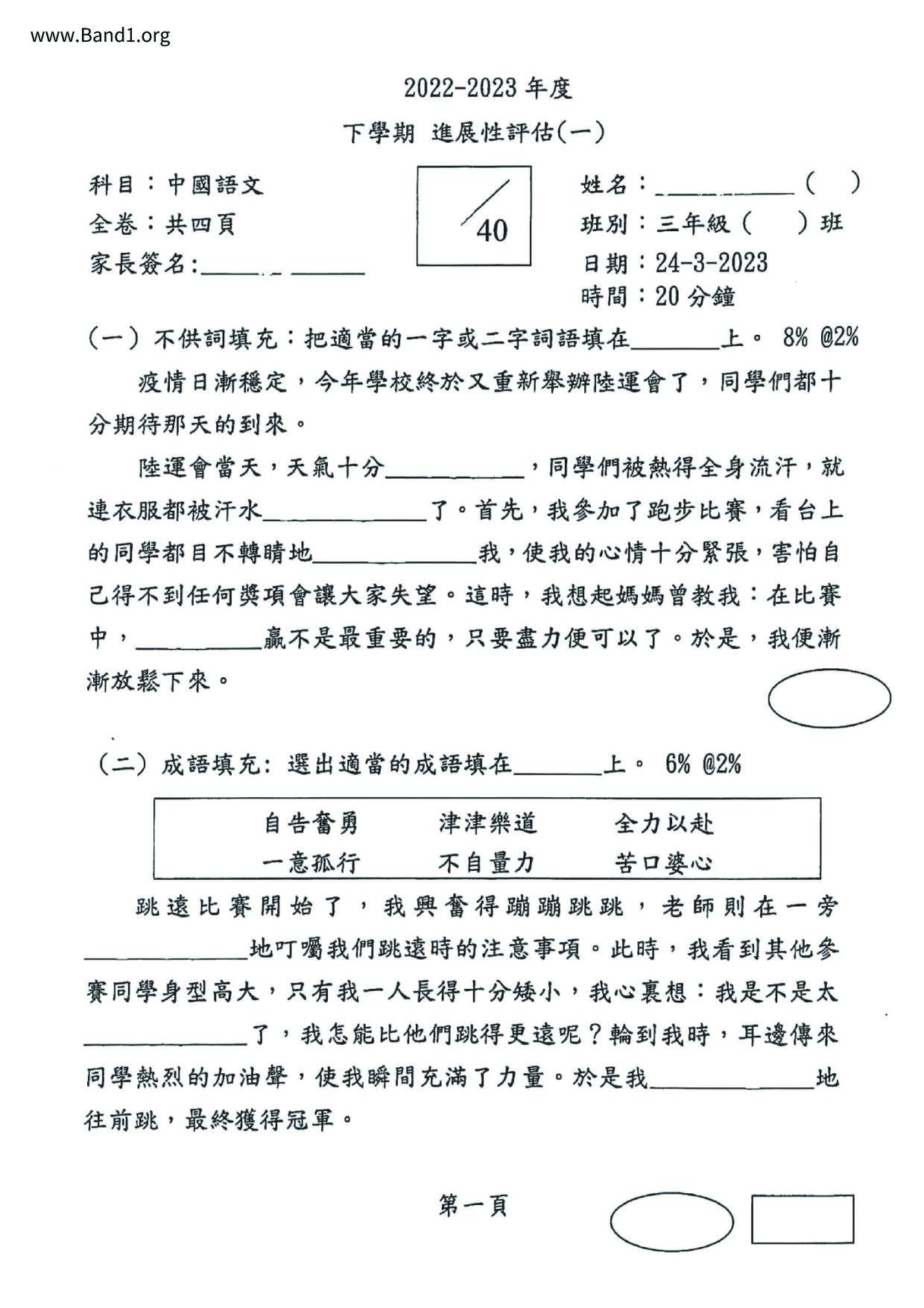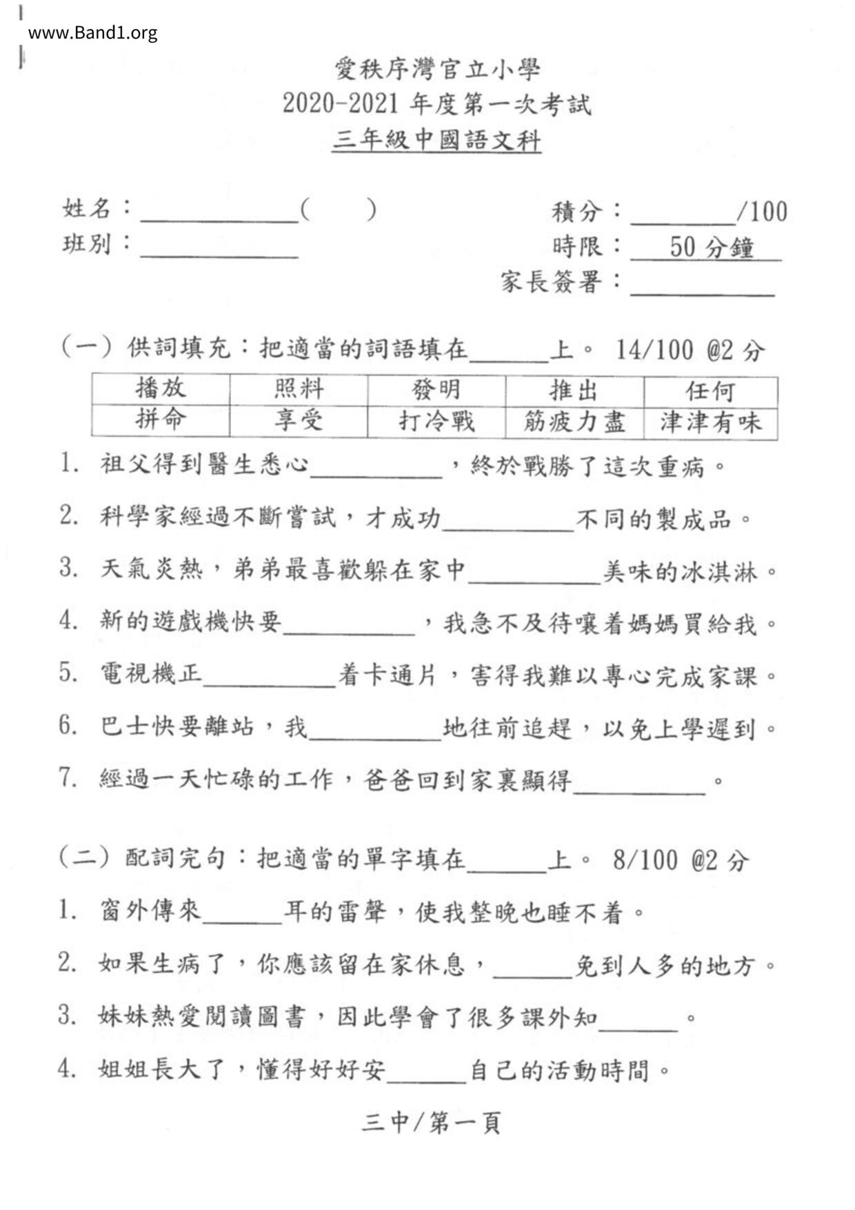 小三 英文 中華基督教會灣仔堂基道小學(九龍城)