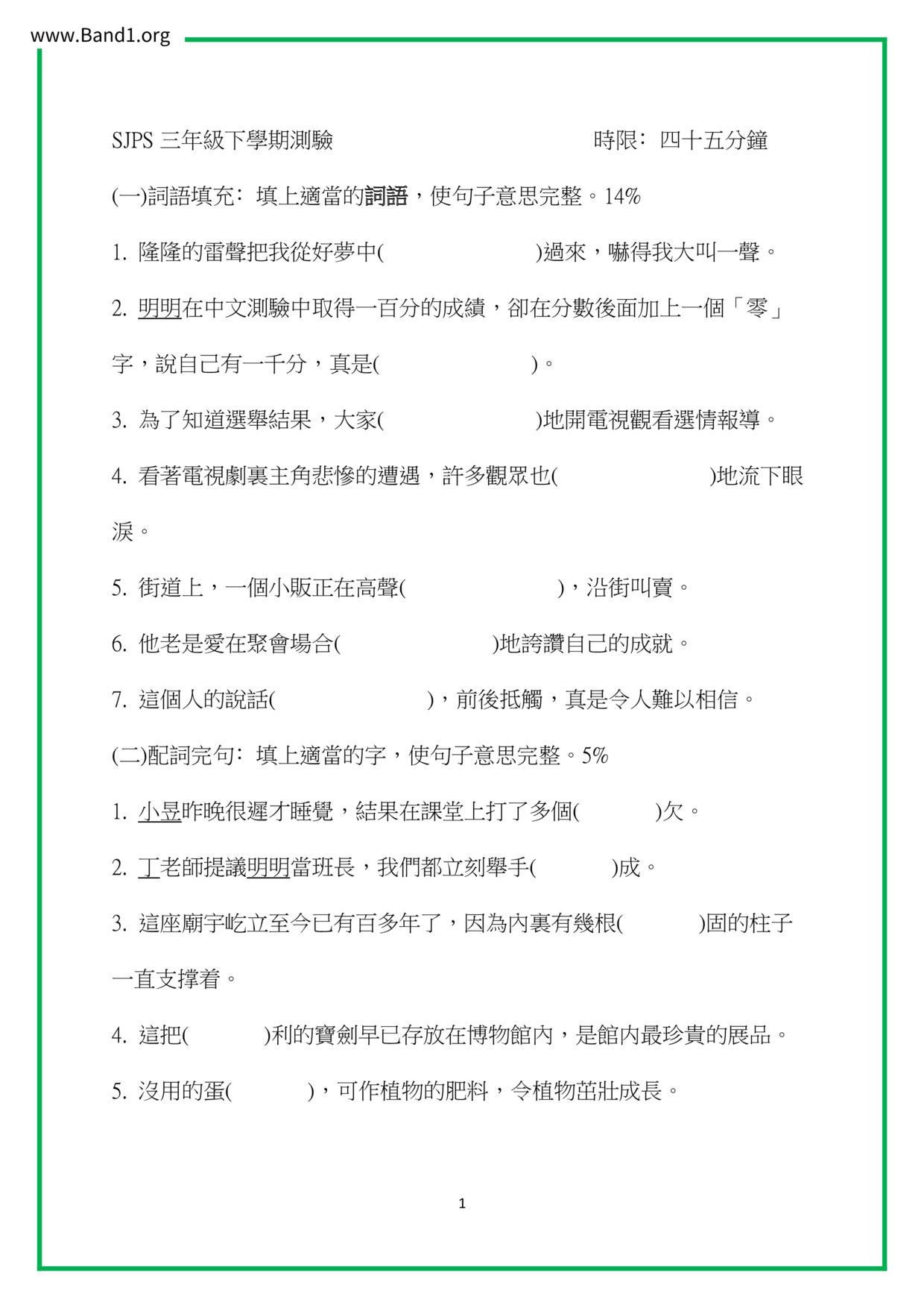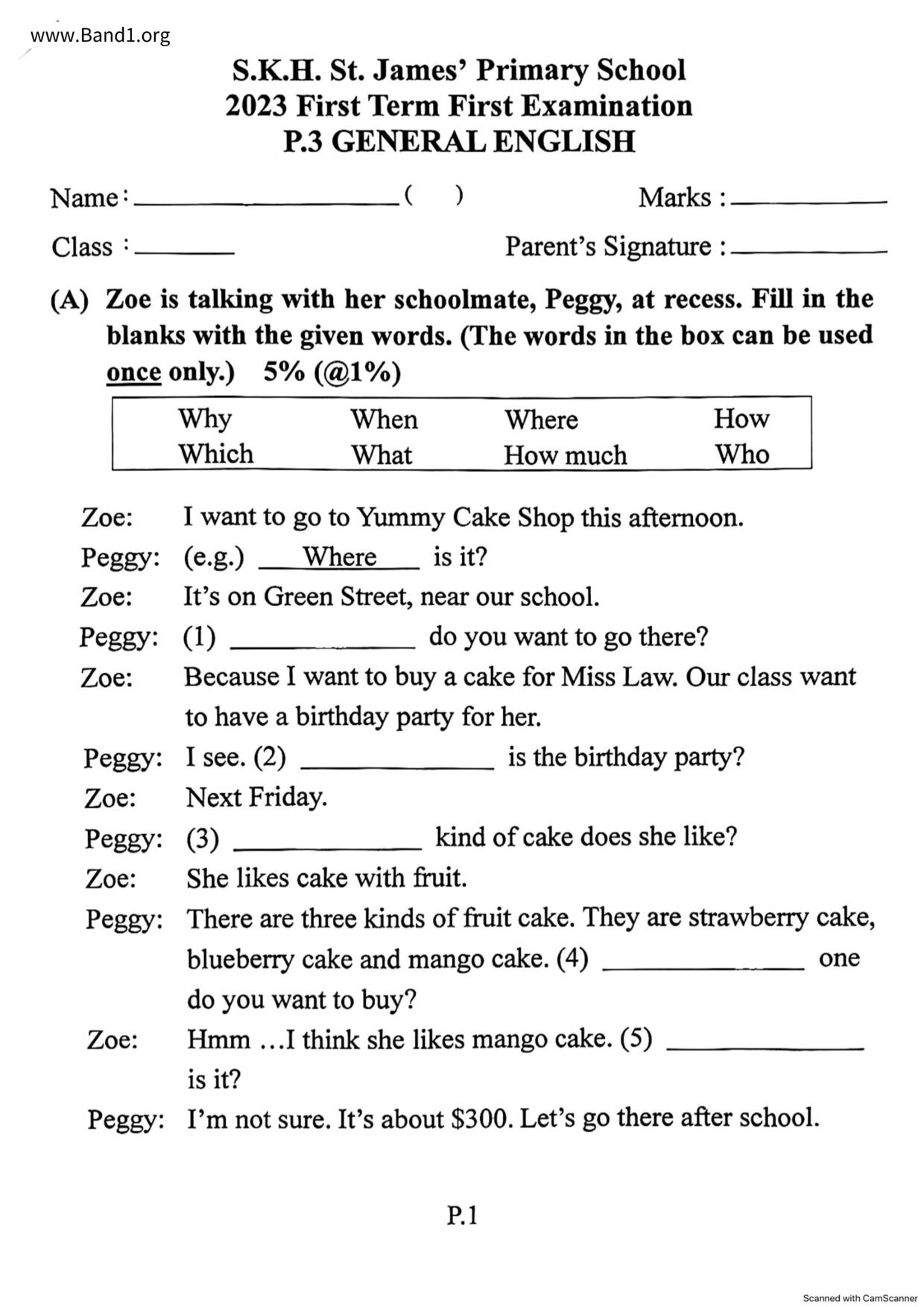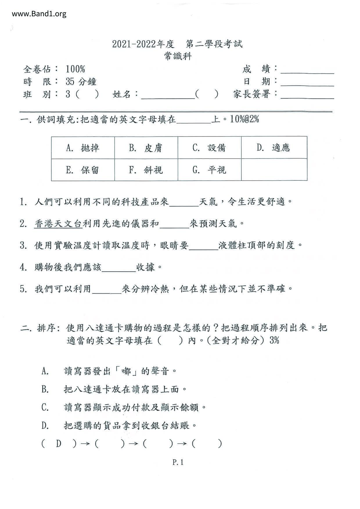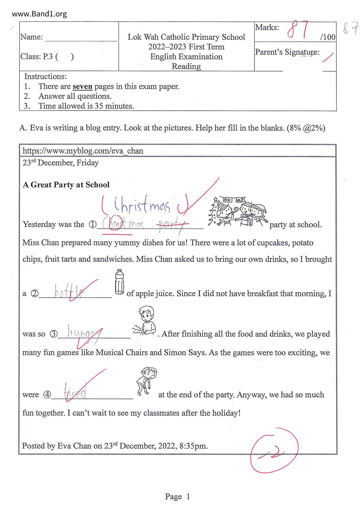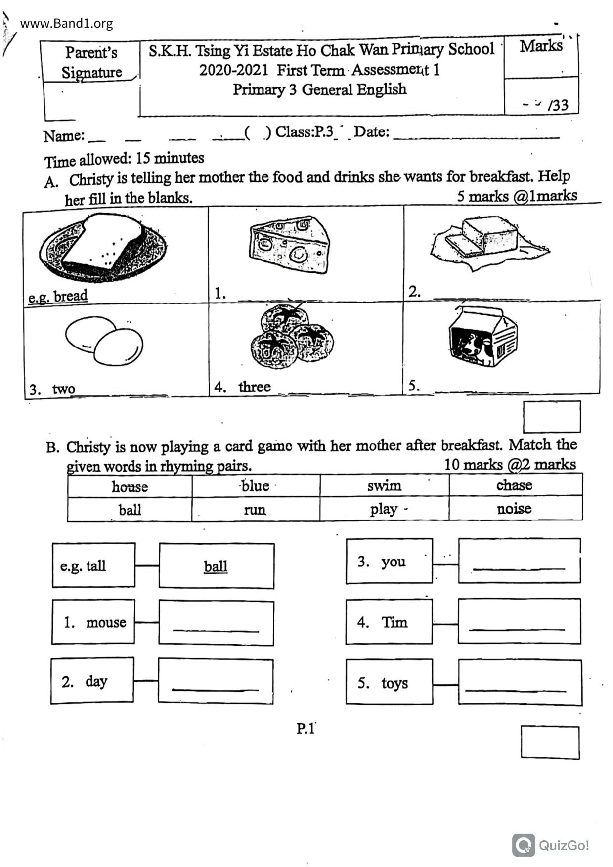 小三 英文 中華基督教會灣仔堂基道小學(九龍城)