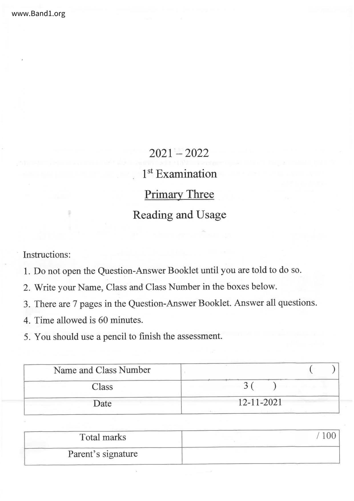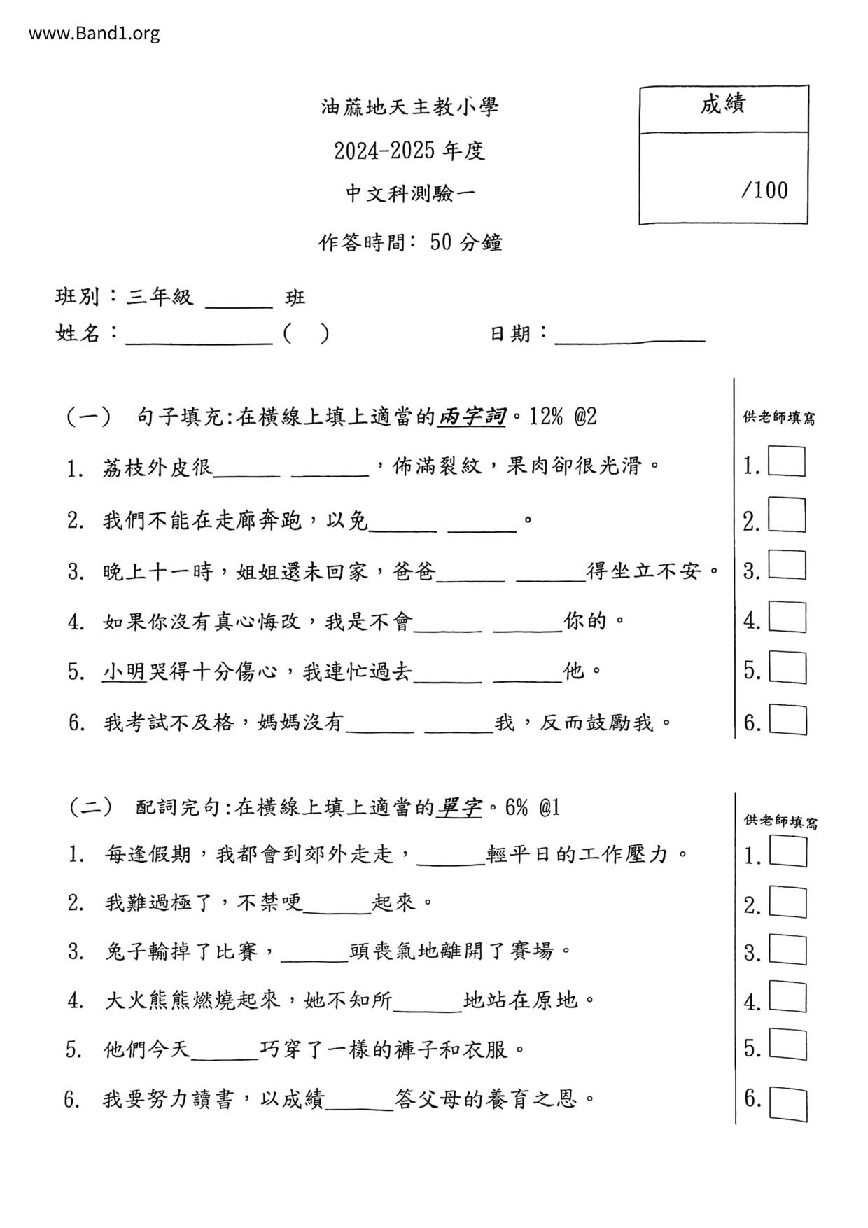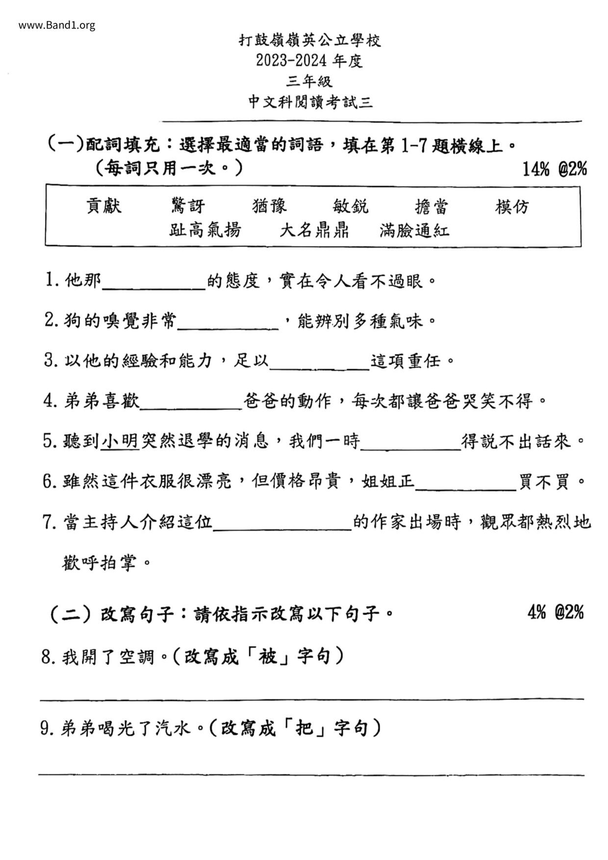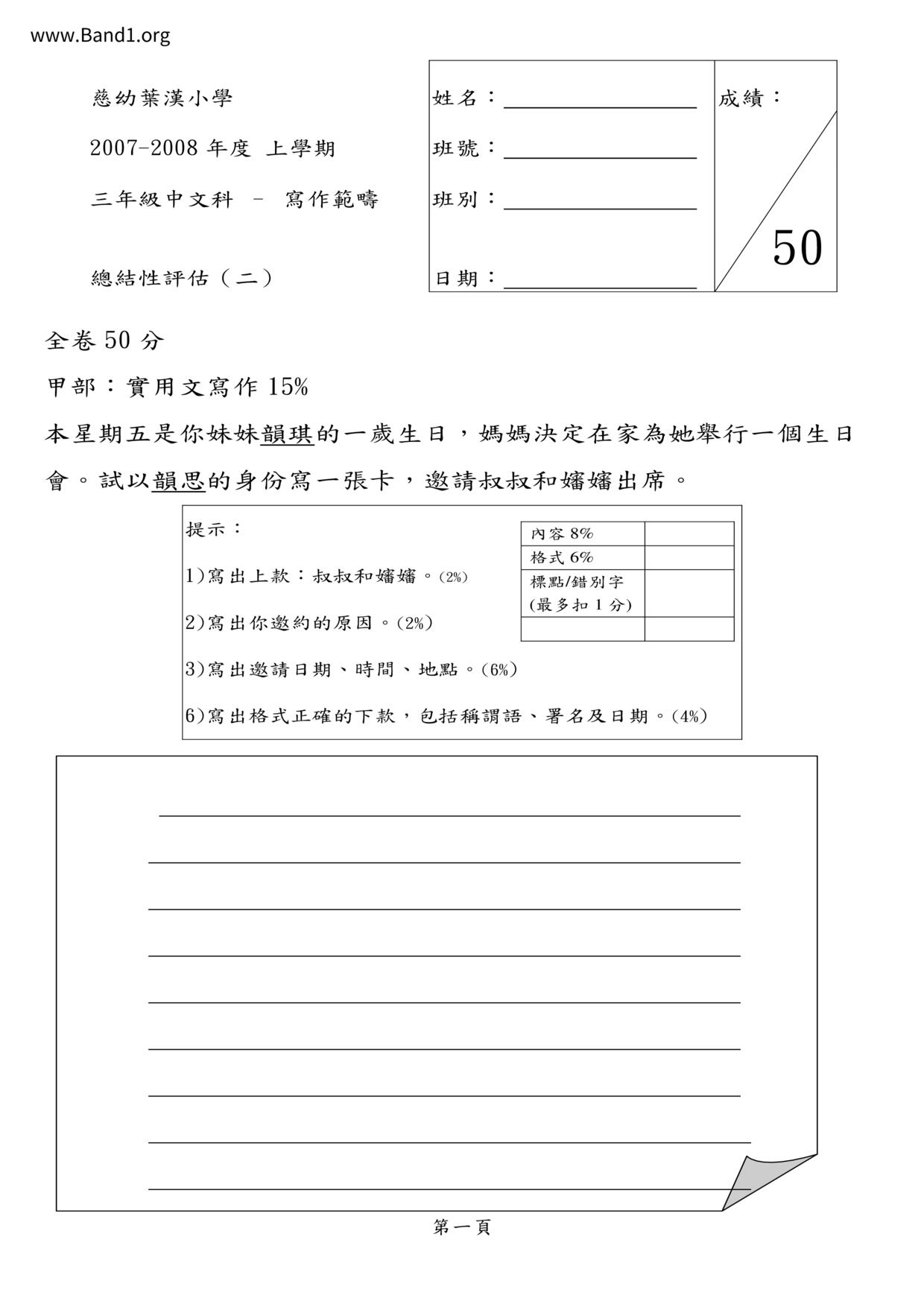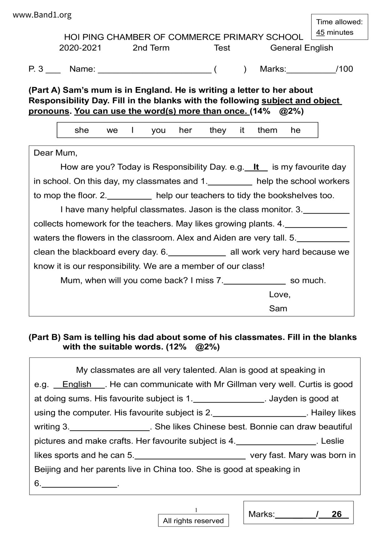 小三 英文 中華基督教會灣仔堂基道小學(九龍城)