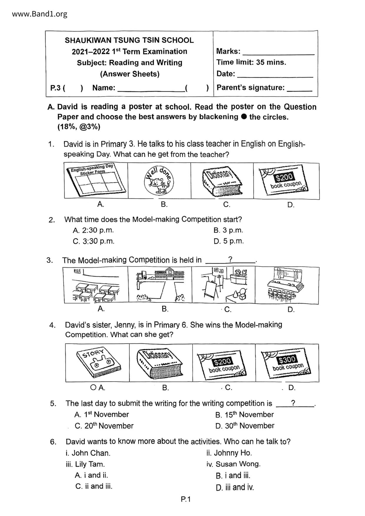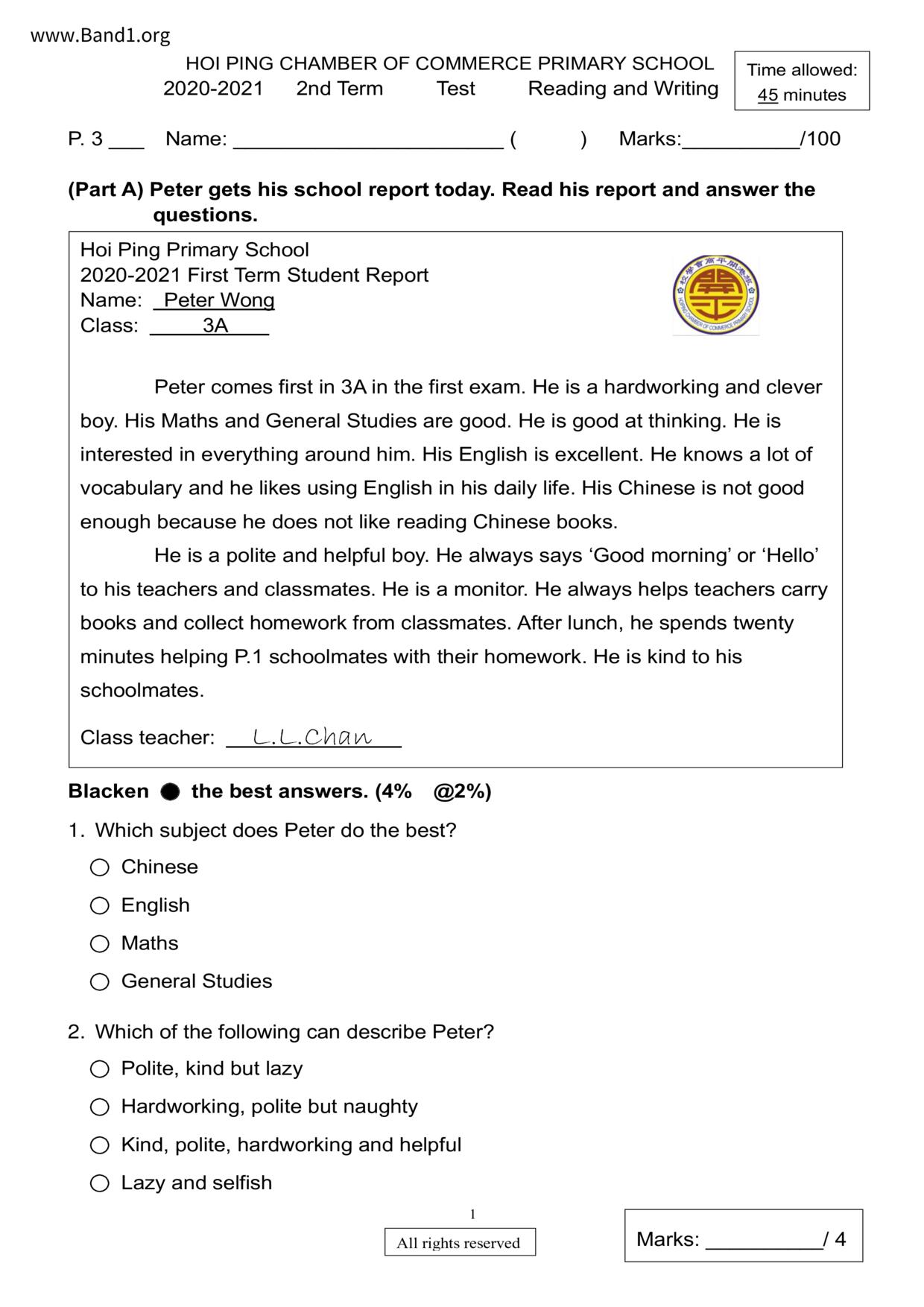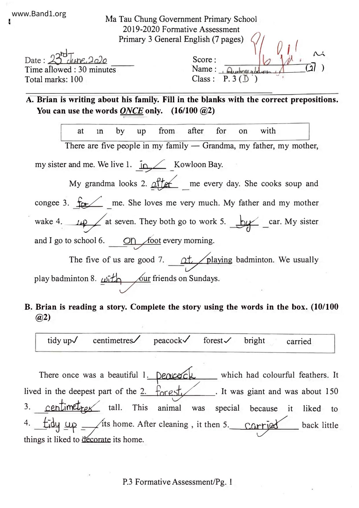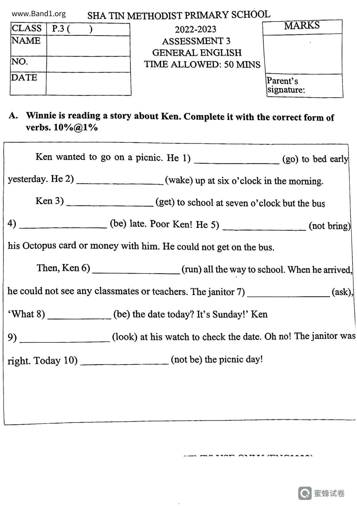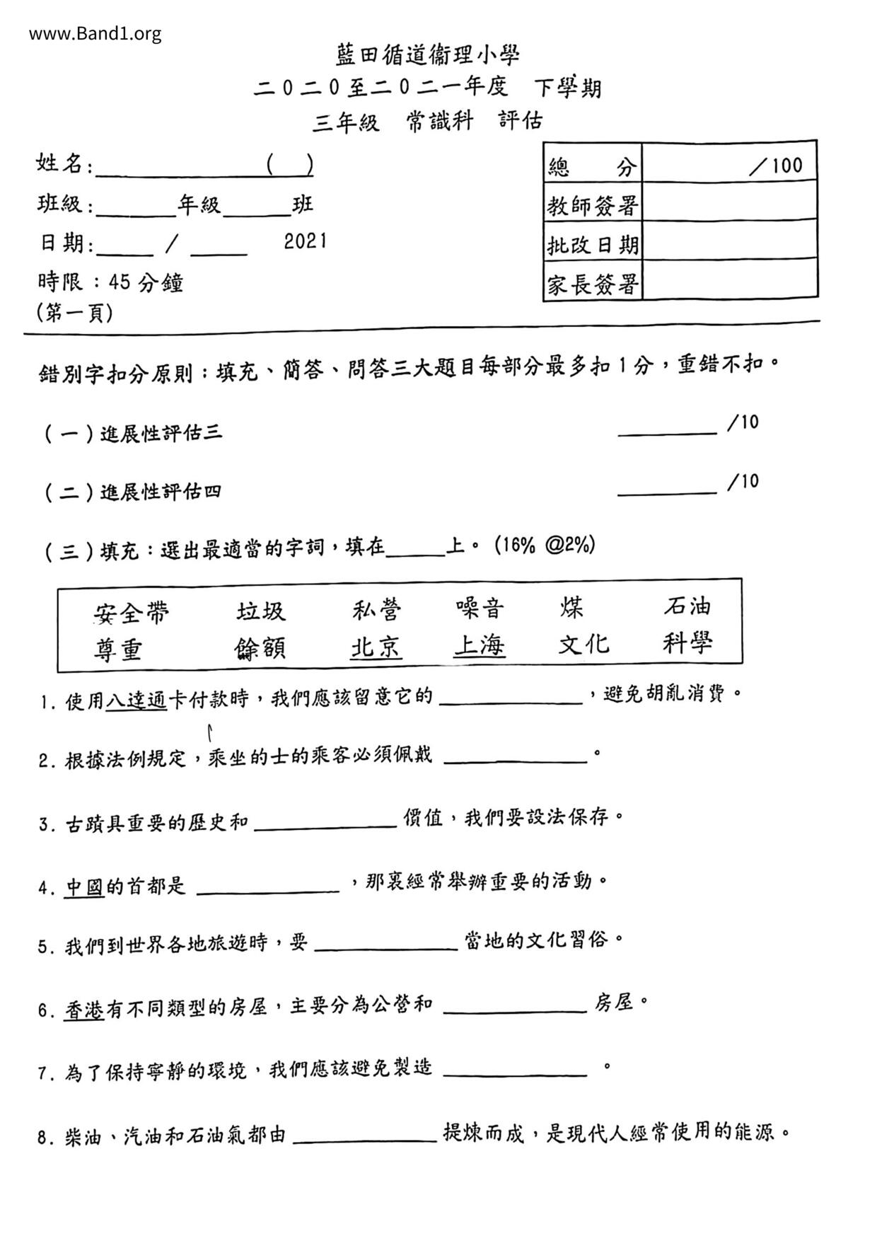 小三 英文 中華基督教會灣仔堂基道小學(九龍城)