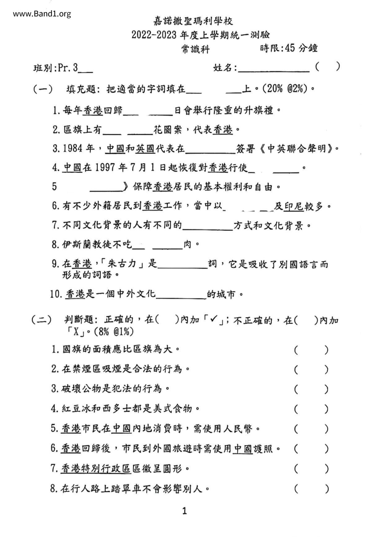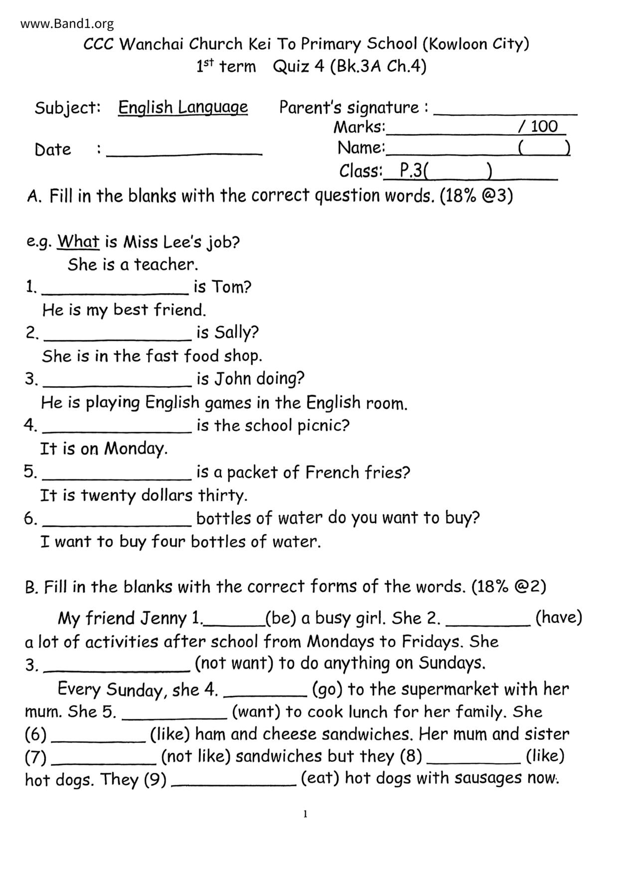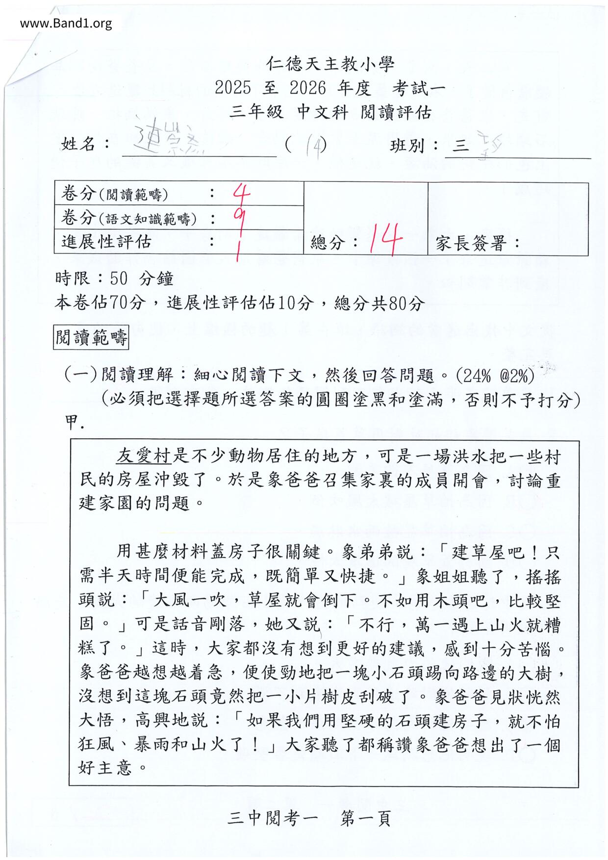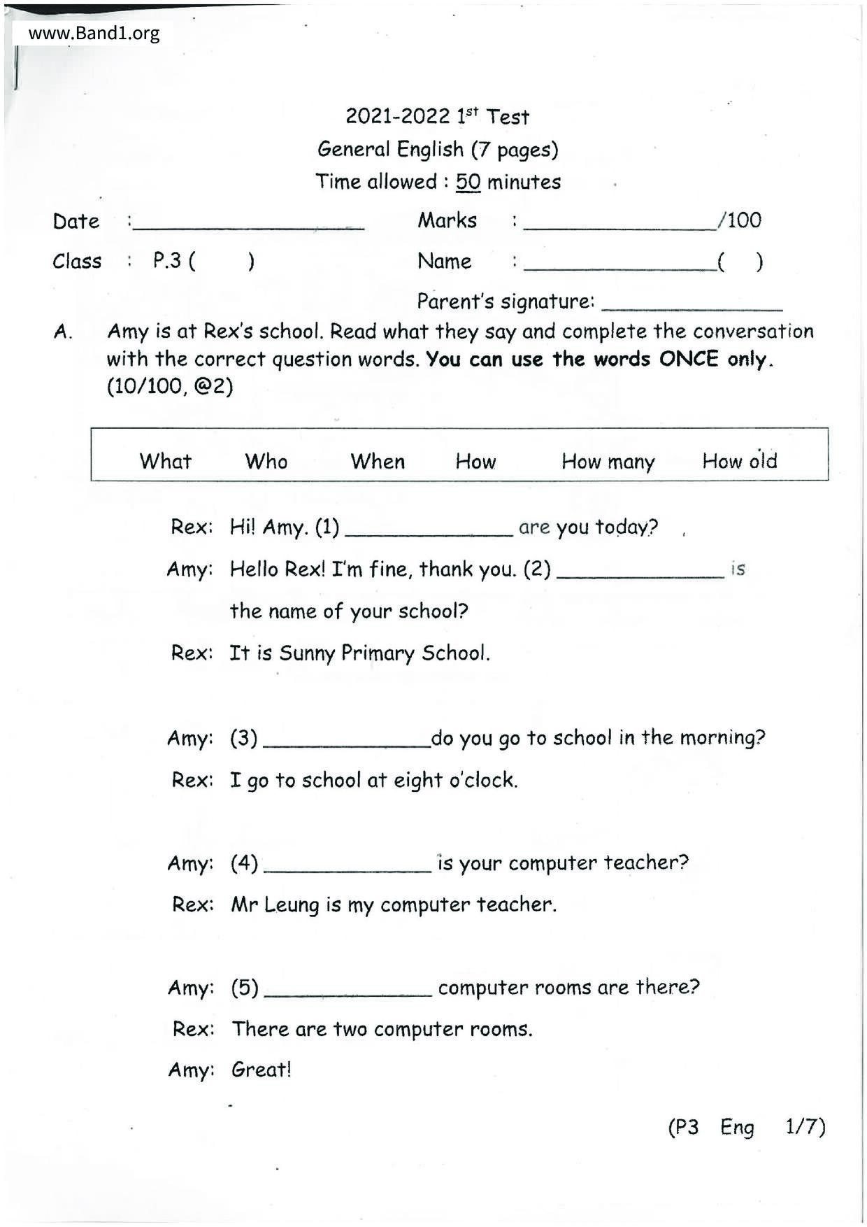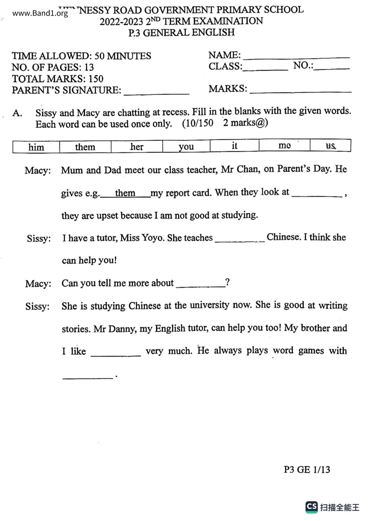 小三 英文 中華基督教會灣仔堂基道小學(九龍城)