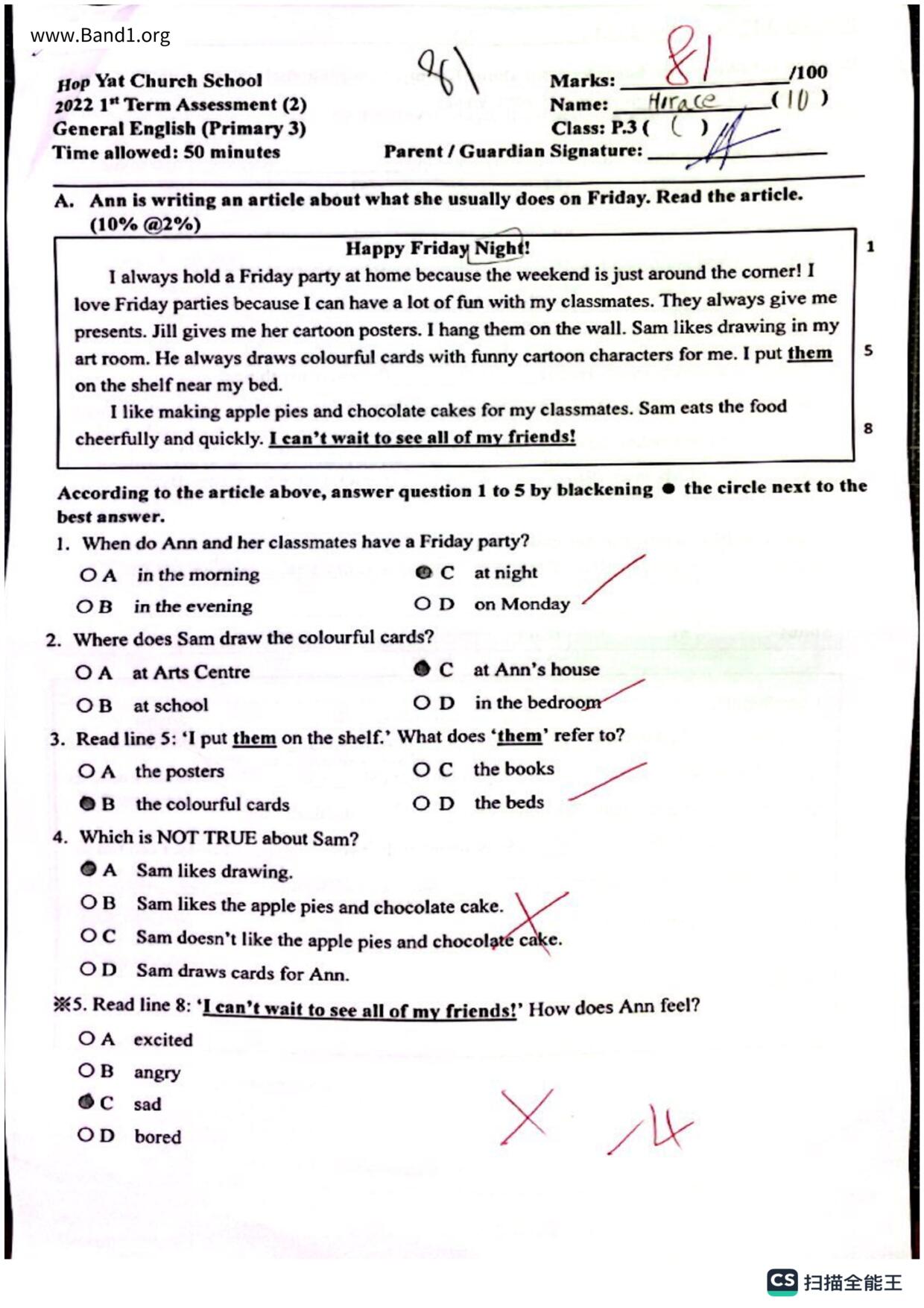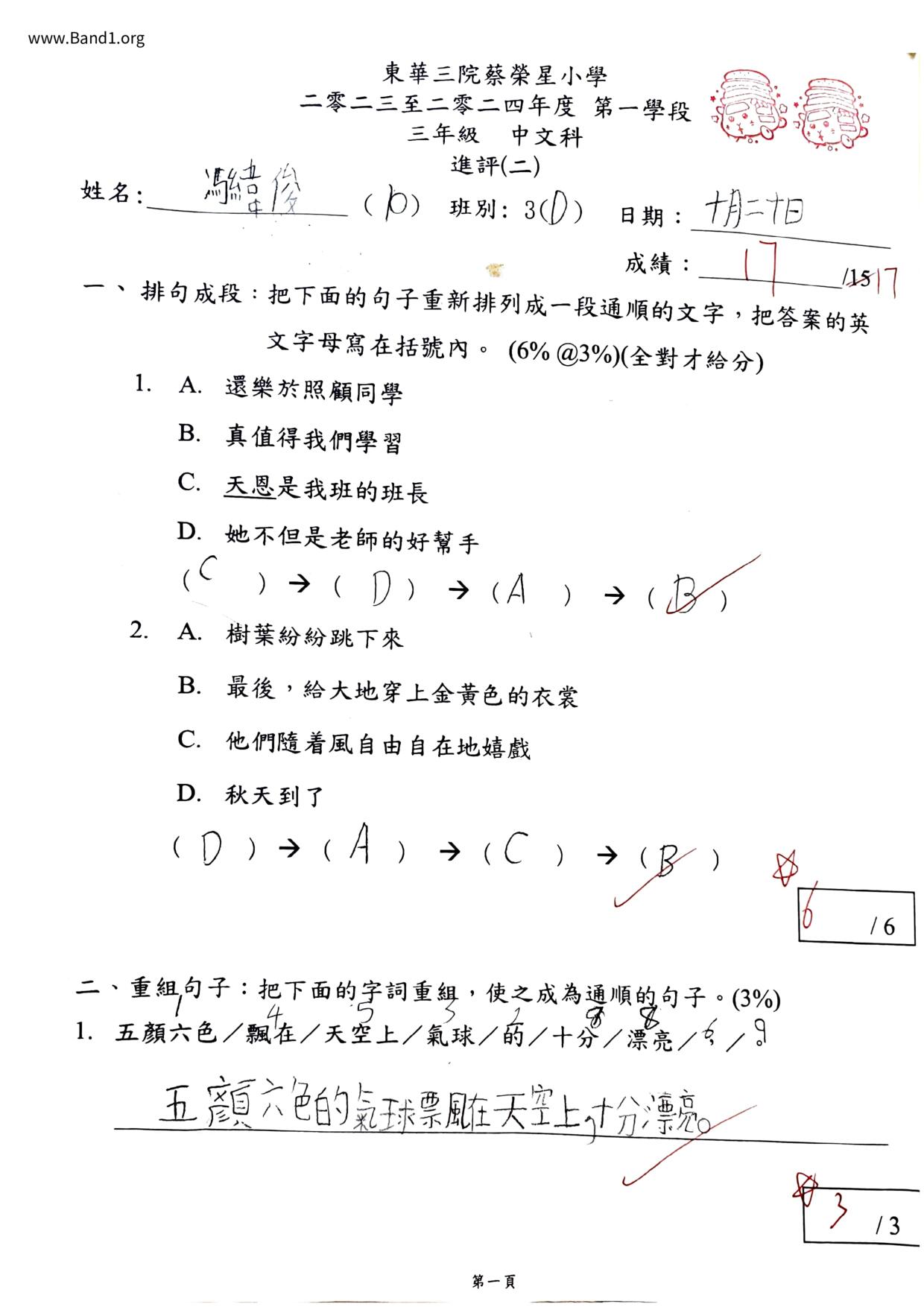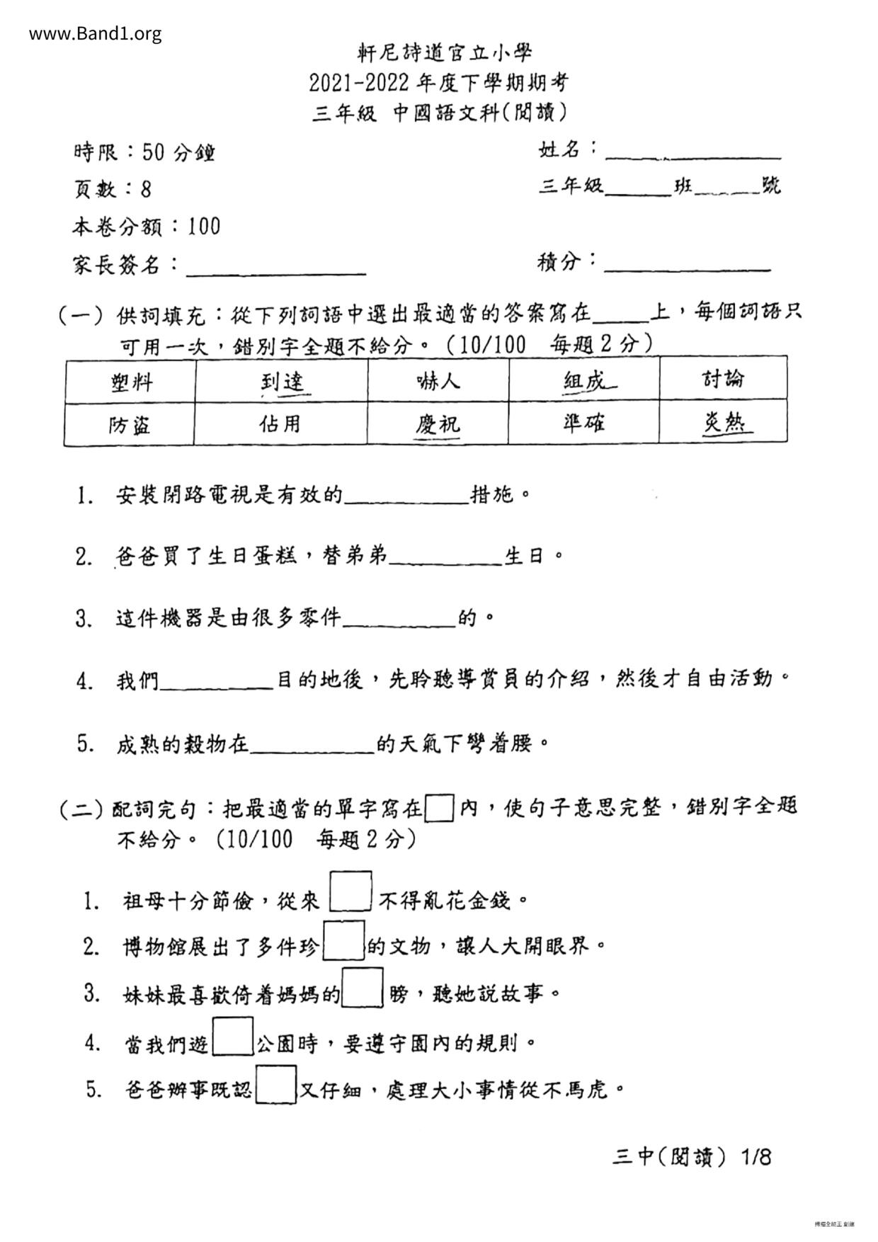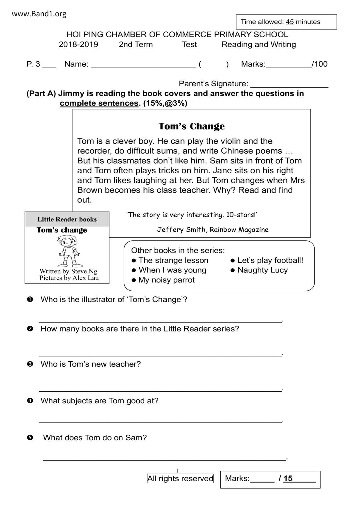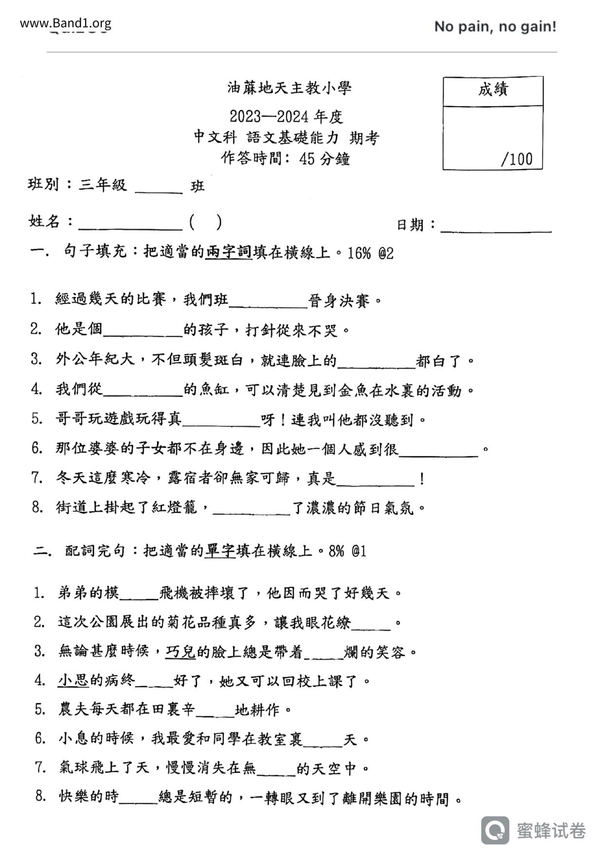 小三 英文 中華基督教會灣仔堂基道小學(九龍城)