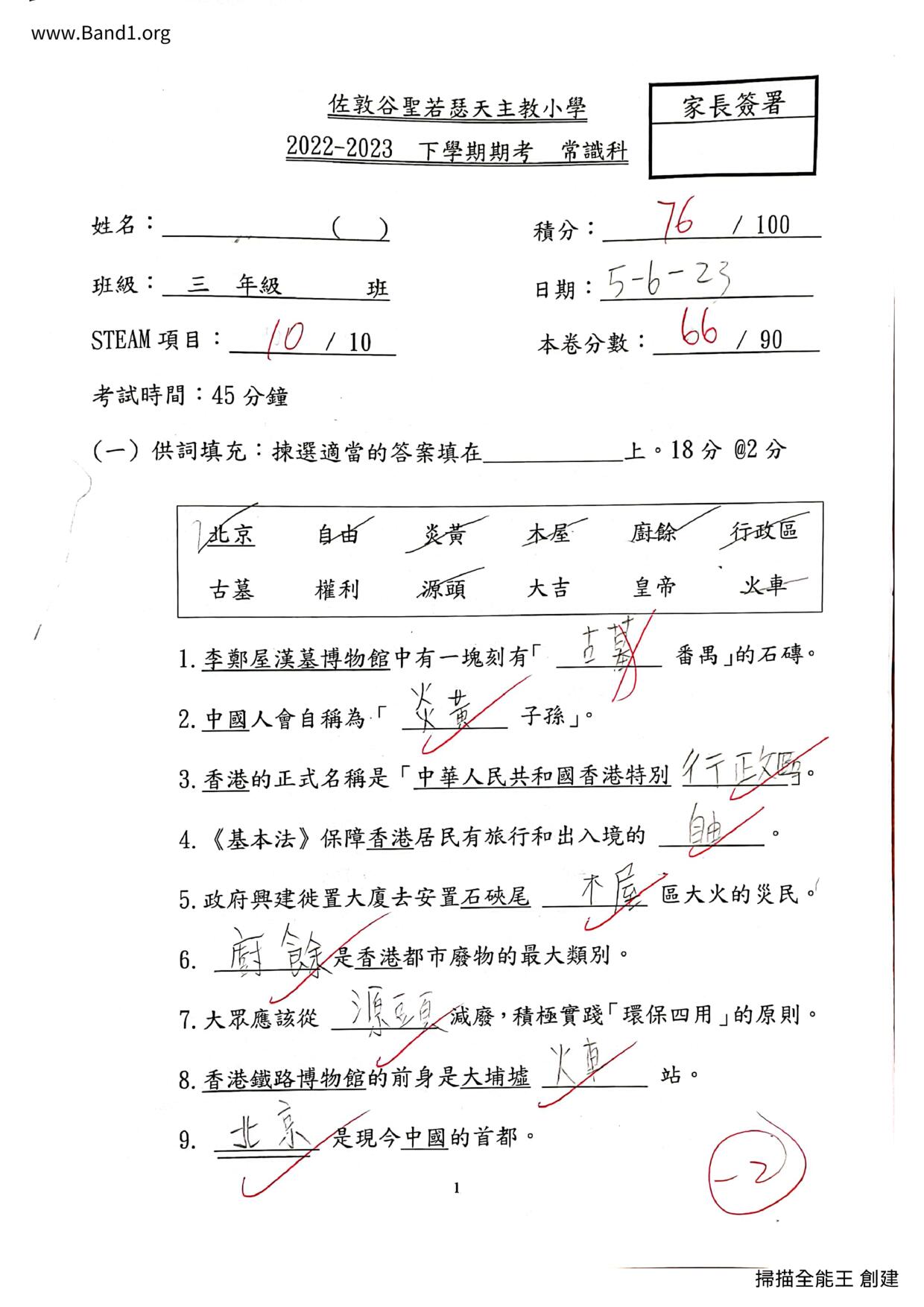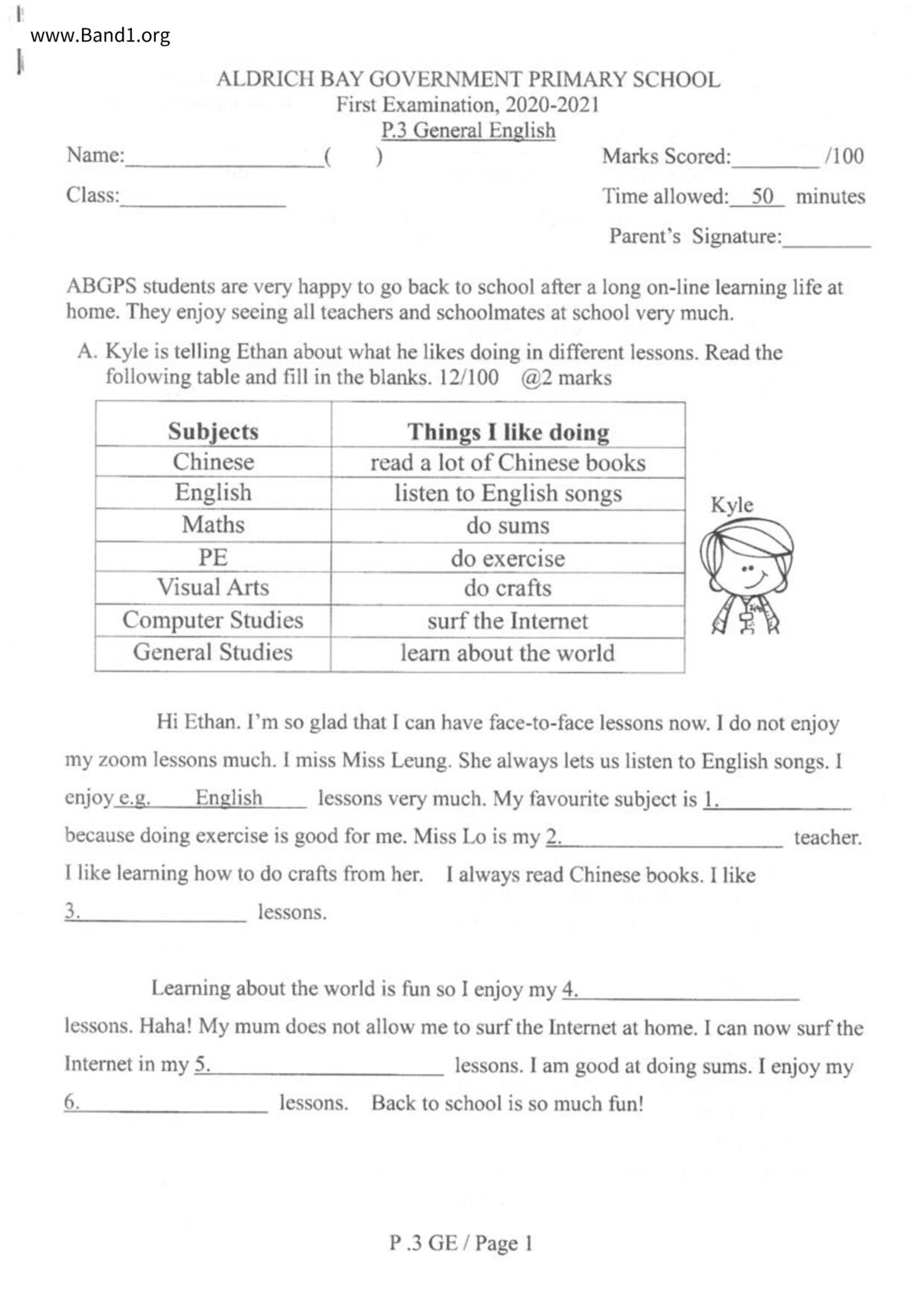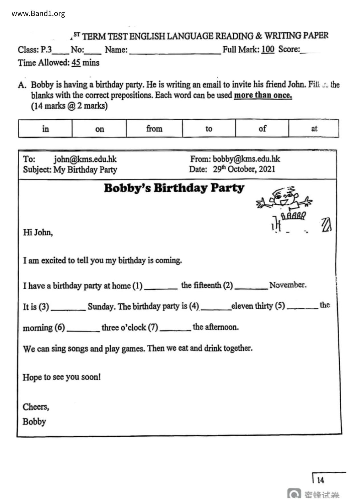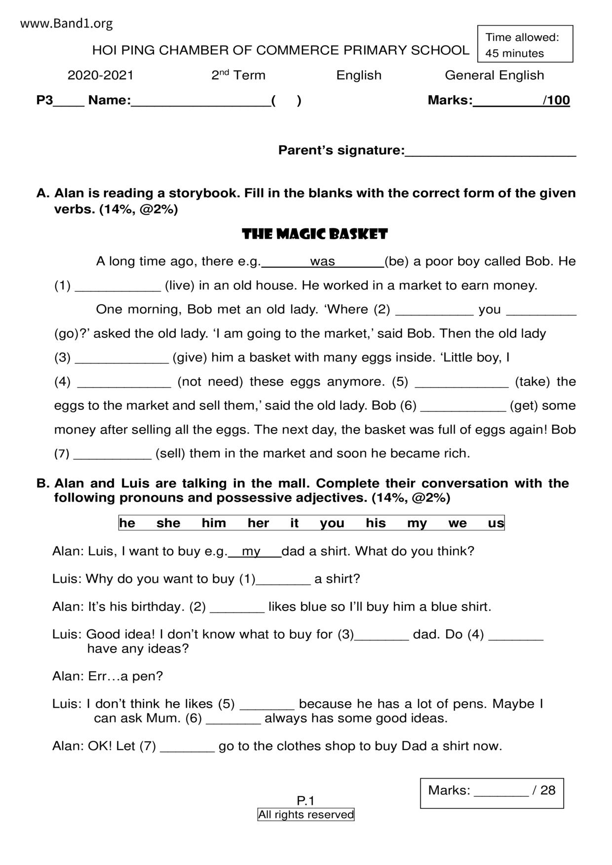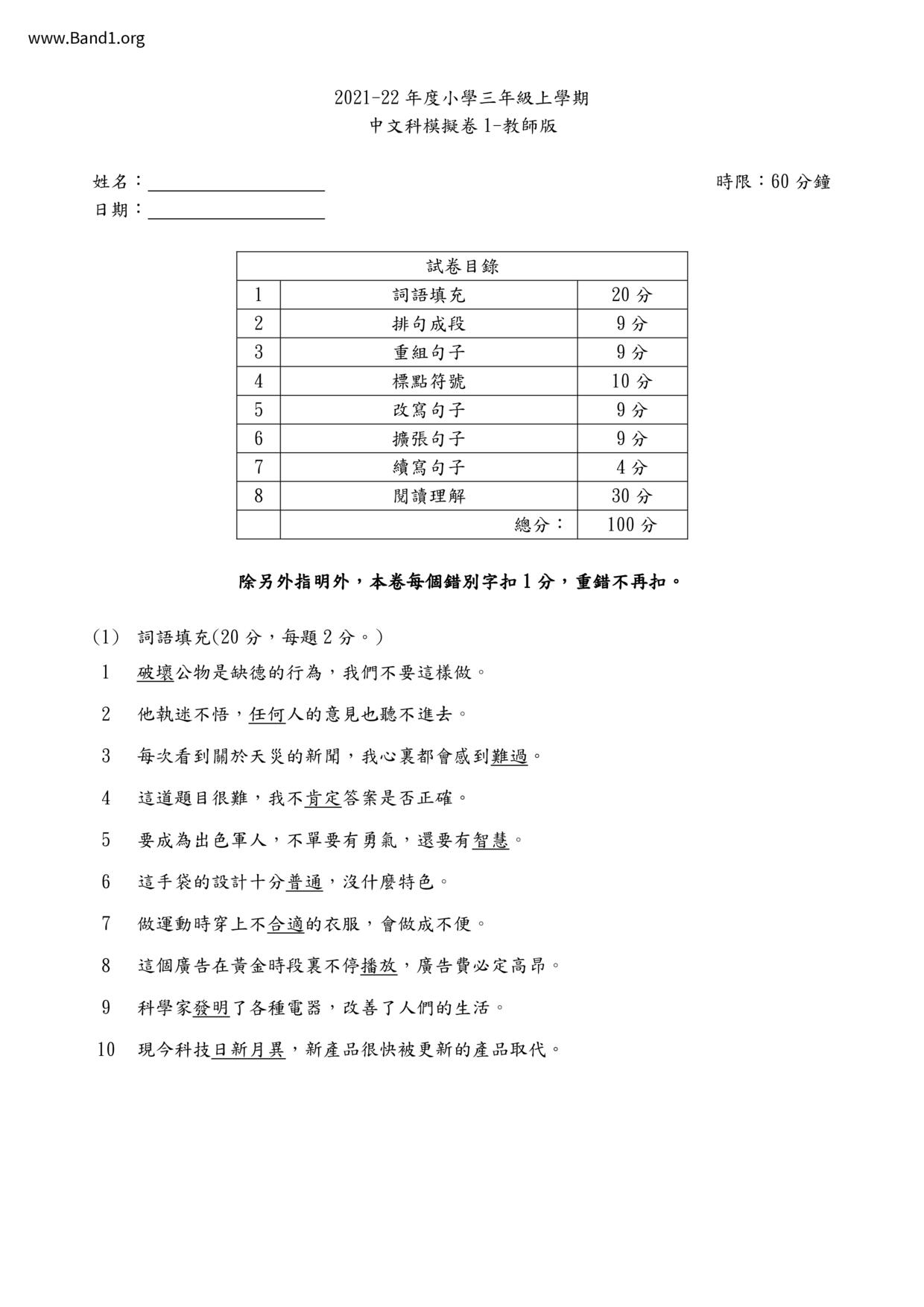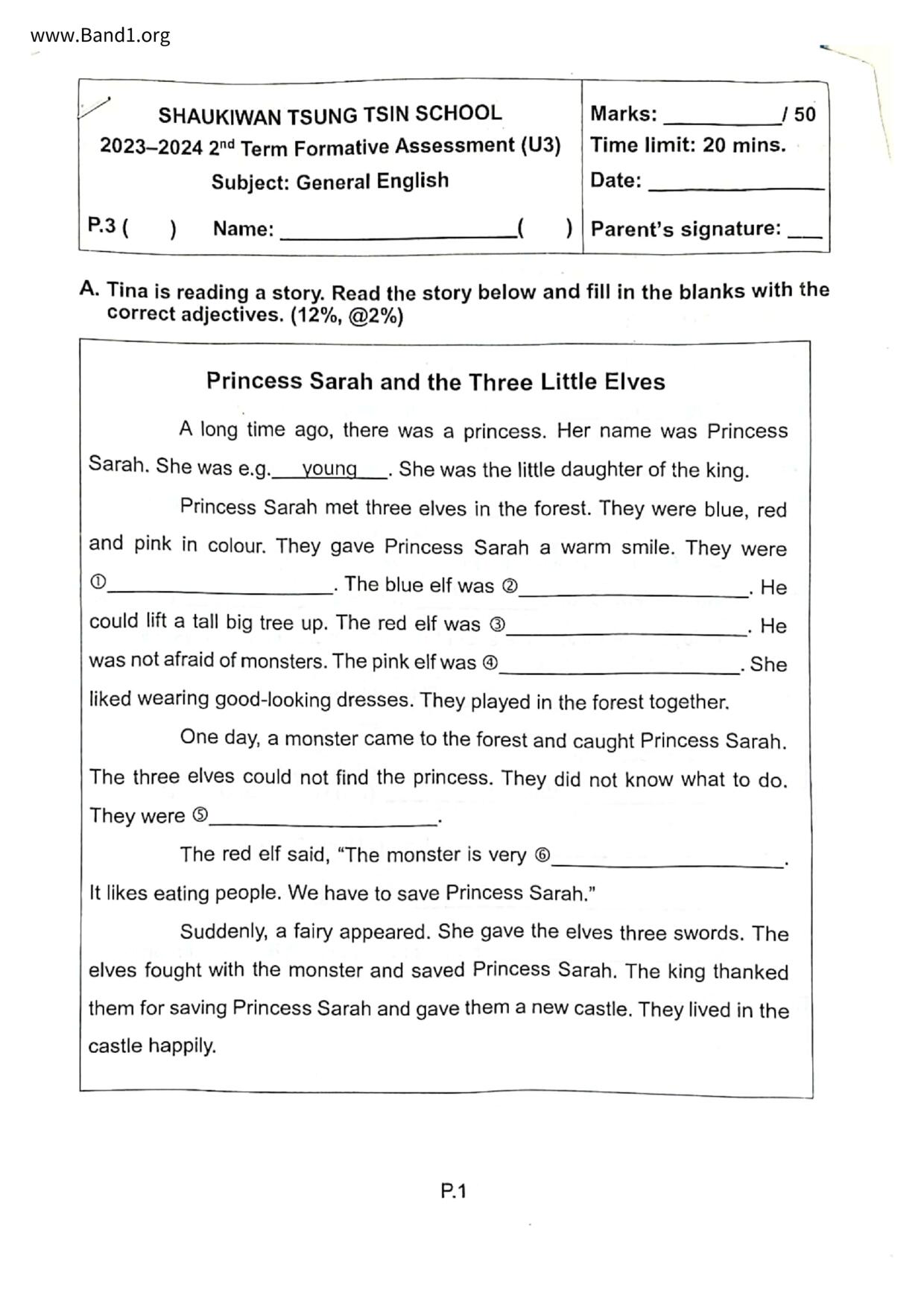 小三 英文 中華基督教會灣仔堂基道小學(九龍城)