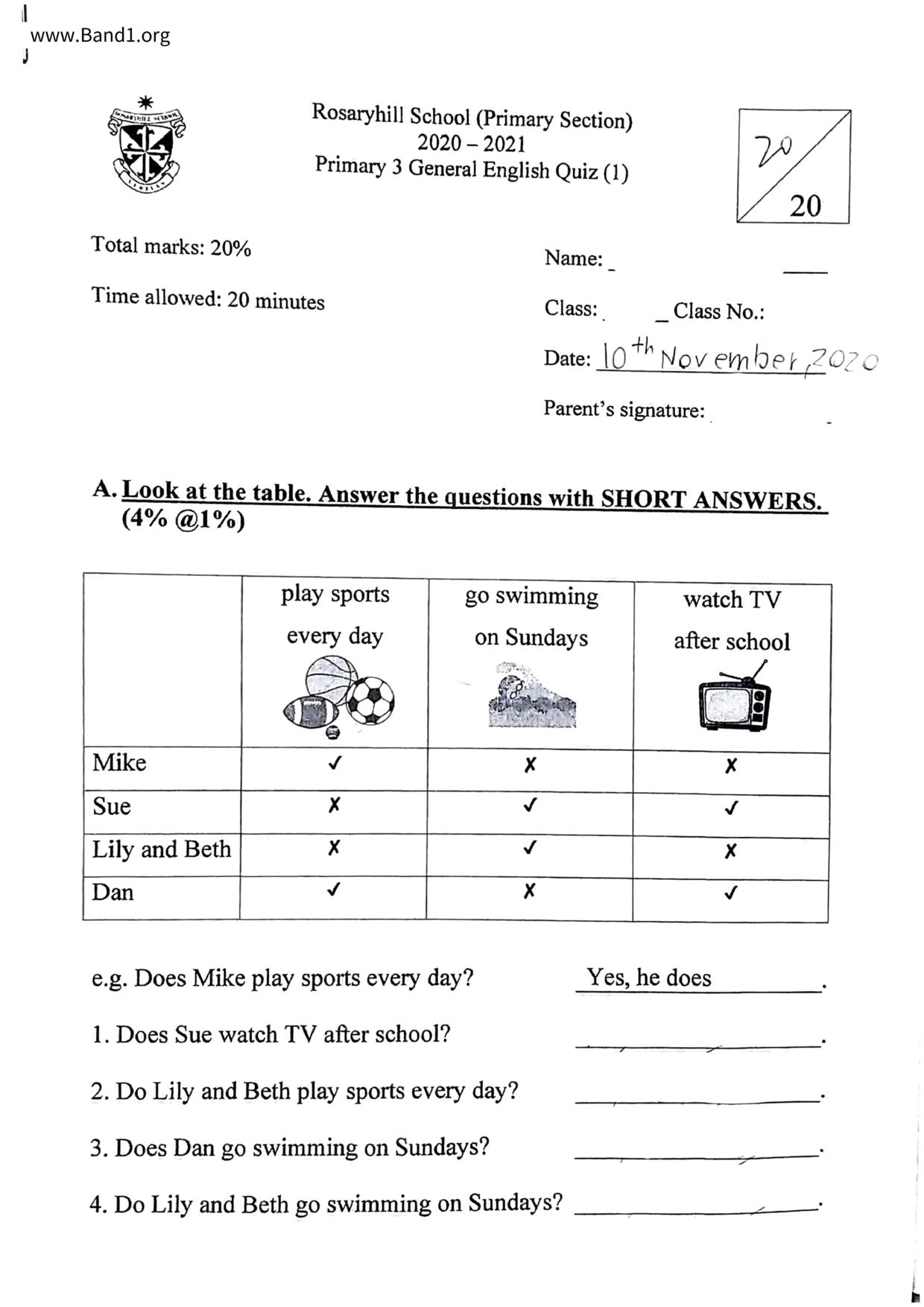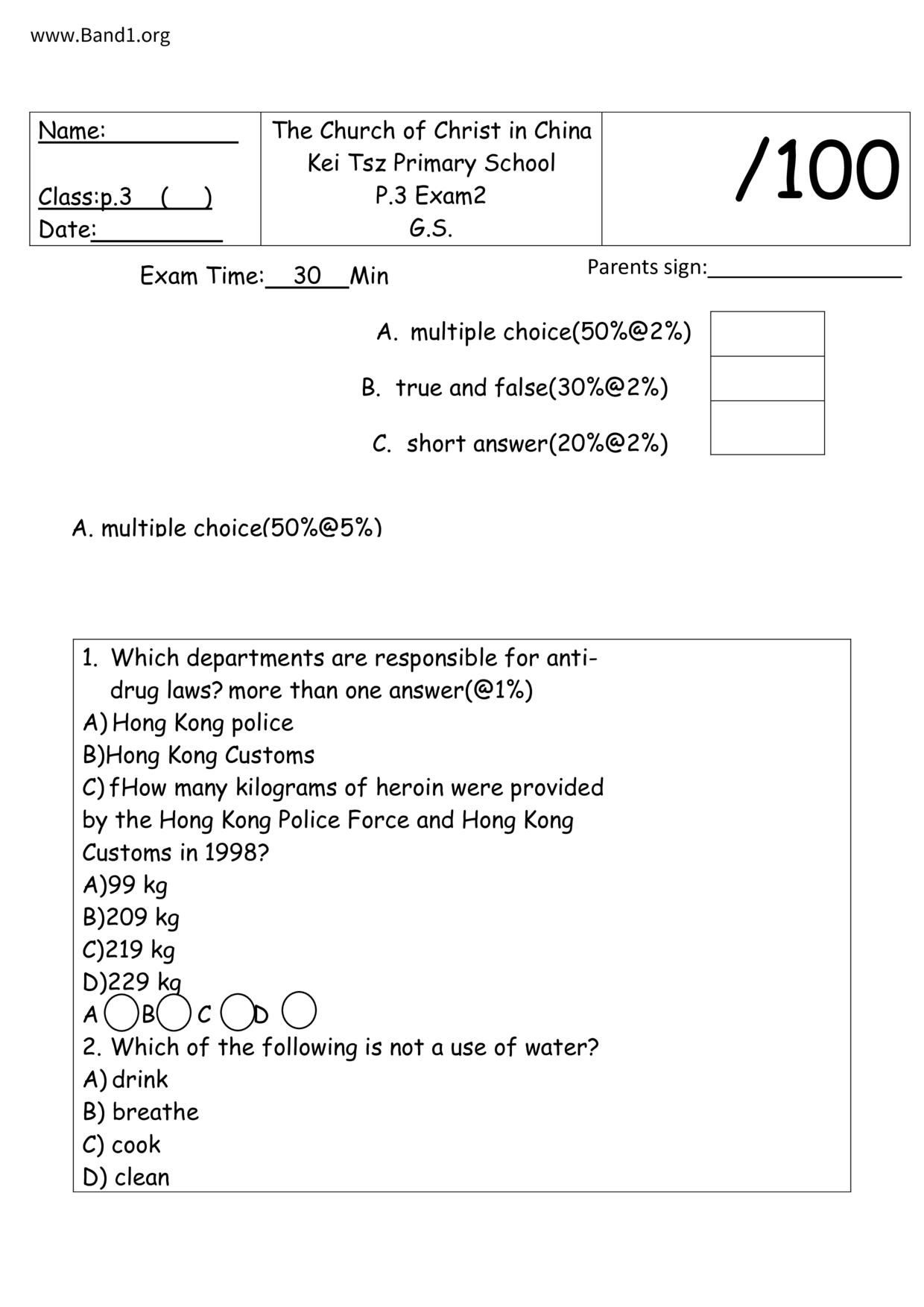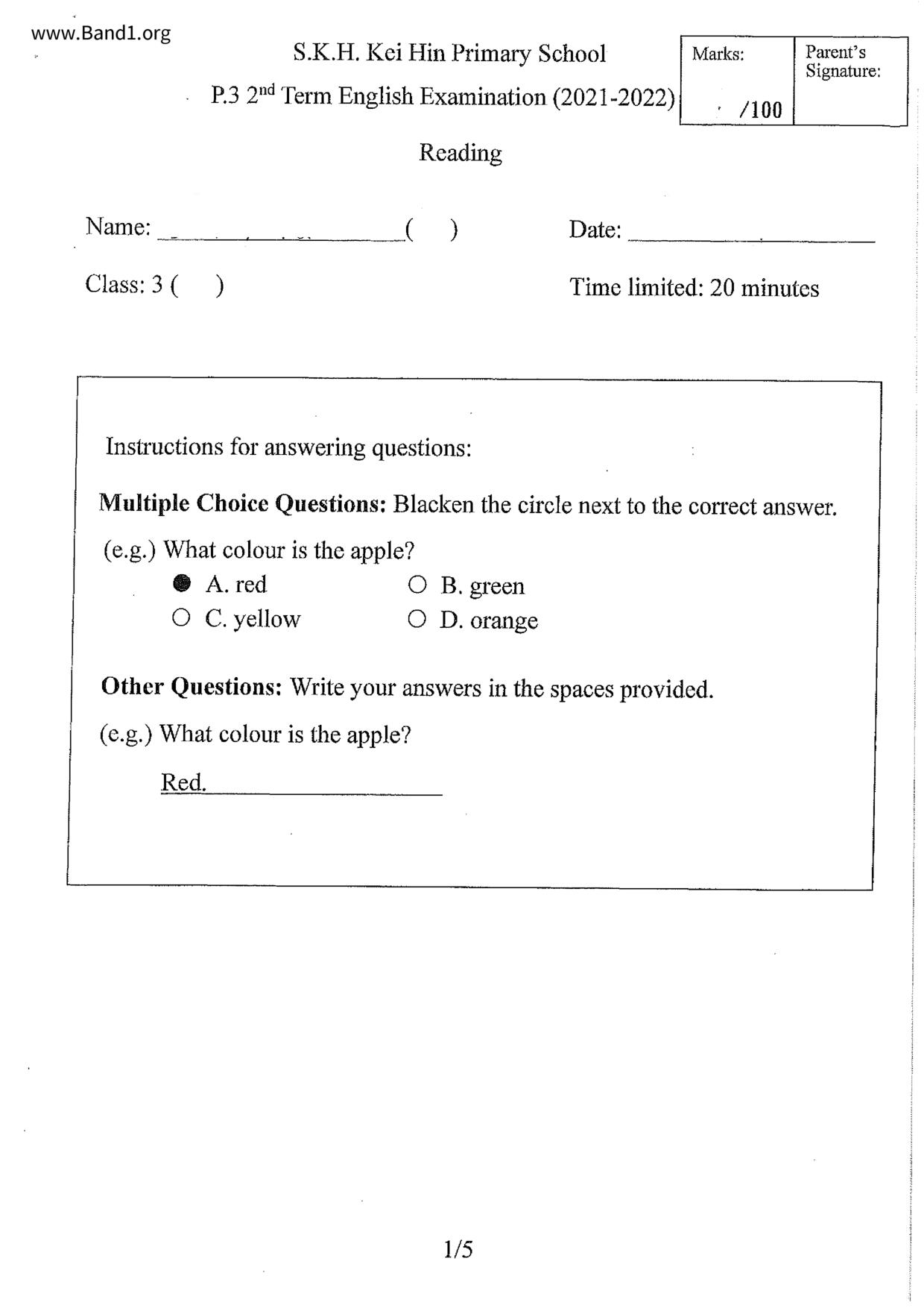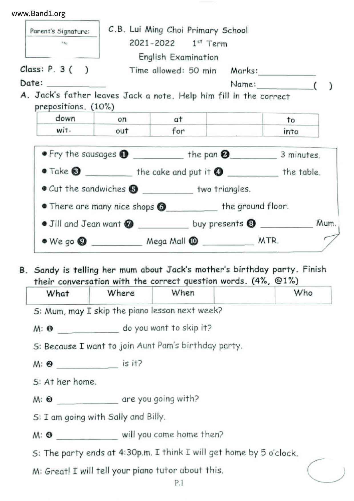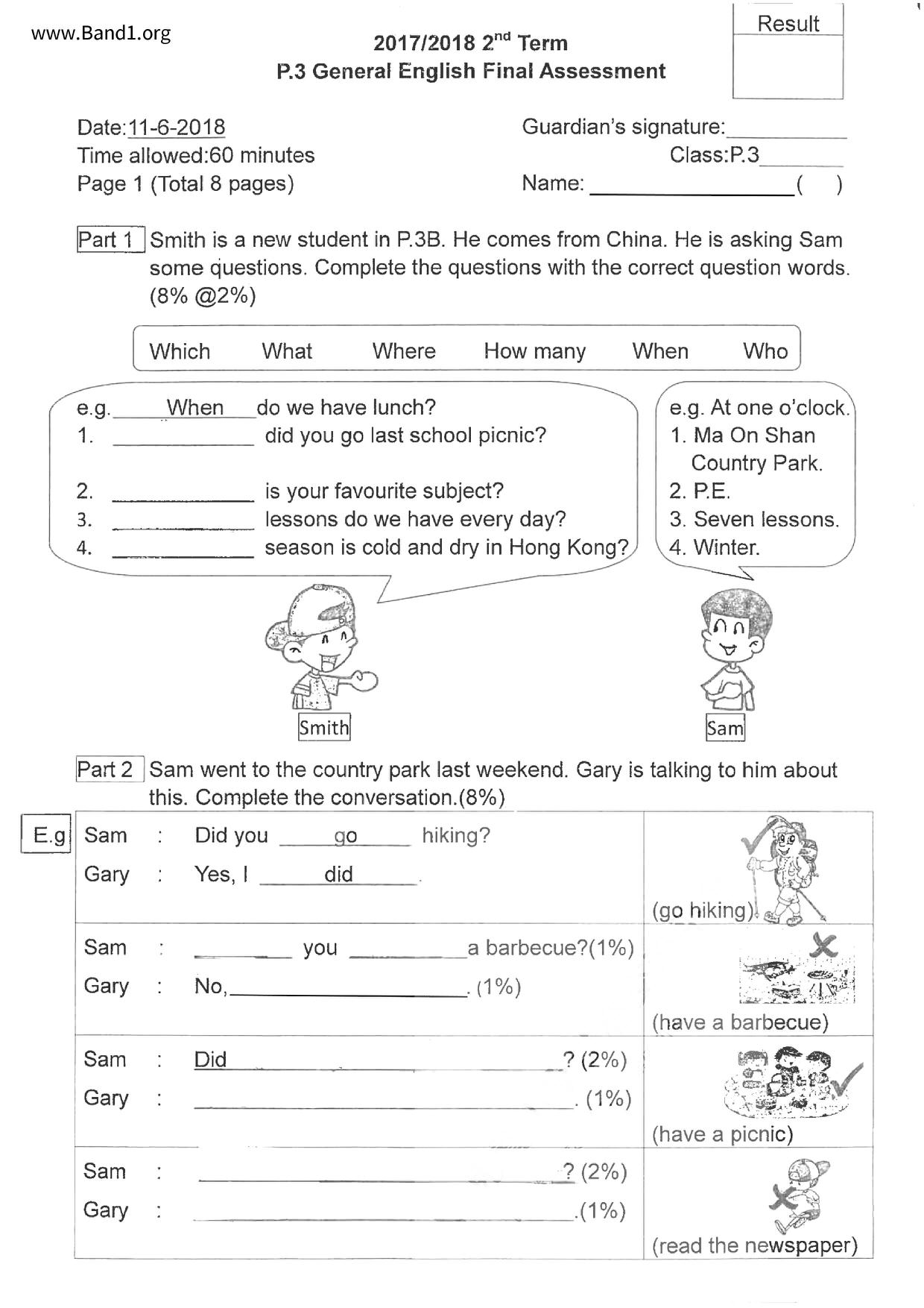 小三 英文 中華基督教會灣仔堂基道小學(九龍城)