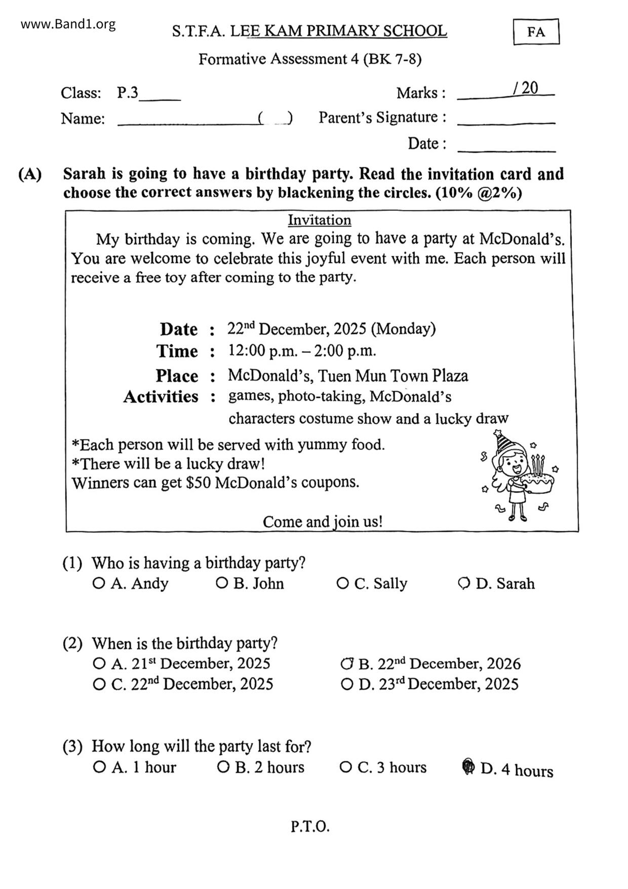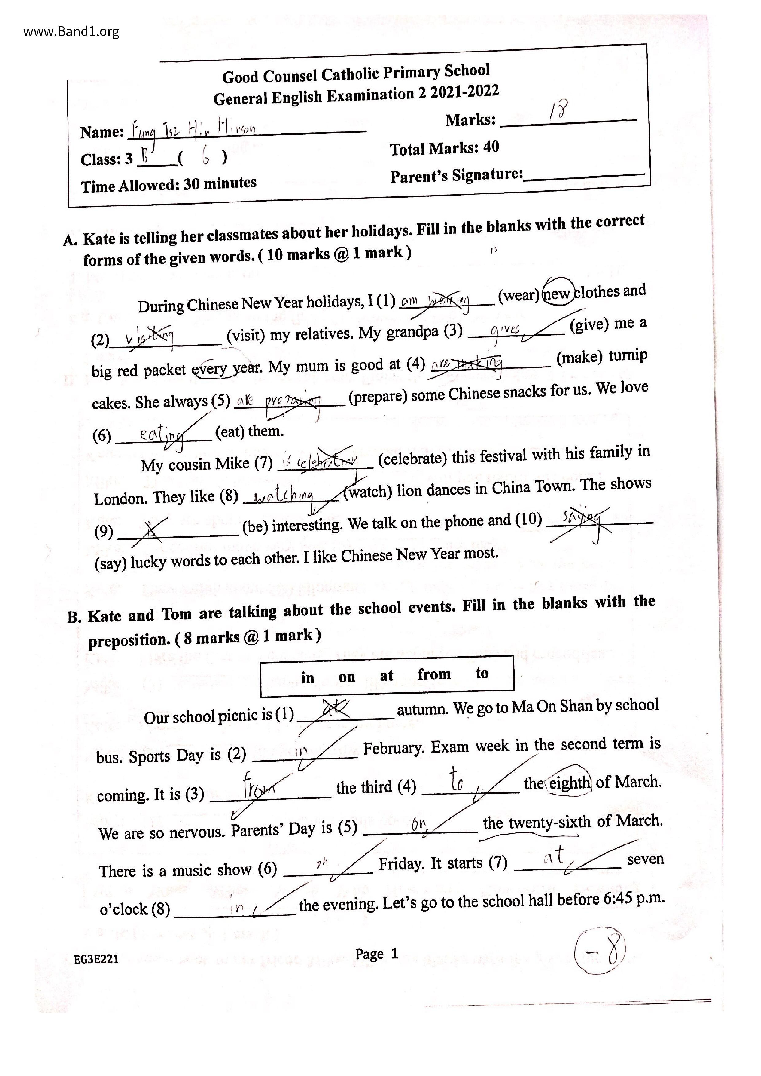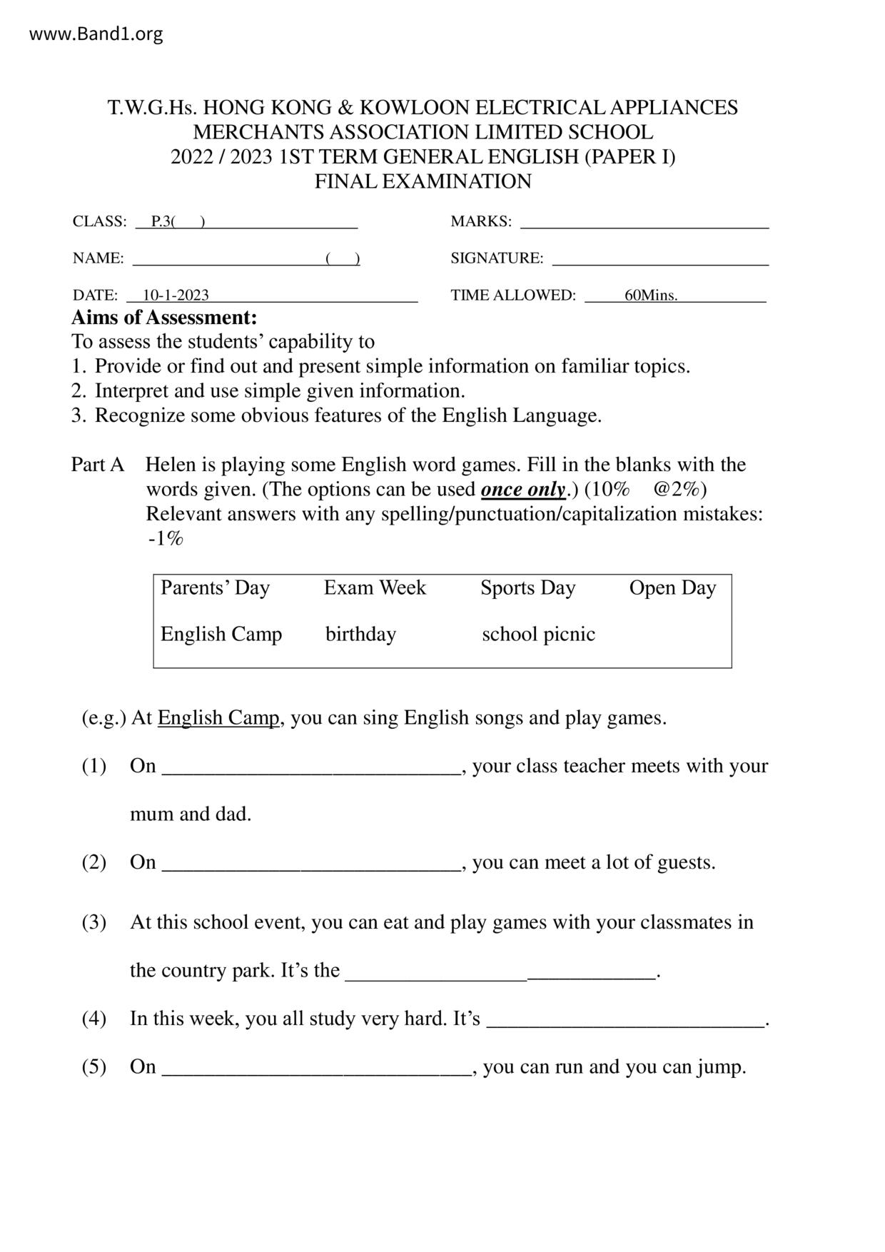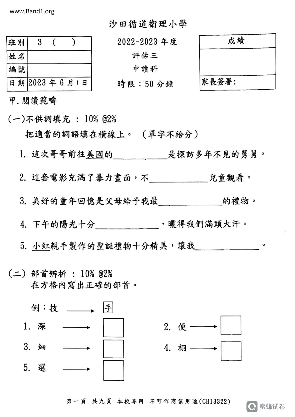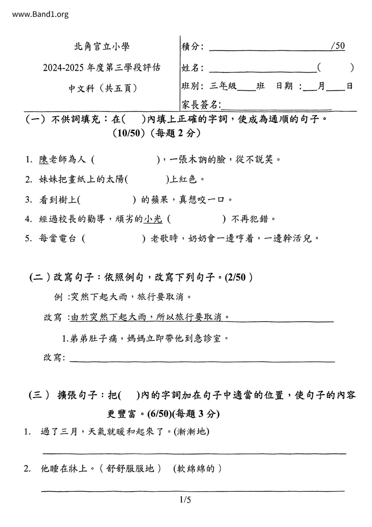小三 英文 中華基督教會灣仔堂基道小學(九龍城)
