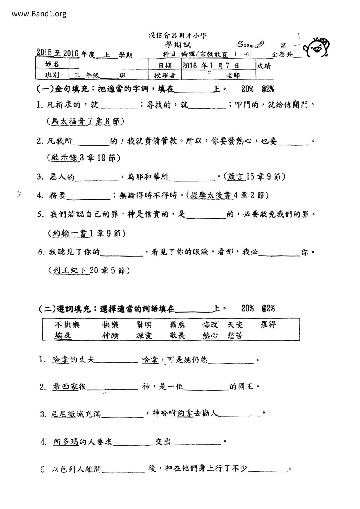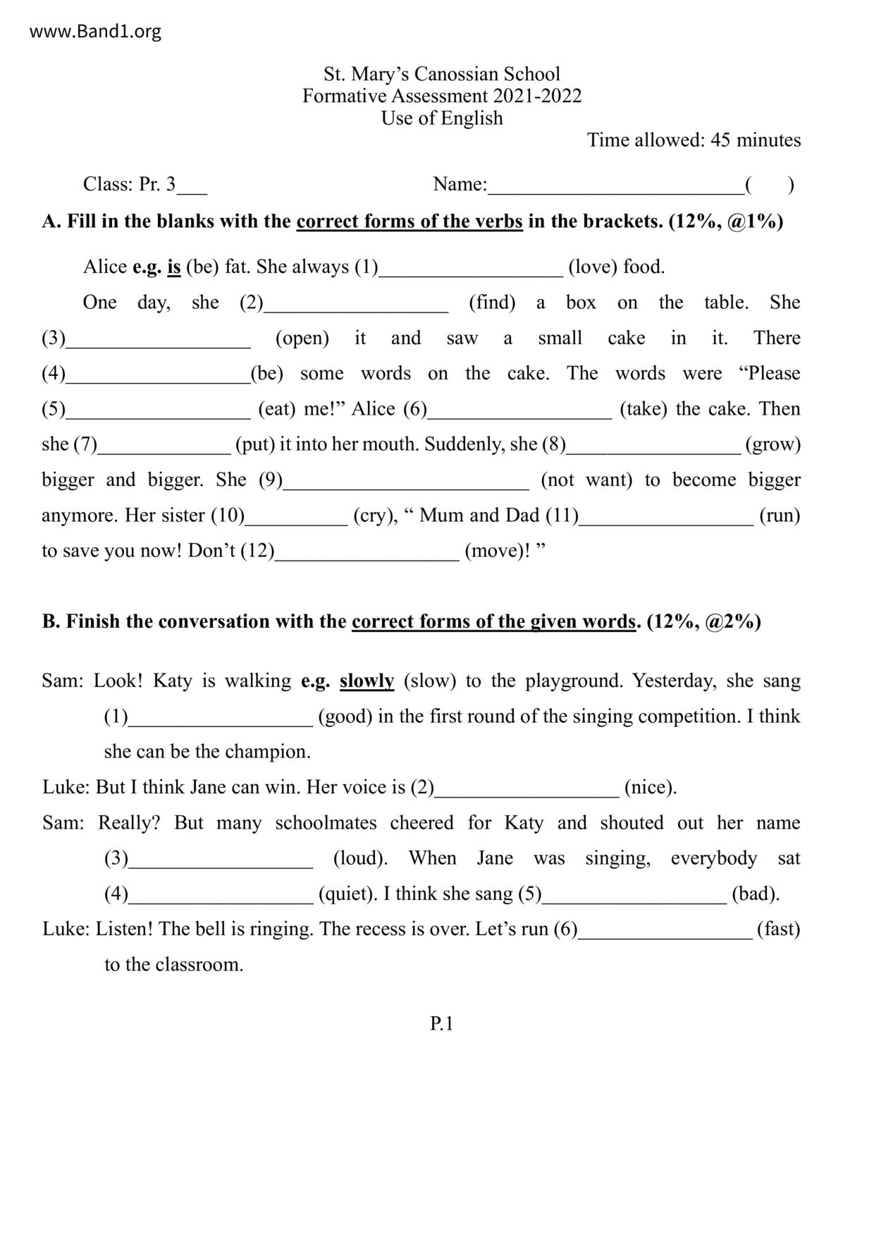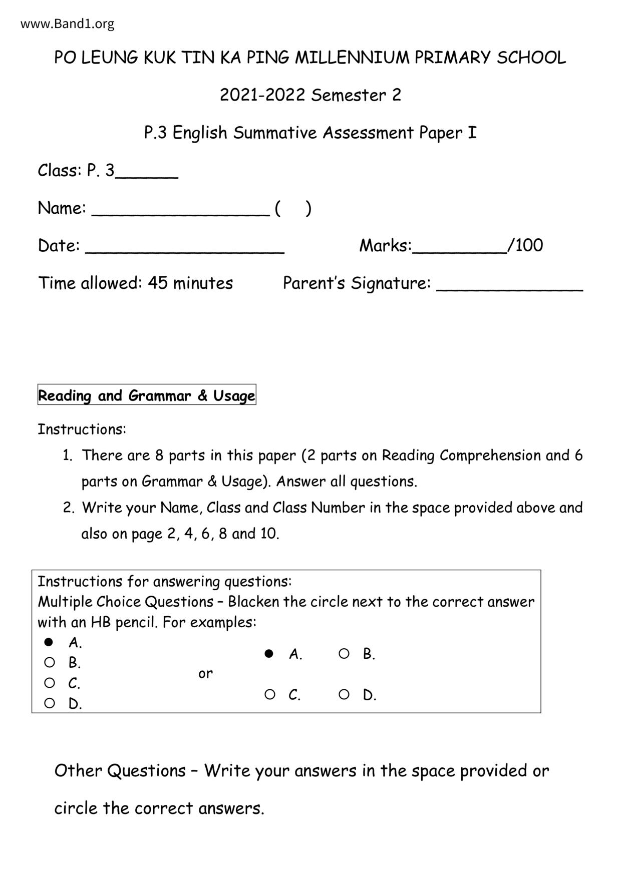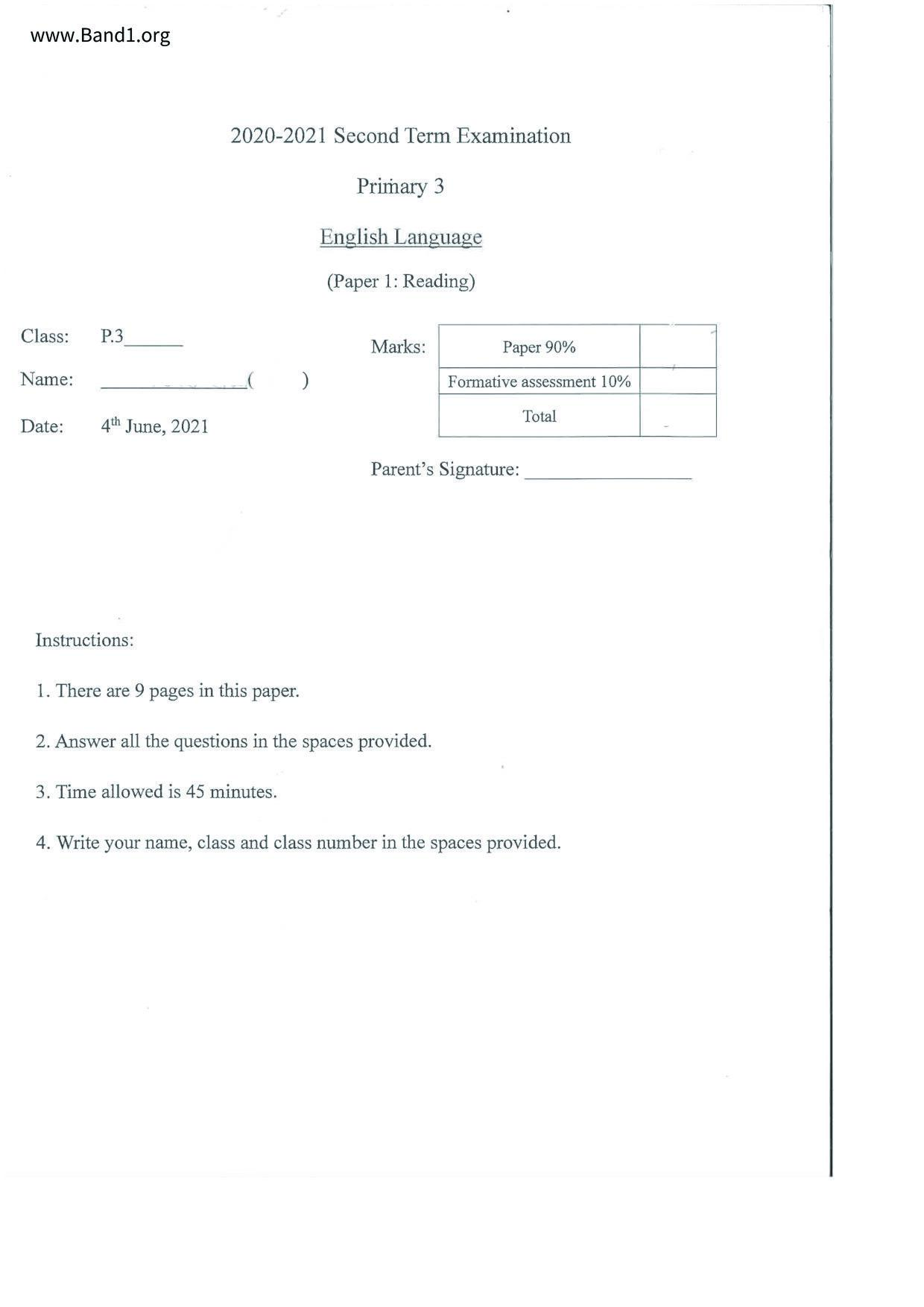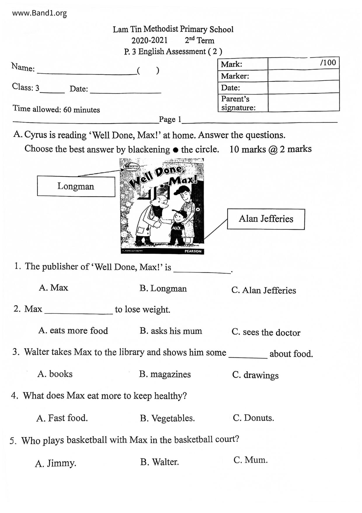 小三 英文 中華基督教會灣仔堂基道小學(九龍城)