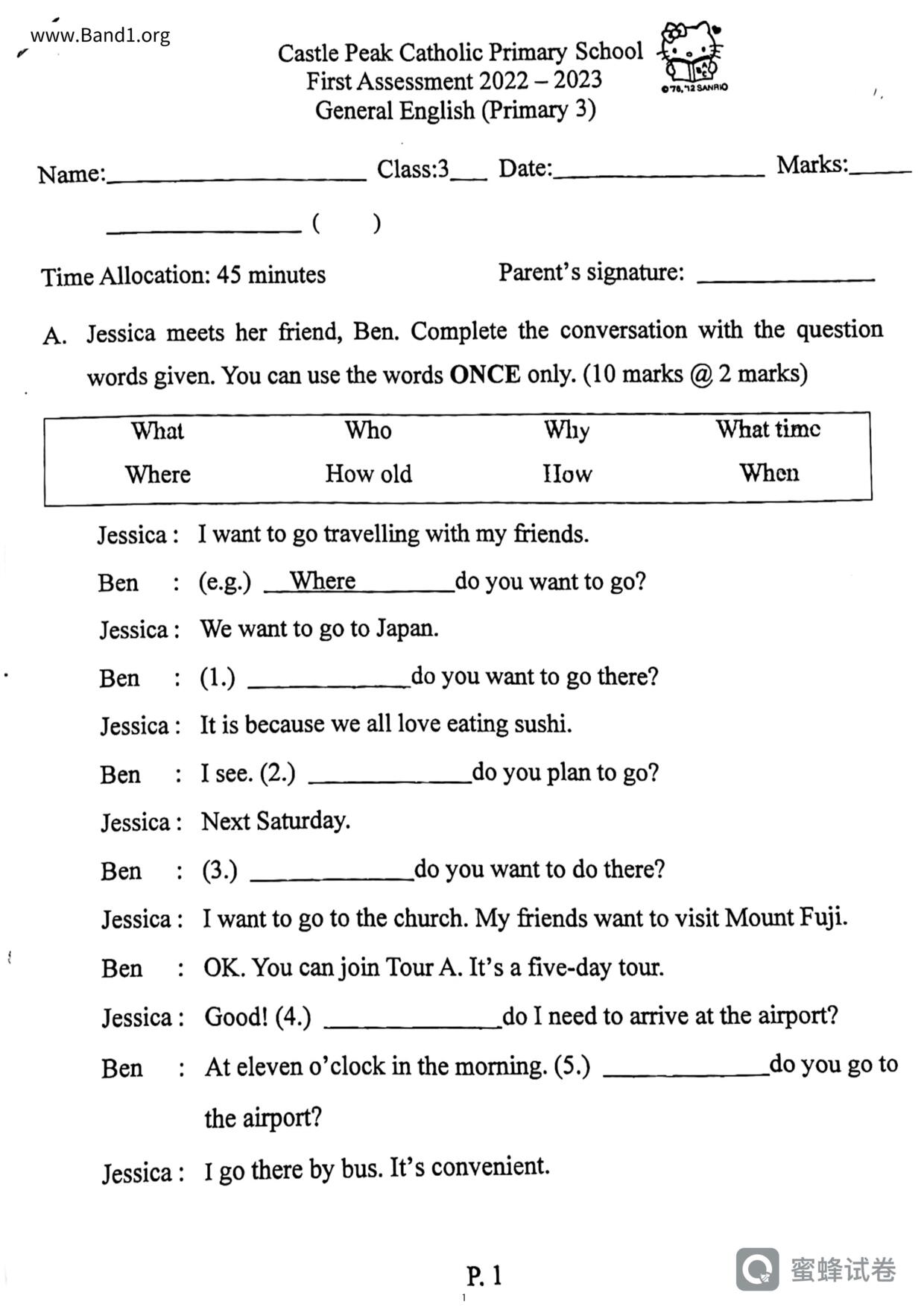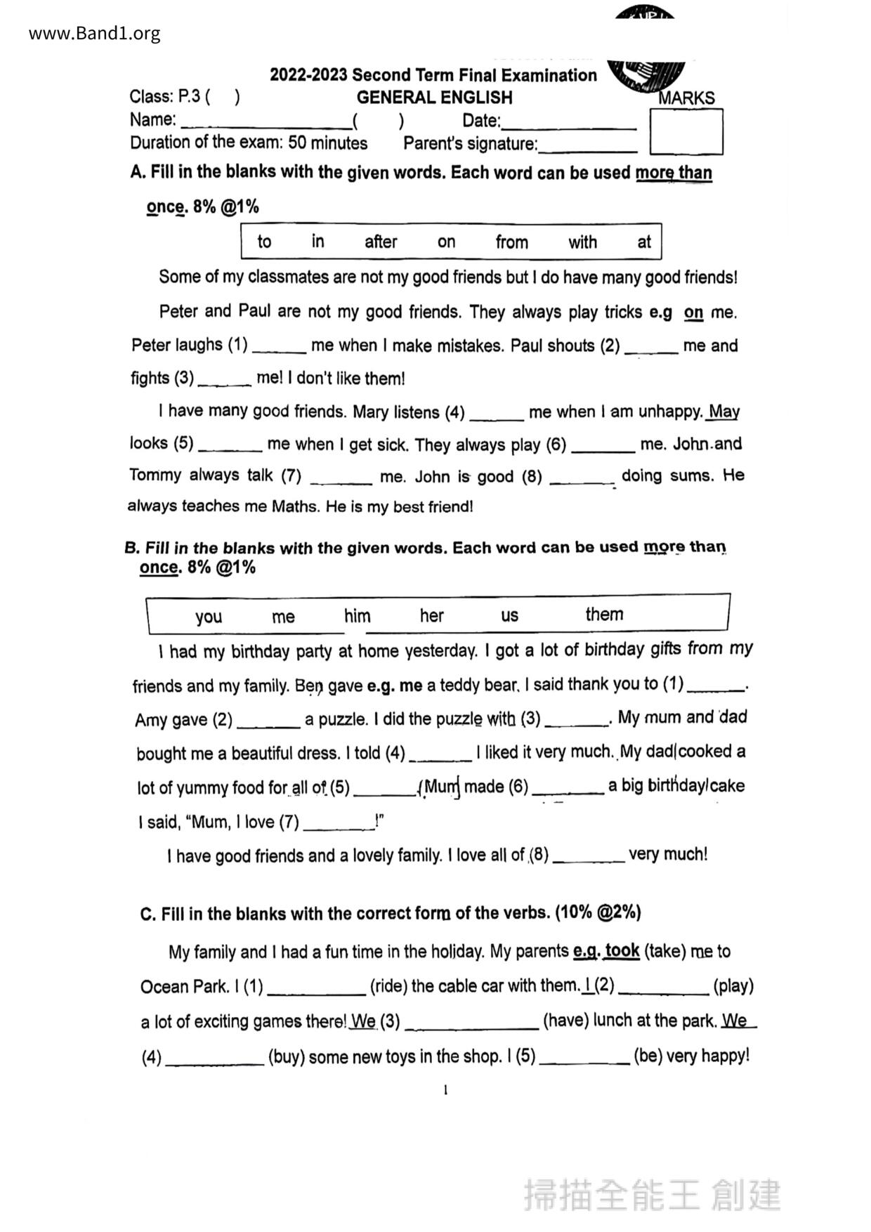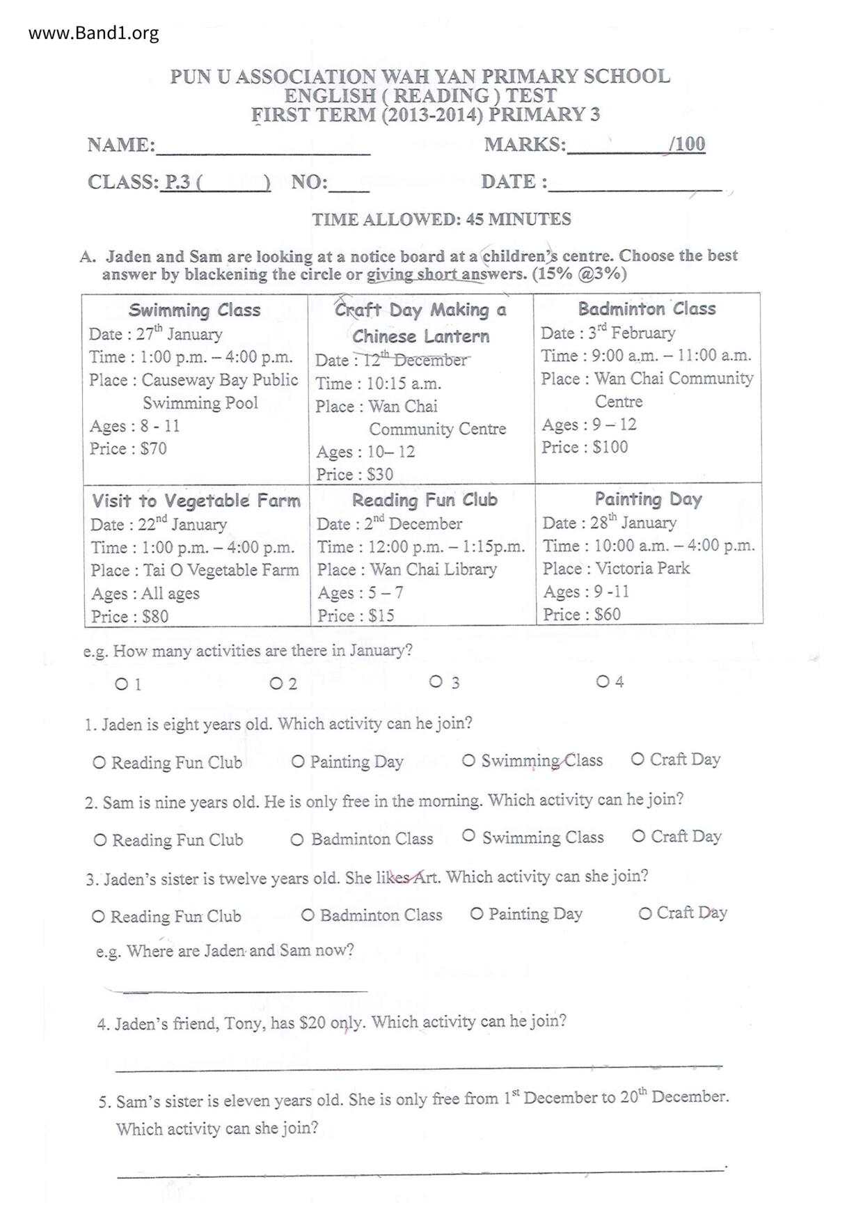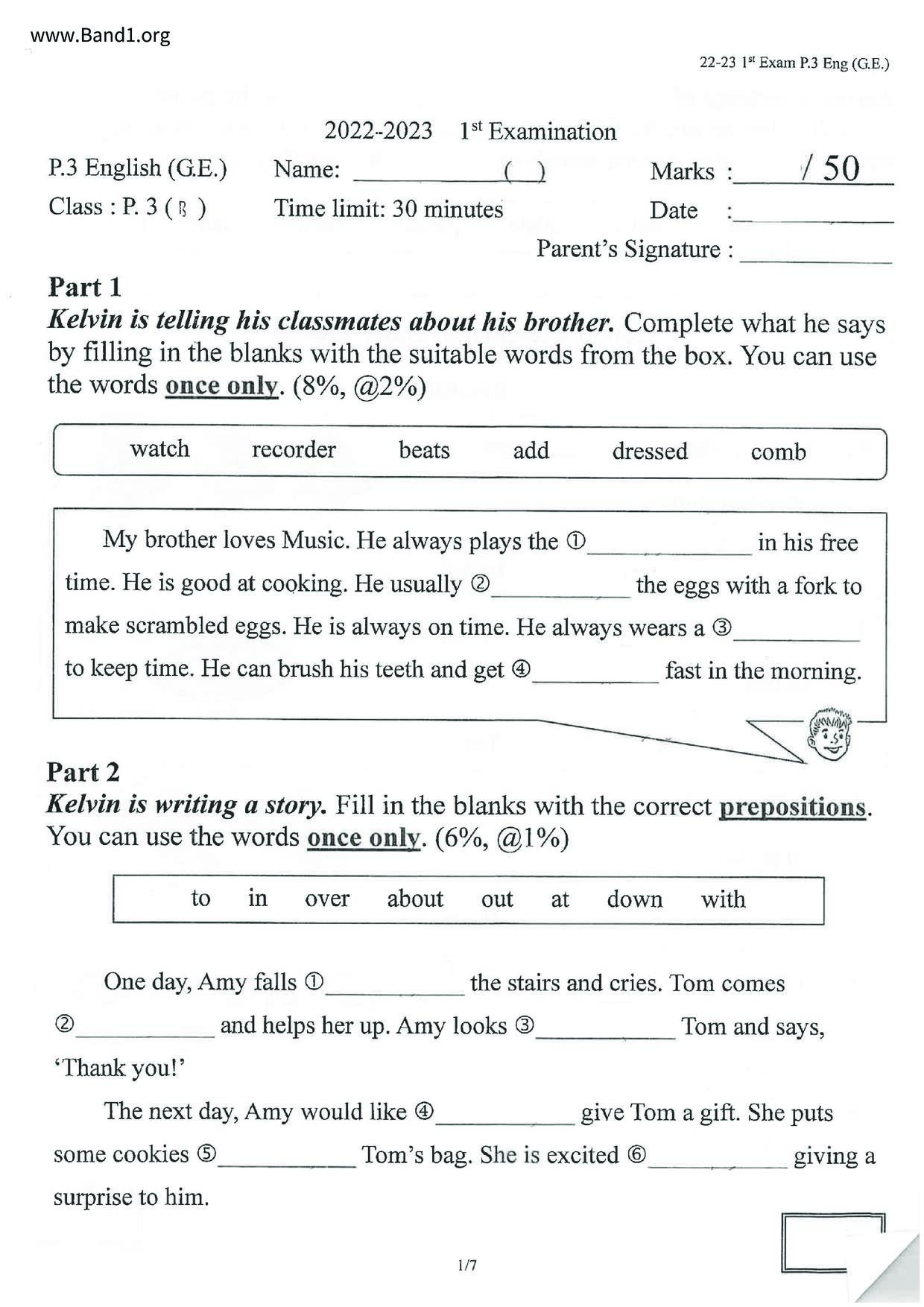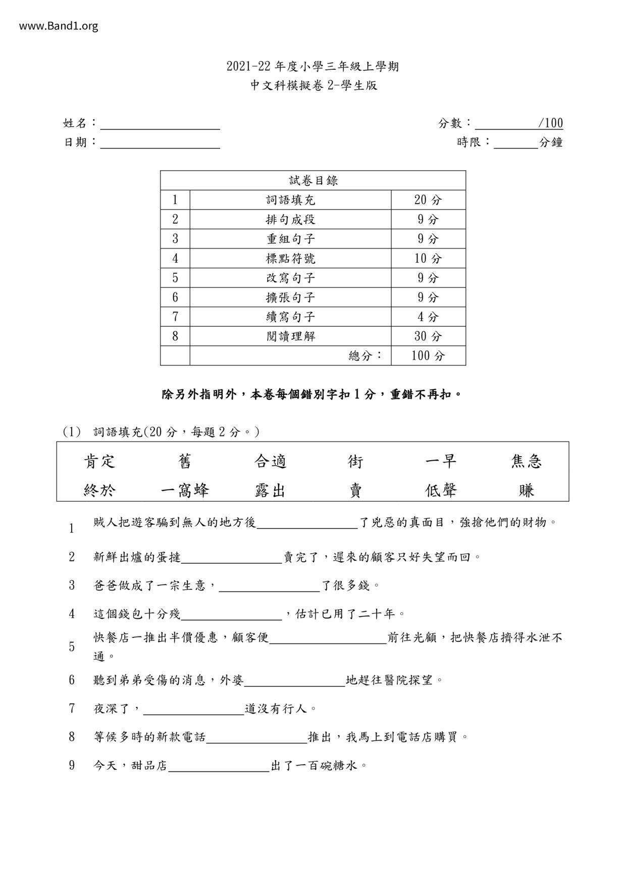小三 英文 中華基督教會灣仔堂基道小學(九龍城)