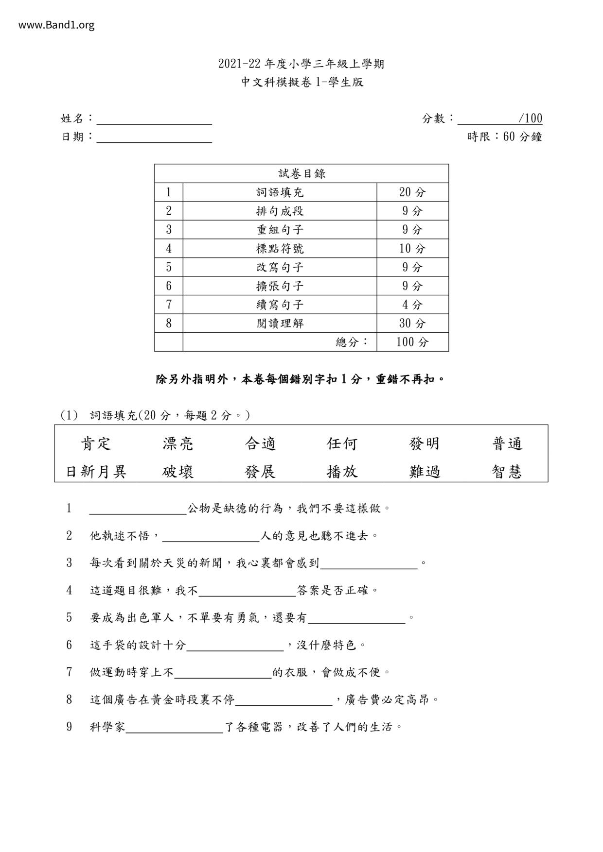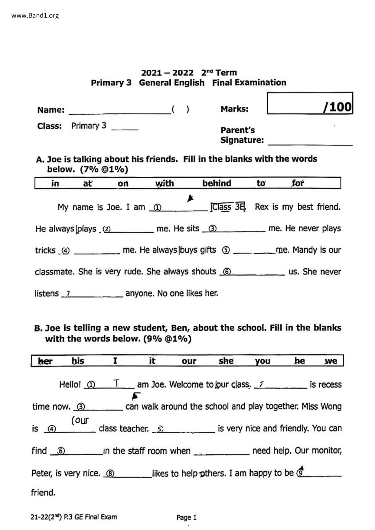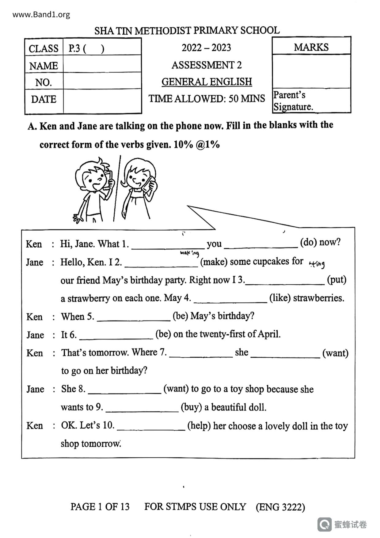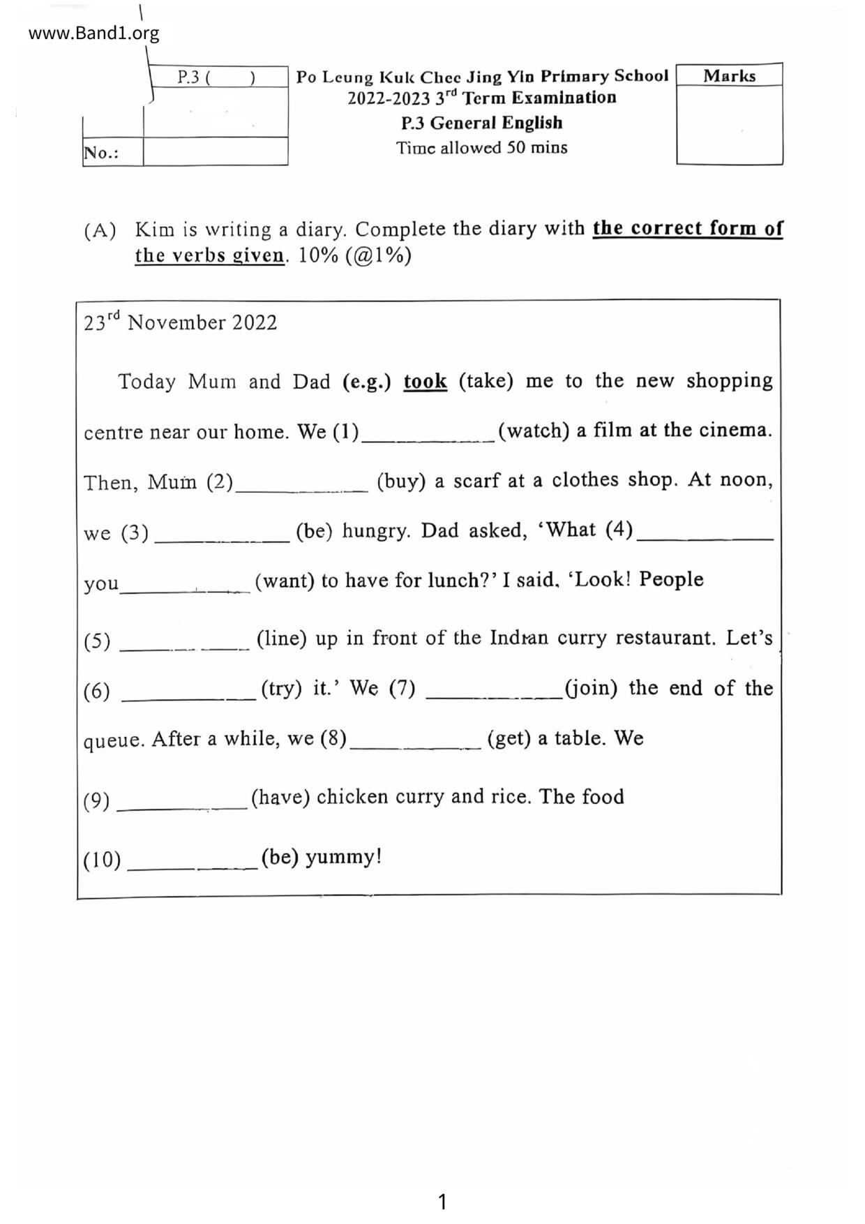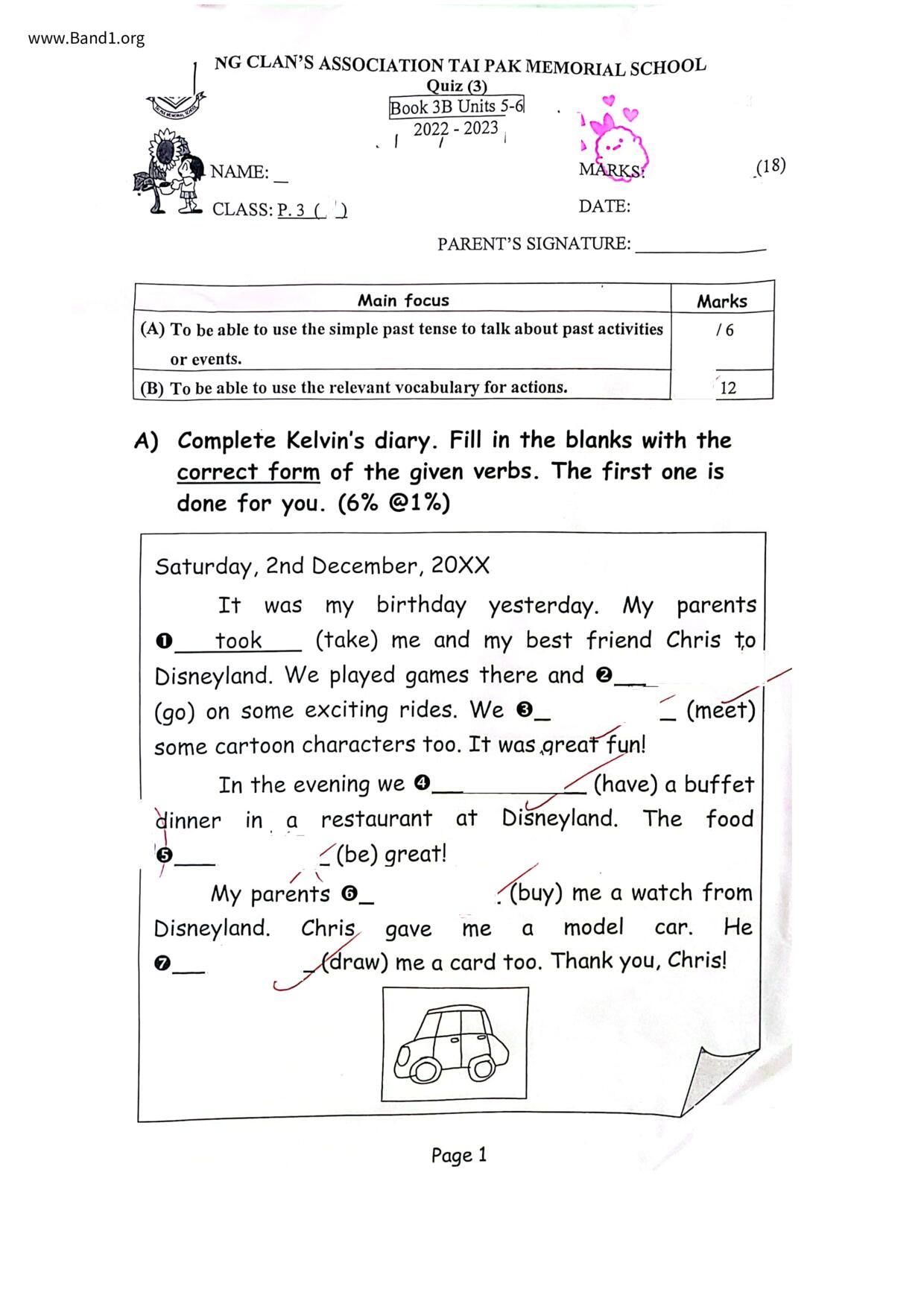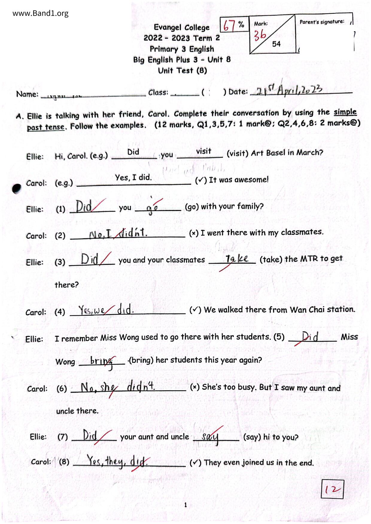 小三 英文 中華基督教會灣仔堂基道小學(九龍城)