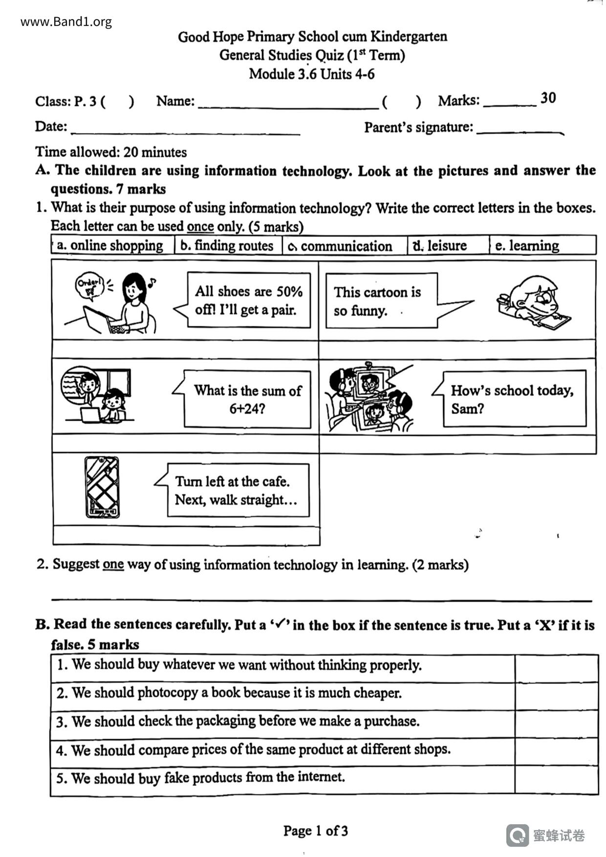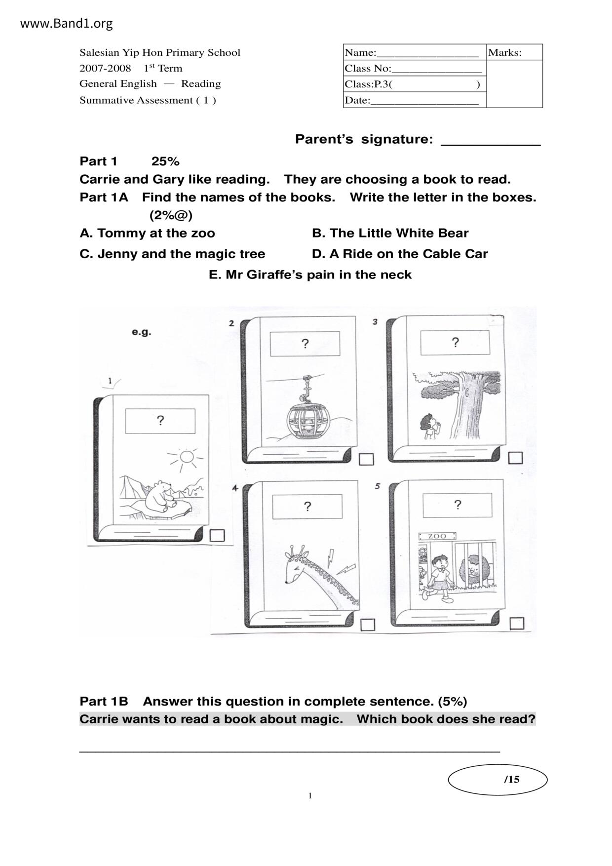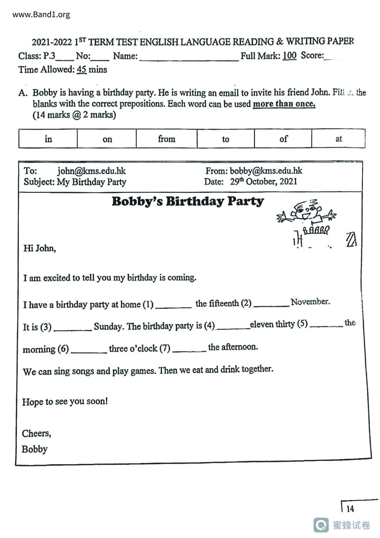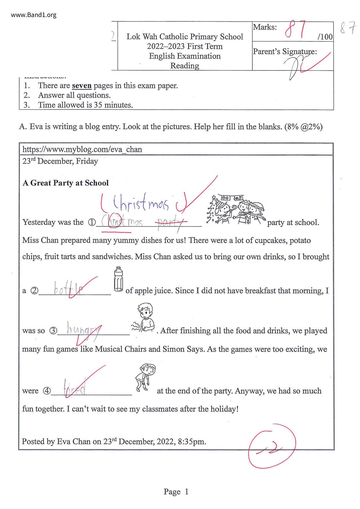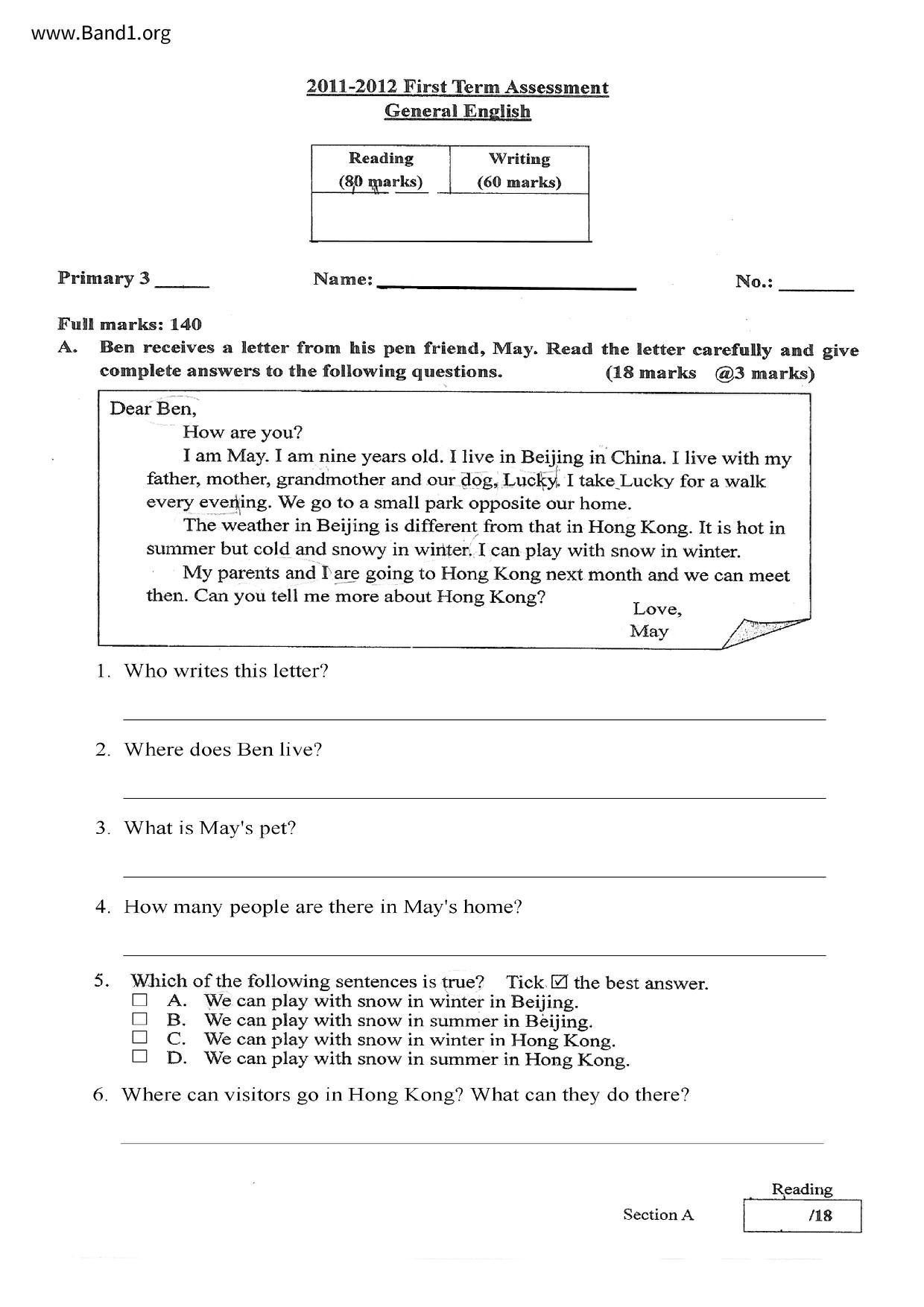小三 英文 中華基督教會灣仔堂基道小學(九龍城)