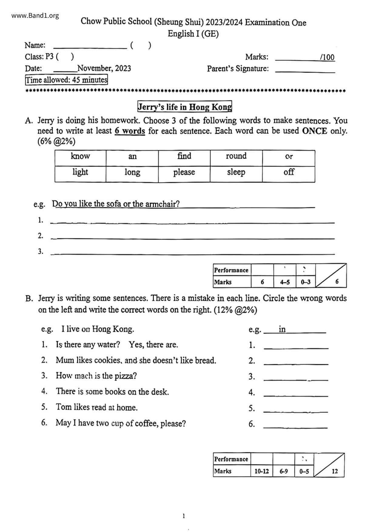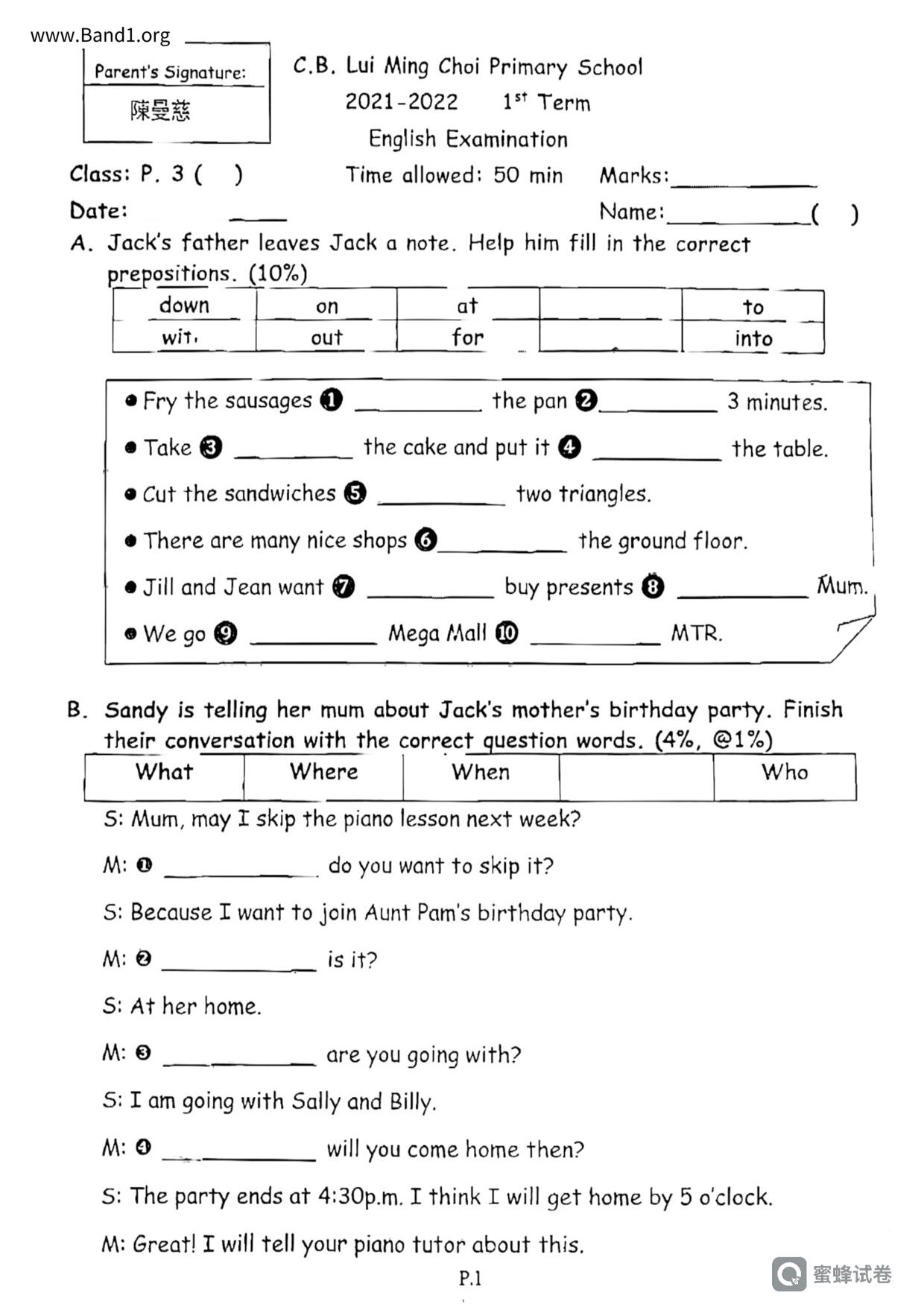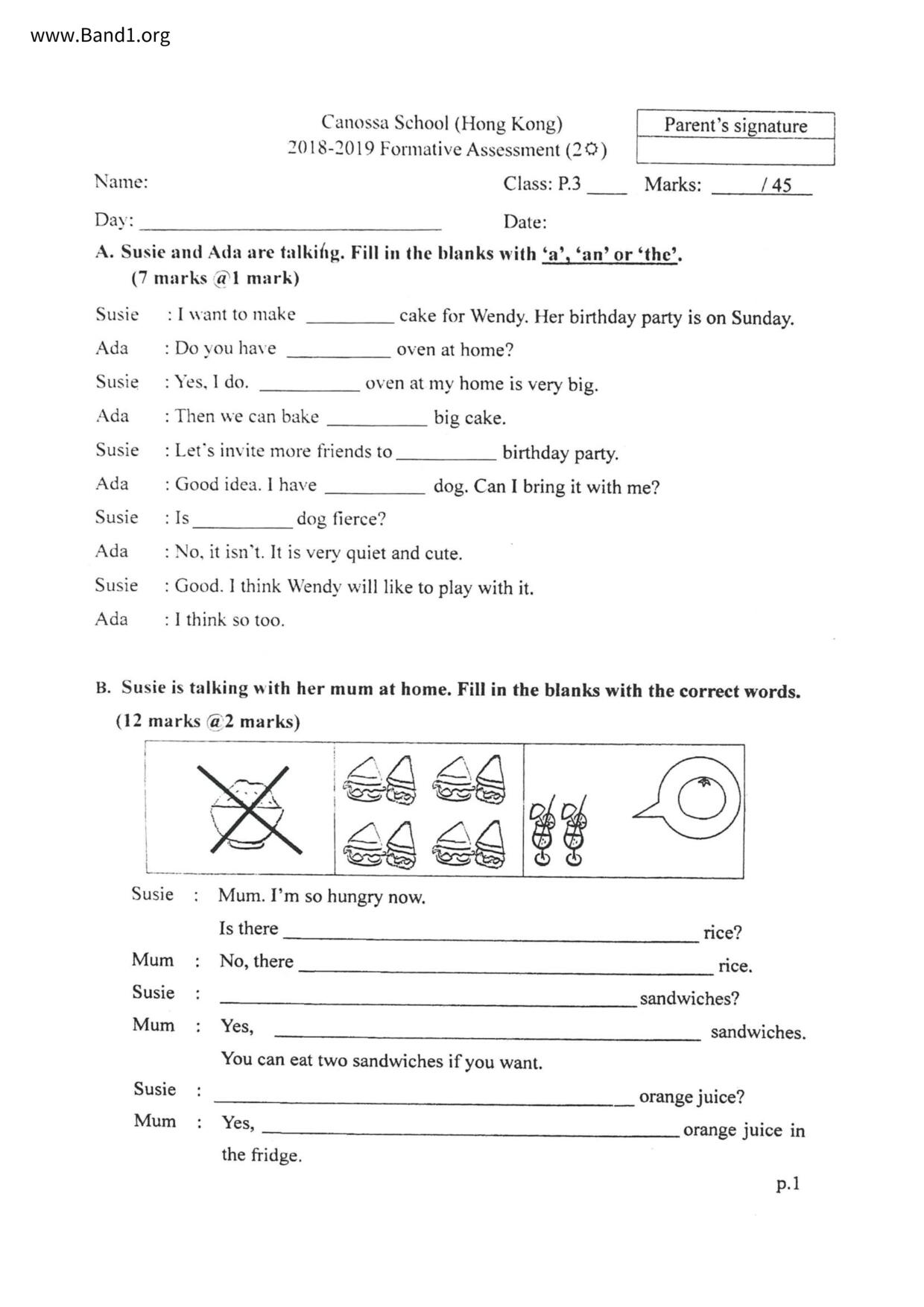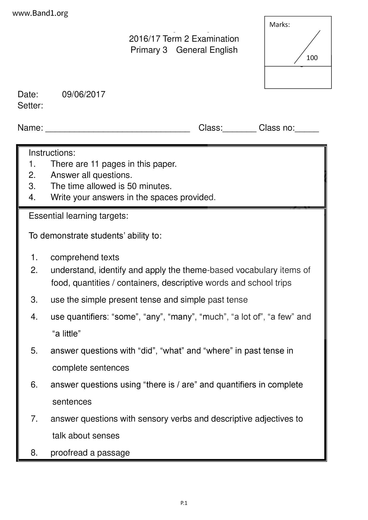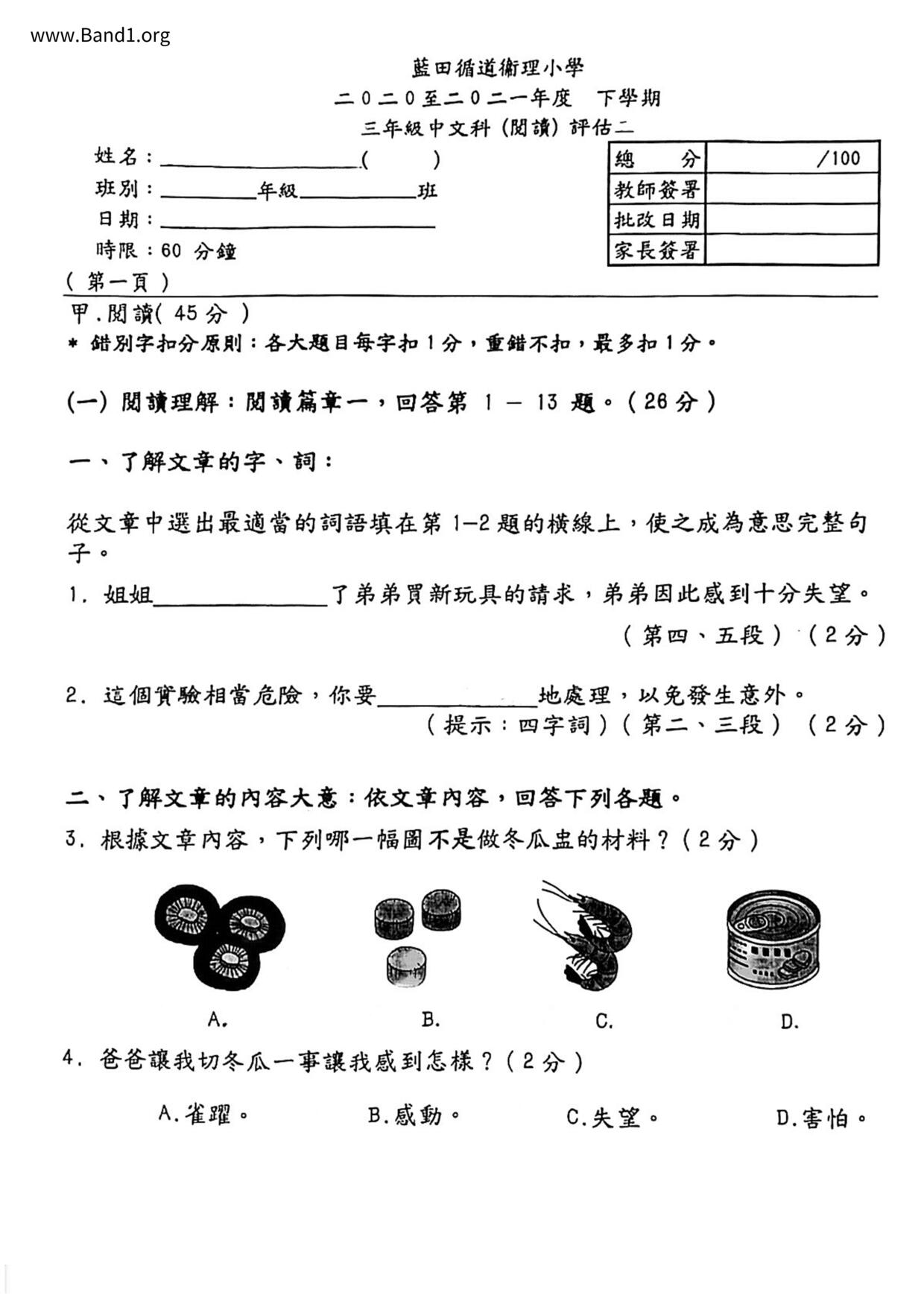 小三 英文 中華基督教會灣仔堂基道小學(九龍城)