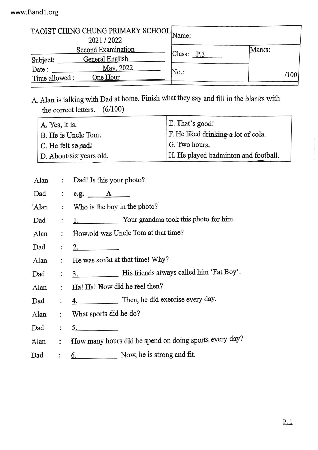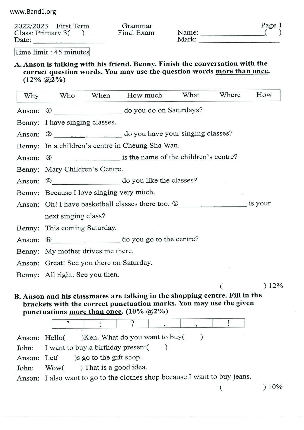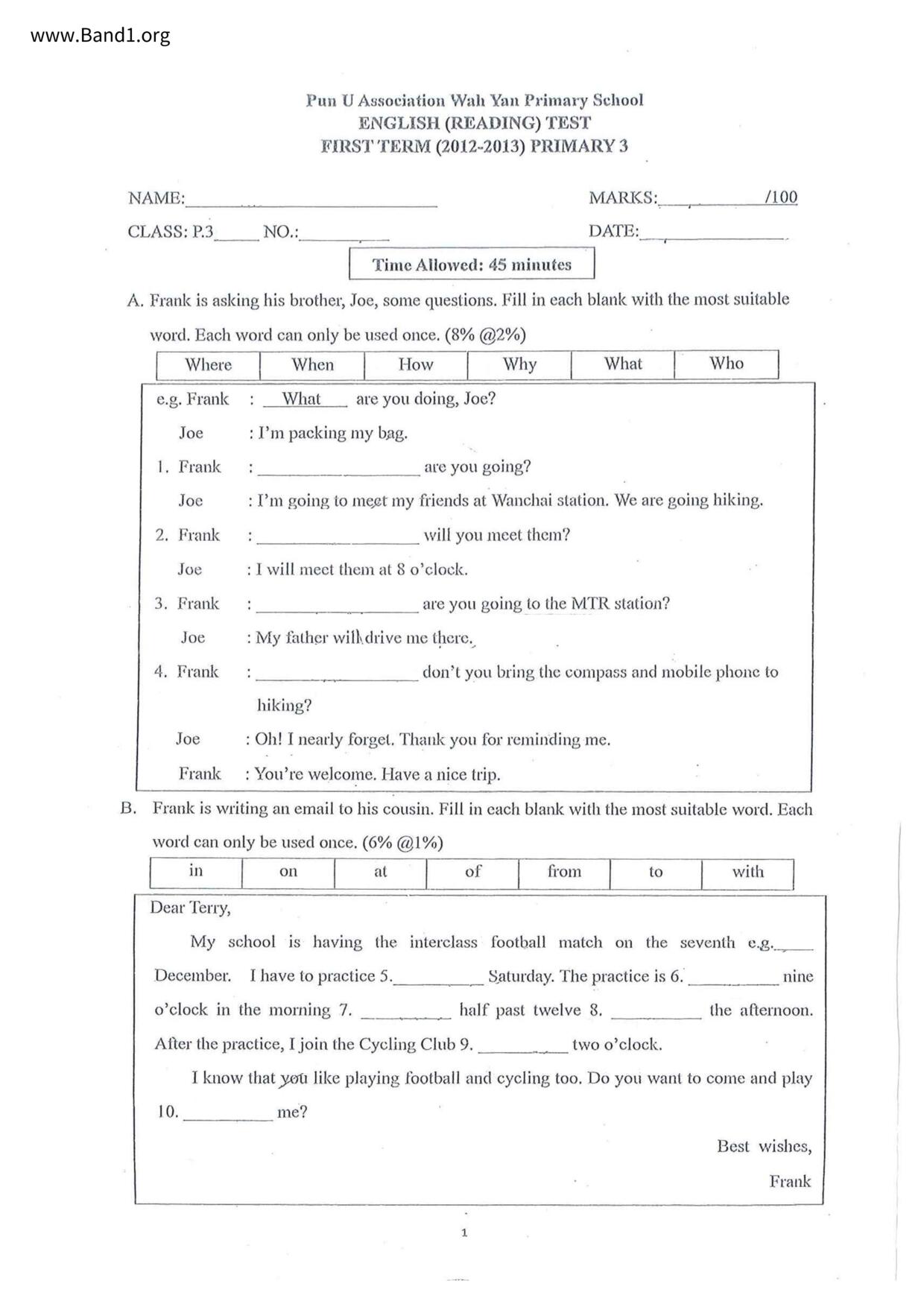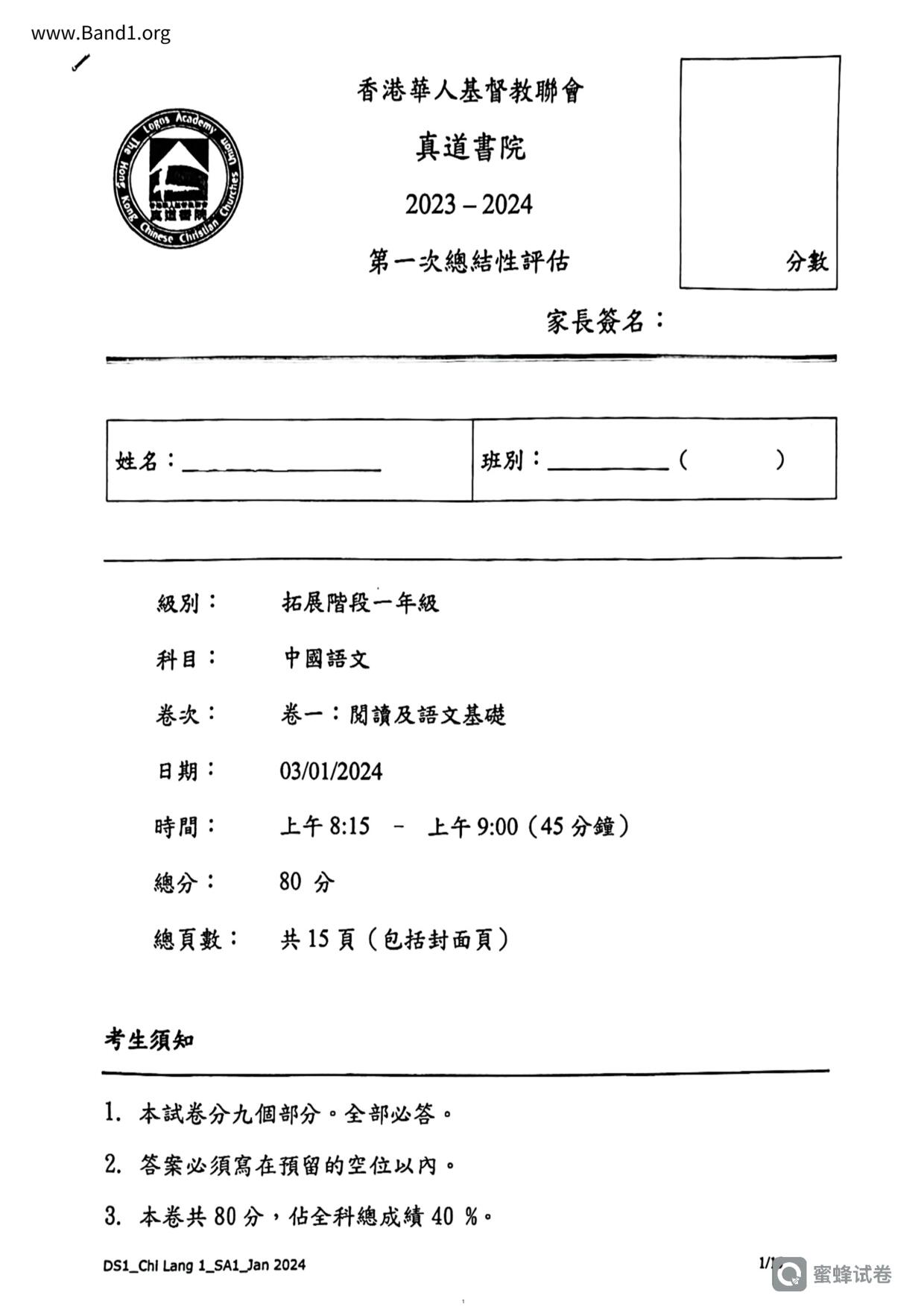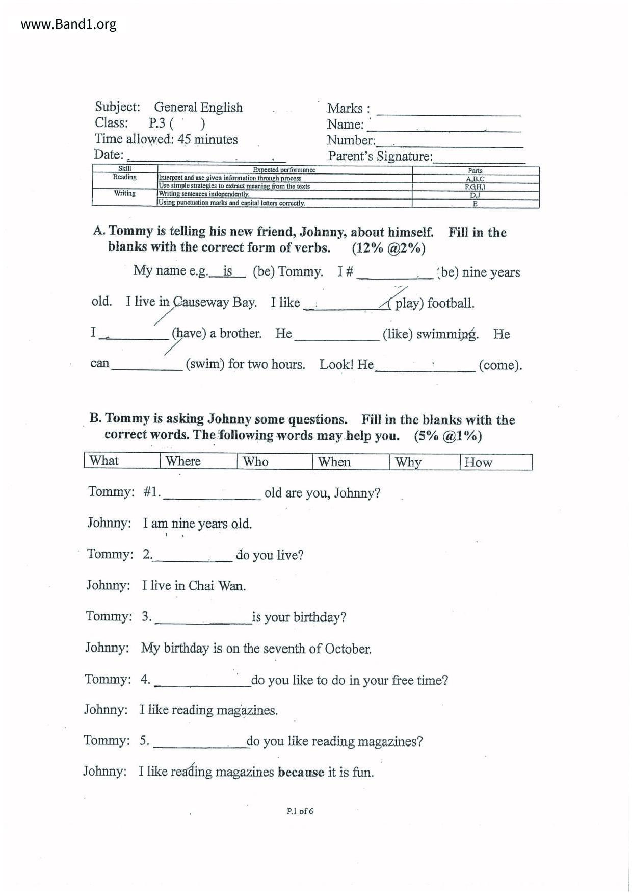 小三 英文 中華基督教會灣仔堂基道小學(九龍城)