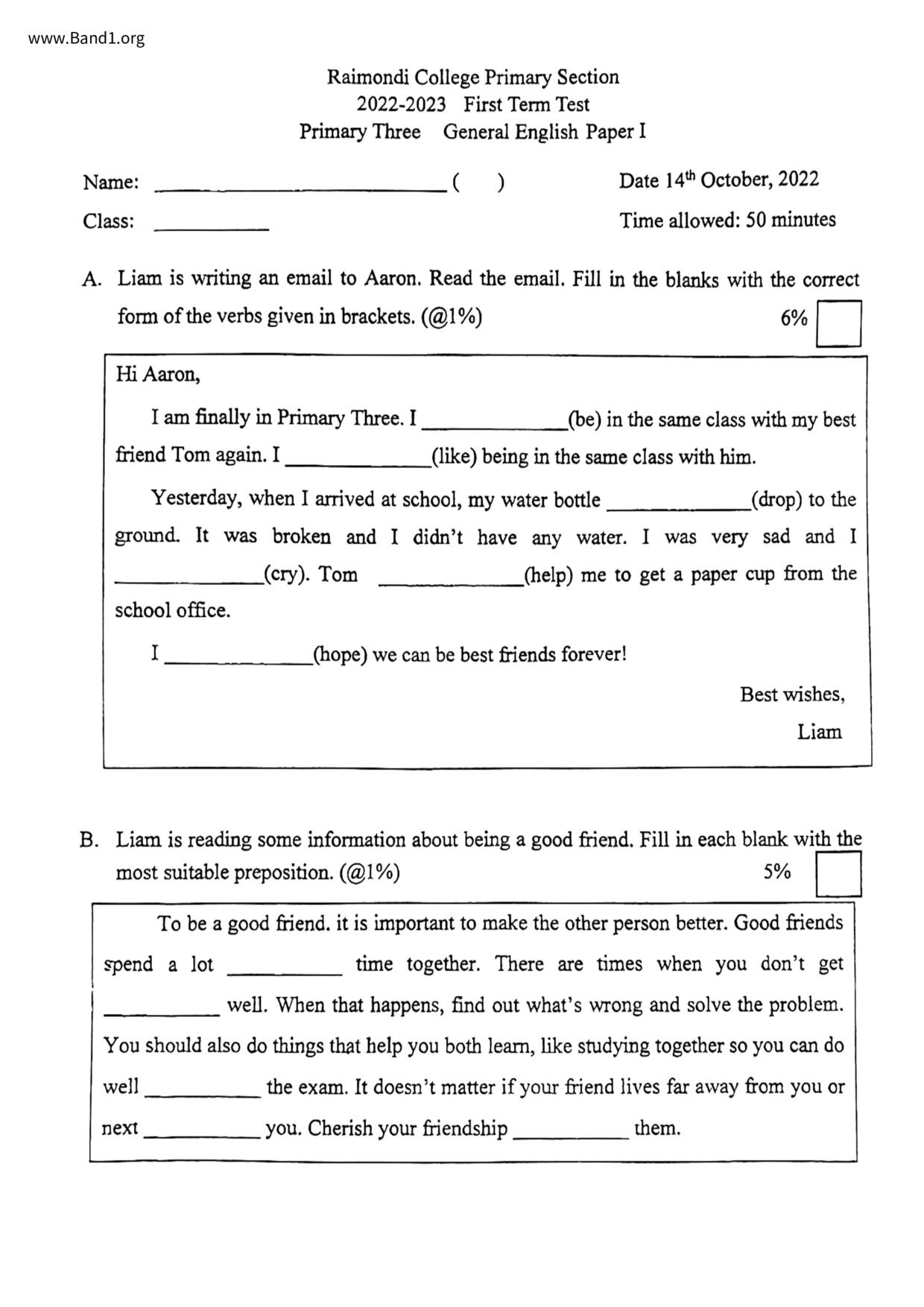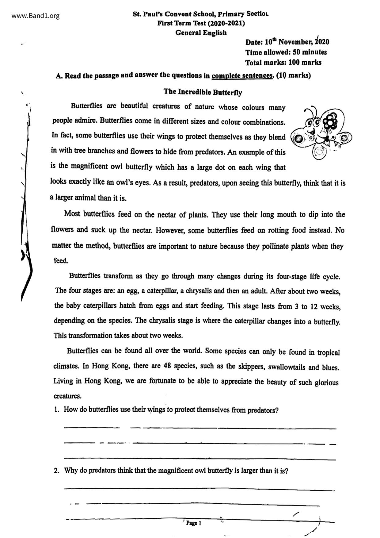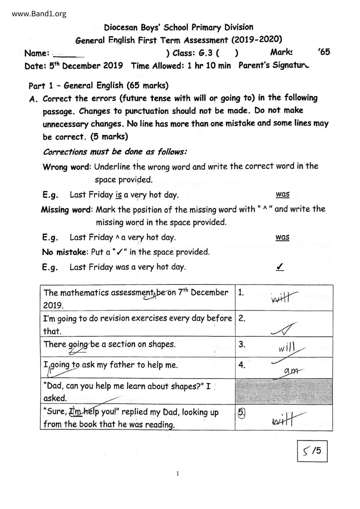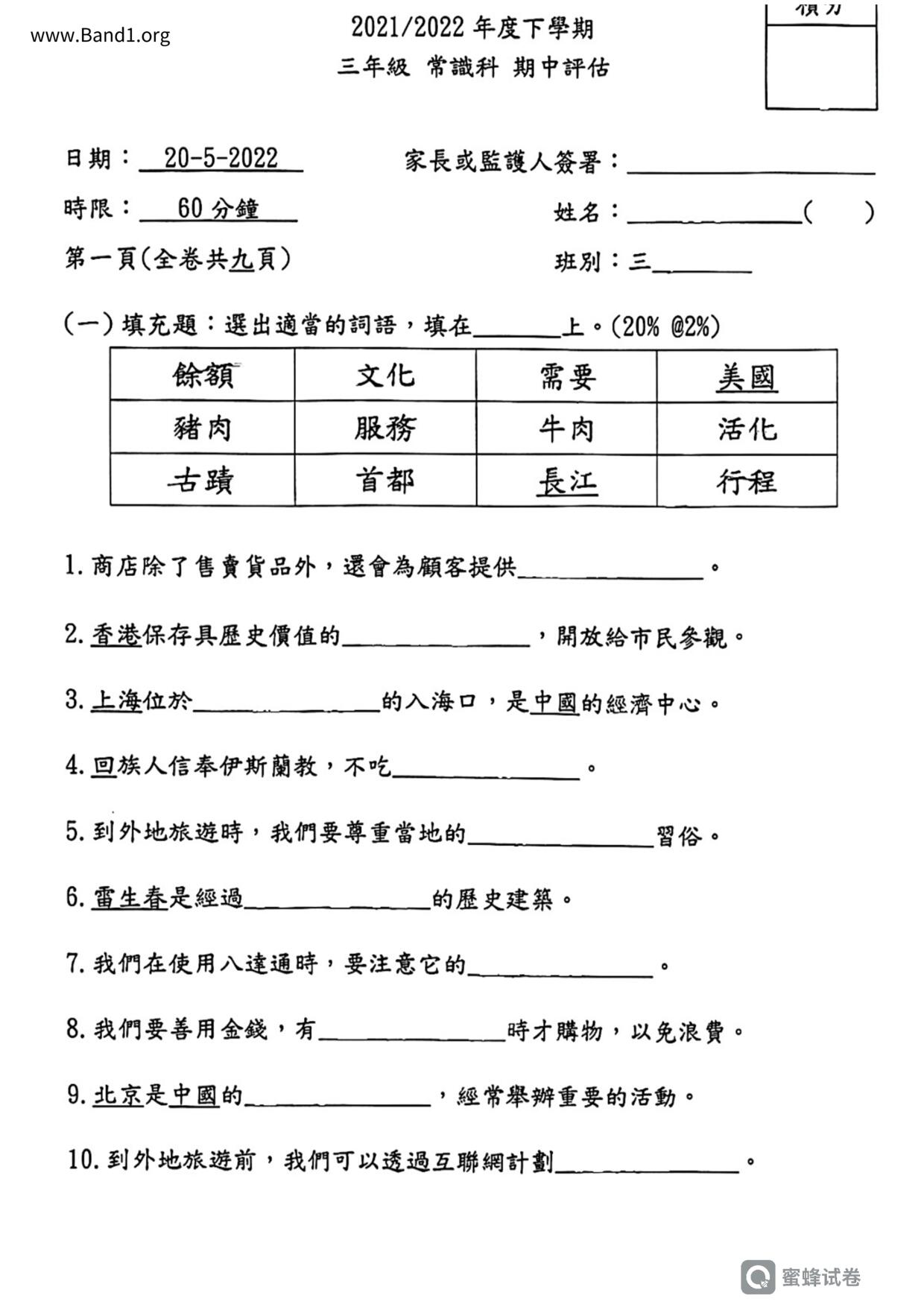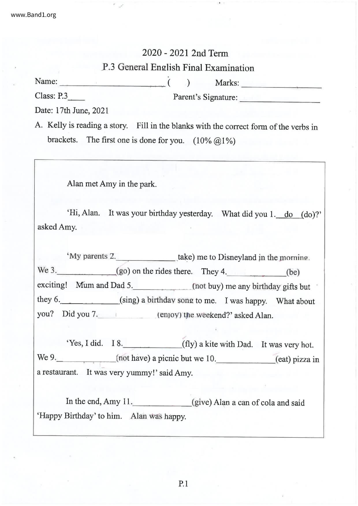 小三 英文 中華基督教會灣仔堂基道小學(九龍城)