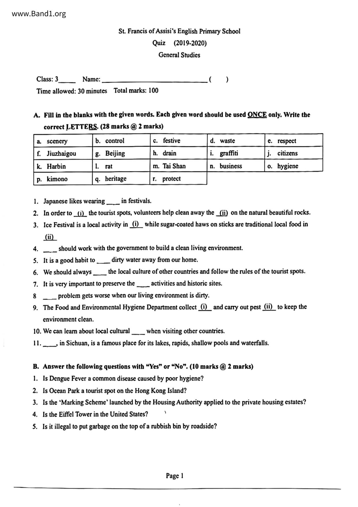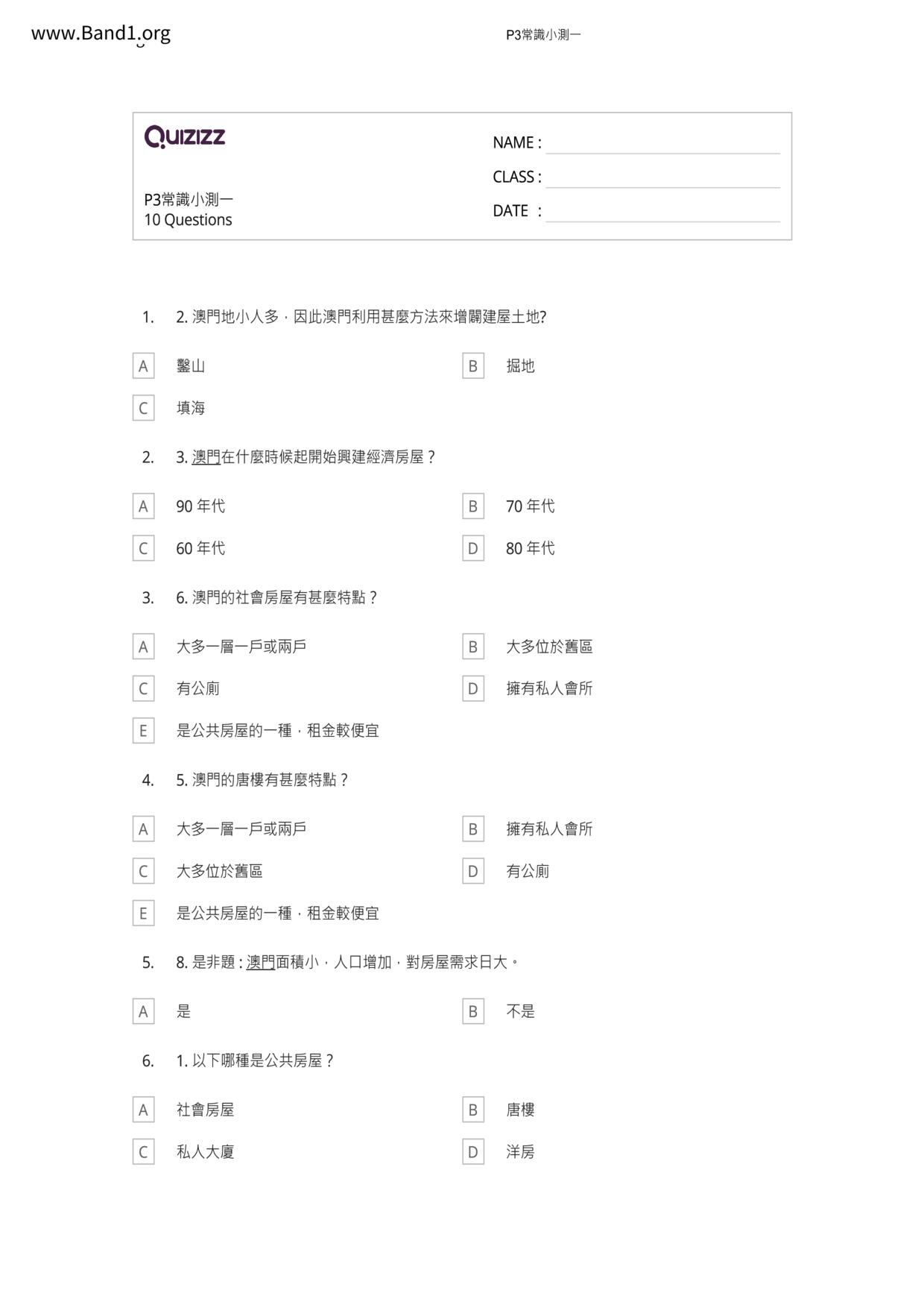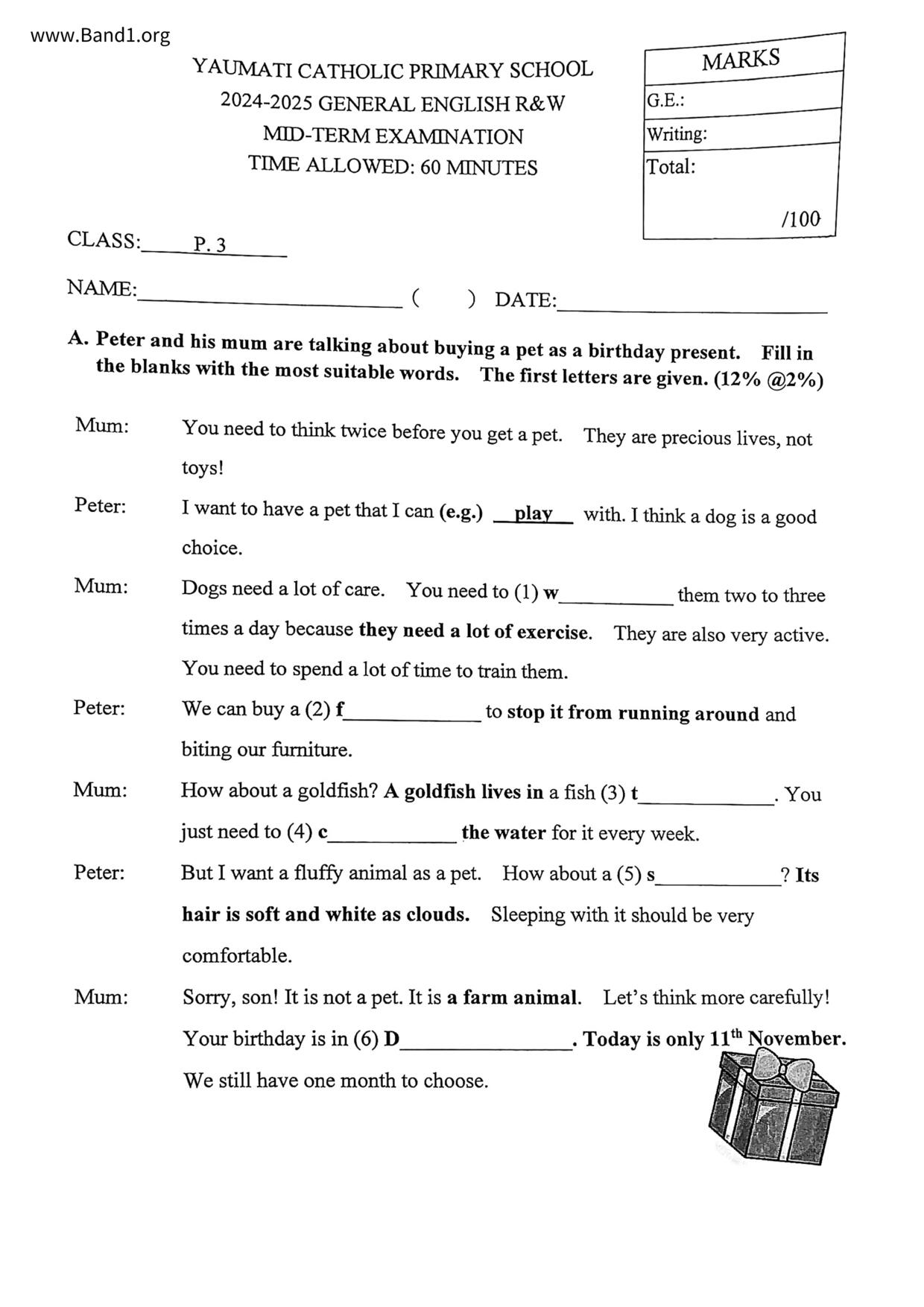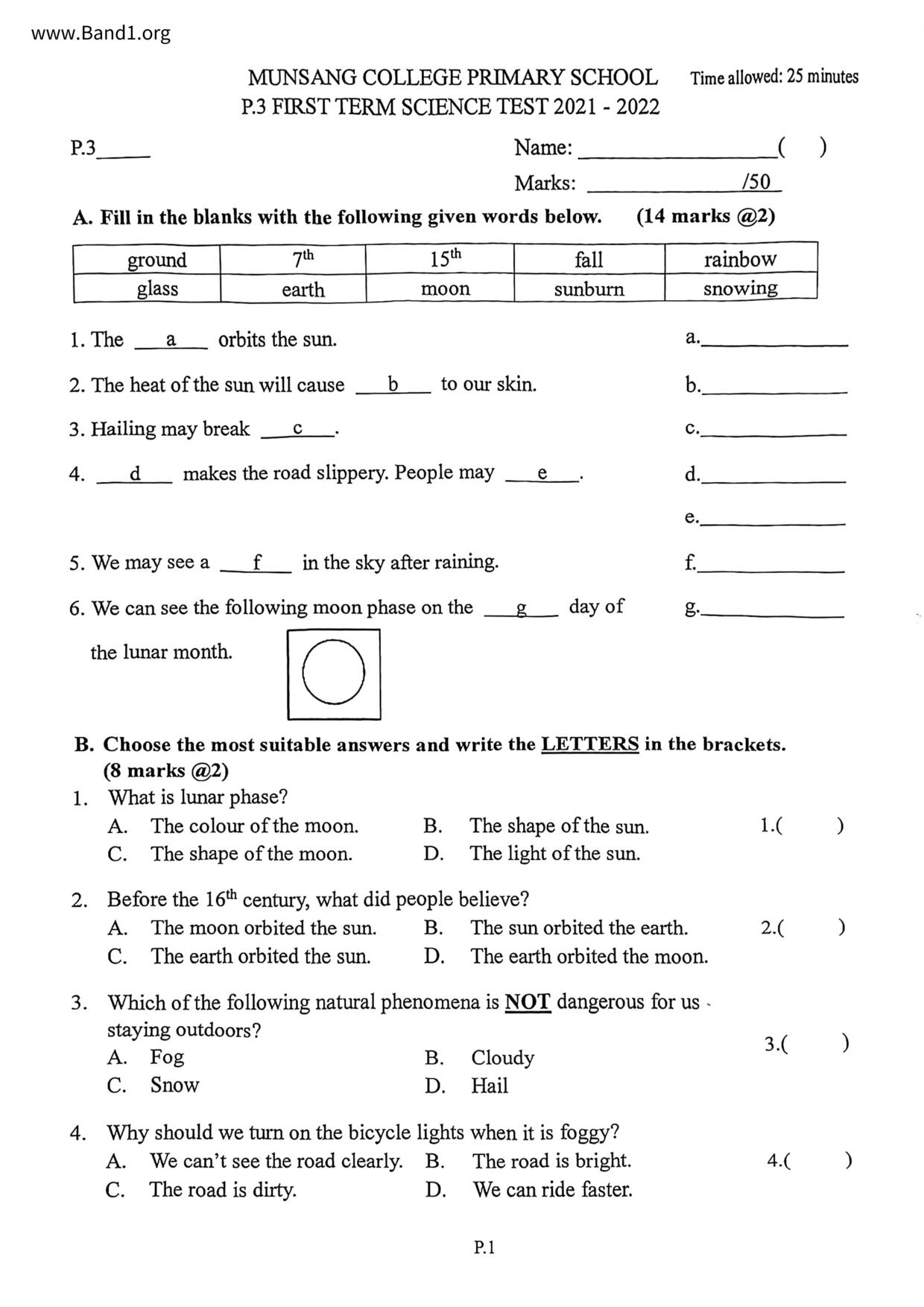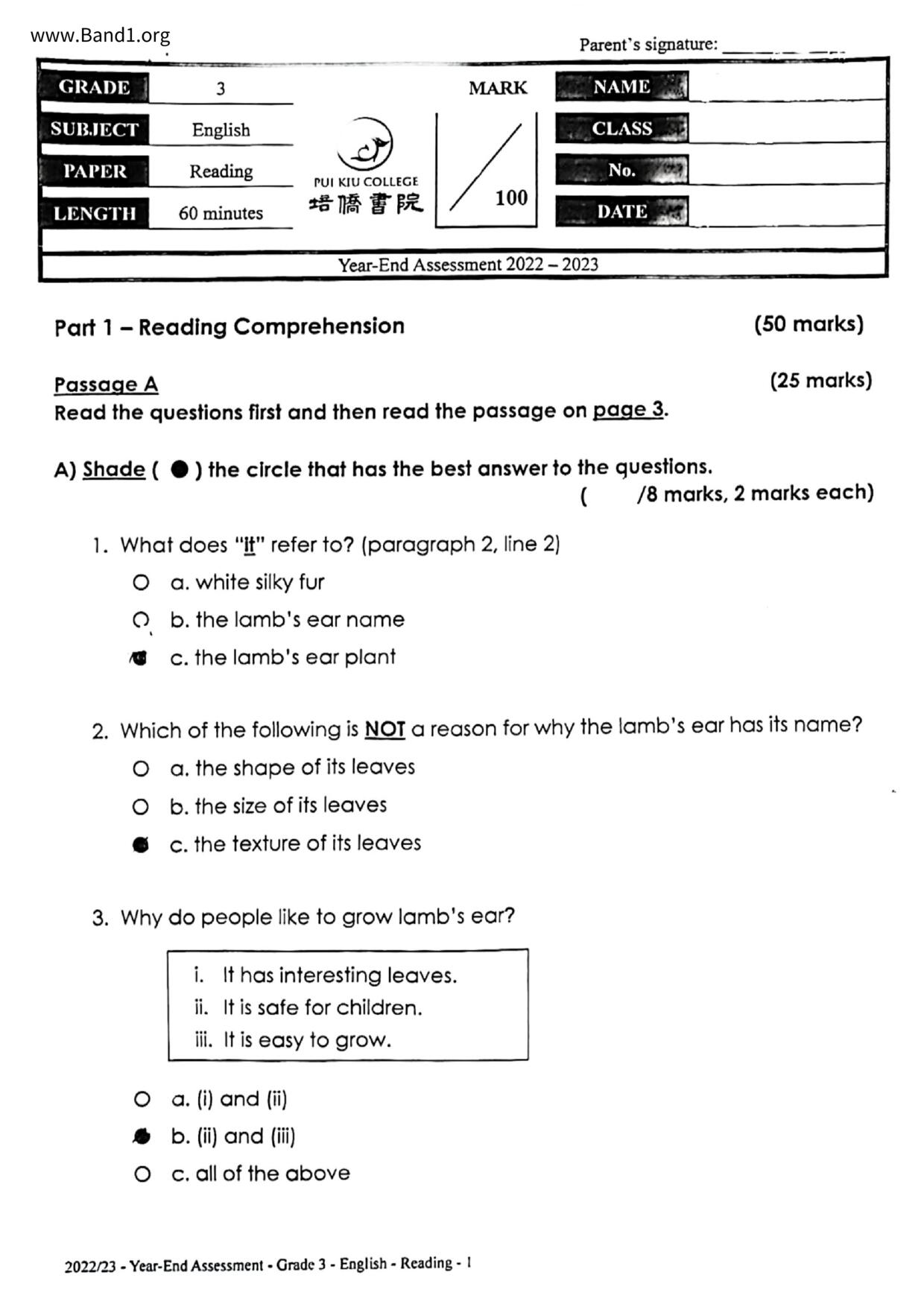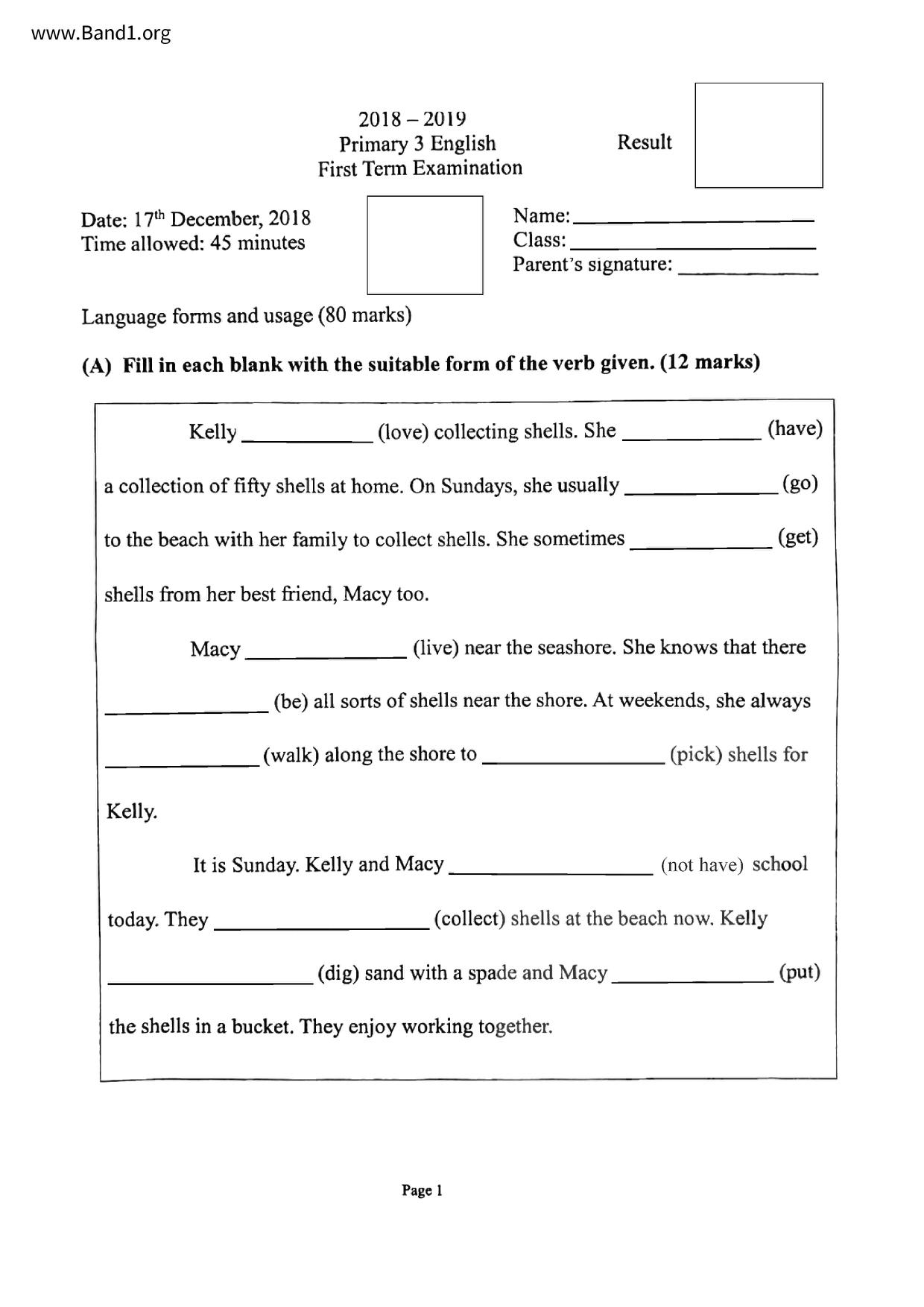 小三 英文 中華基督教會灣仔堂基道小學(九龍城)