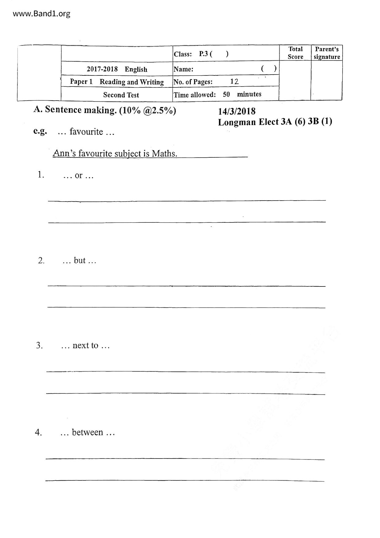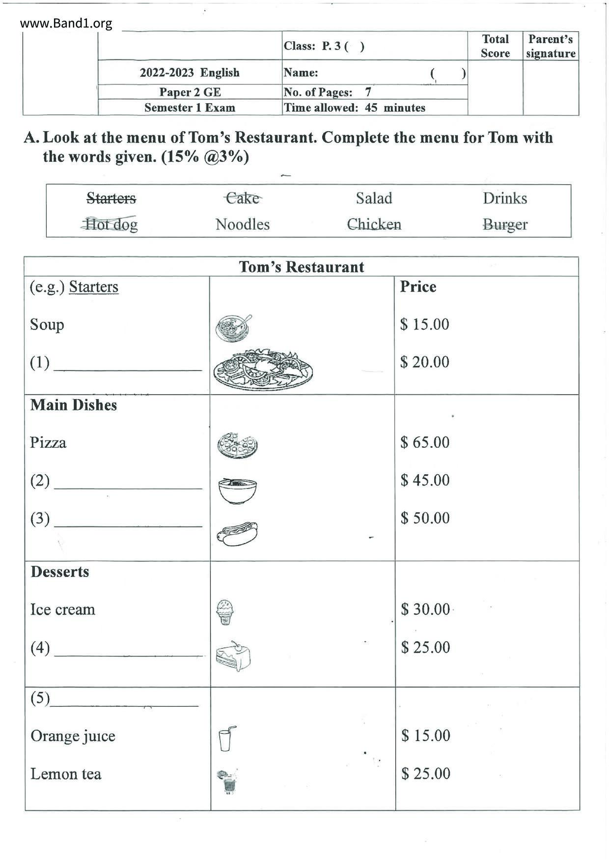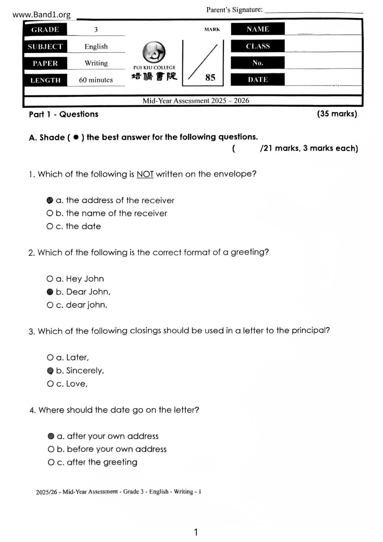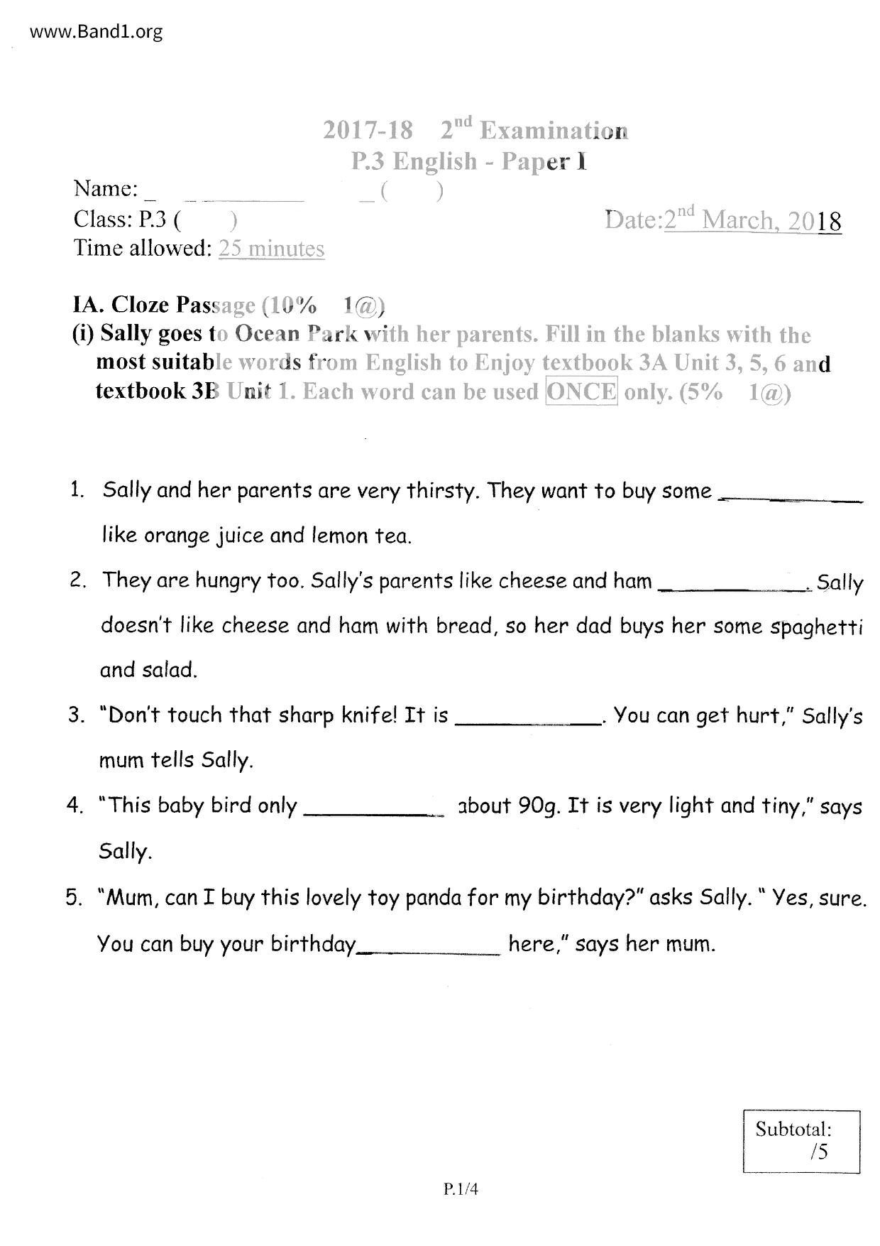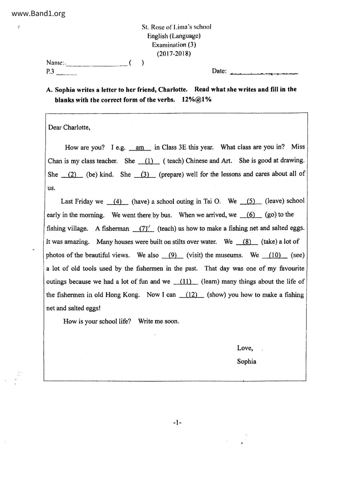 小三 英文 中華基督教會灣仔堂基道小學(九龍城)