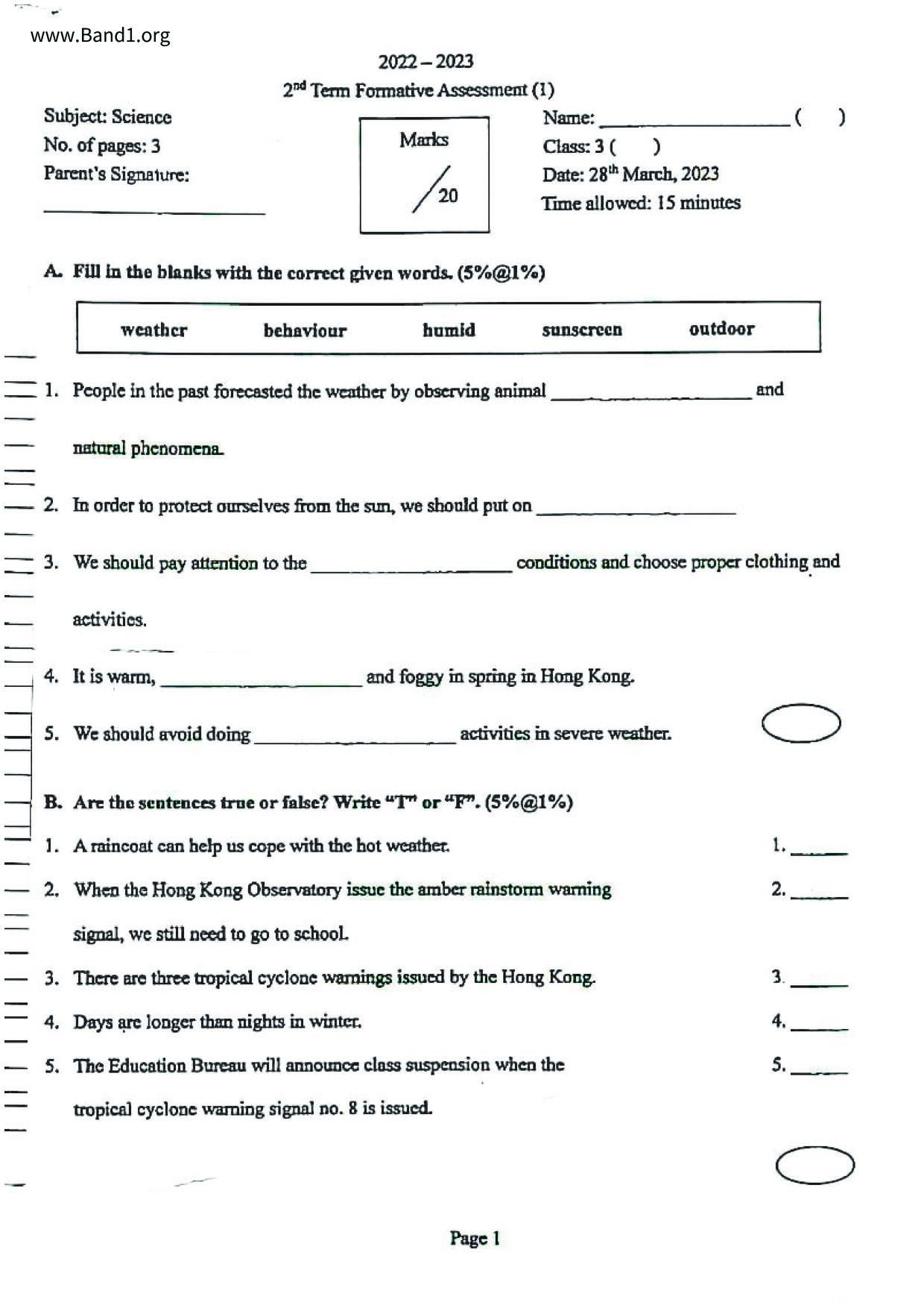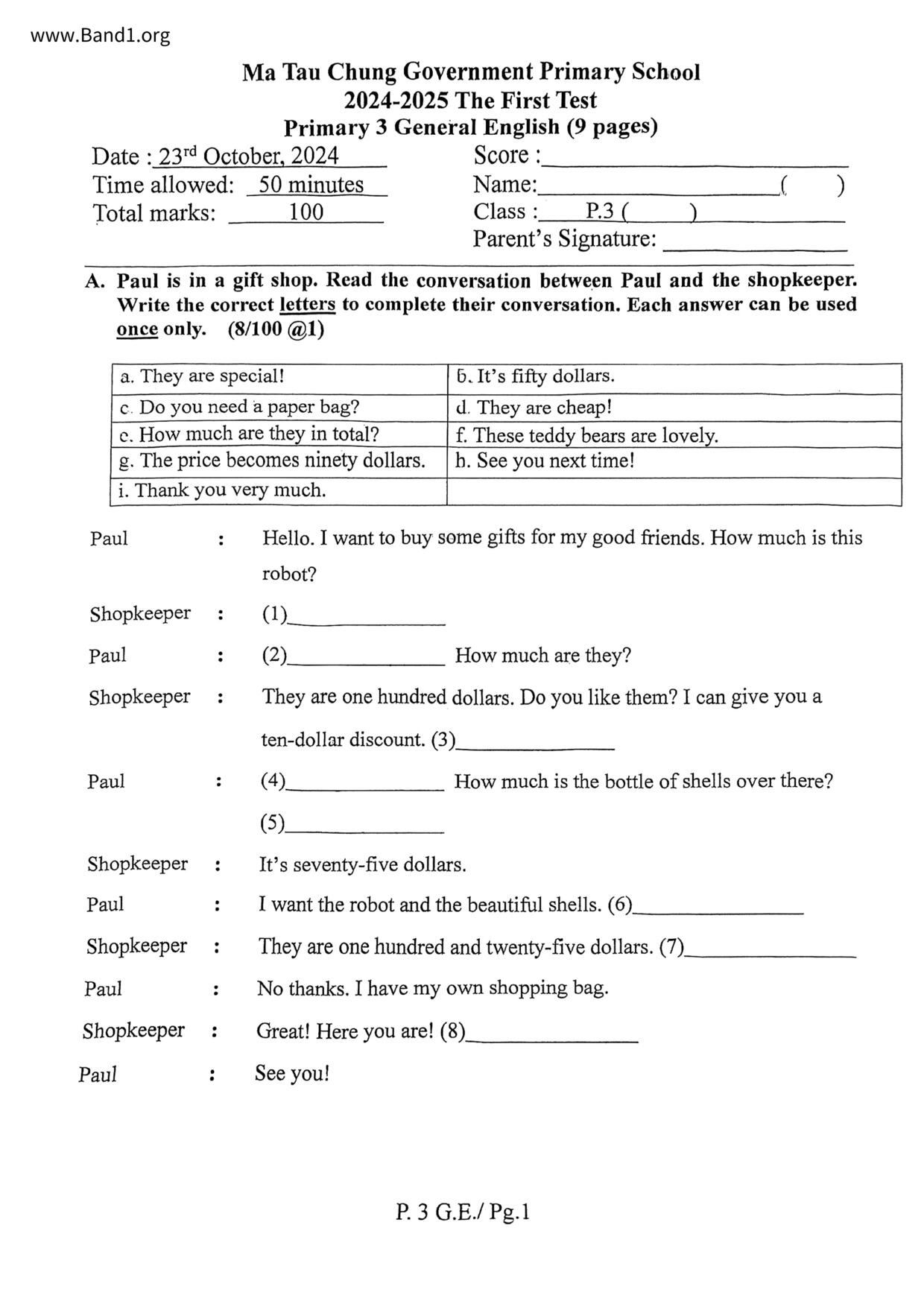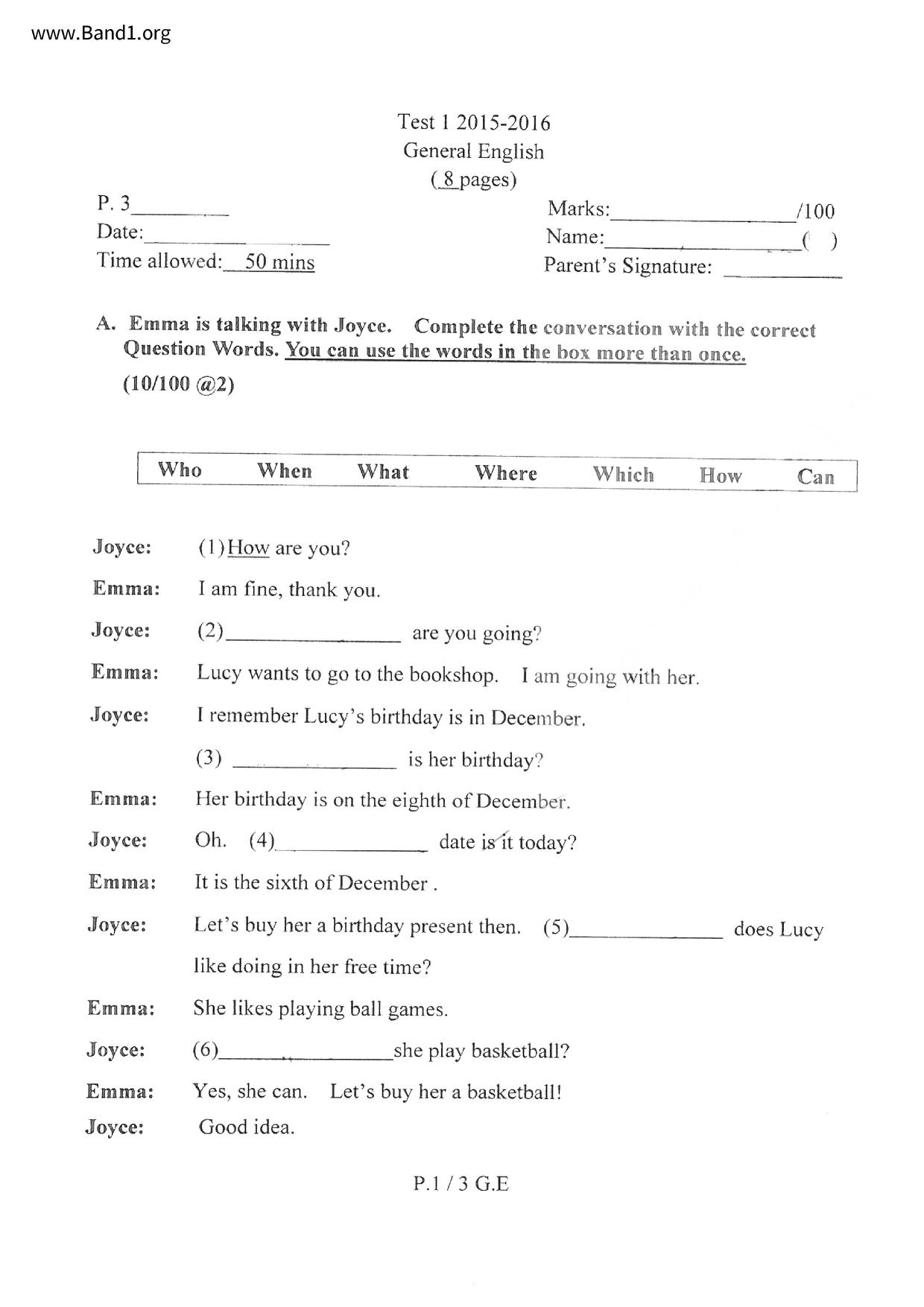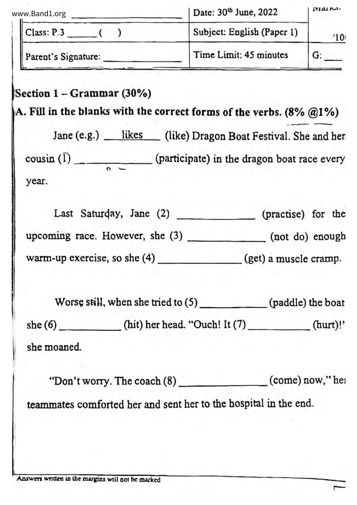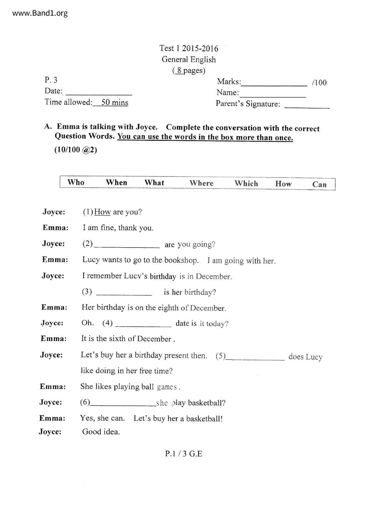 小三 英文 中華基督教會灣仔堂基道小學(九龍城)