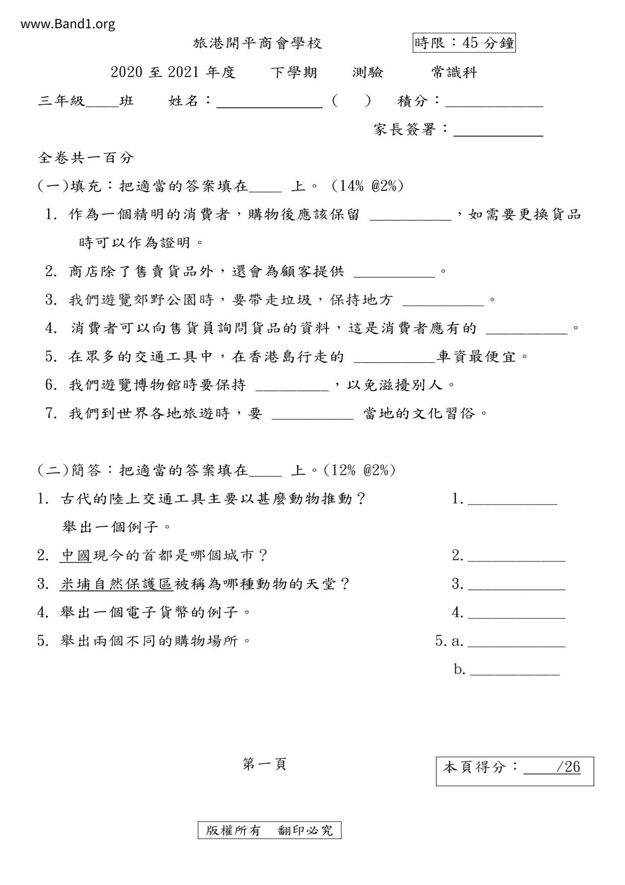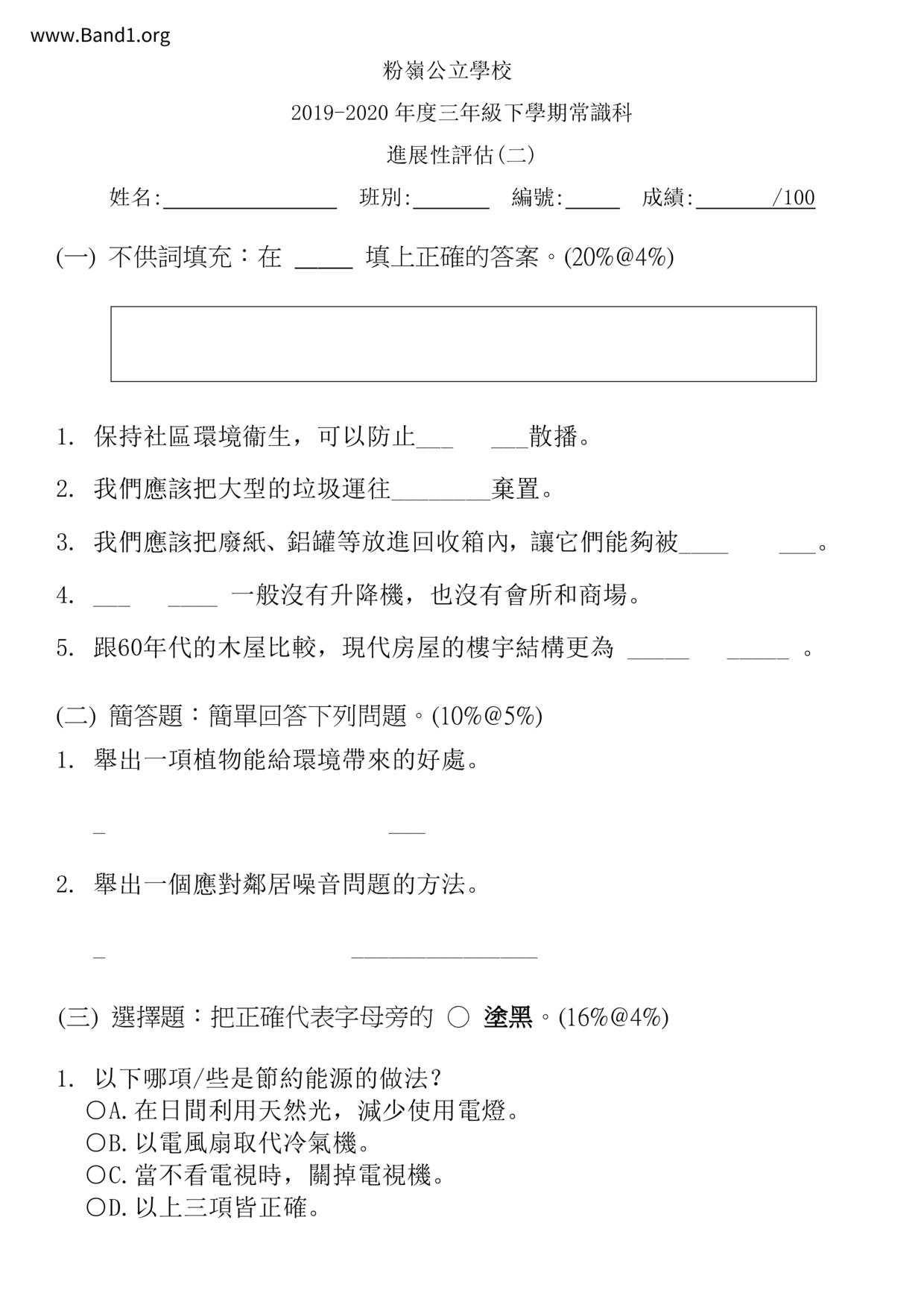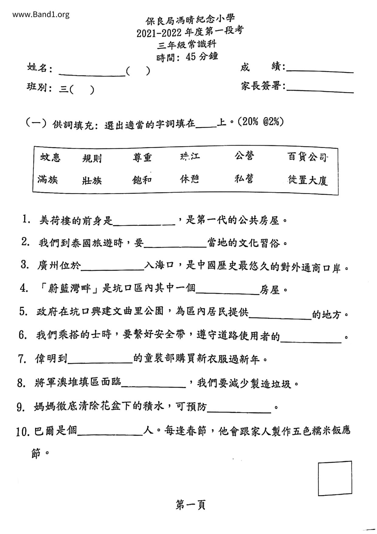 小三 常識 大埔舊墟公立學校(寶湖道)