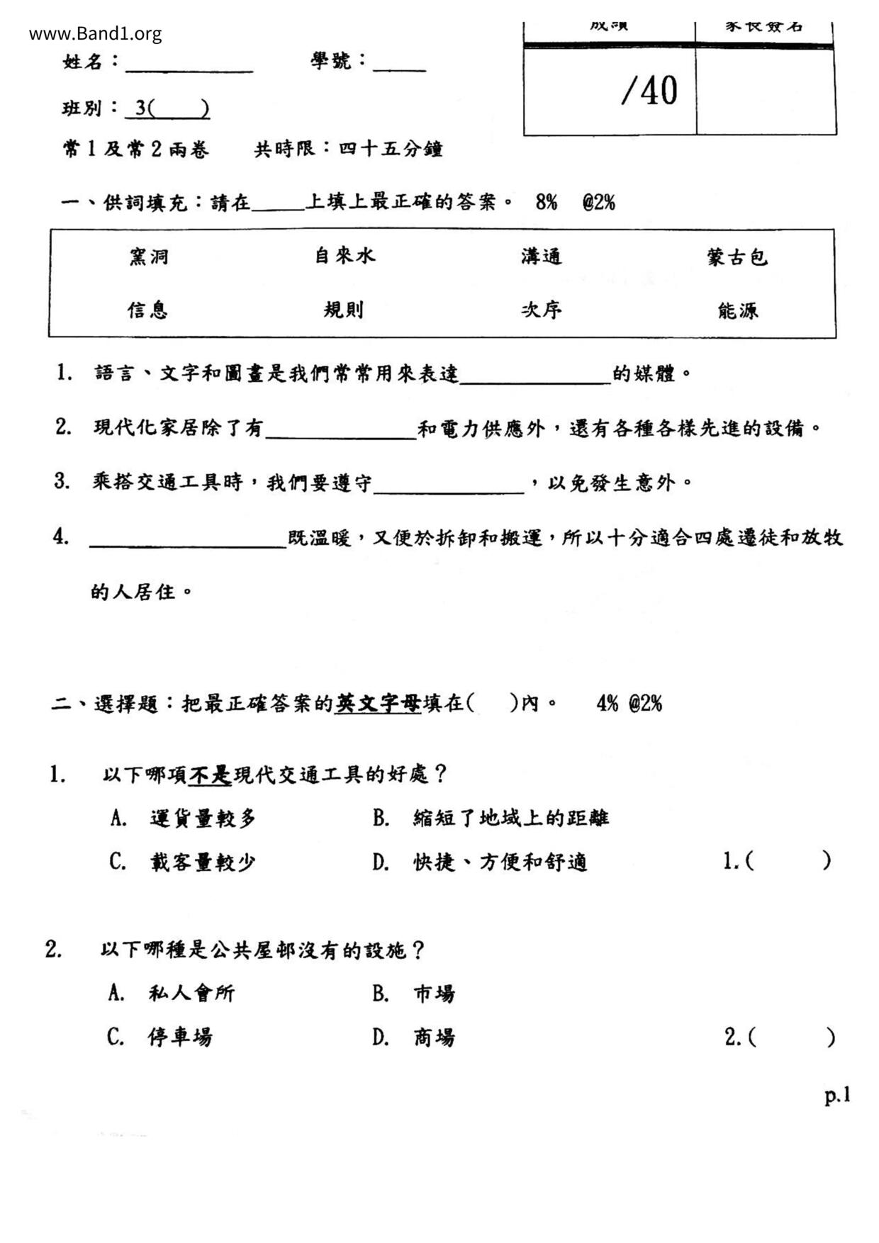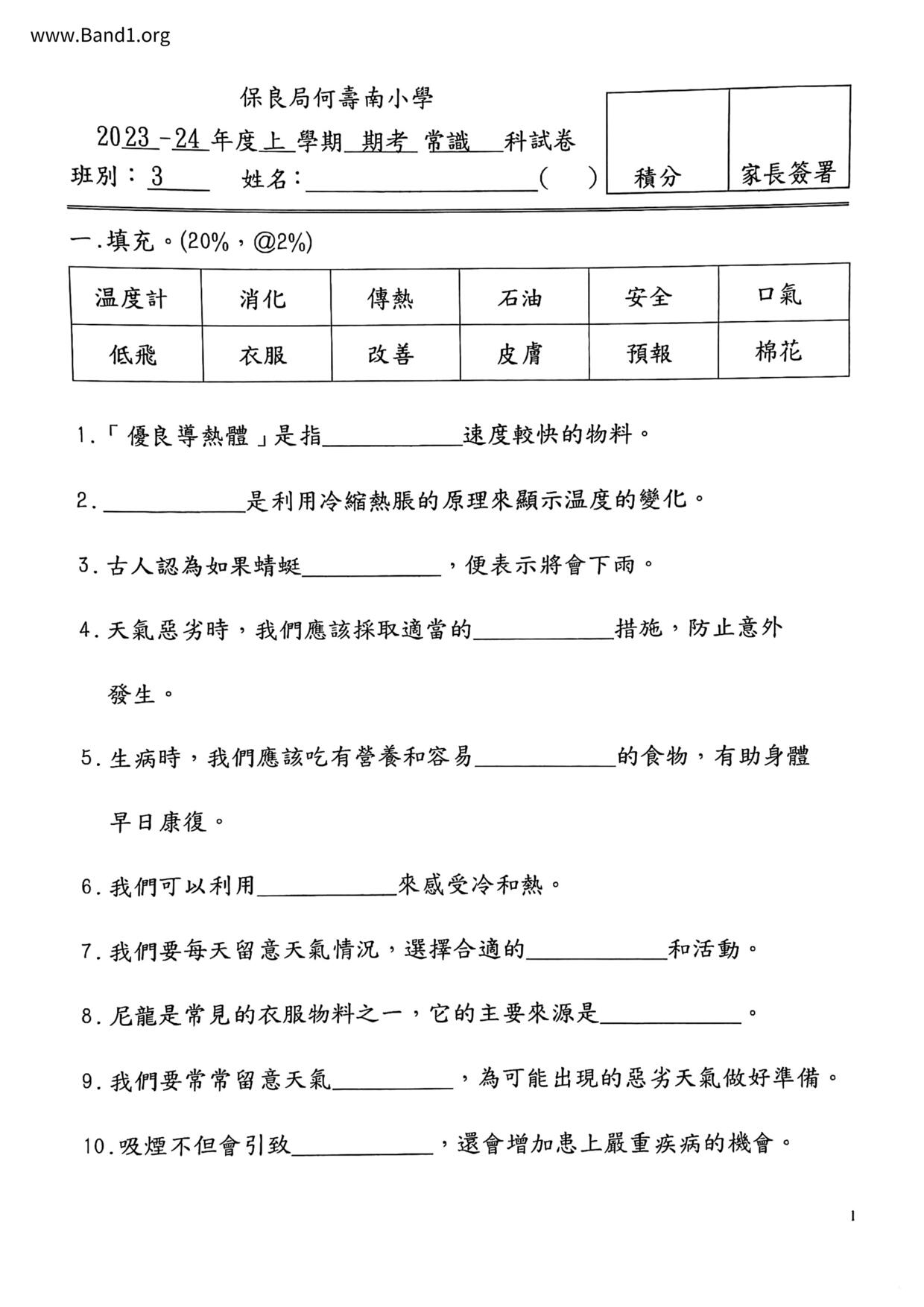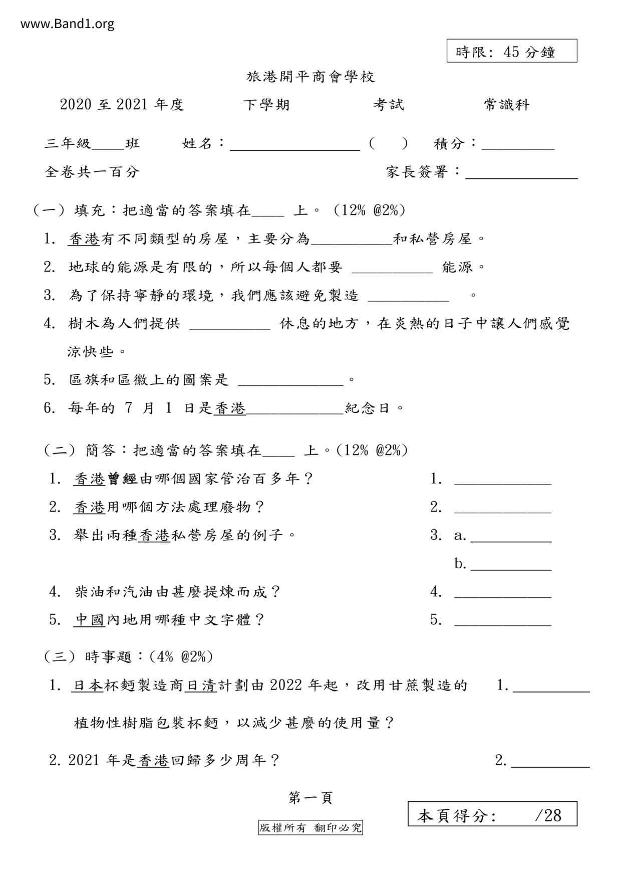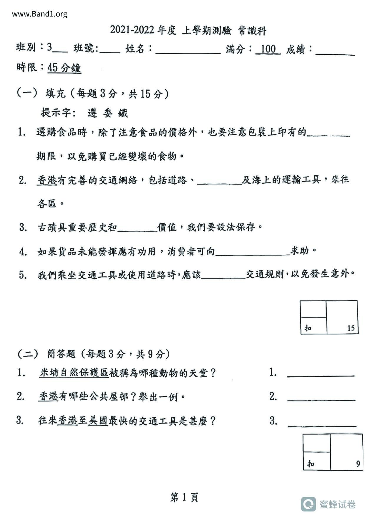 小三 常識 大埔舊墟公立學校(寶湖道)