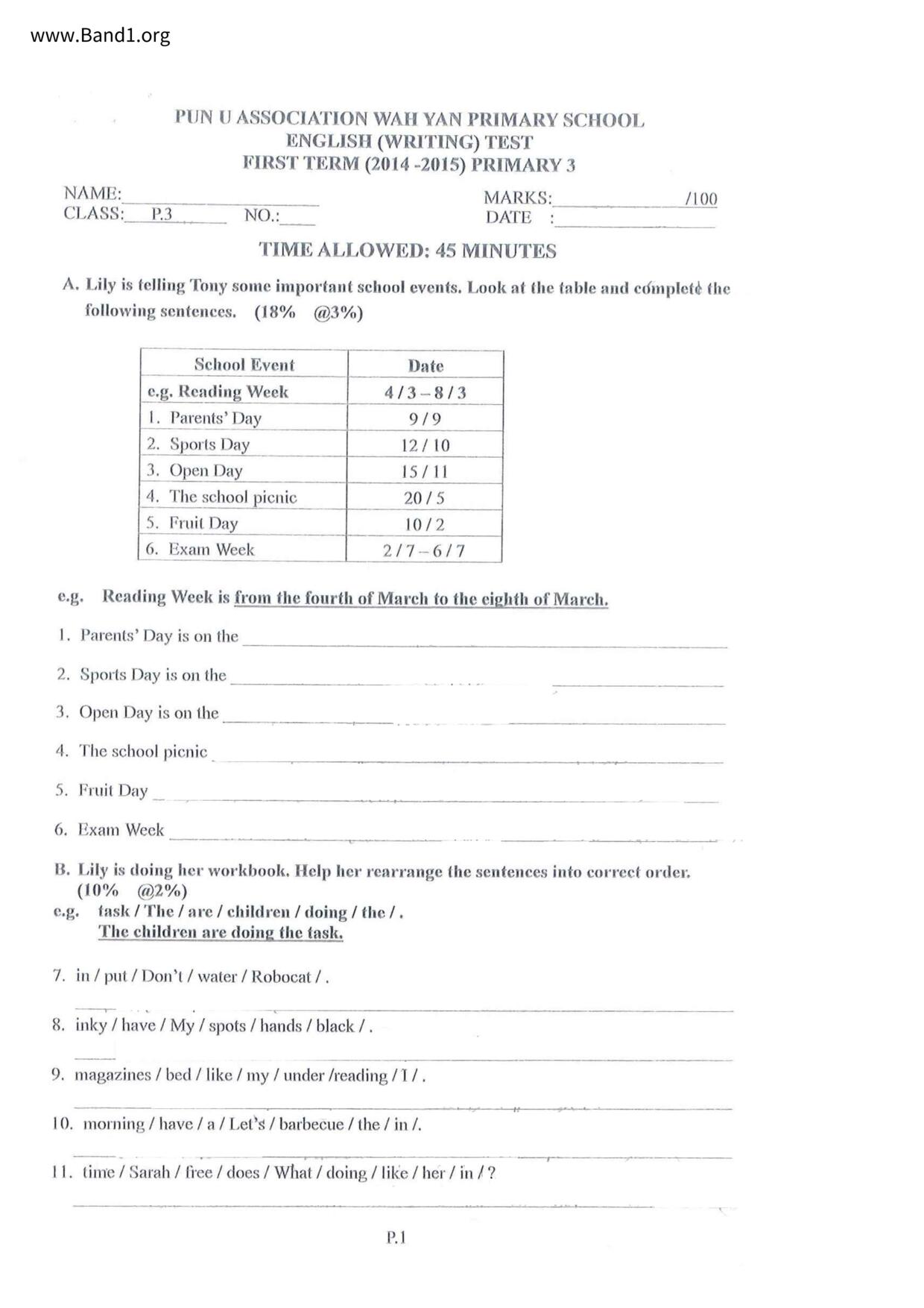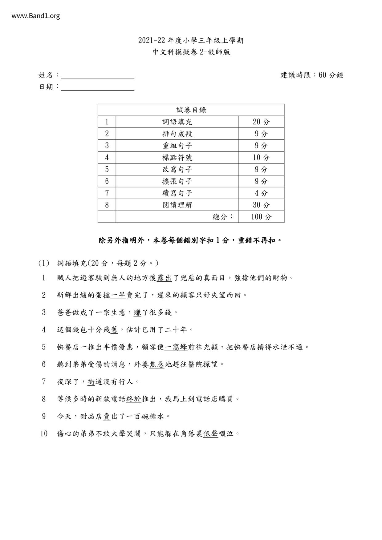 小三 英文 香港浸會大學附屬學校王錦輝中小學