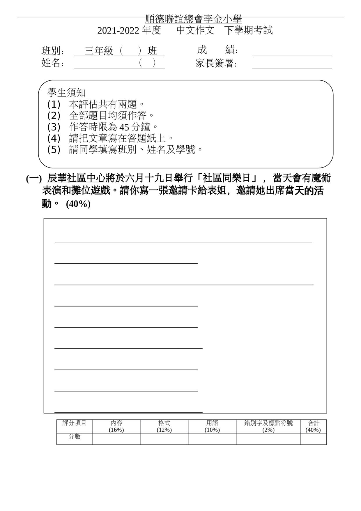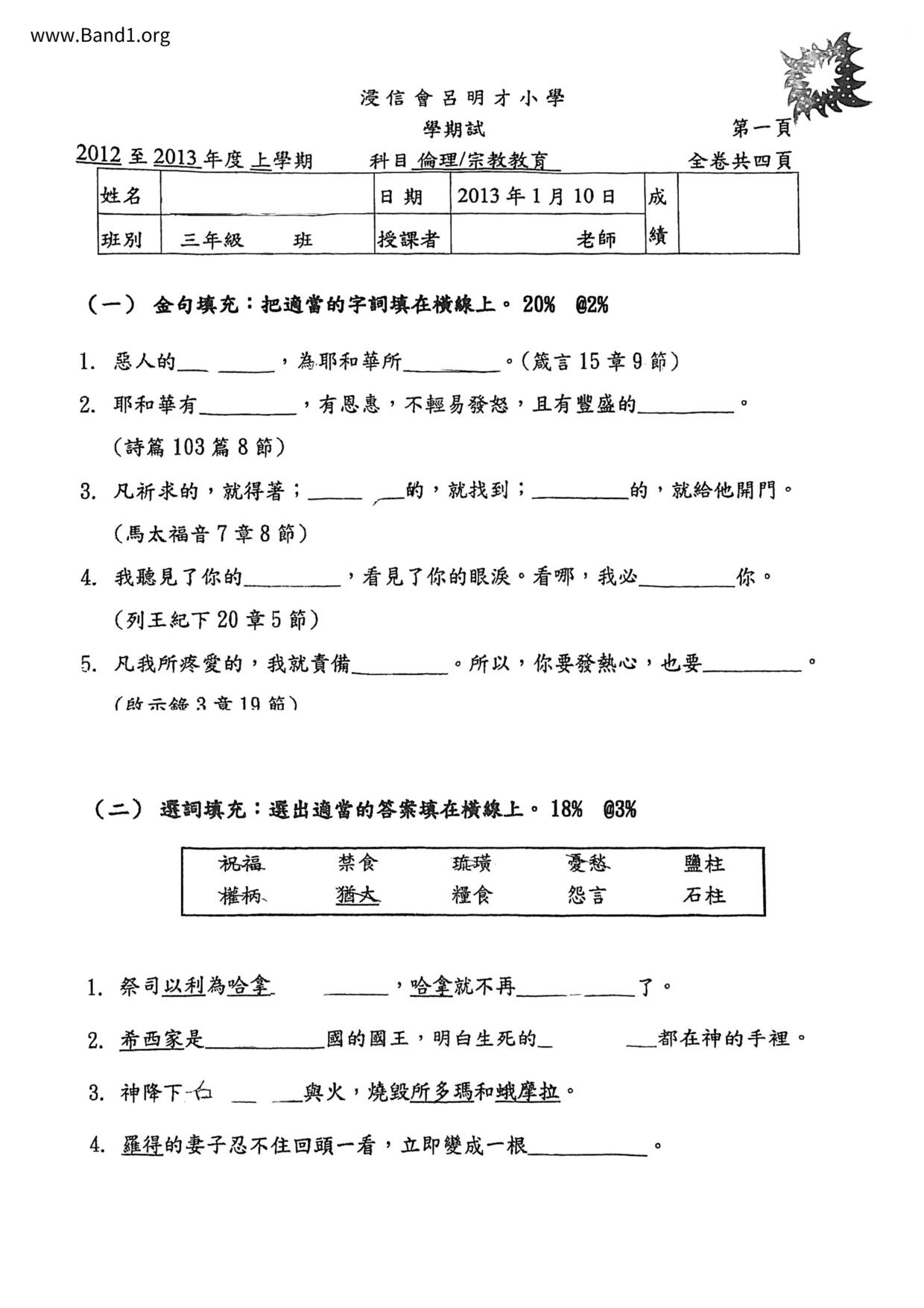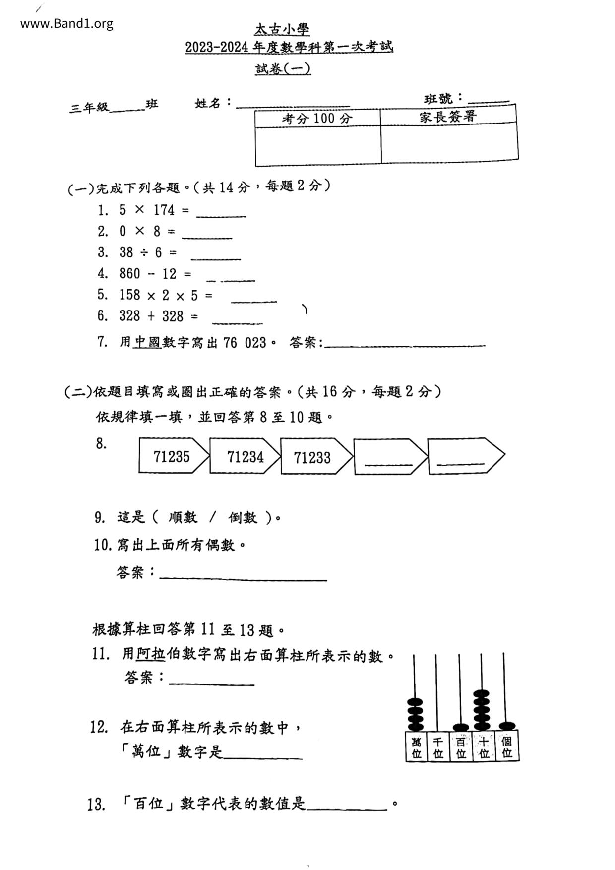 小三 數學 路德會聖馬太學校(秀茂坪)