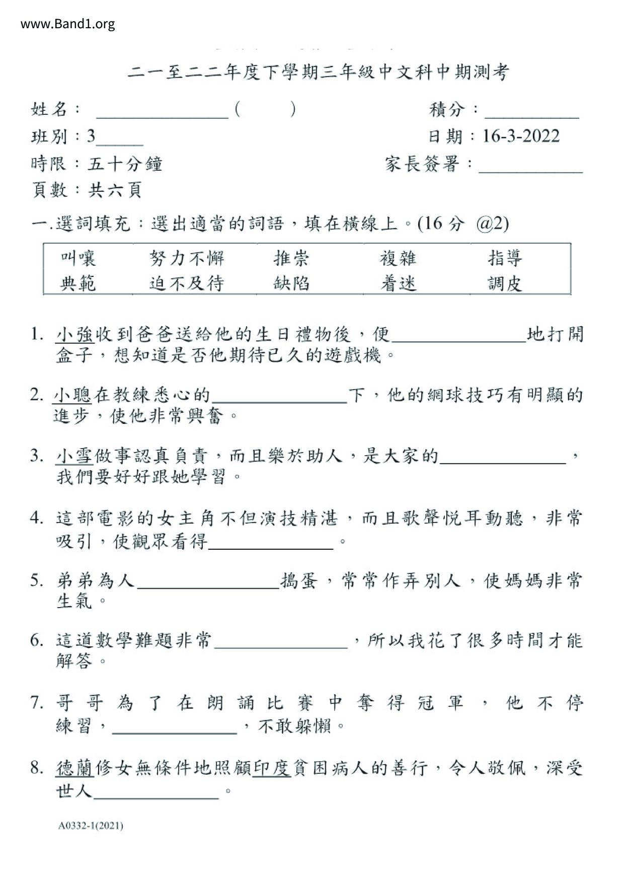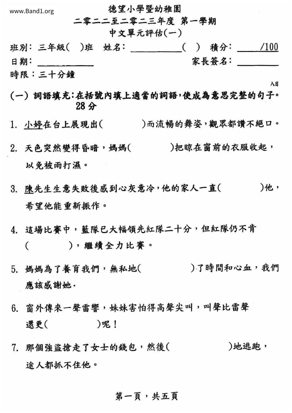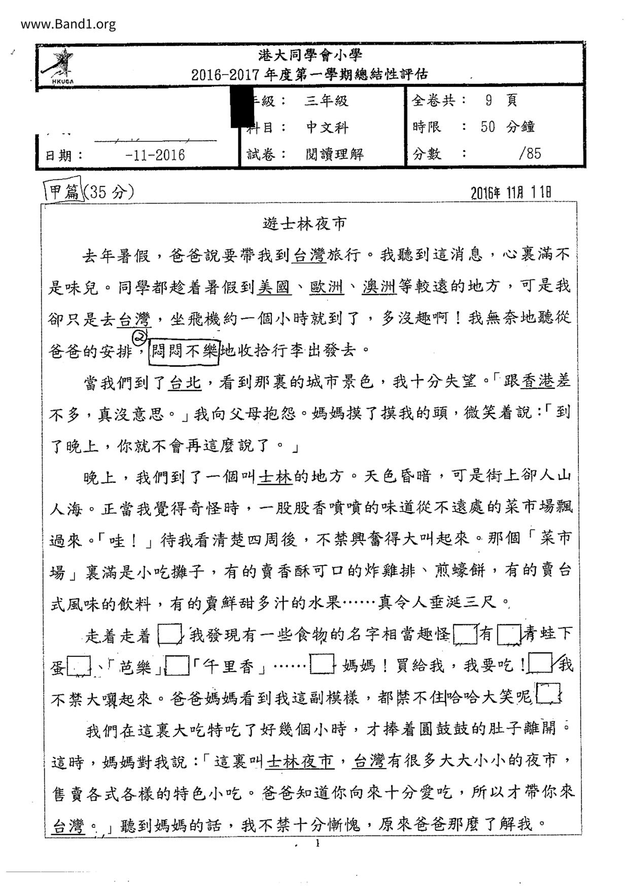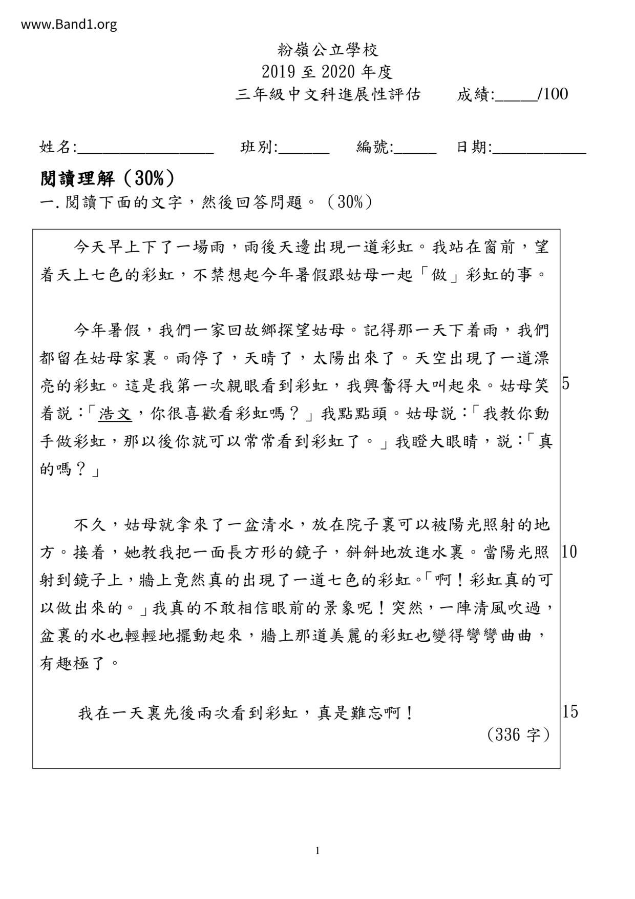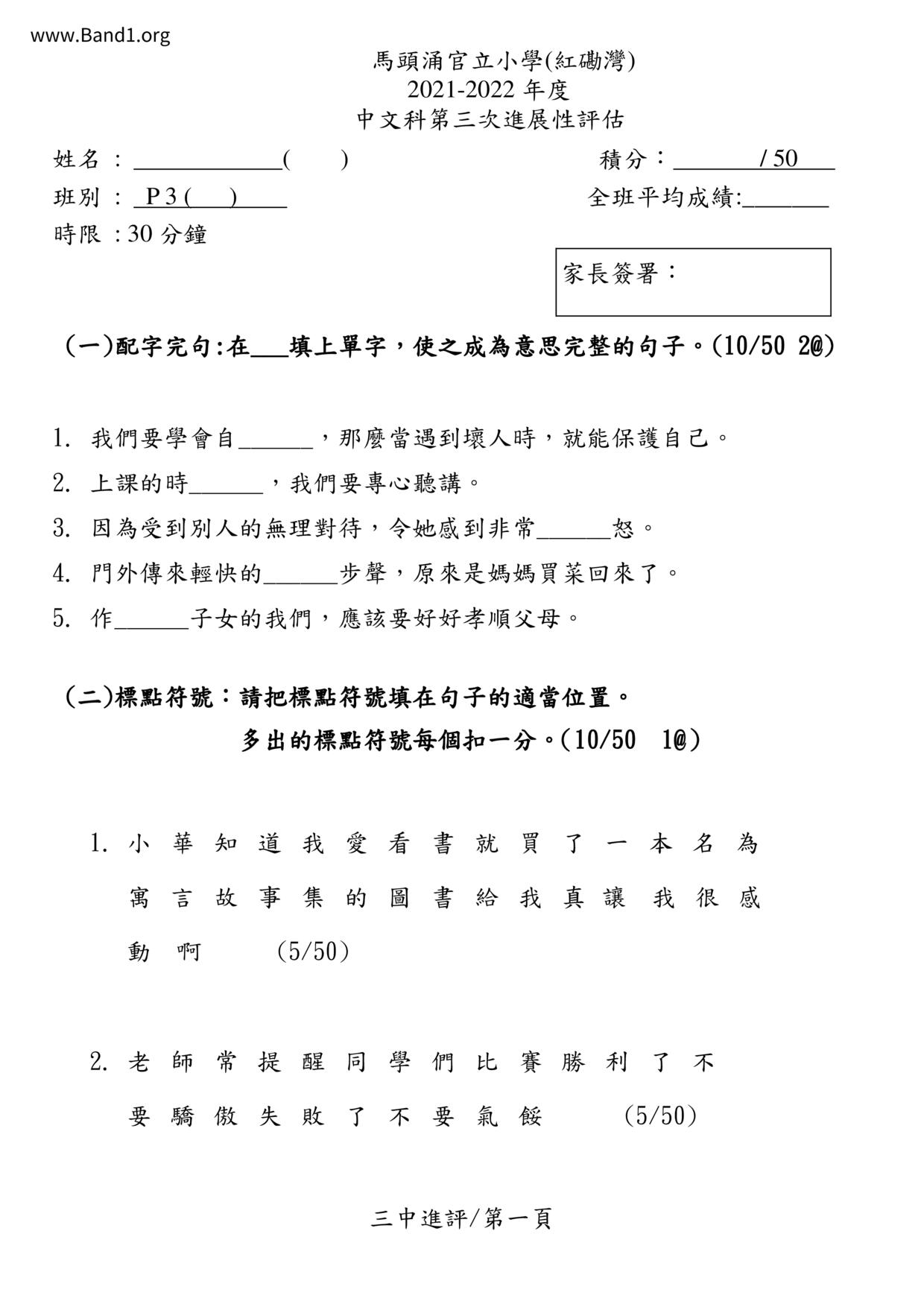 小三 中文 馬頭涌官立小學(紅磡灣)