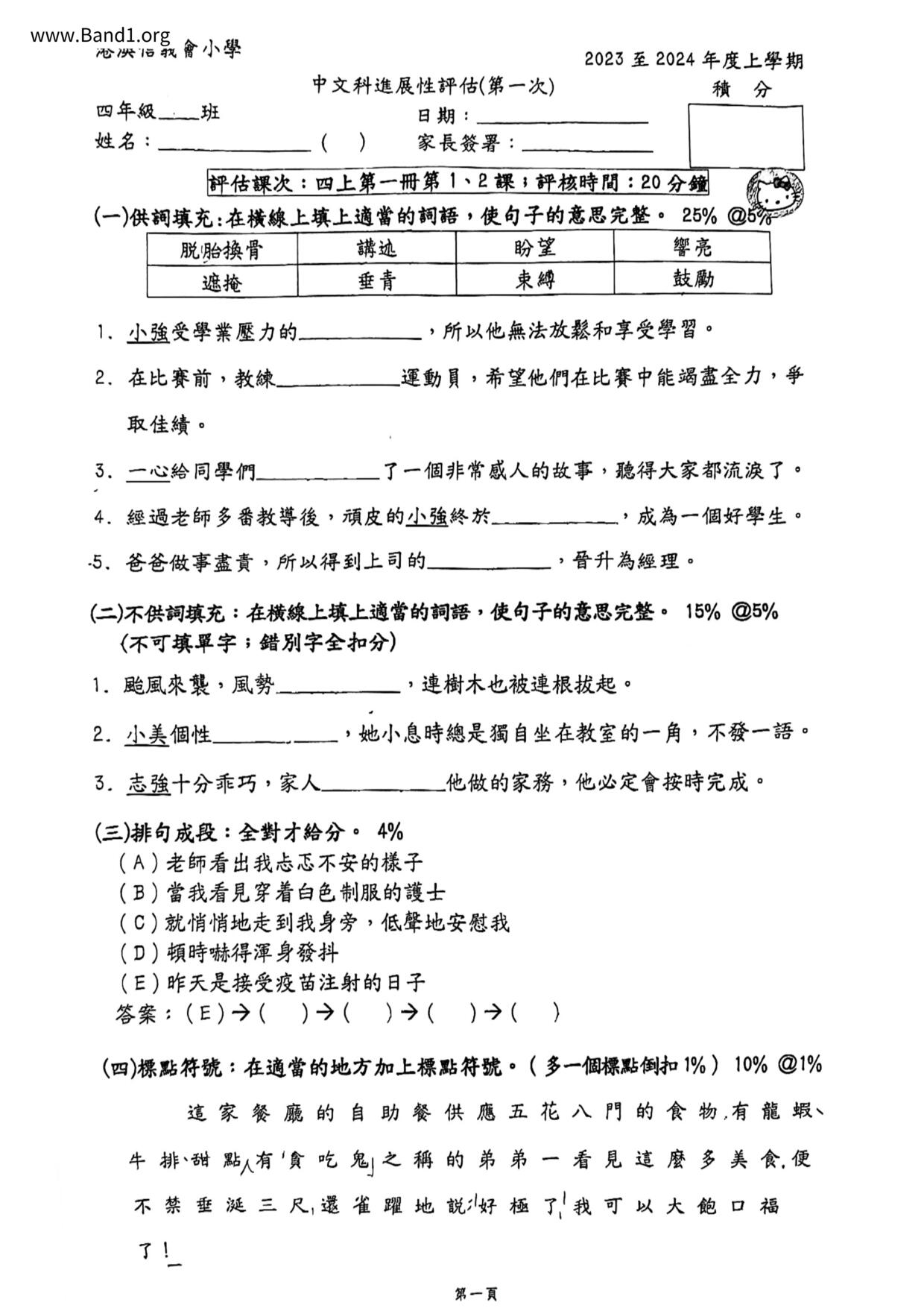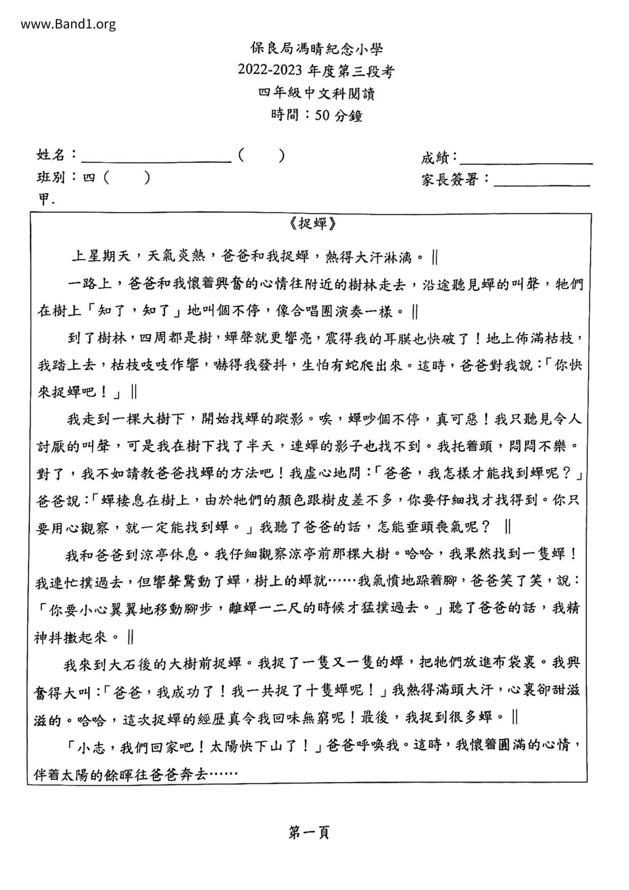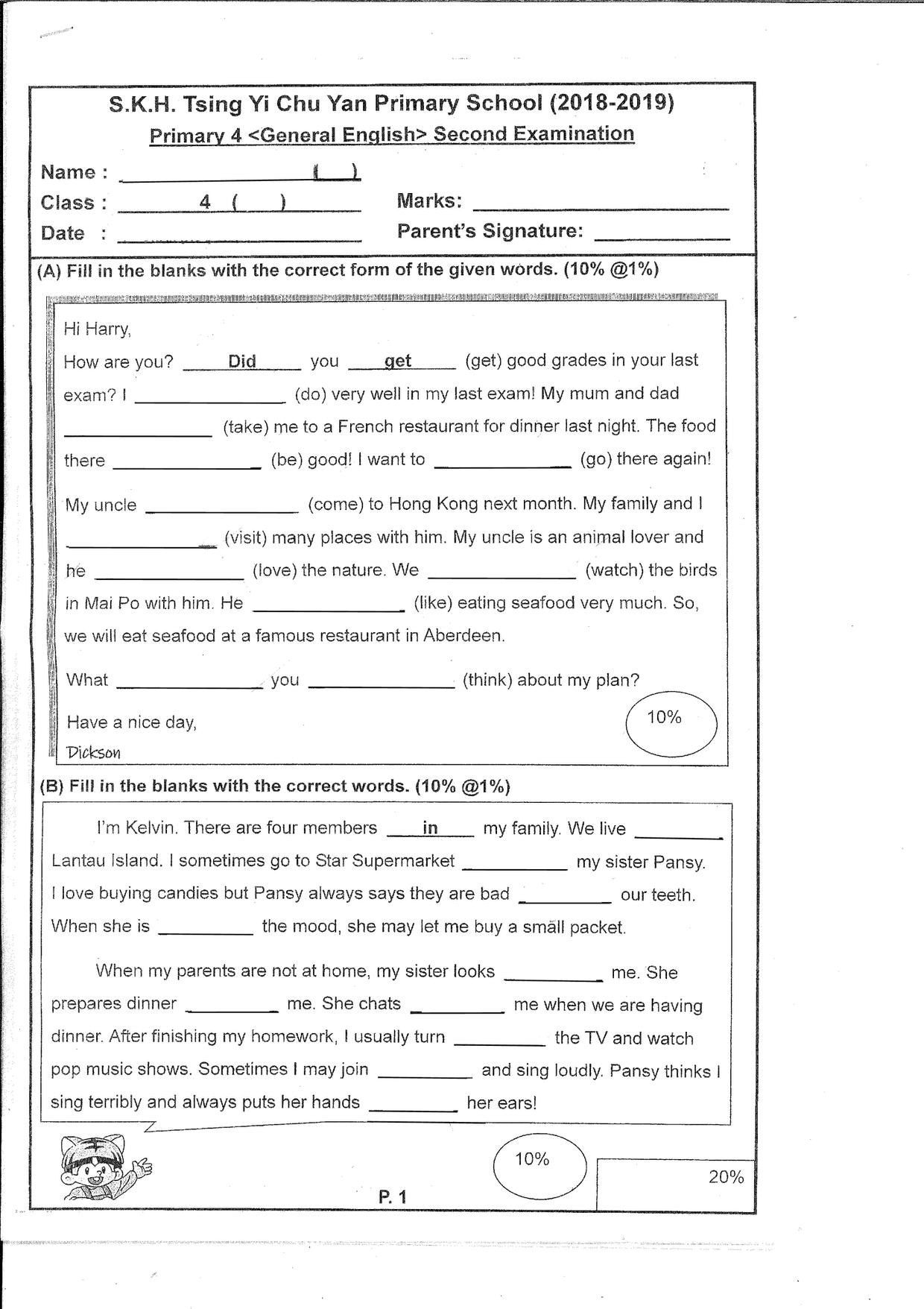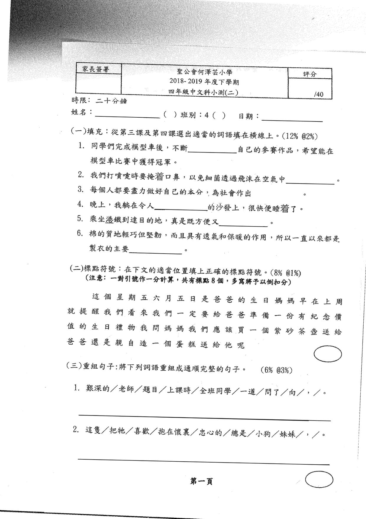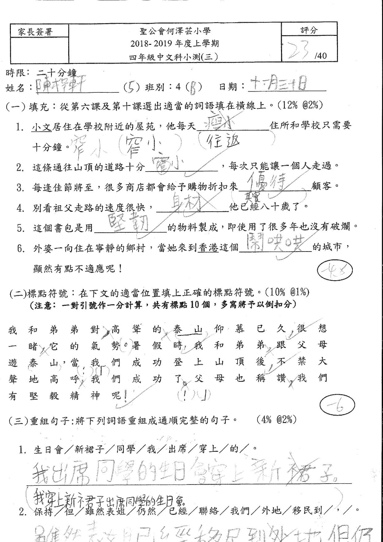 小四 英文 香港九龍塘基督教中華宣道會台山陳元喜小學