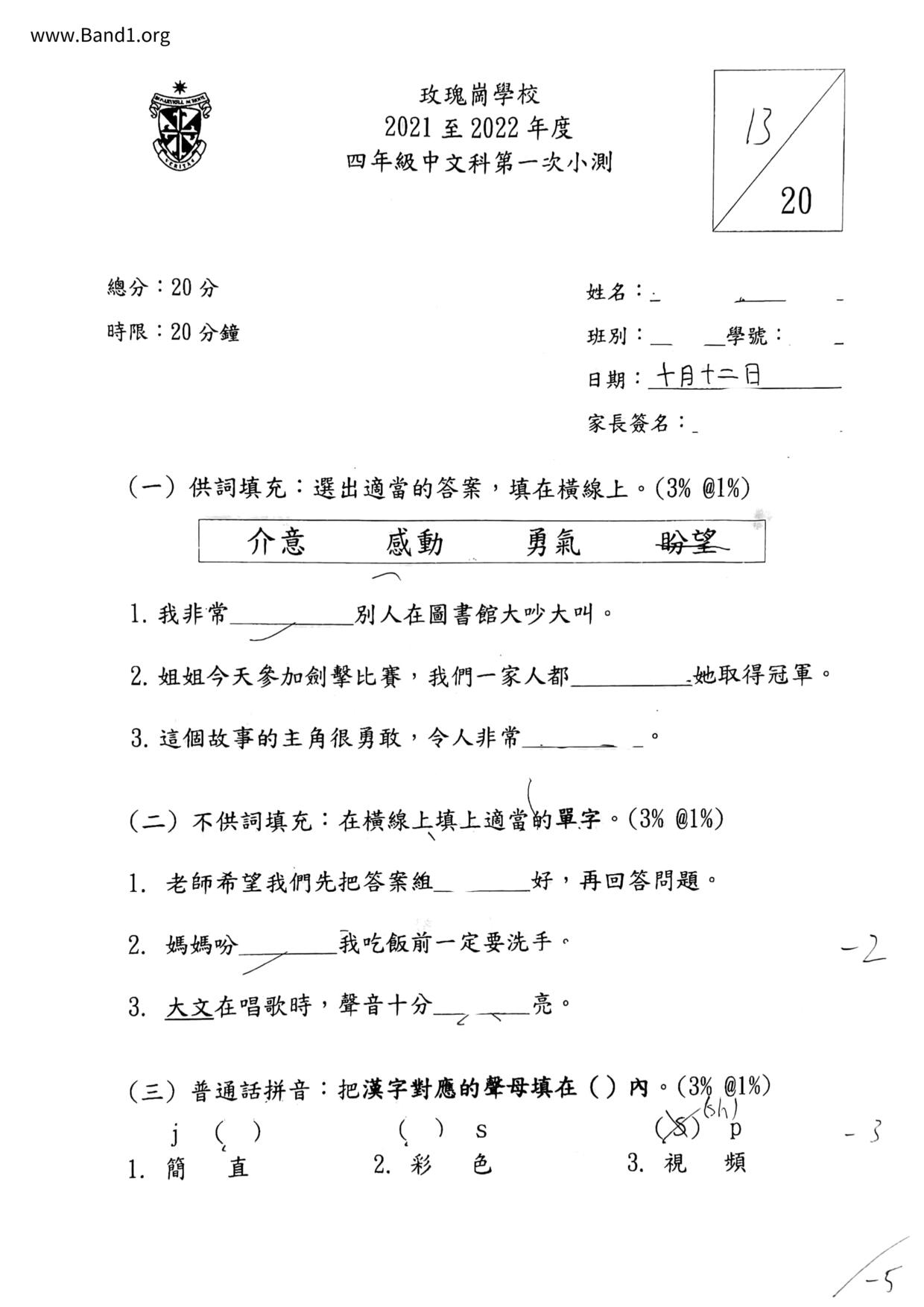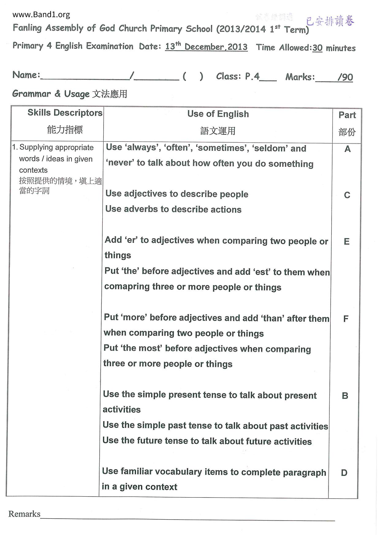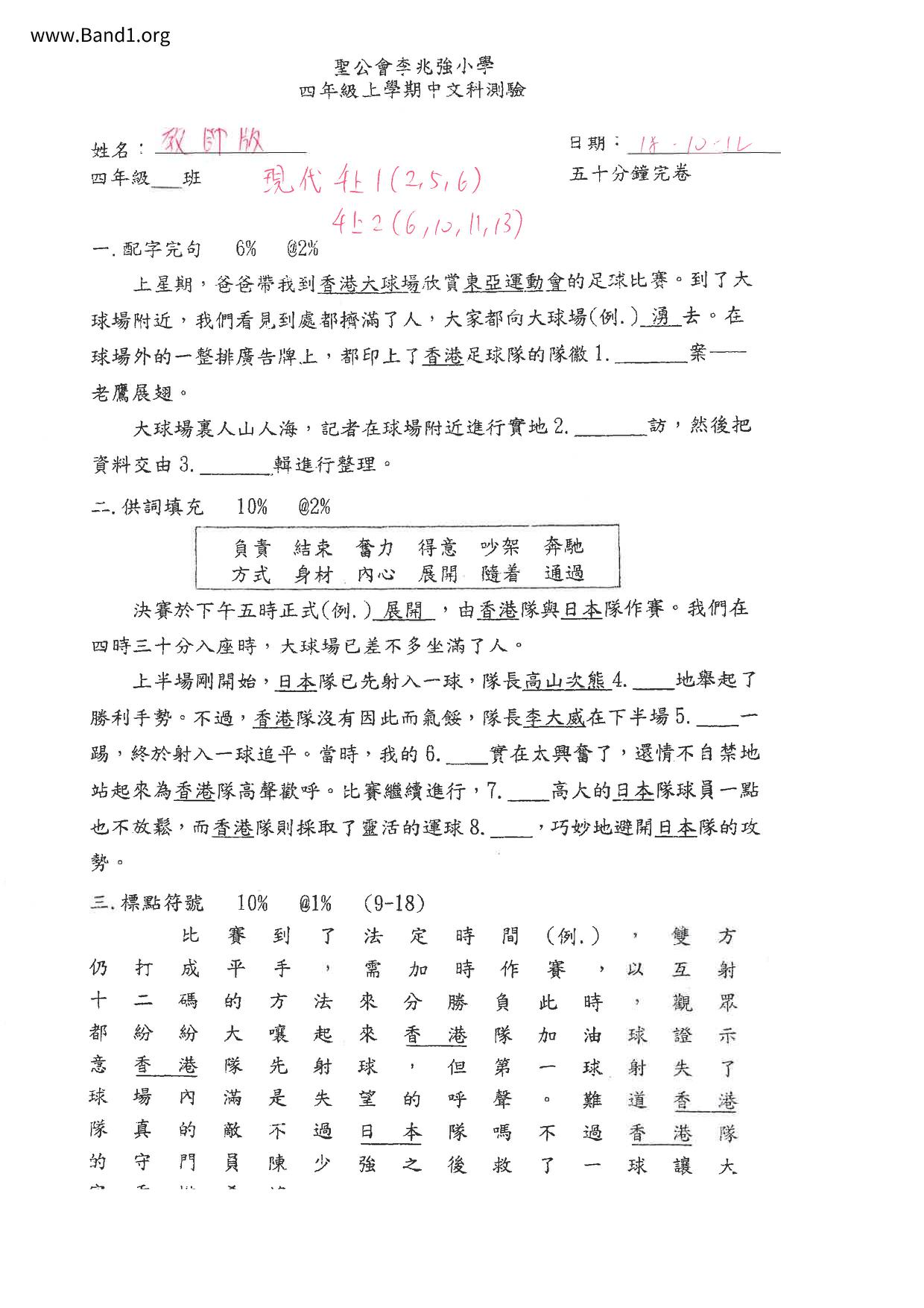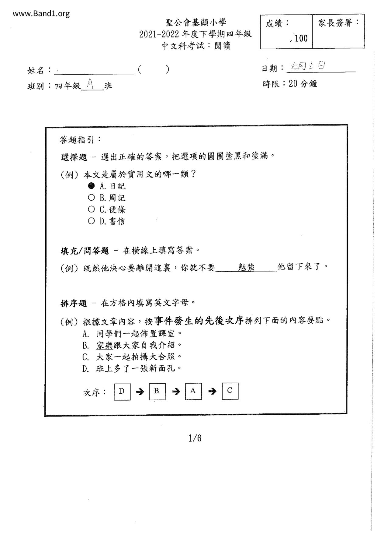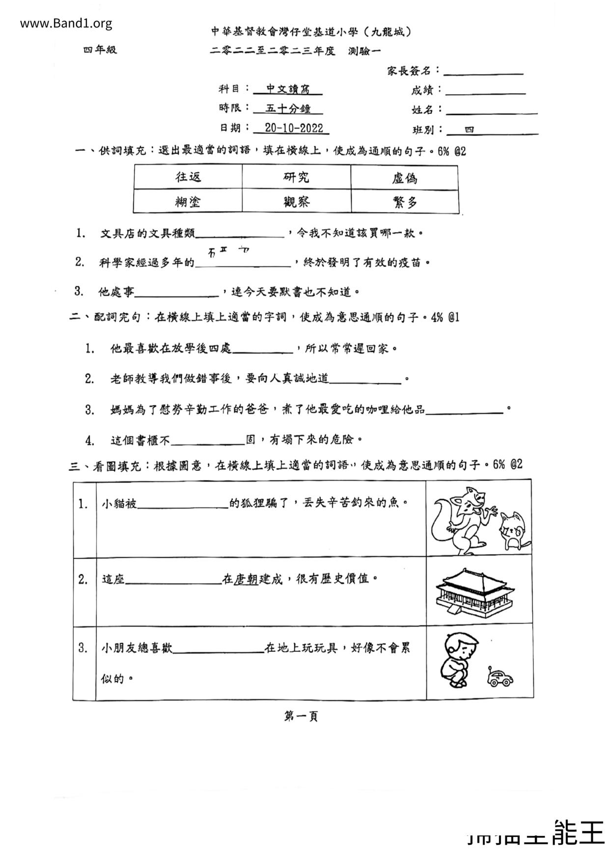 小四 英文 香港九龍塘基督教中華宣道會台山陳元喜小學