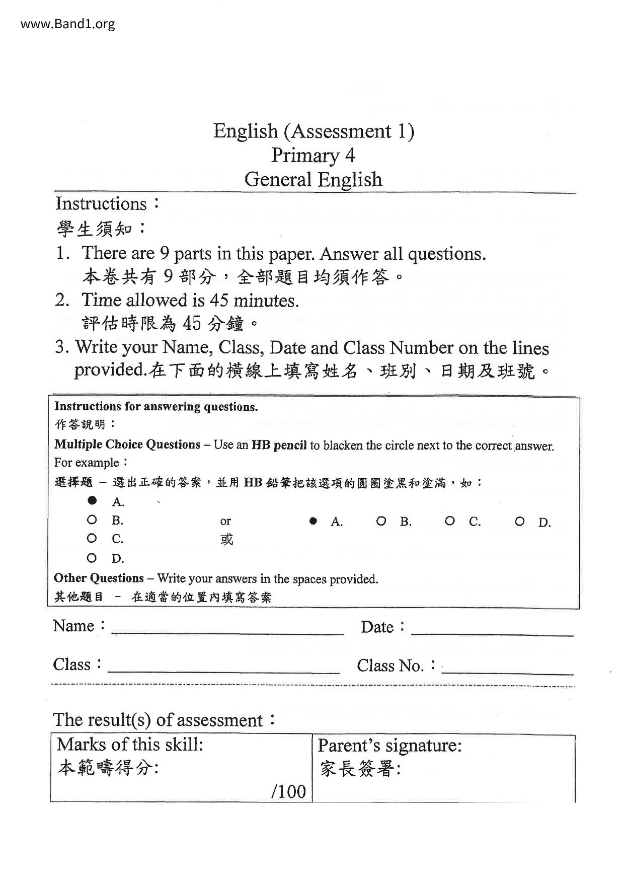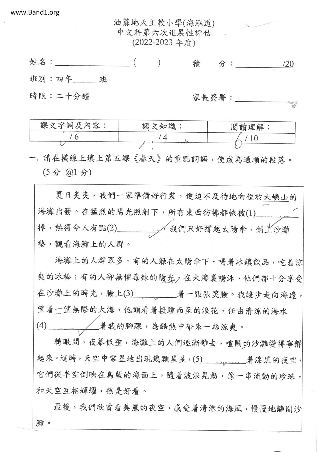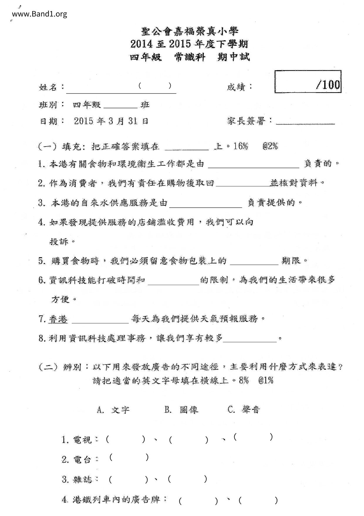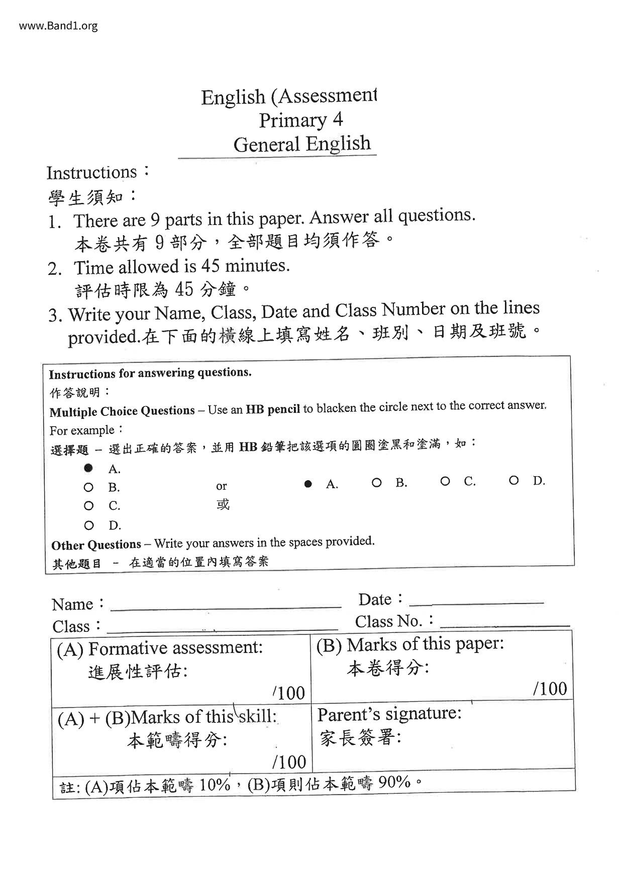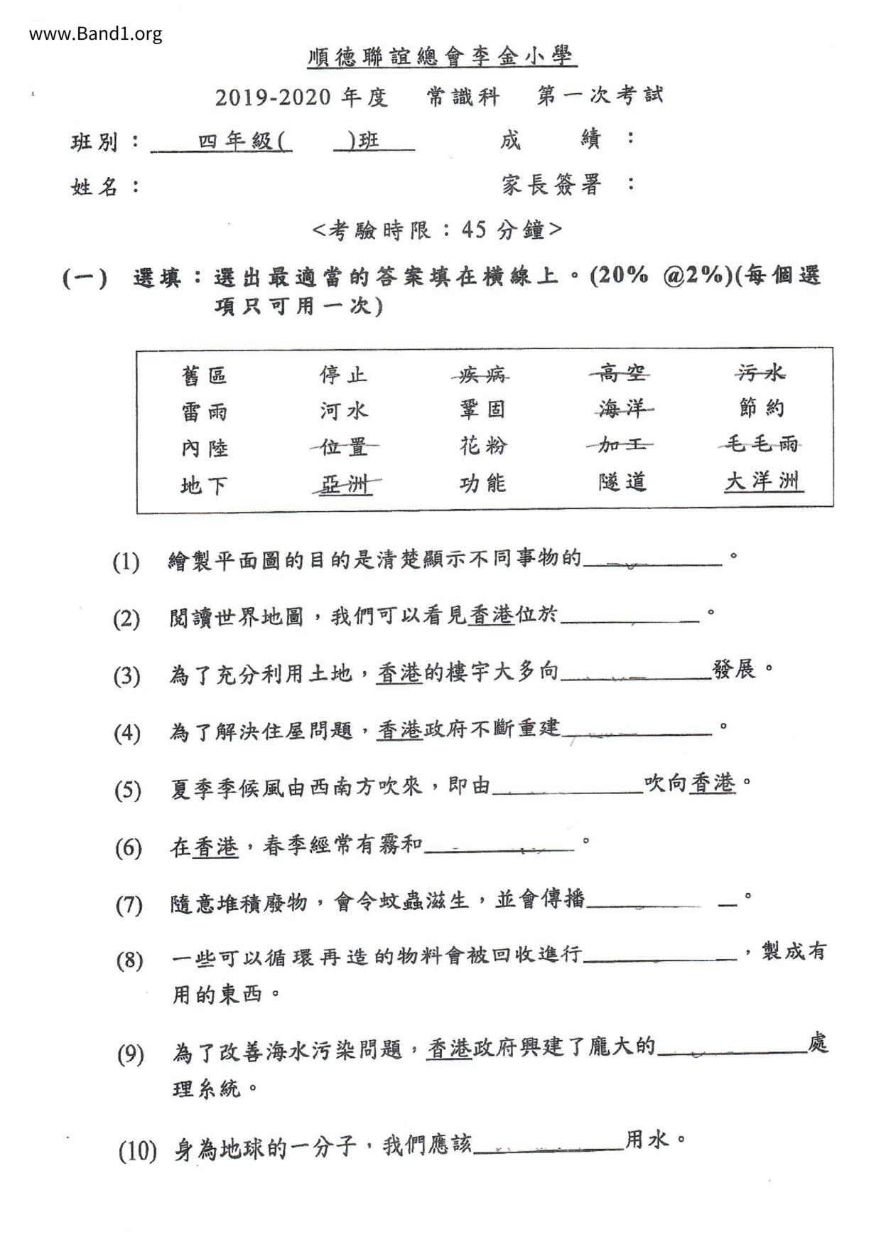 小四 英文 香港九龍塘基督教中華宣道會台山陳元喜小學